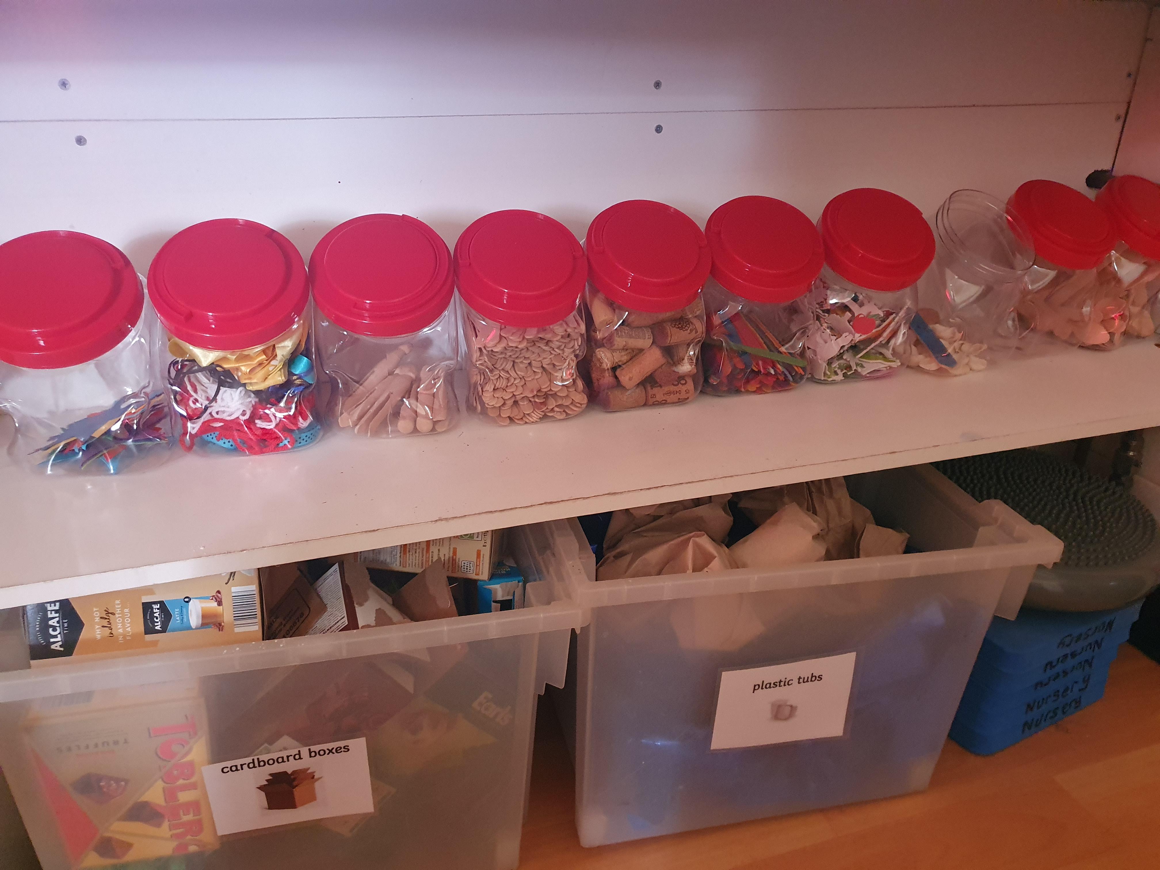 - junk modeling items such as small boxes, button, tissue paper, lolly sticks, bottle lids, wool, scrap pieces of material. (All items need to be smaller than a cereal box for little hands to manage)