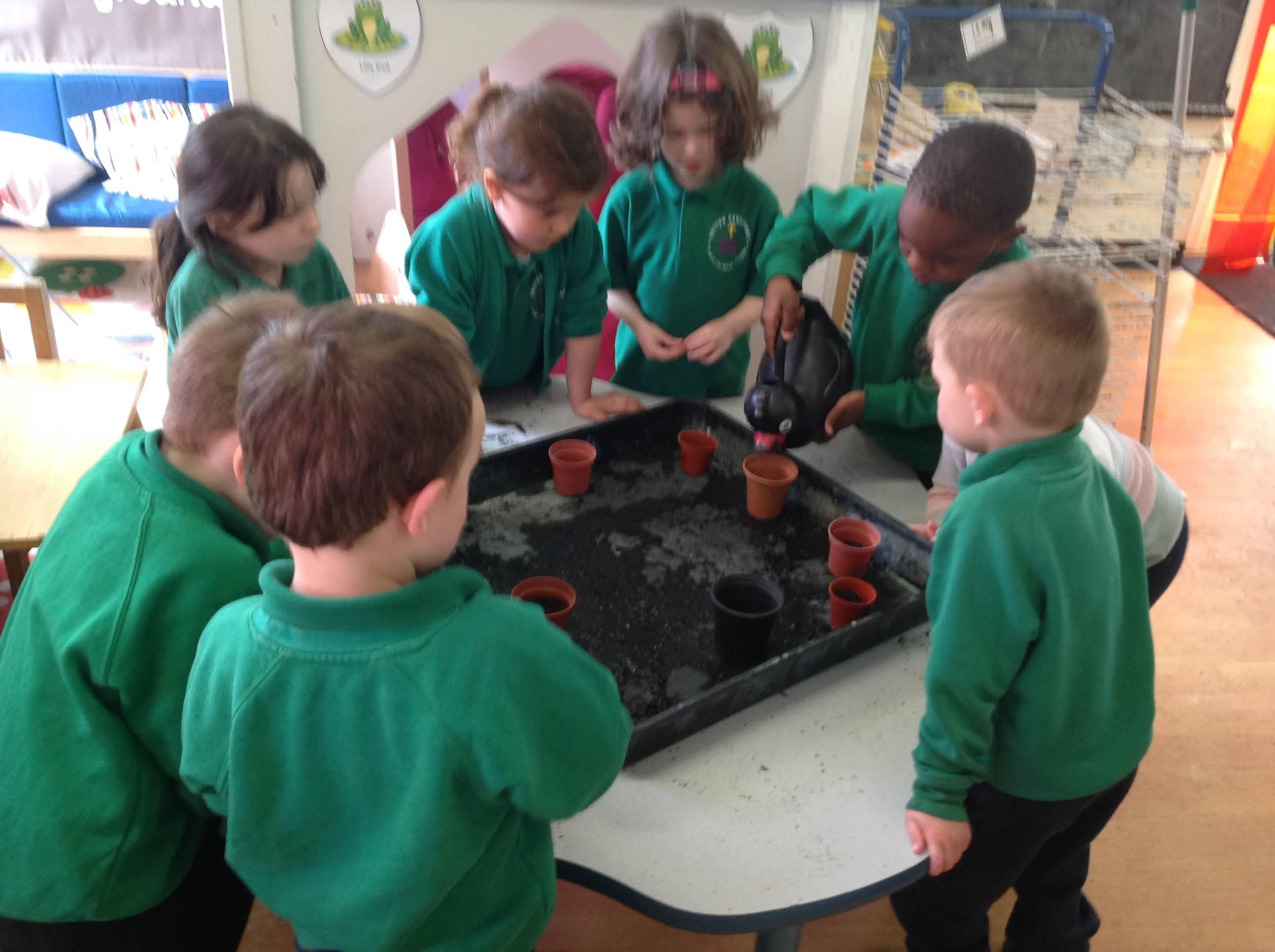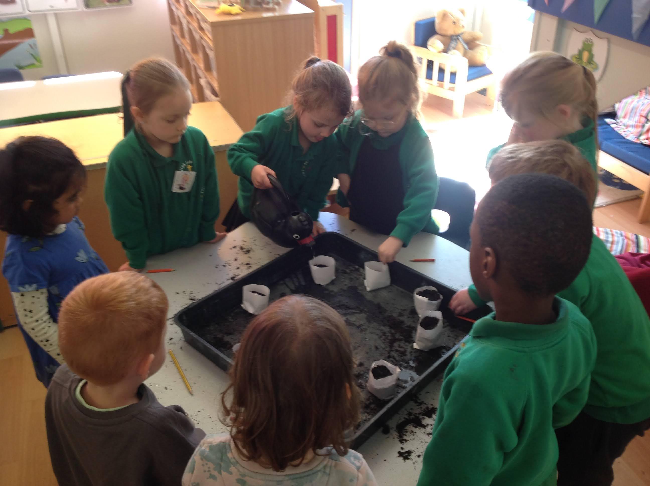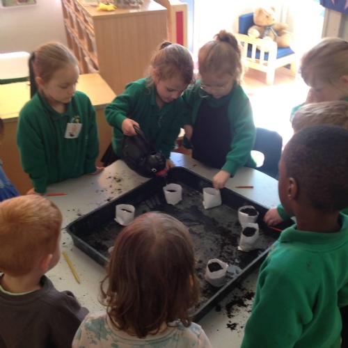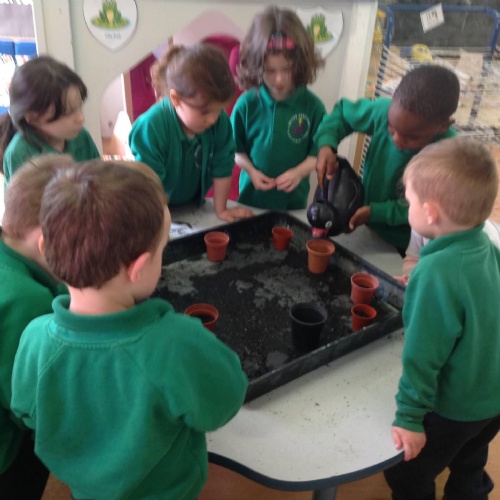 This term and next term, we are conducting a whole school science experiment to see the impact of watering sunflowers with different liquids. Each class has been tasked with starting off a sunflower plant. After the holidays, each plant will be given either plain water, tea, coffee, cola, lemonade, sugar water or chemical fertiliser. To help children understand the concept of a fair test, as many variables as possible will be kept the same, such as the location of the plants and the volume of liquid given. The children have been invited to make a prediction and it will be interesting to see the results shown as tables and graphs by the older children.