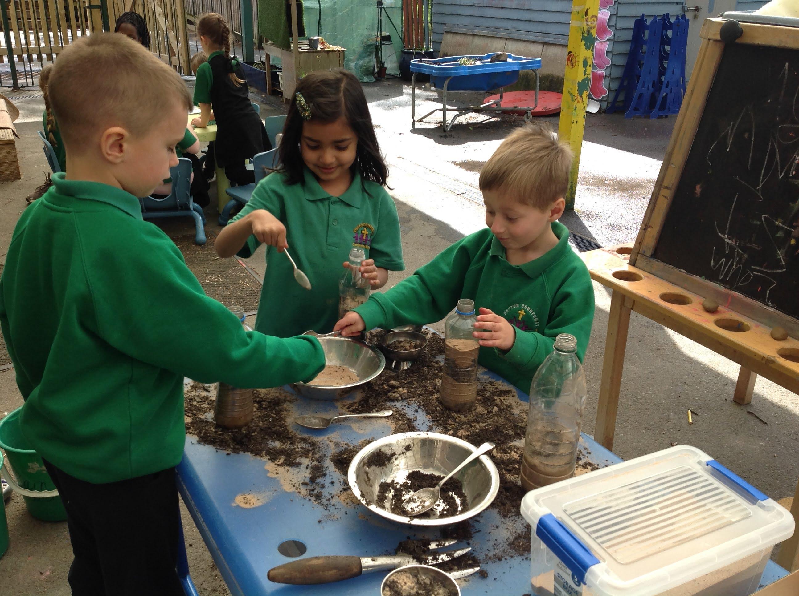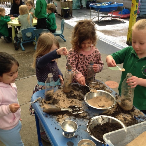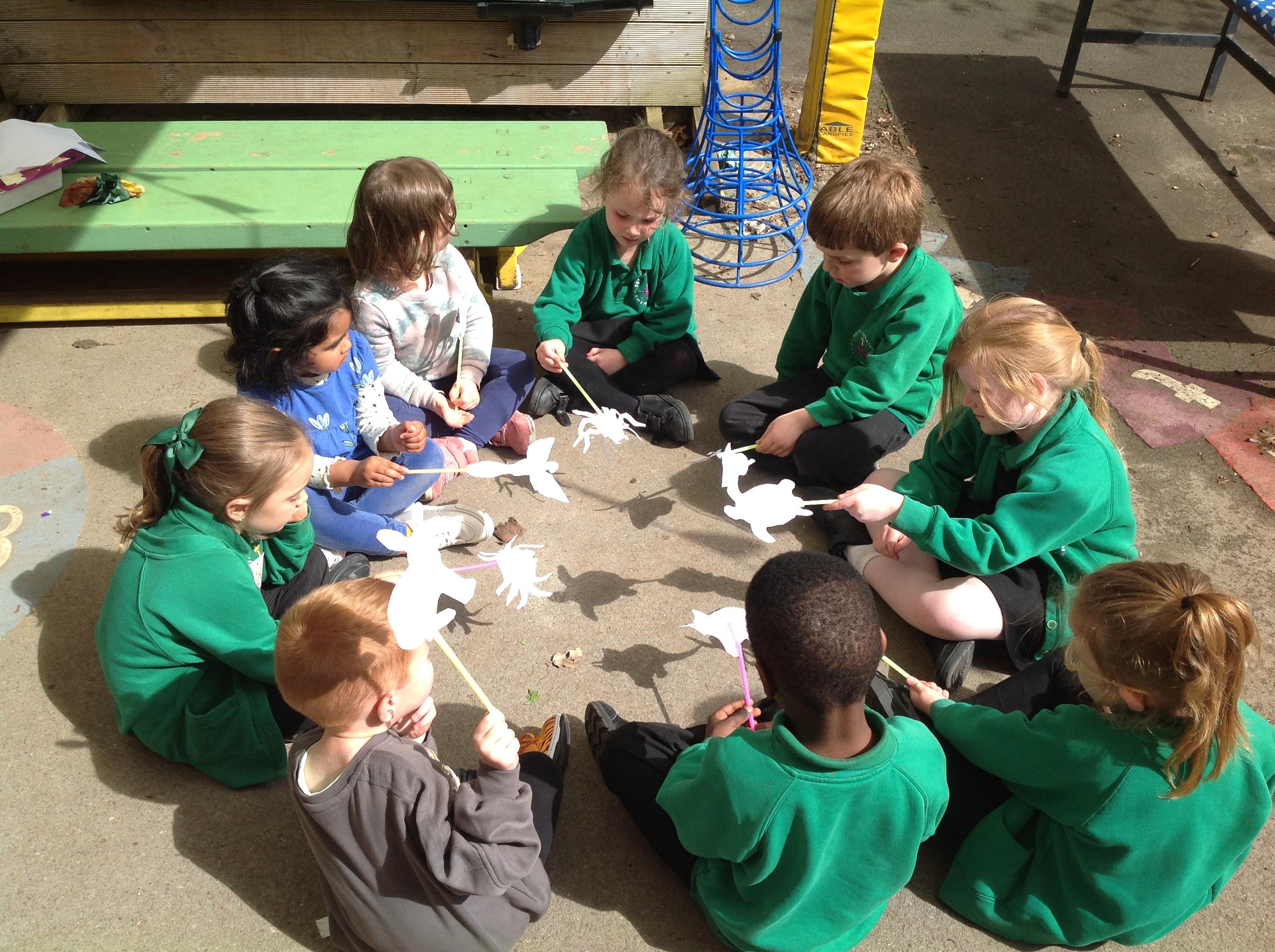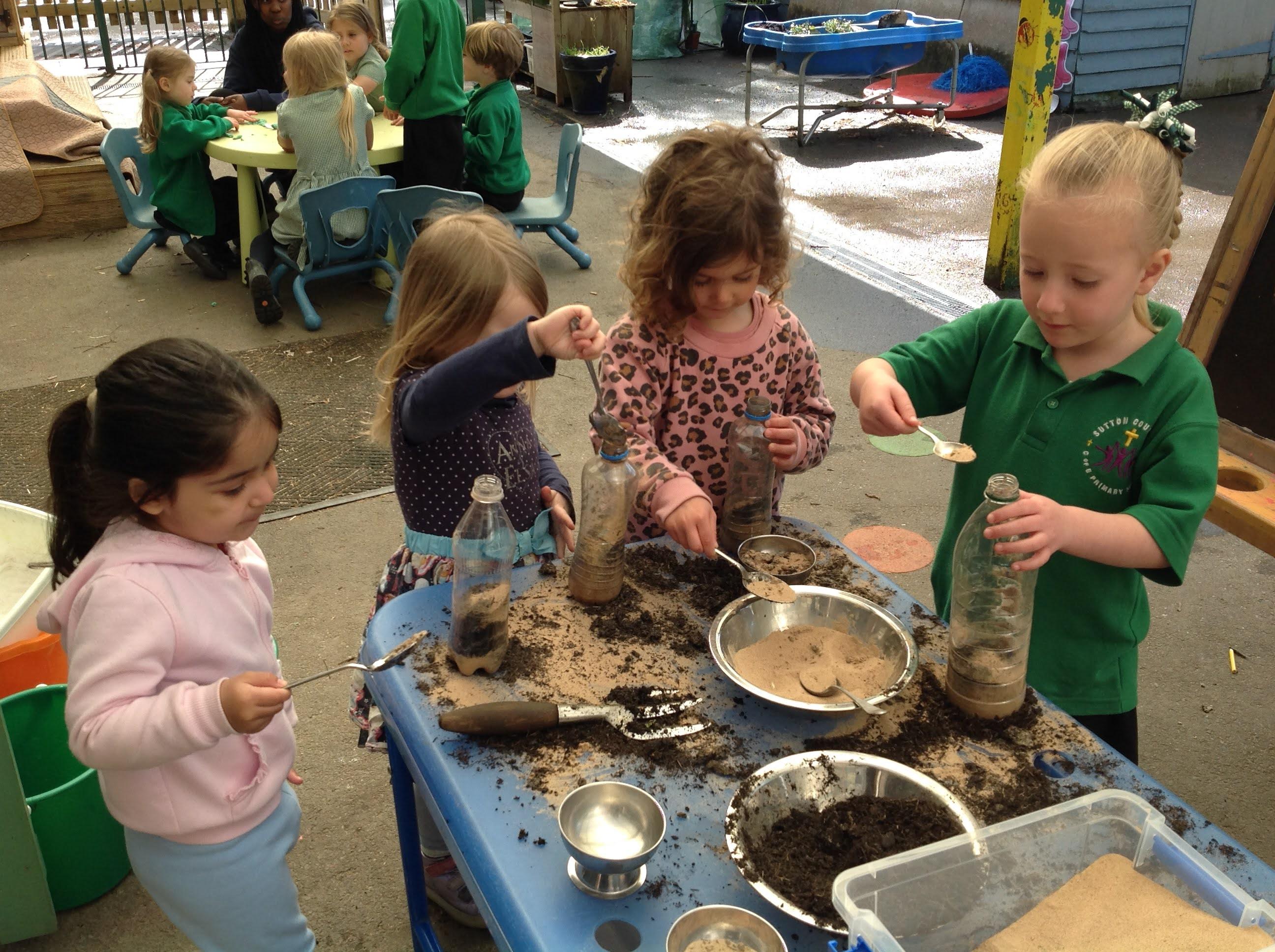 Children created rainbows in water, planted sunflowers, created a worm hotel and explored how shadows change.
