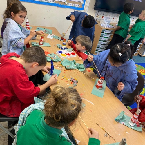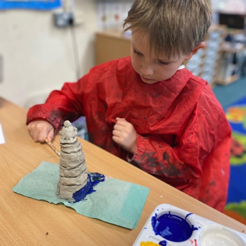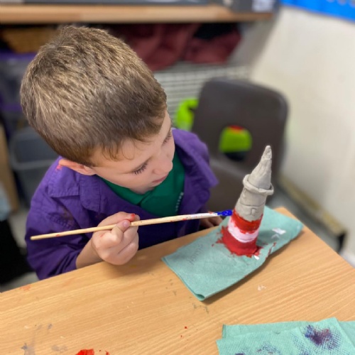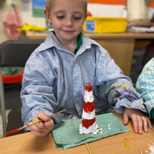 Our Topic this term has been 'Land Ahoy'. We have learnt about the 4 countries that make up the UK and surrounding seas, Captain James Cook, Grace Darling, the RNLI and we had a go at making our own lighthouses from clay. We also enjoyed making sea creatures out of everyday materials and building and testing our own rafts.