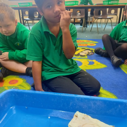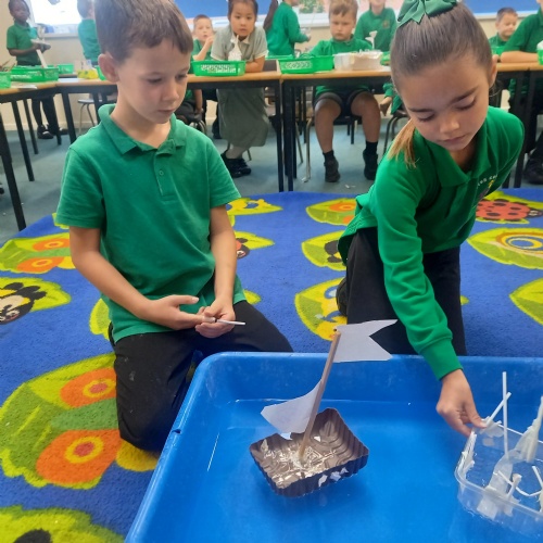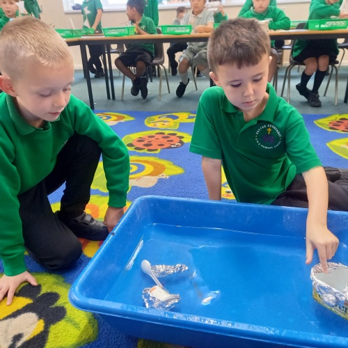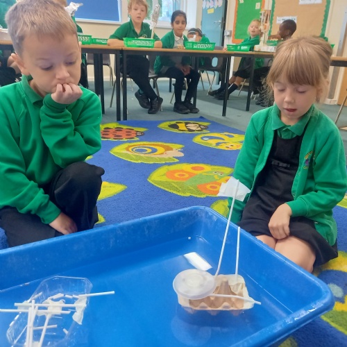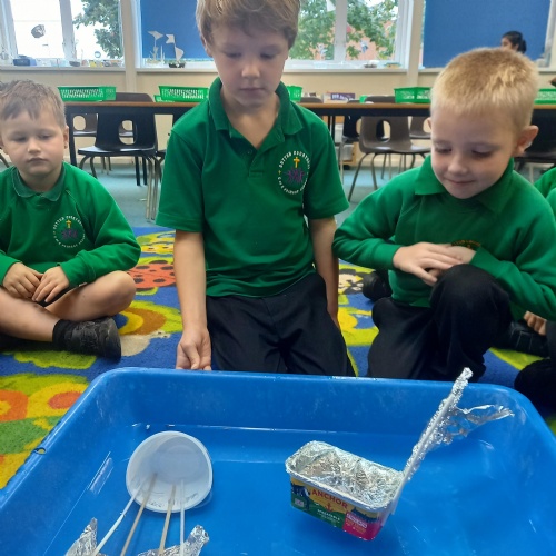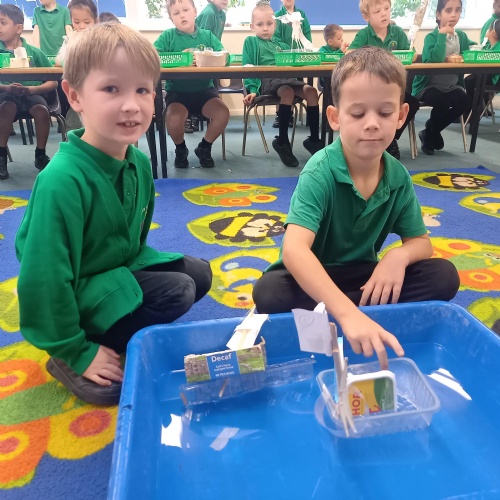 26th September - Kingfishers have been learning all about which materials will float and sink.  They had fun testing out different materials and designing and making a boat.  We all learnt lots during the experiment, here are some of our observations: