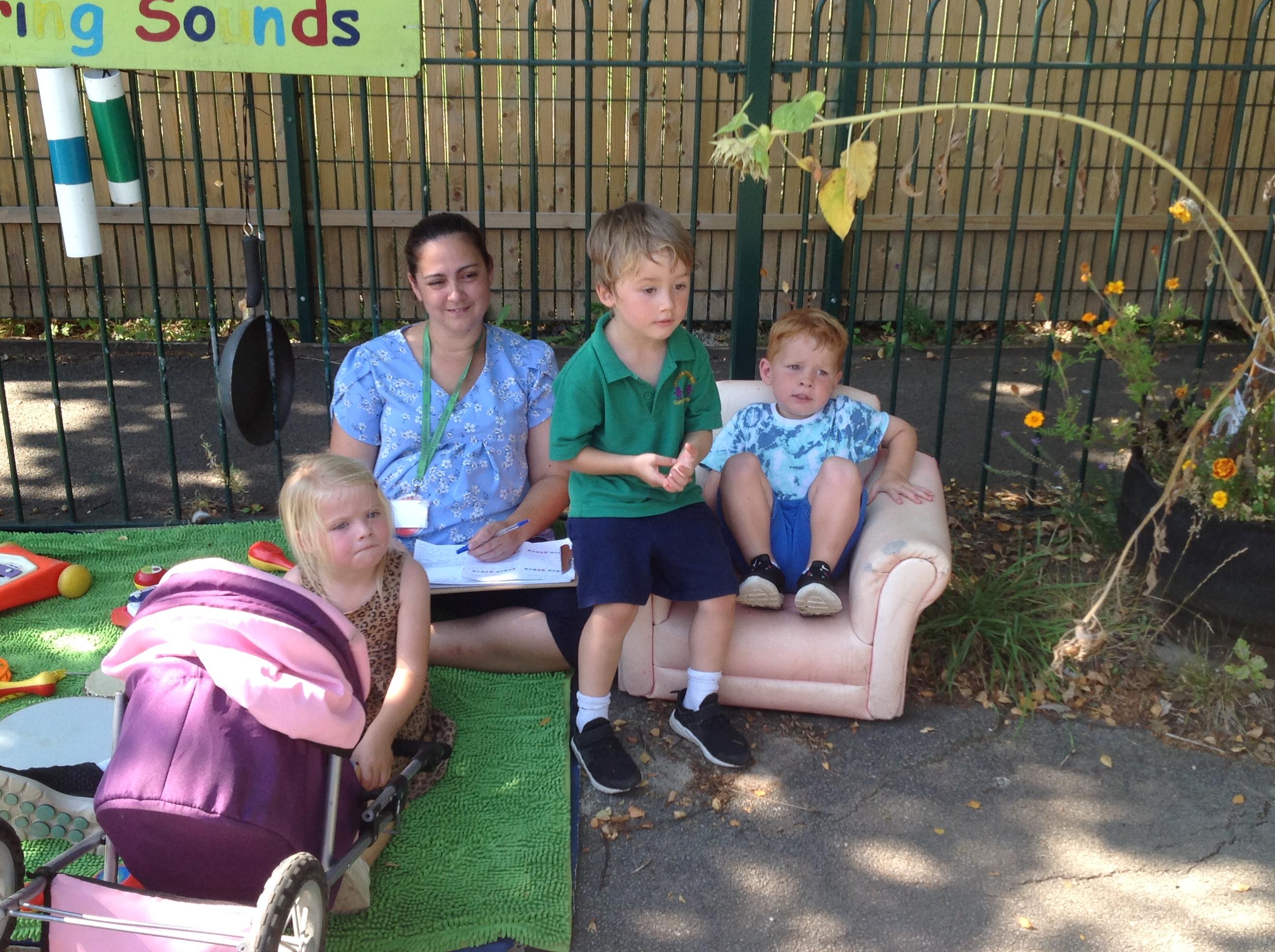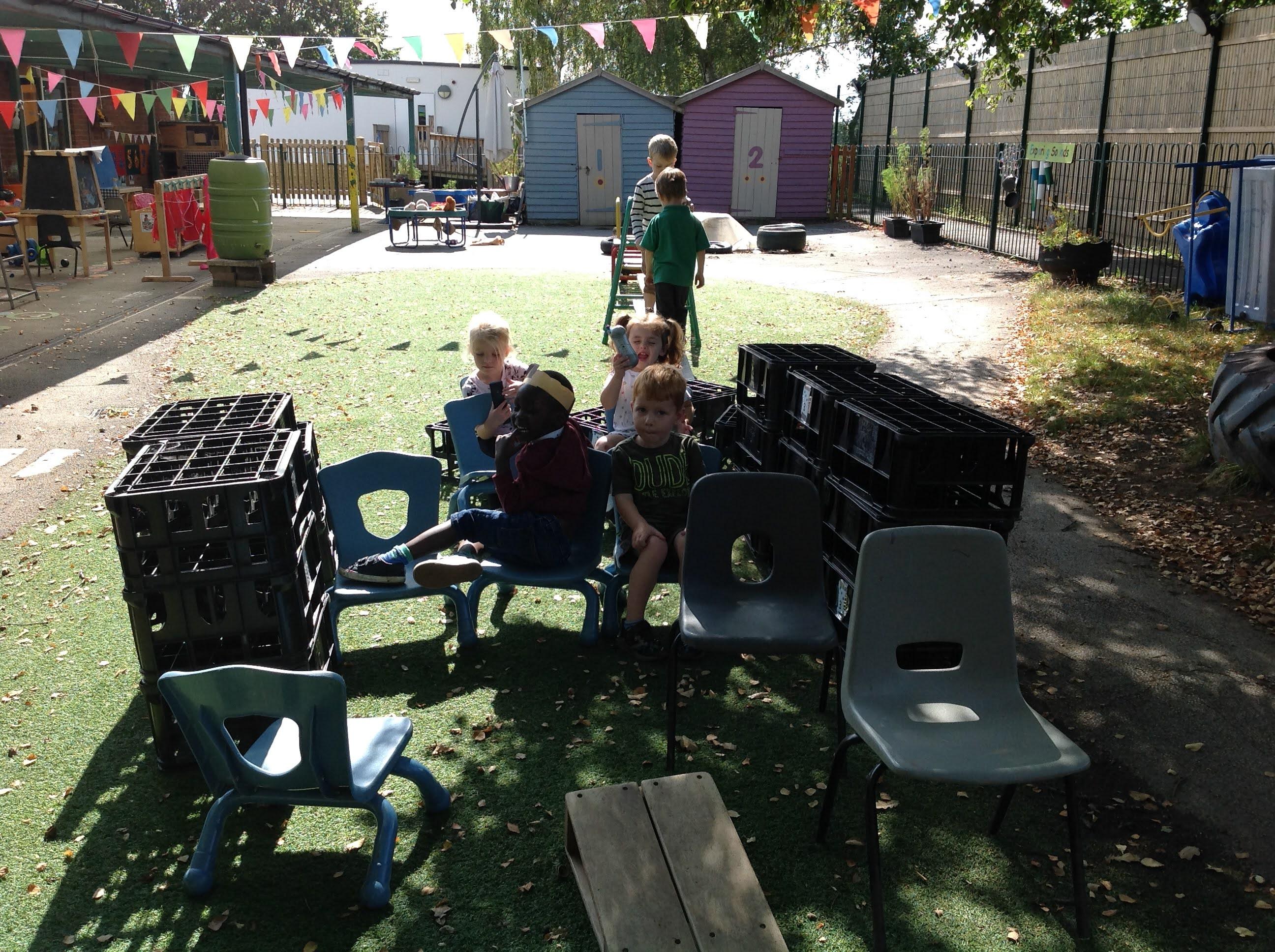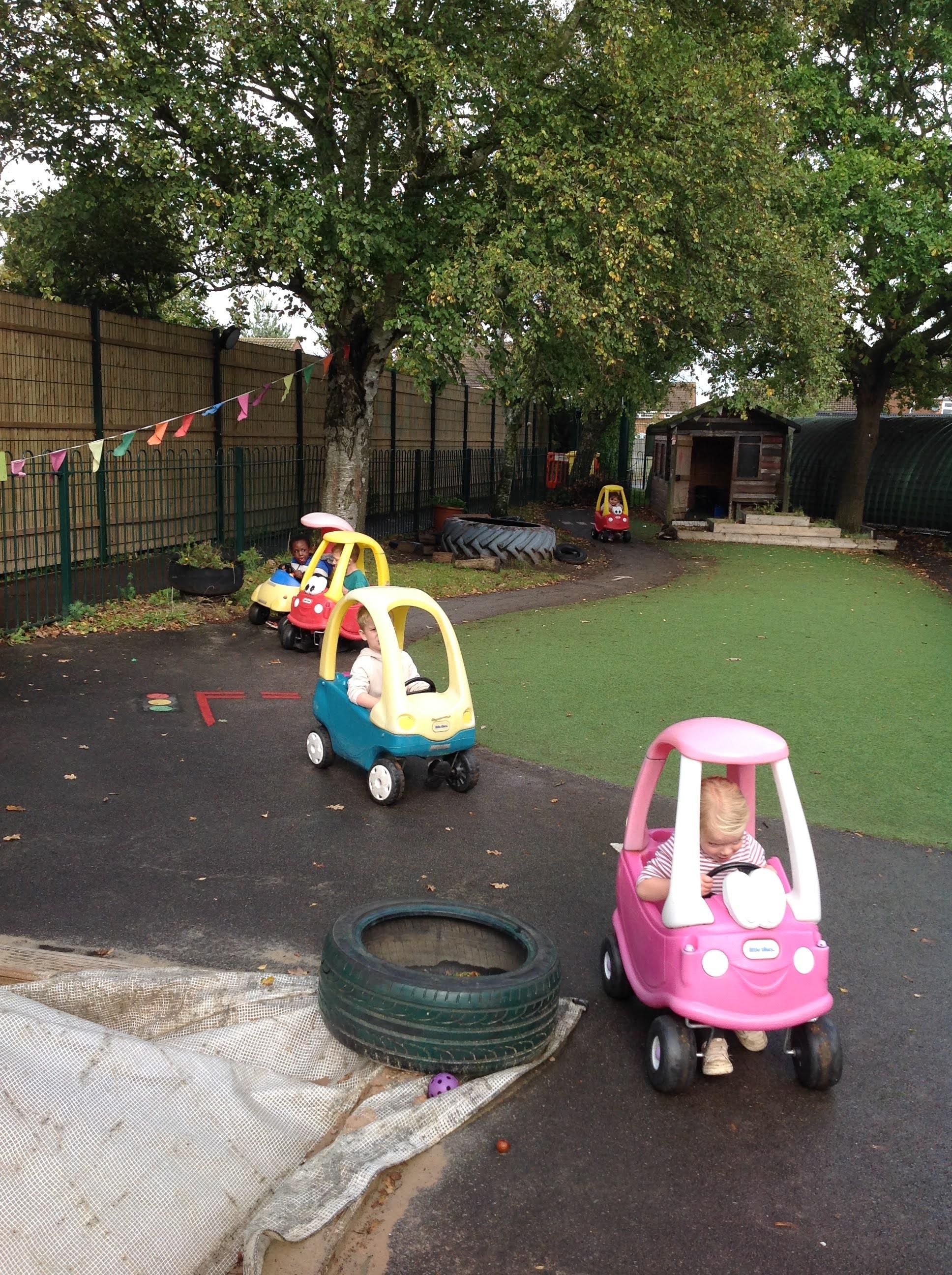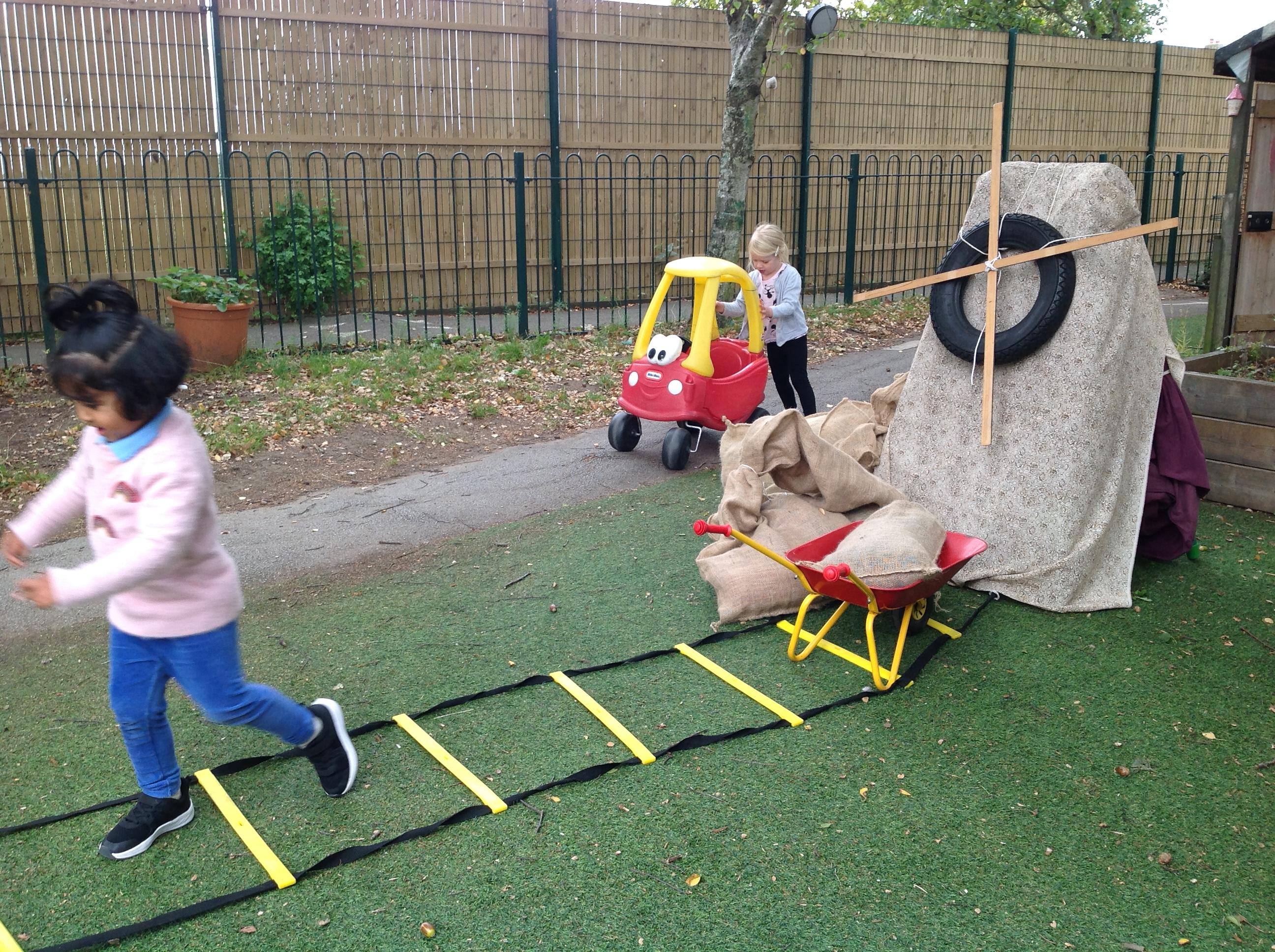 After our visit to the farm we turned the nursery garden into our own farm and have enjoyed looking after the horses and riding on the tractors.