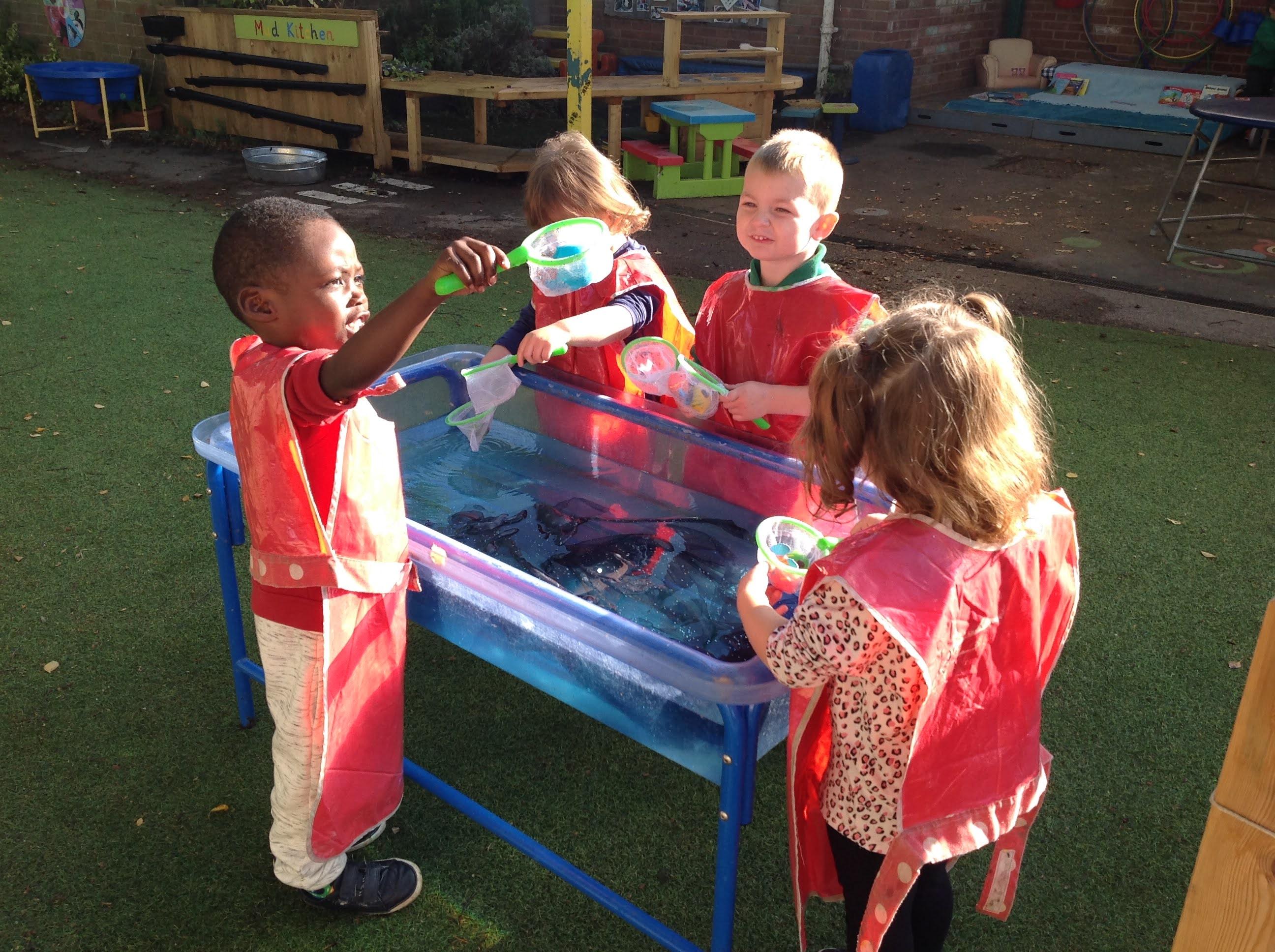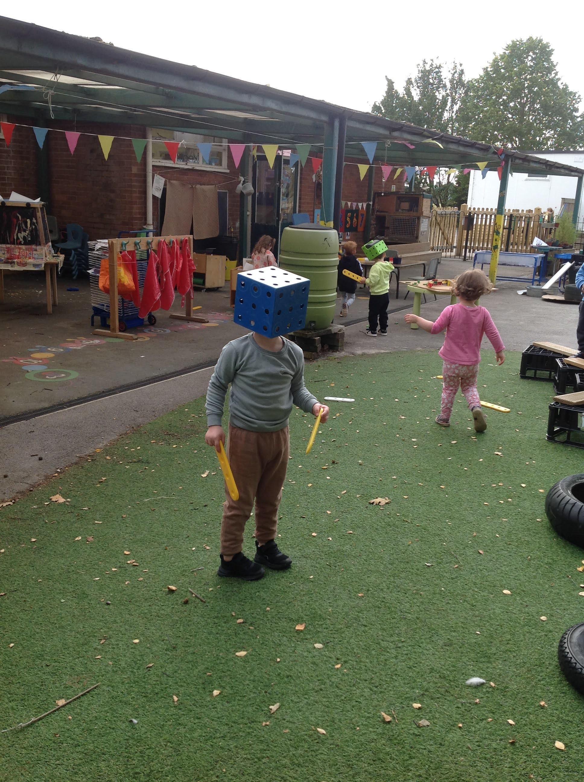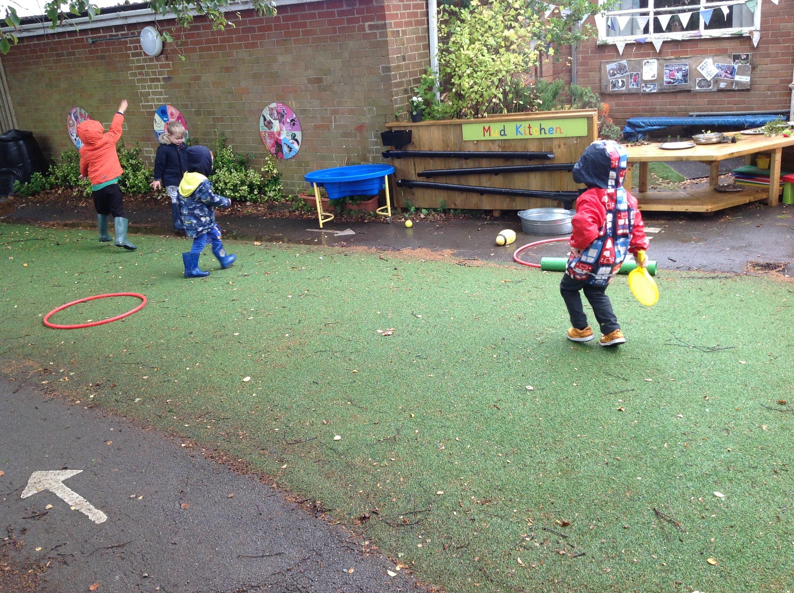 As you can see from the photographs that in early years we are outside, whatever the weather, and this week we seemed to have experienced a wide range!