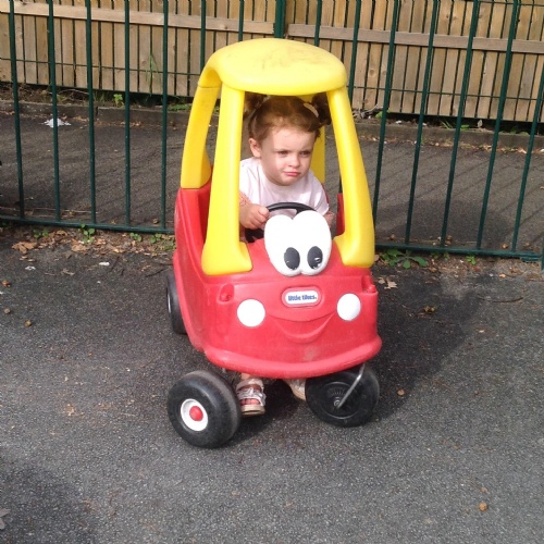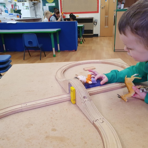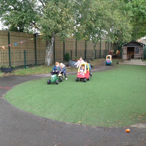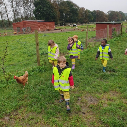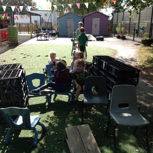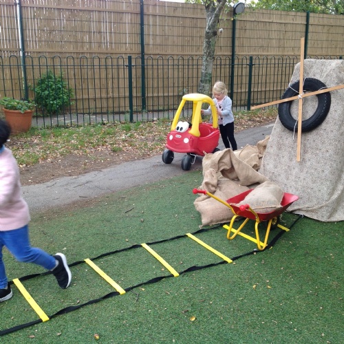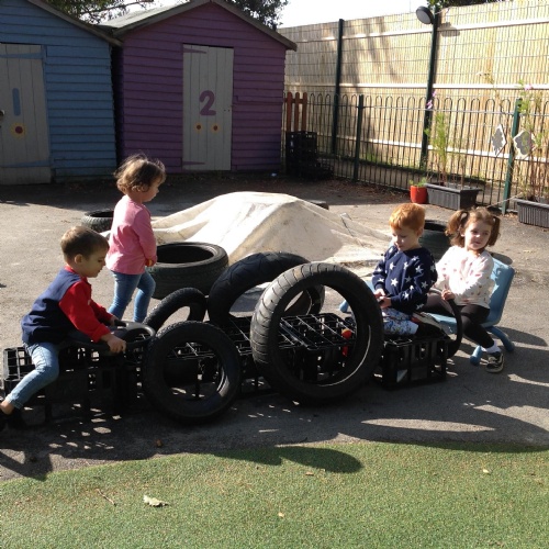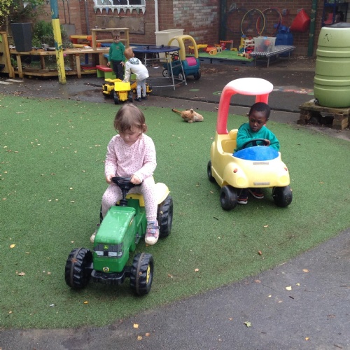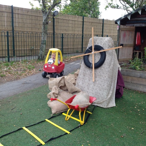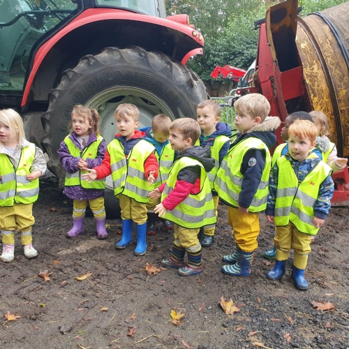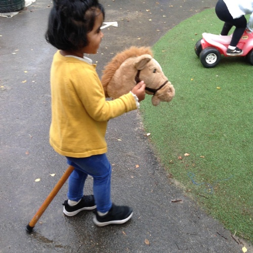 After our visit to the farm we turned the nursery garden into our own farm and have enjoyed looking after the horses and riding on the tractors.