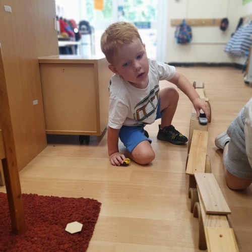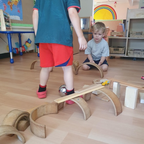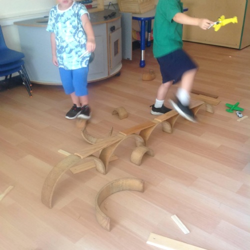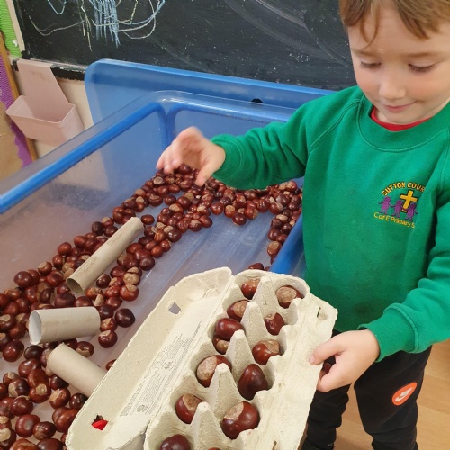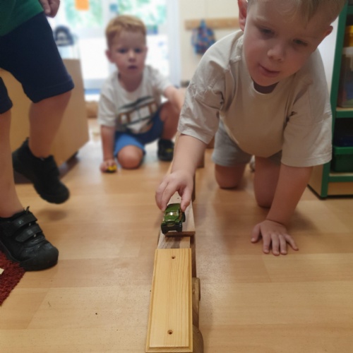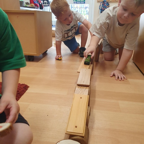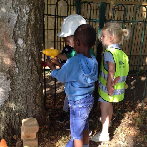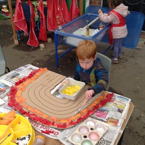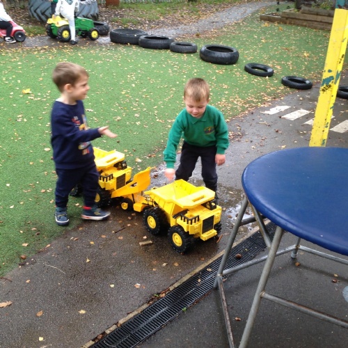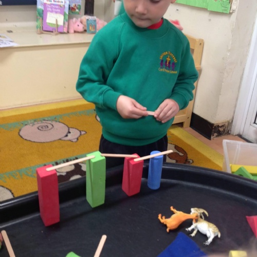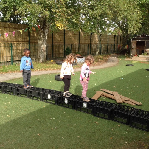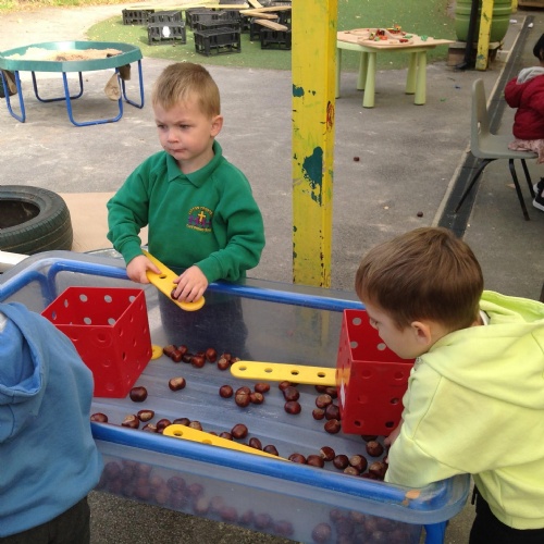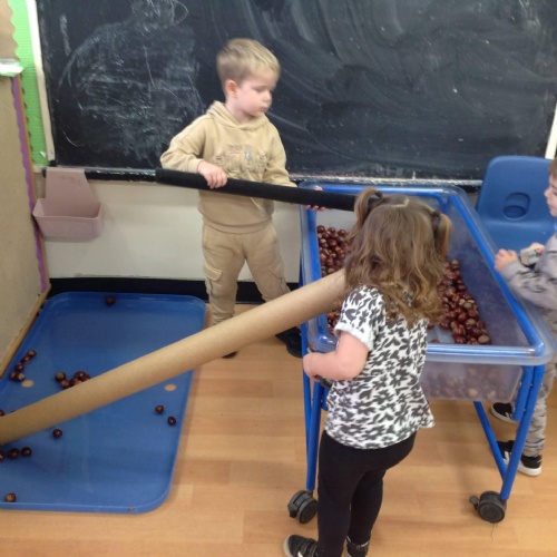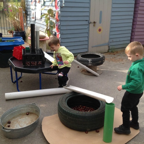 This week we have been reading the story of The Three Billy Goats Gruff and linking this to building bridges. We have made bridges for the cars and trains to travel over. We have also made bridges with the milk crates and planks in the garden that we can walk over. There has been lots of fun exploring and balancing with all the conkers that filled the water tray, and we even made a giant conker run with the guttering and pipes!