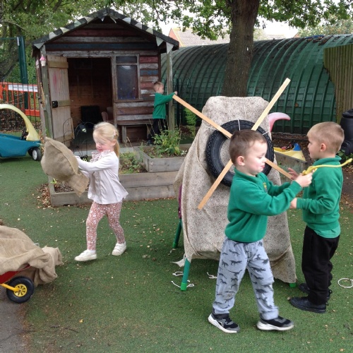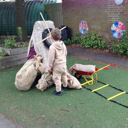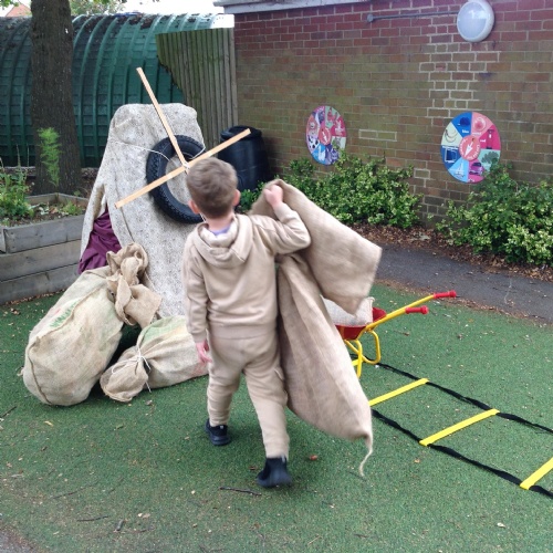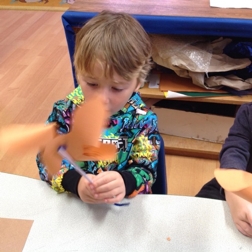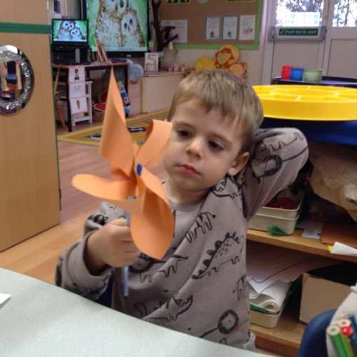 We have been learning how a windmill works to grind the corn into flour. We made our own pin windmills. The Barn Owls worked as millers taking the sacks of flour to the windmill.
