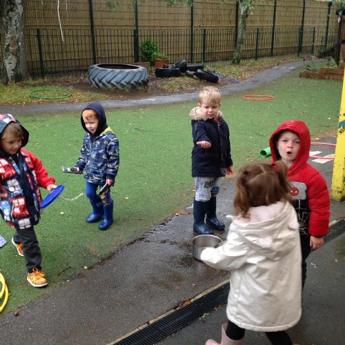 As you can see from the photographs that in early years we are outside, whatever the weather, and this week we seemed to have experienced a wide range!