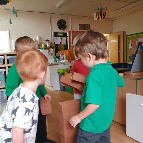 This week we have been reading the story of The Three Little Pigs. The Barn Owls have been great at building their own houses out of many different materials, including straw, sticks and bricks. They have also made stick puppets so they can retell the story.