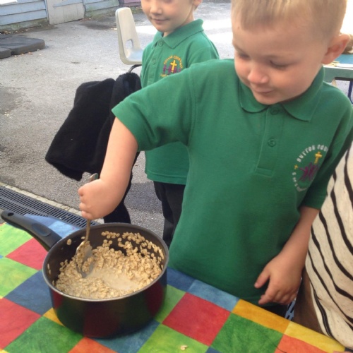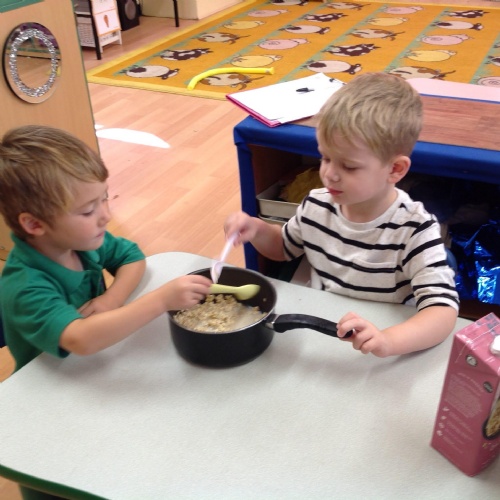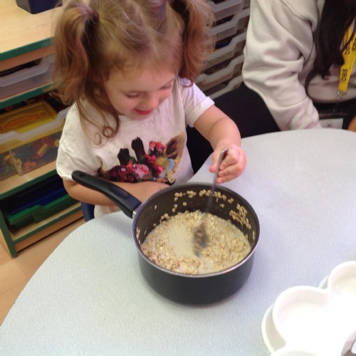 We have enjoyed retelling the story of Goldilocks using puppets and making our own bear masks. The Barn Owls have been busy sorting objects in to small, medium and big, just like the three bears. We have even made porridge and just like Goldilocks, we ate it all up!