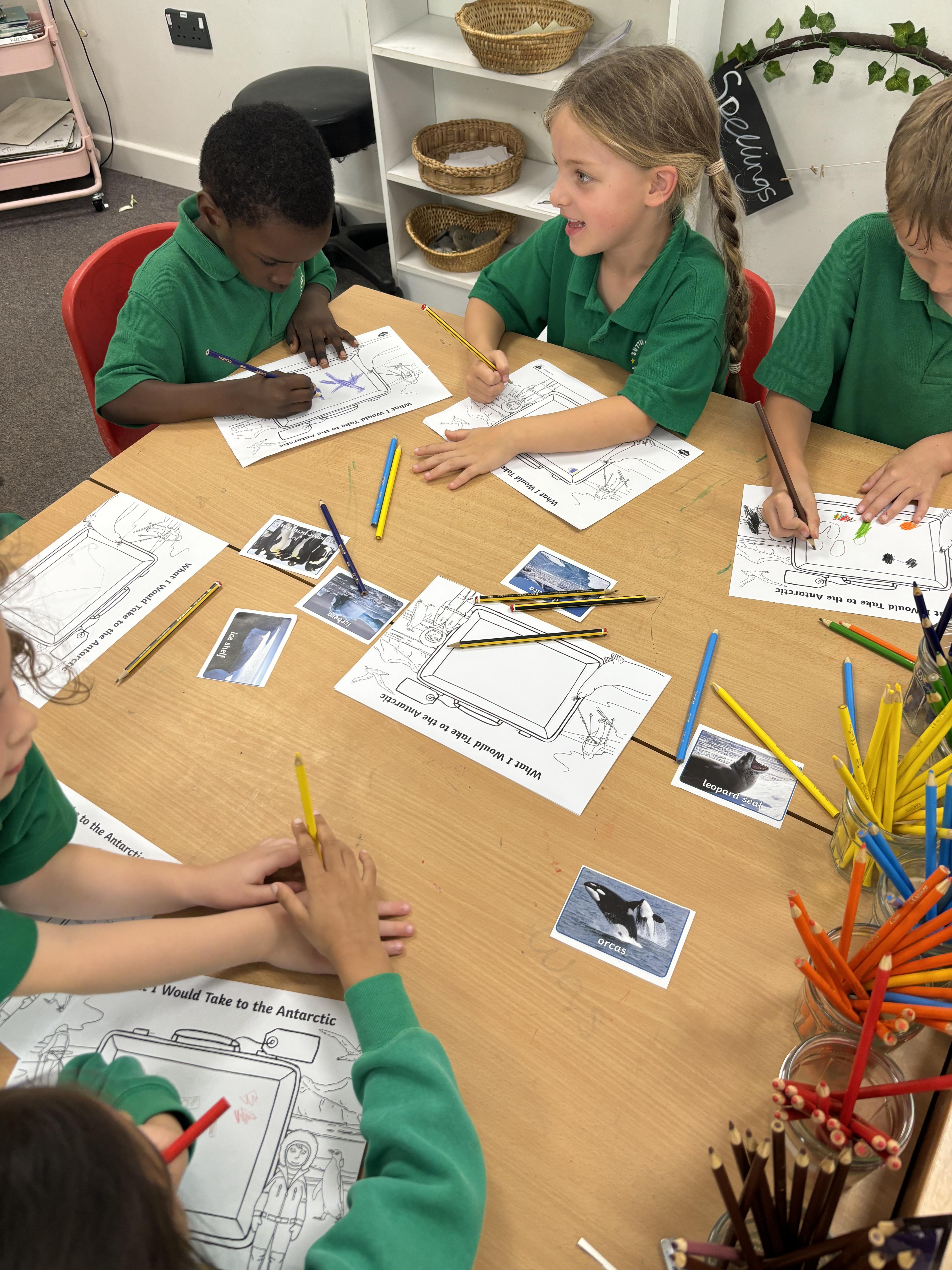 Following on from this, we analysed the picture of a sad penguin and discussed how he may be feeling. We then came up with synonyms for ‘sad’ and wrote a sentence using an adjective to describe the penguin. This linked to this week’s PSHCE as we were learning about feelings.