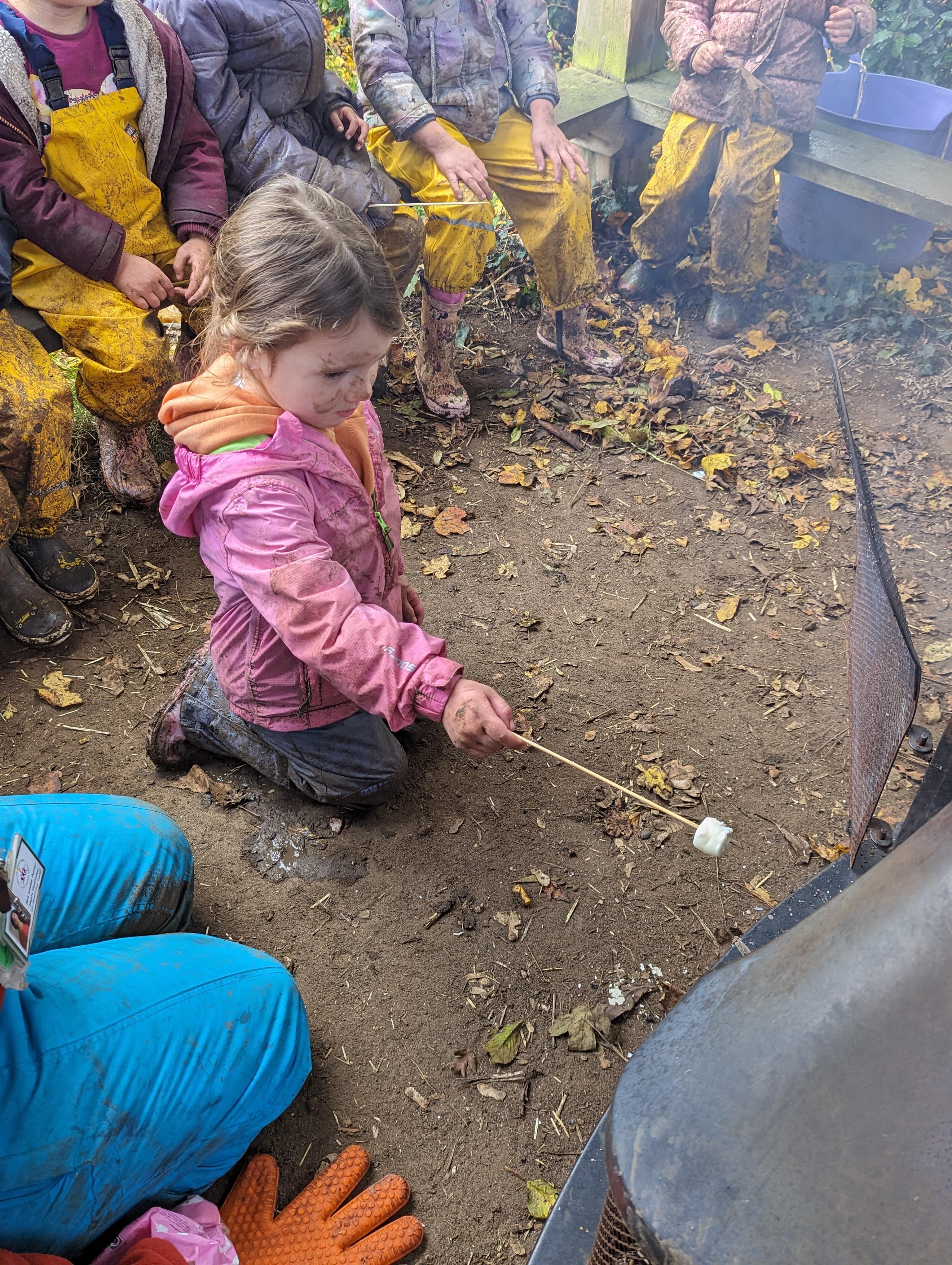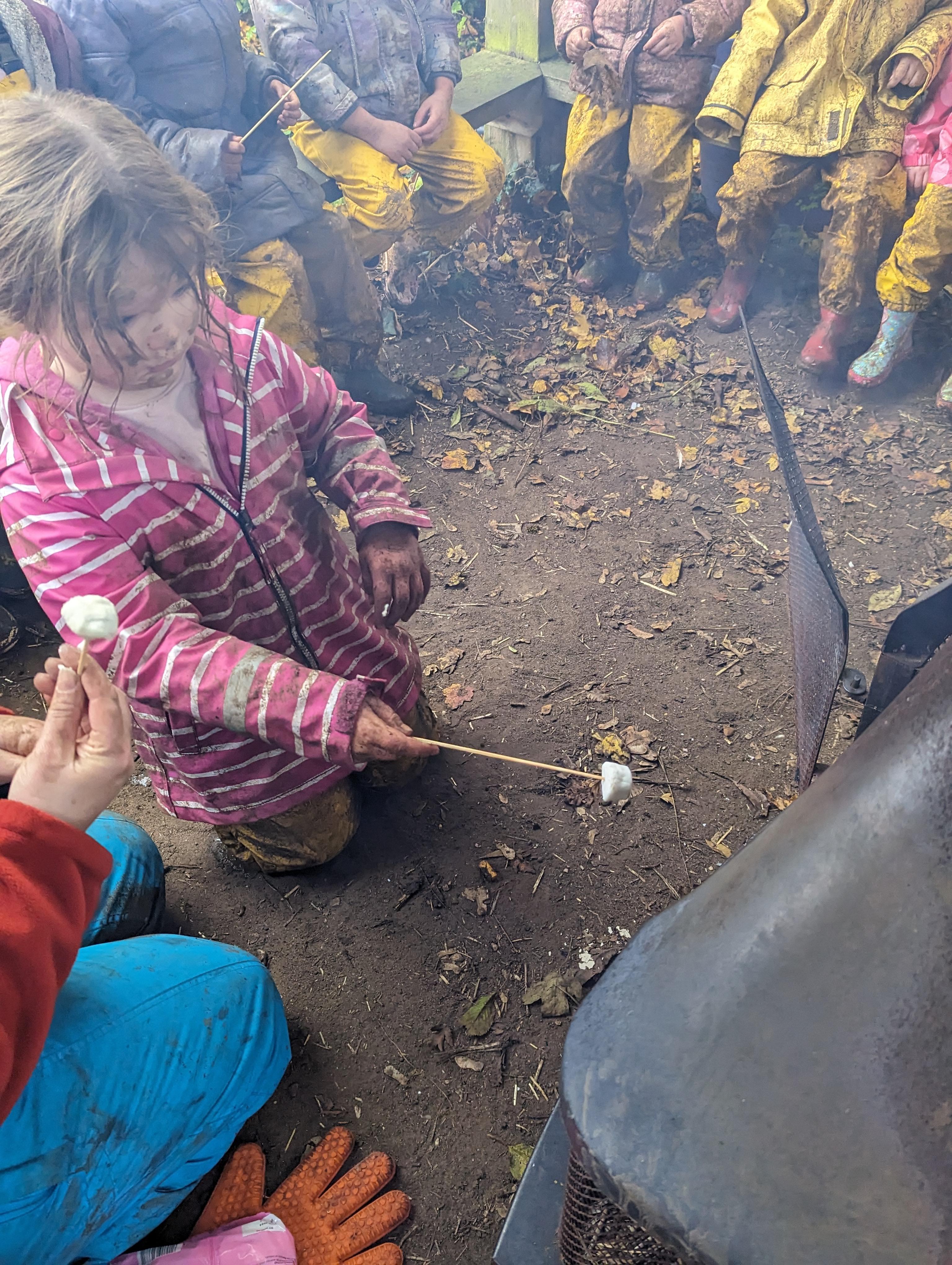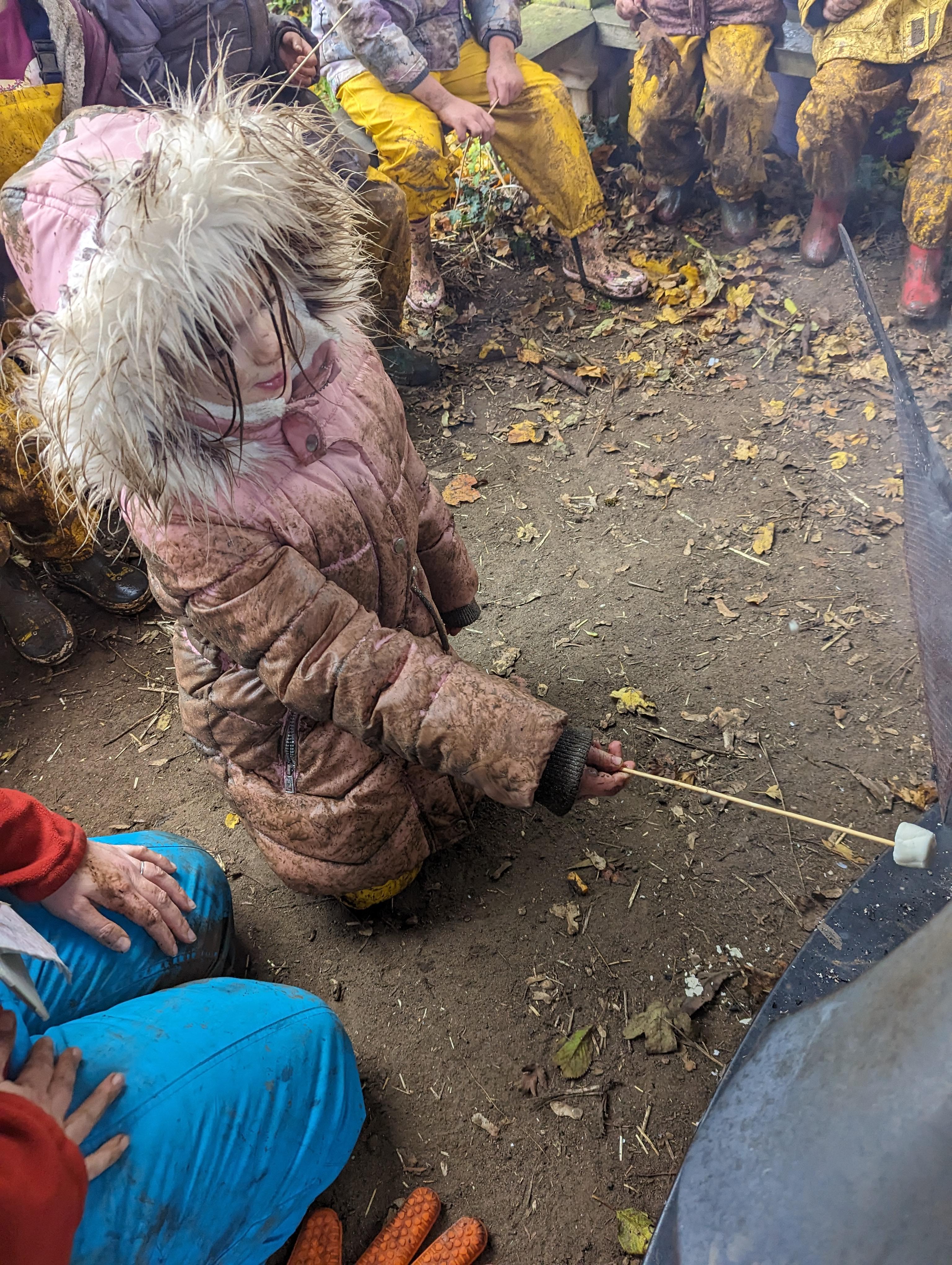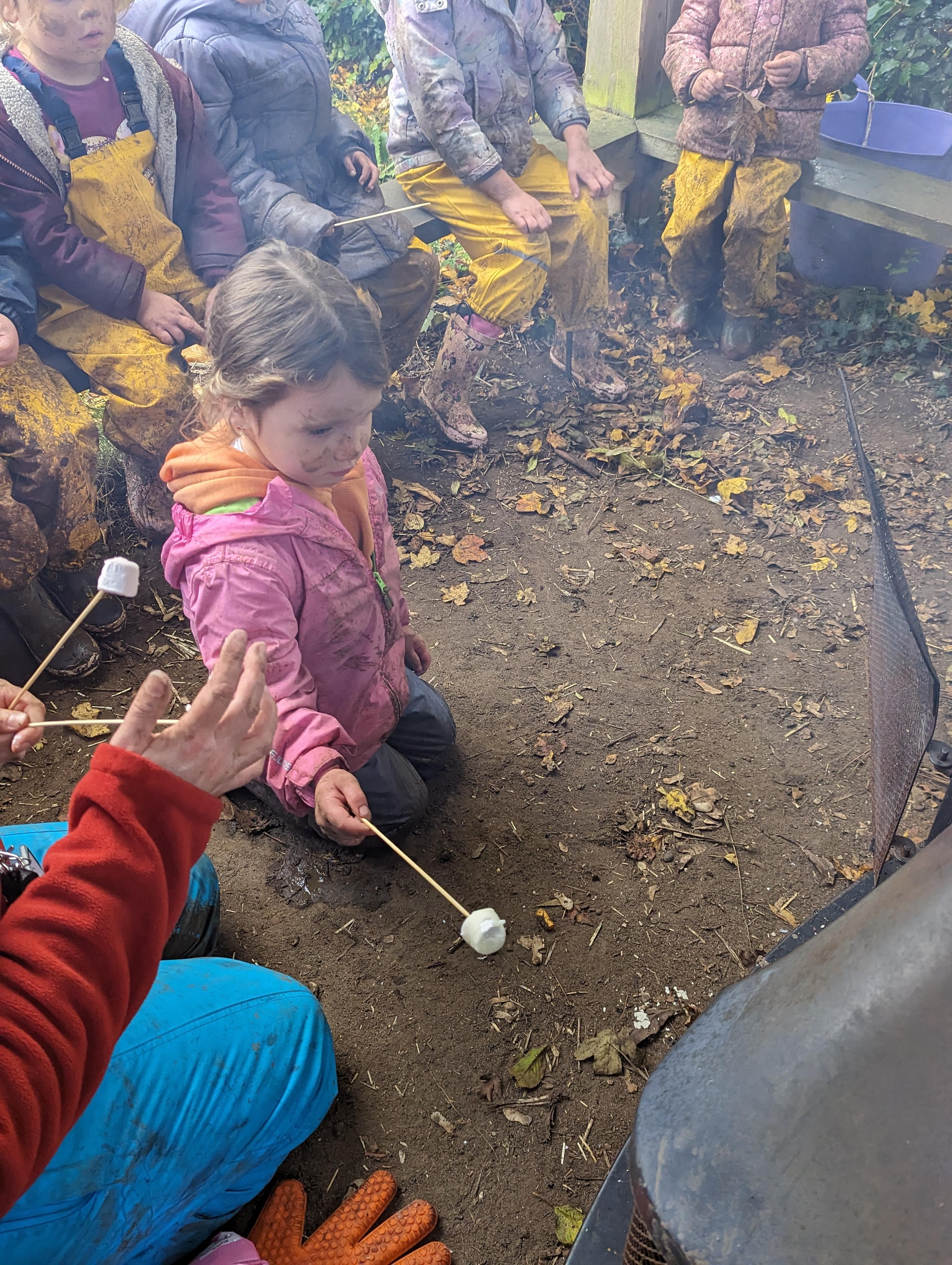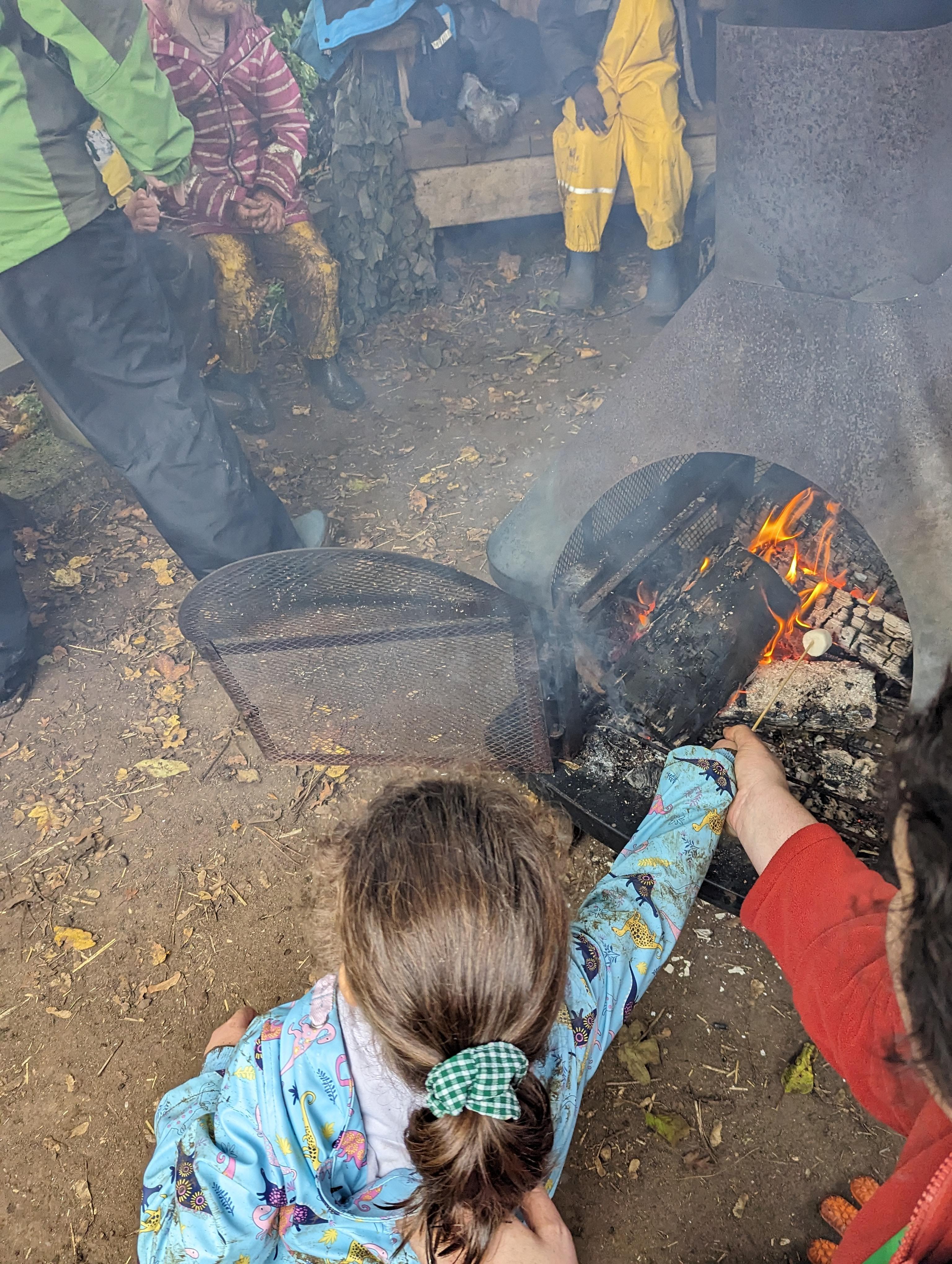 It was a crispy morning and a few of us got too cold but lots of us toasted marshmallows and explored the new dumper trucks . . .