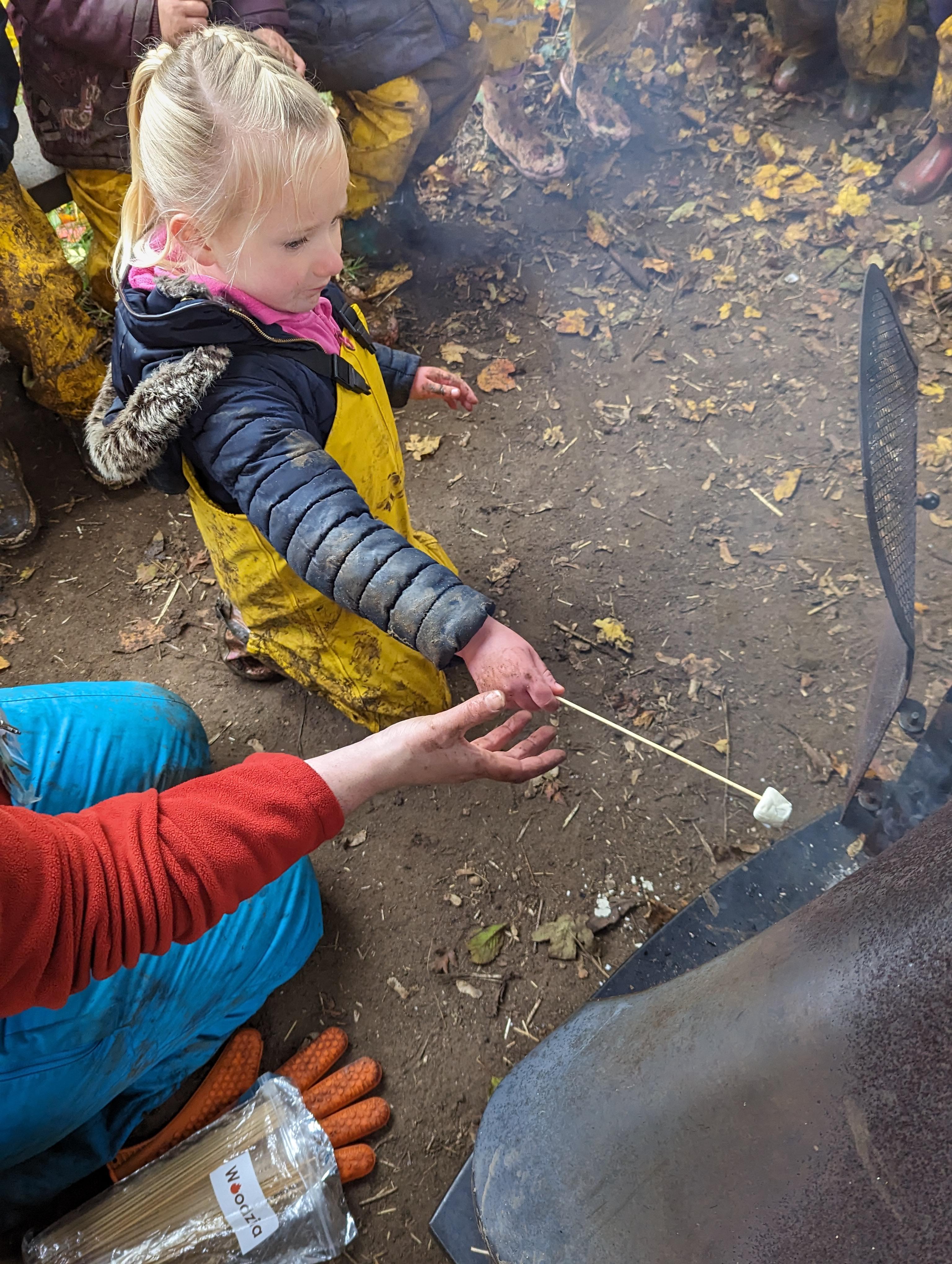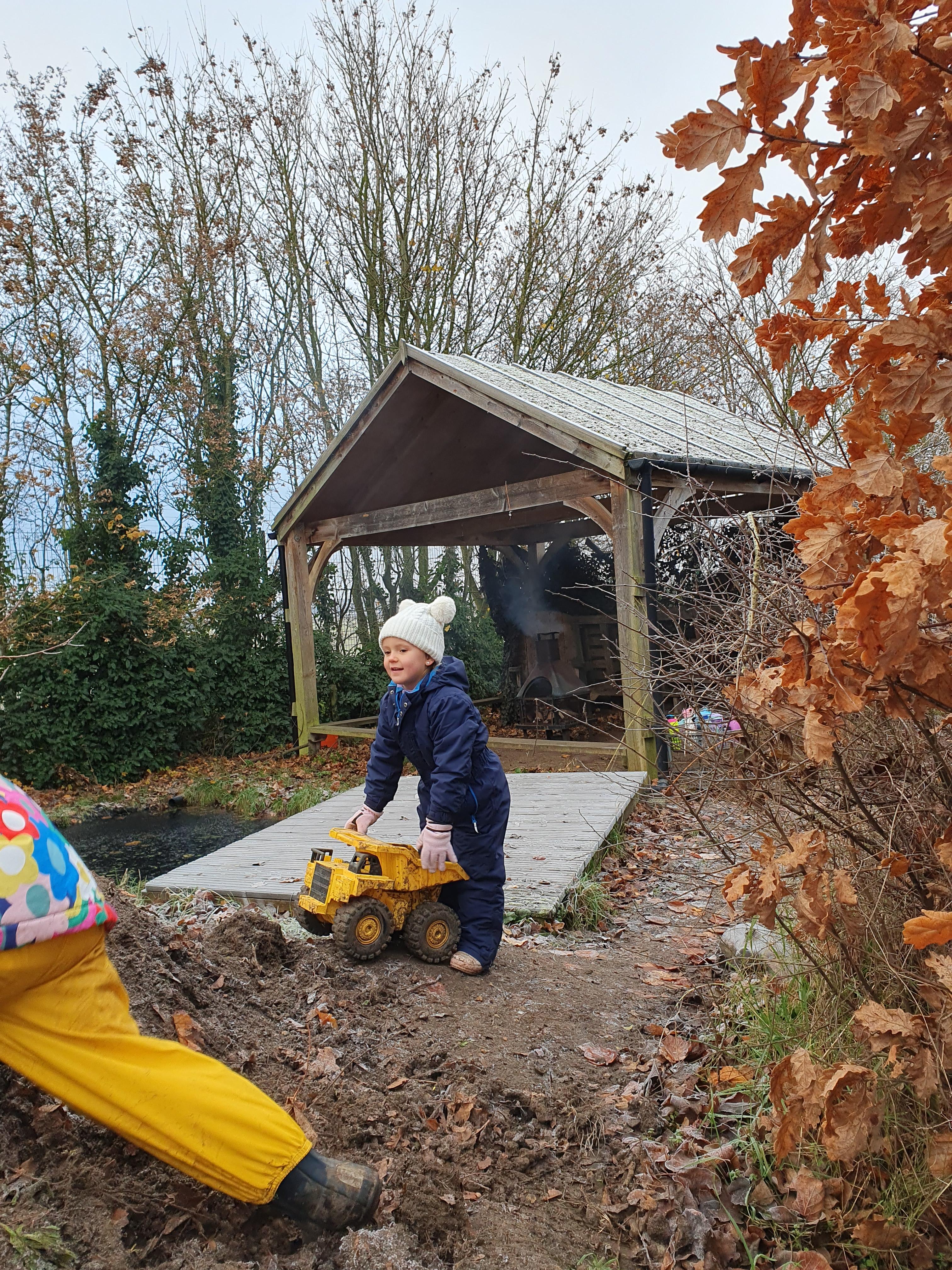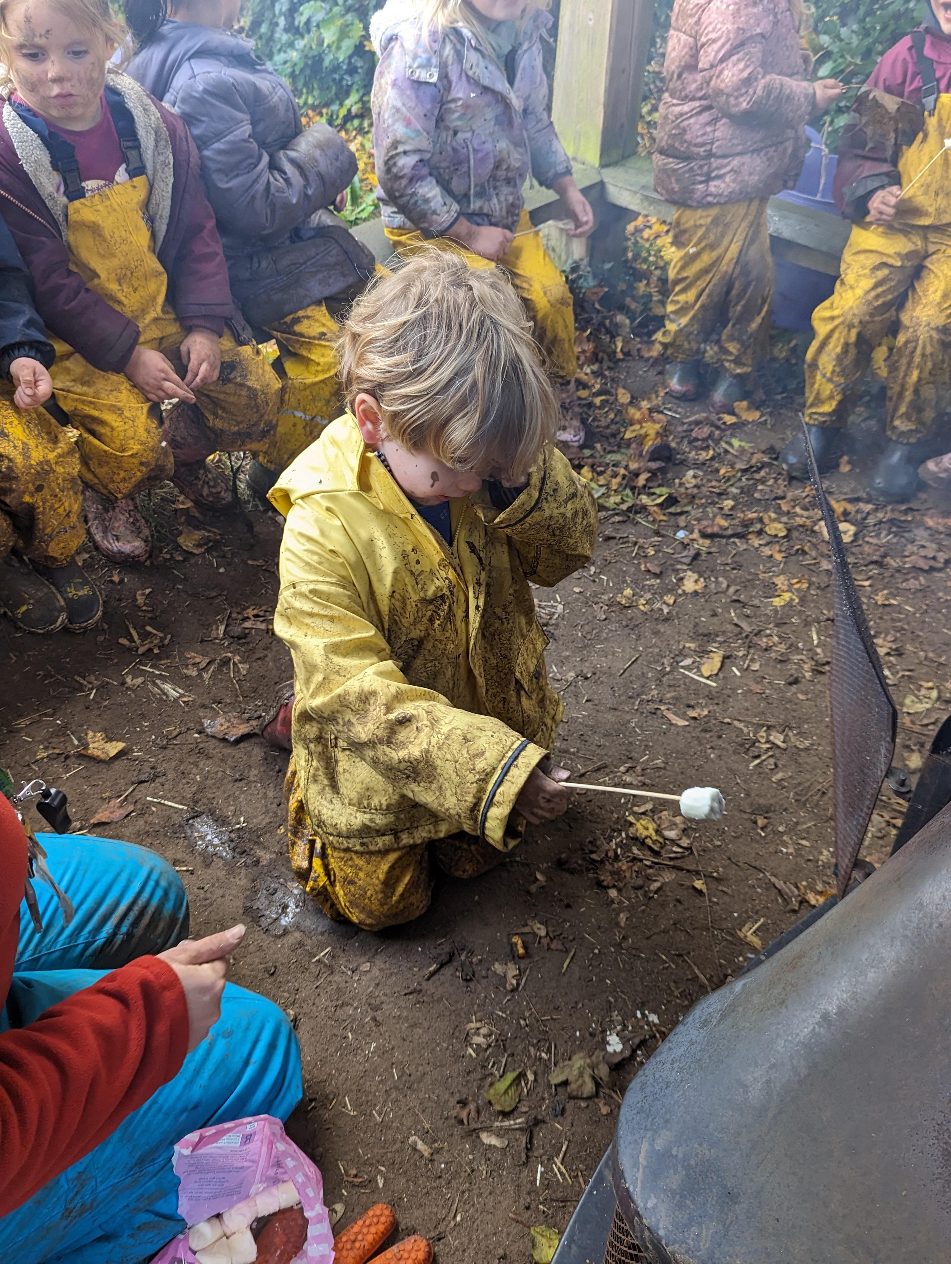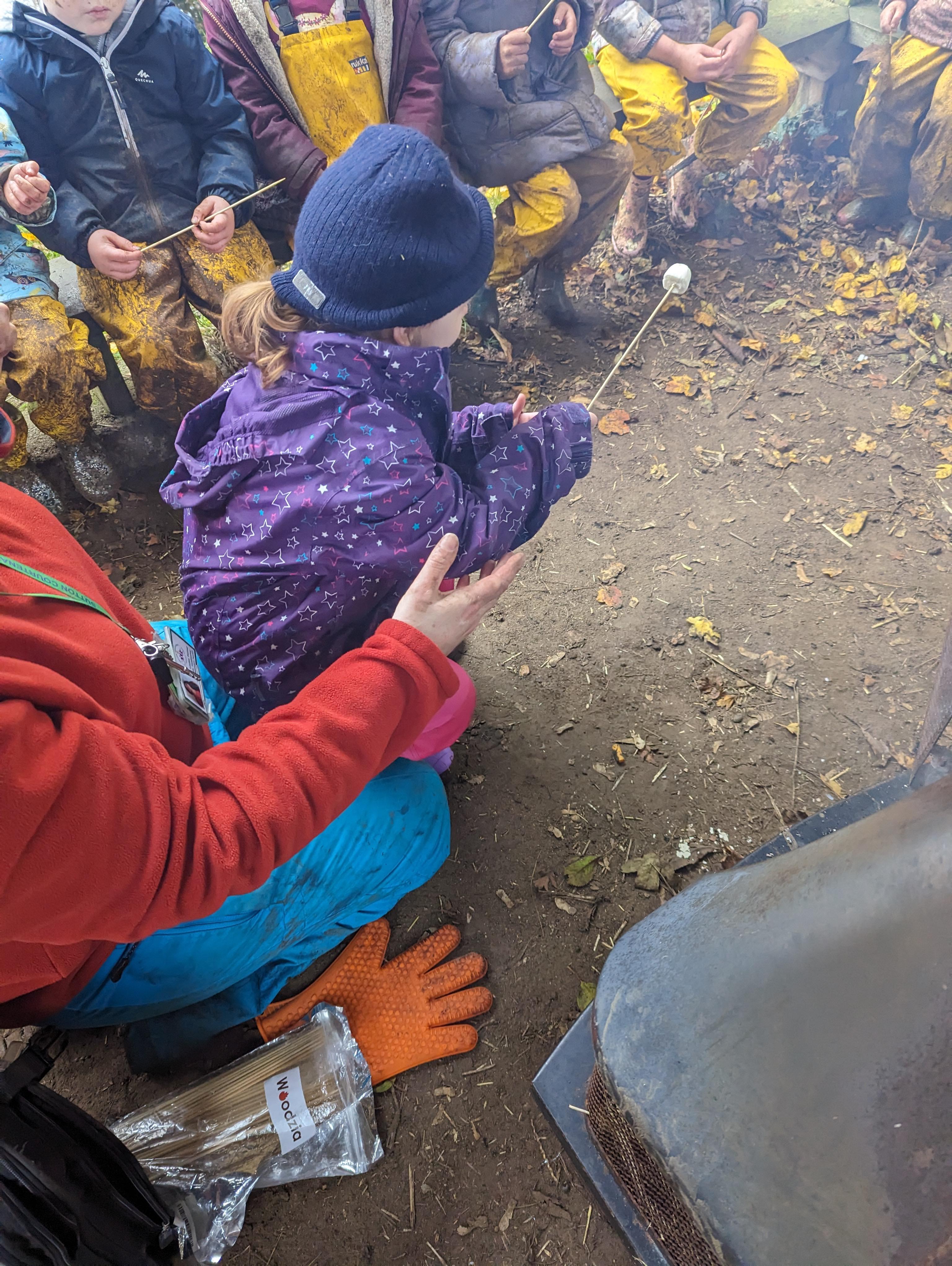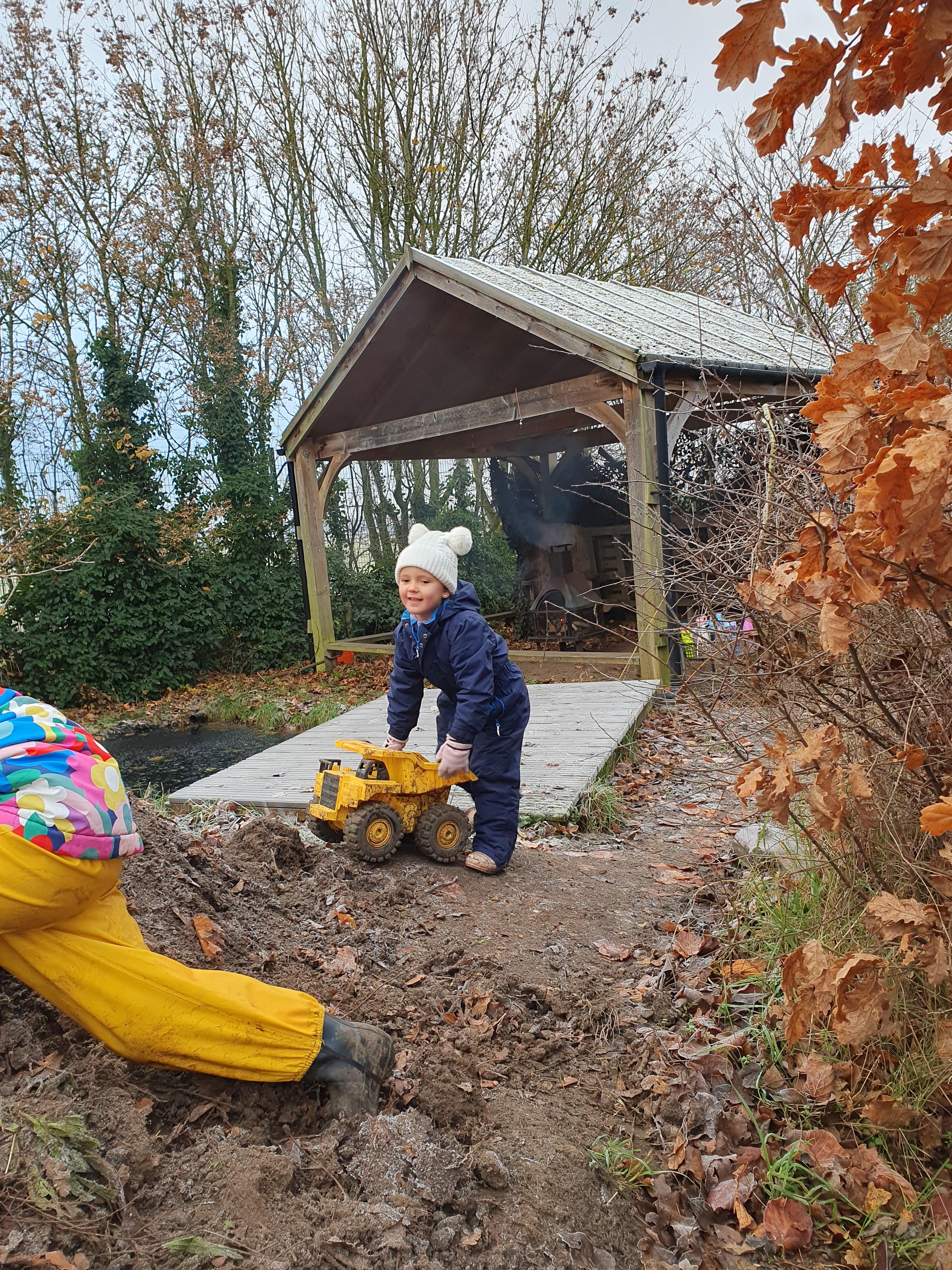 It was a crispy morning and a few of us got too cold but lots of us toasted marshmallows and explored the new dumper trucks . . .