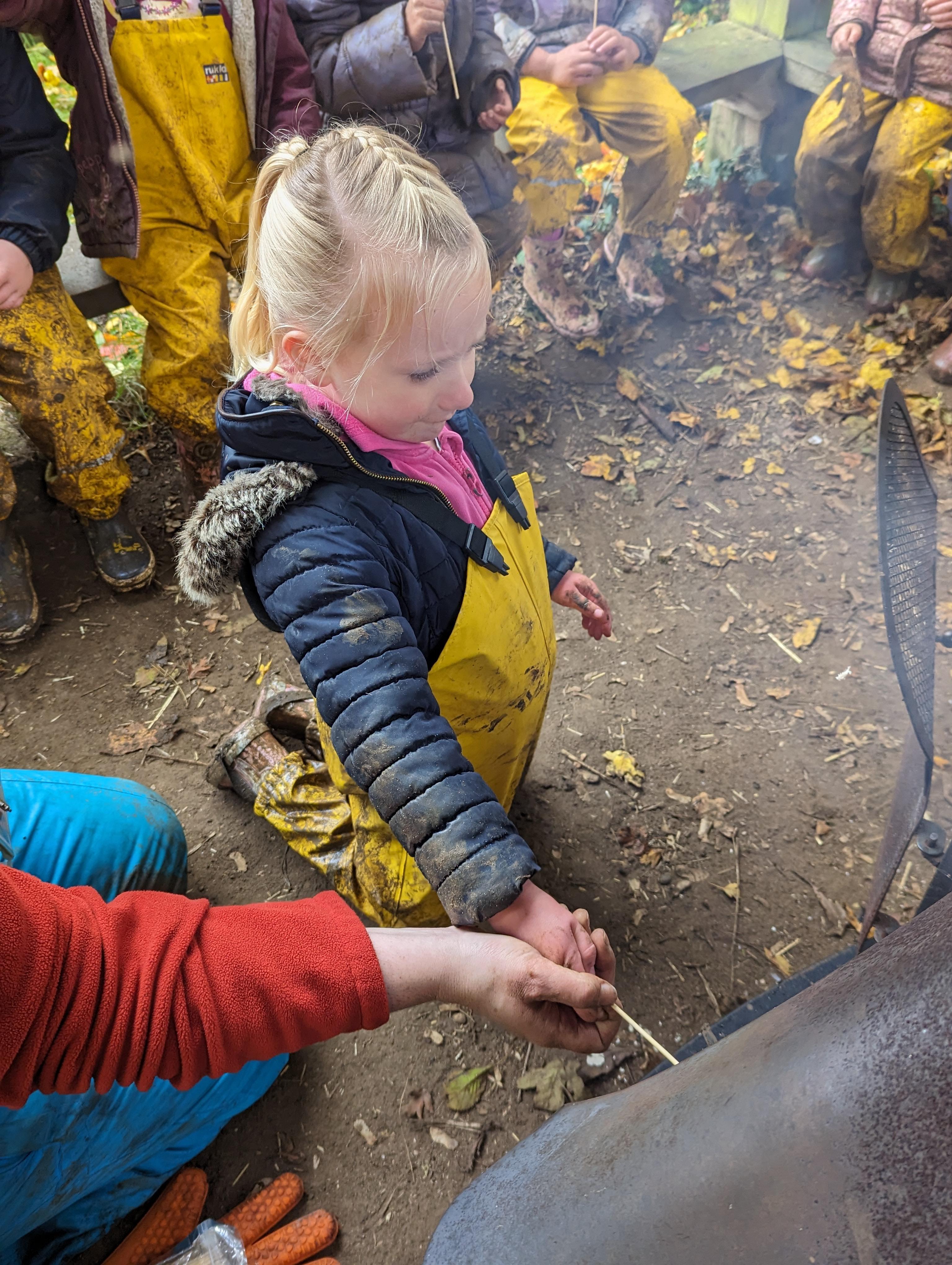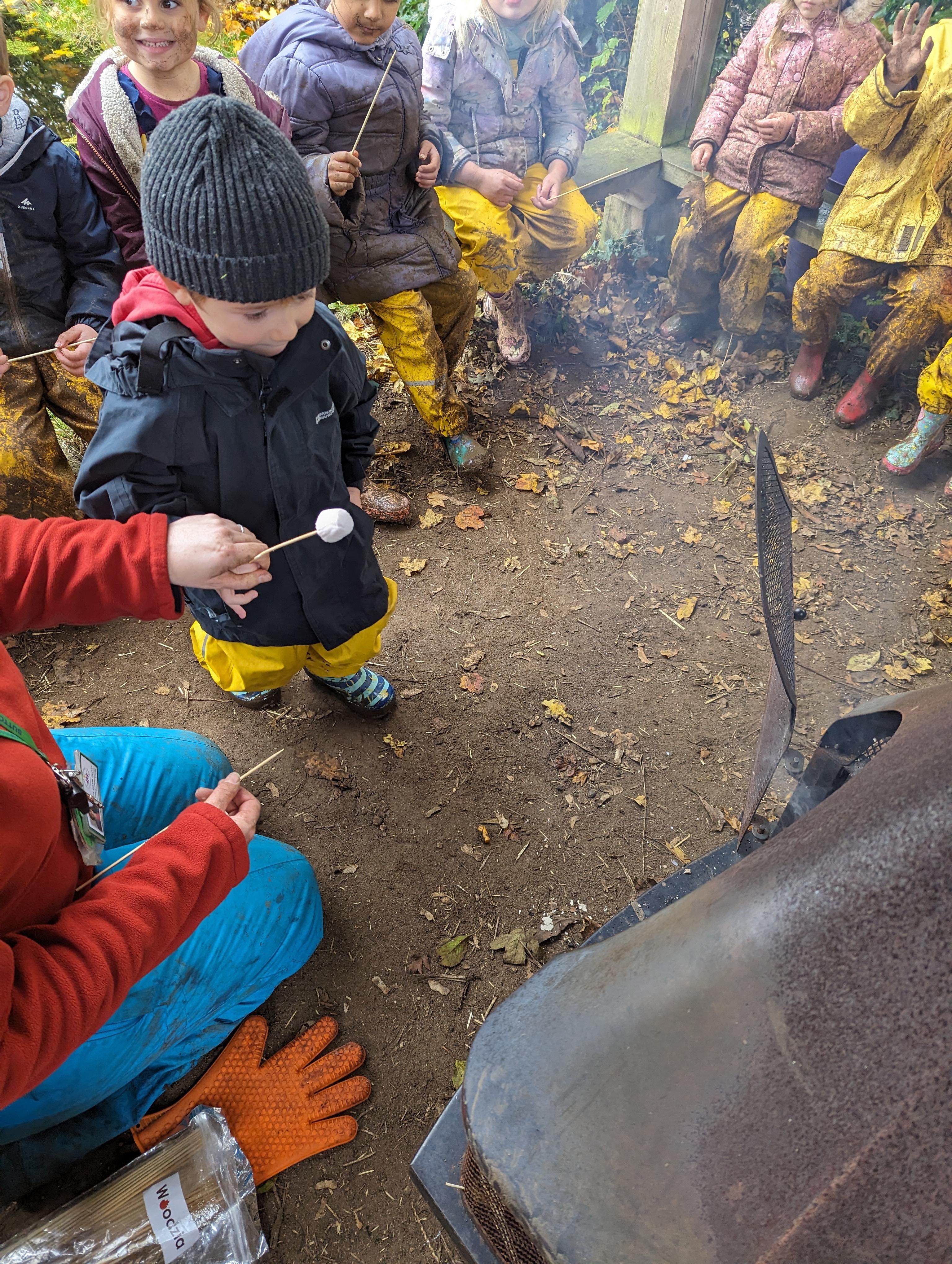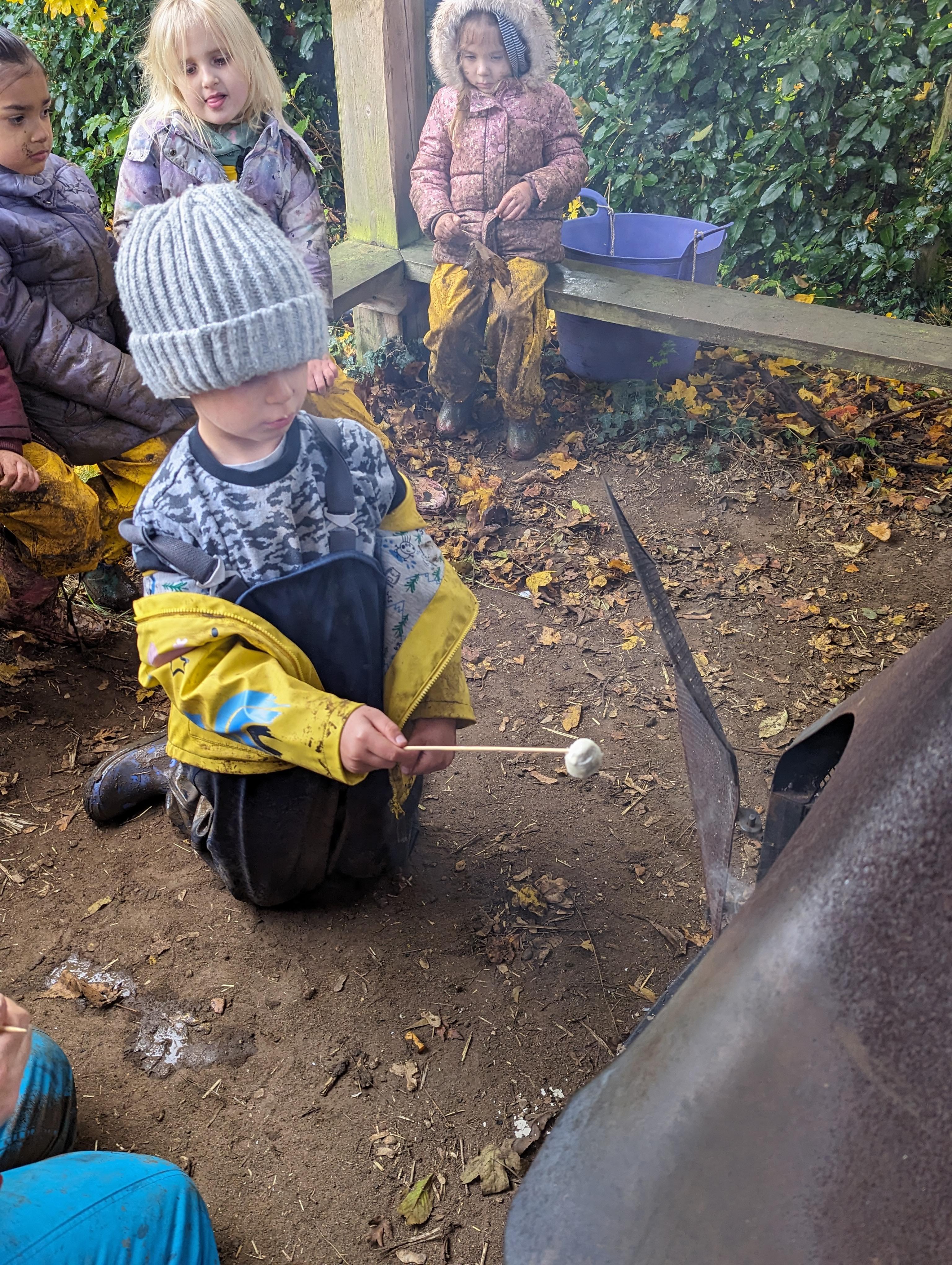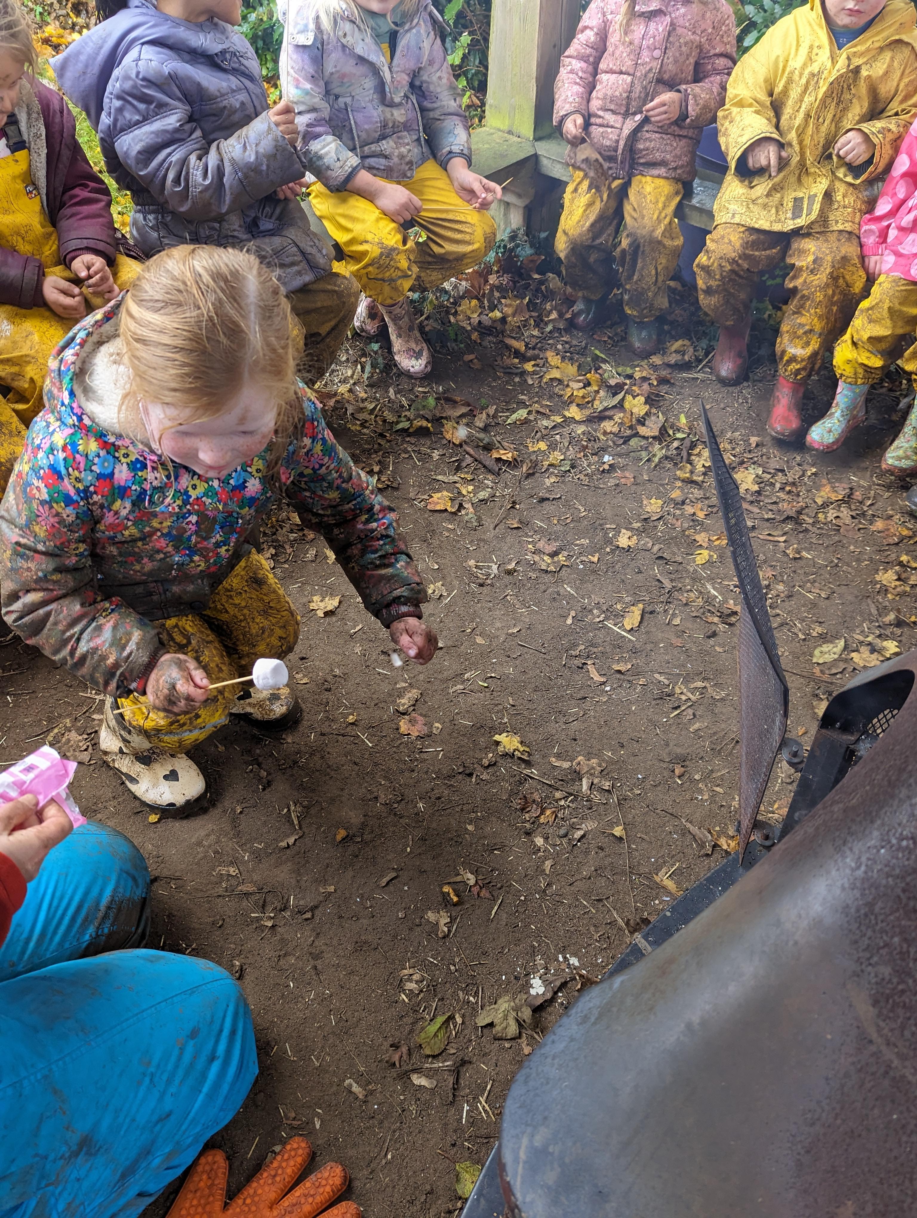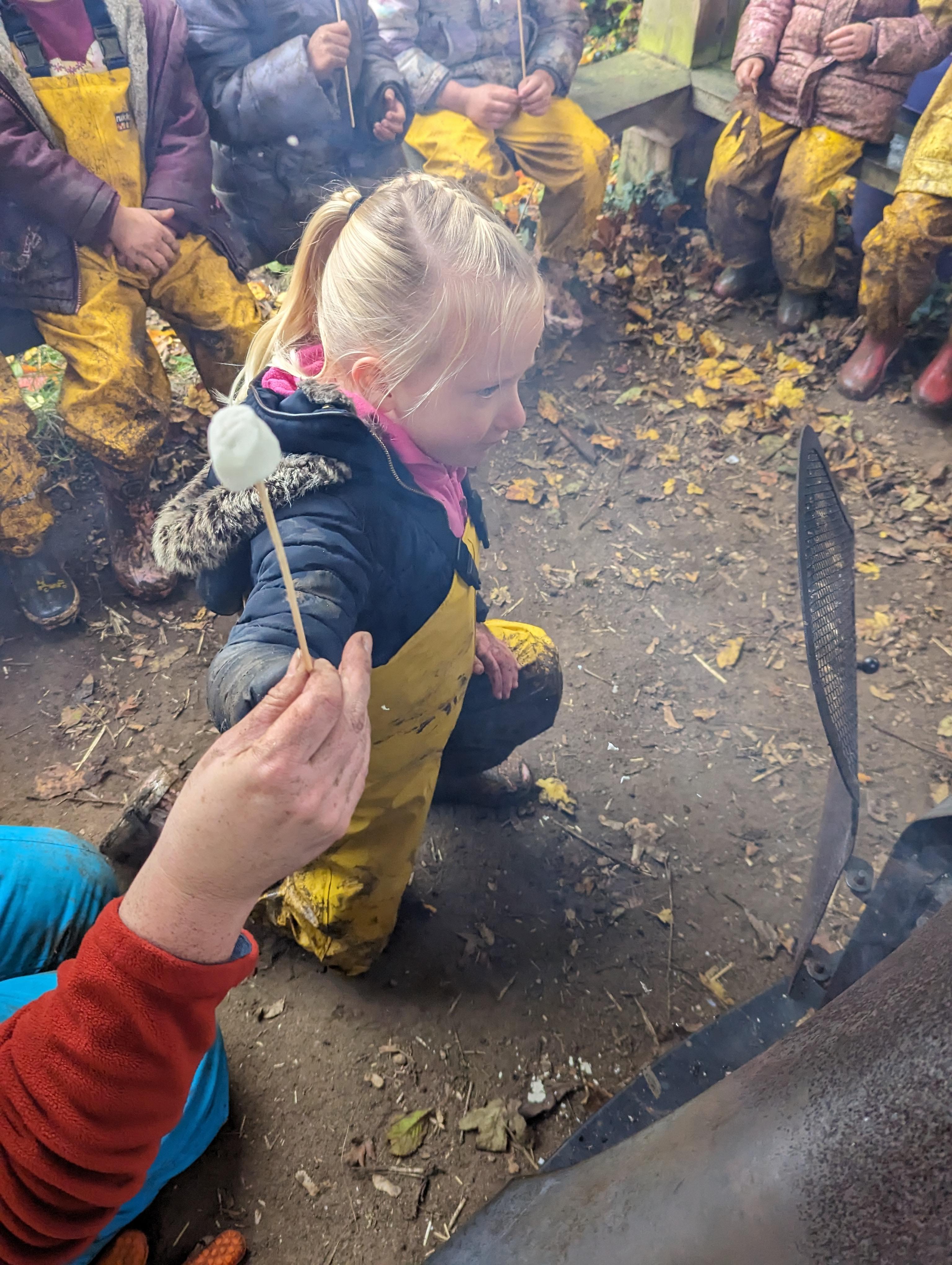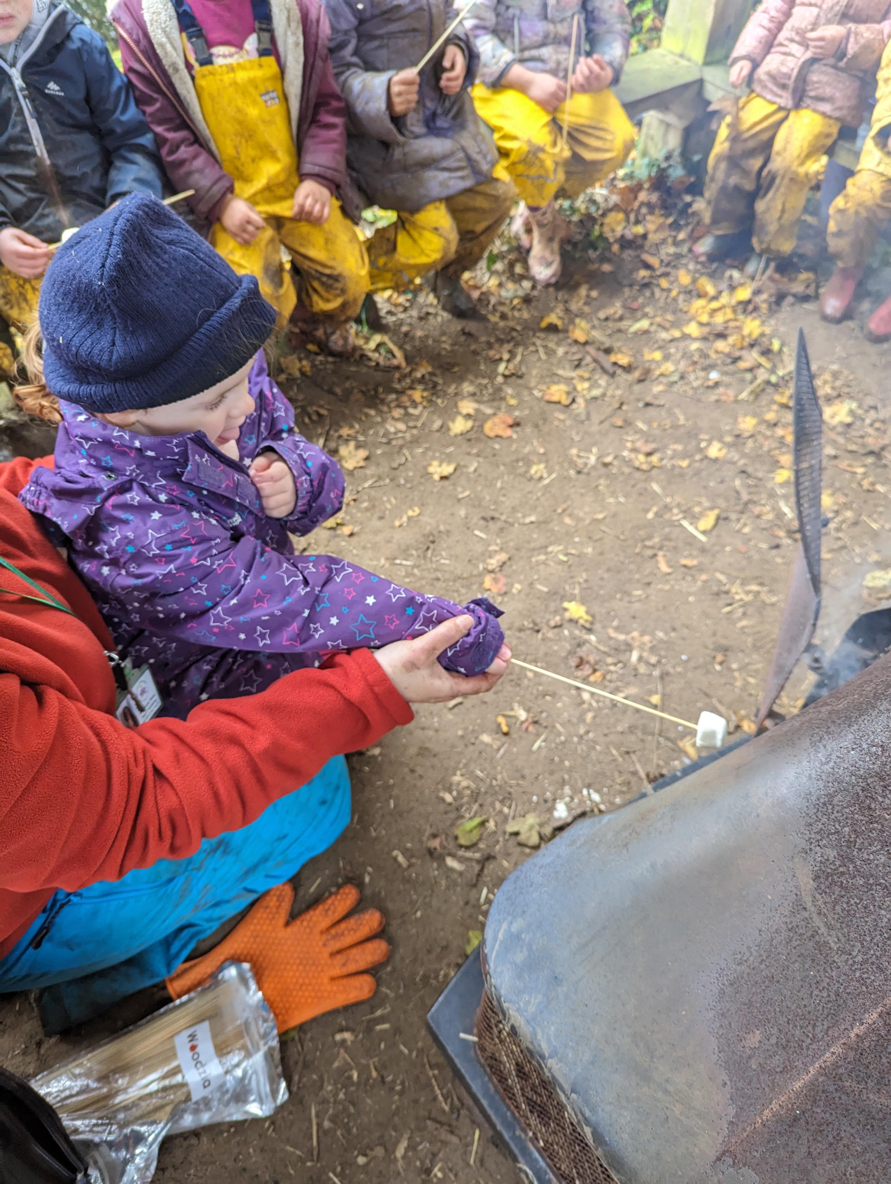 It was a crispy morning and a few of us got too cold but lots of us toasted marshmallows and explored the new dumper trucks . . .