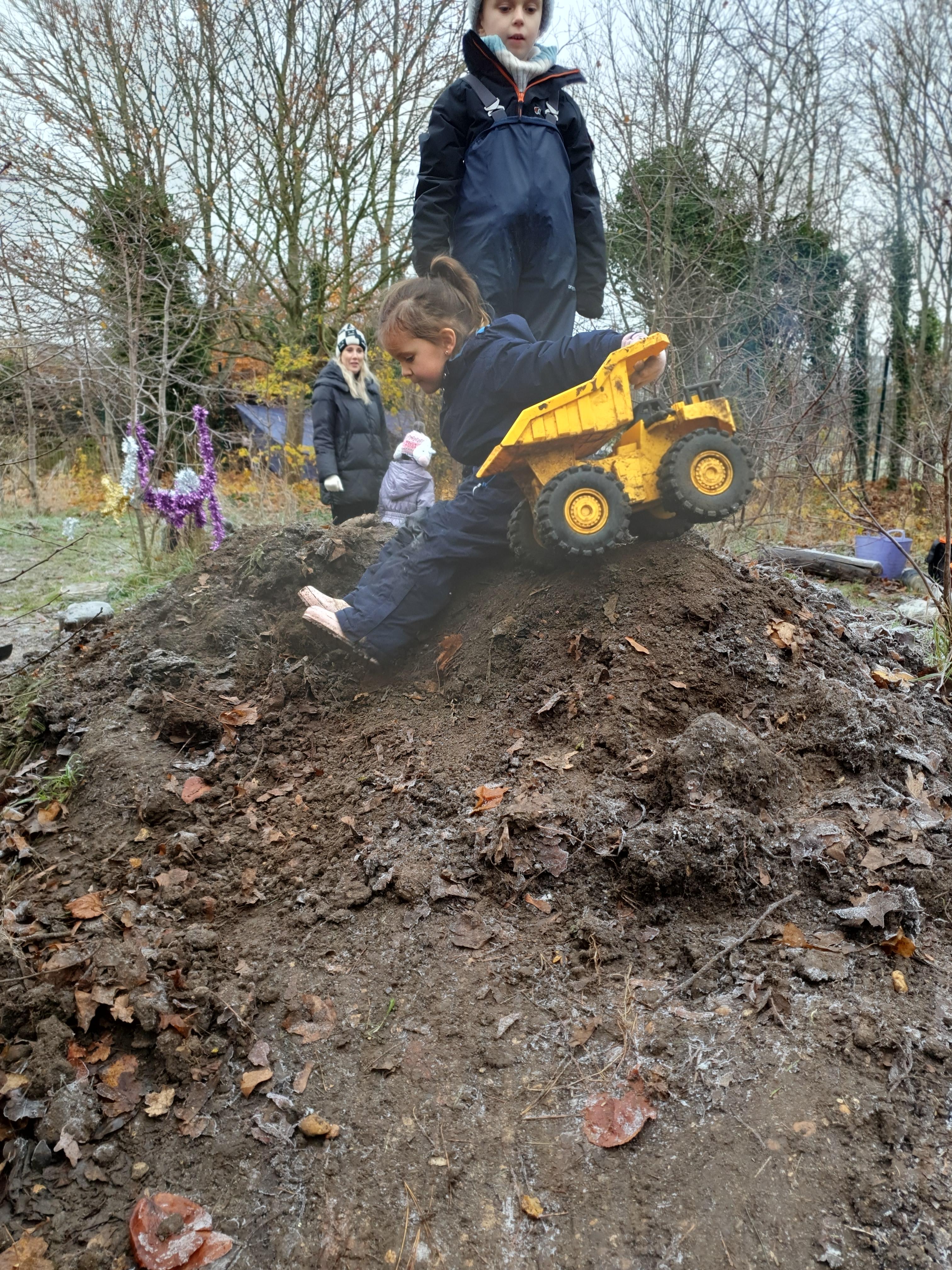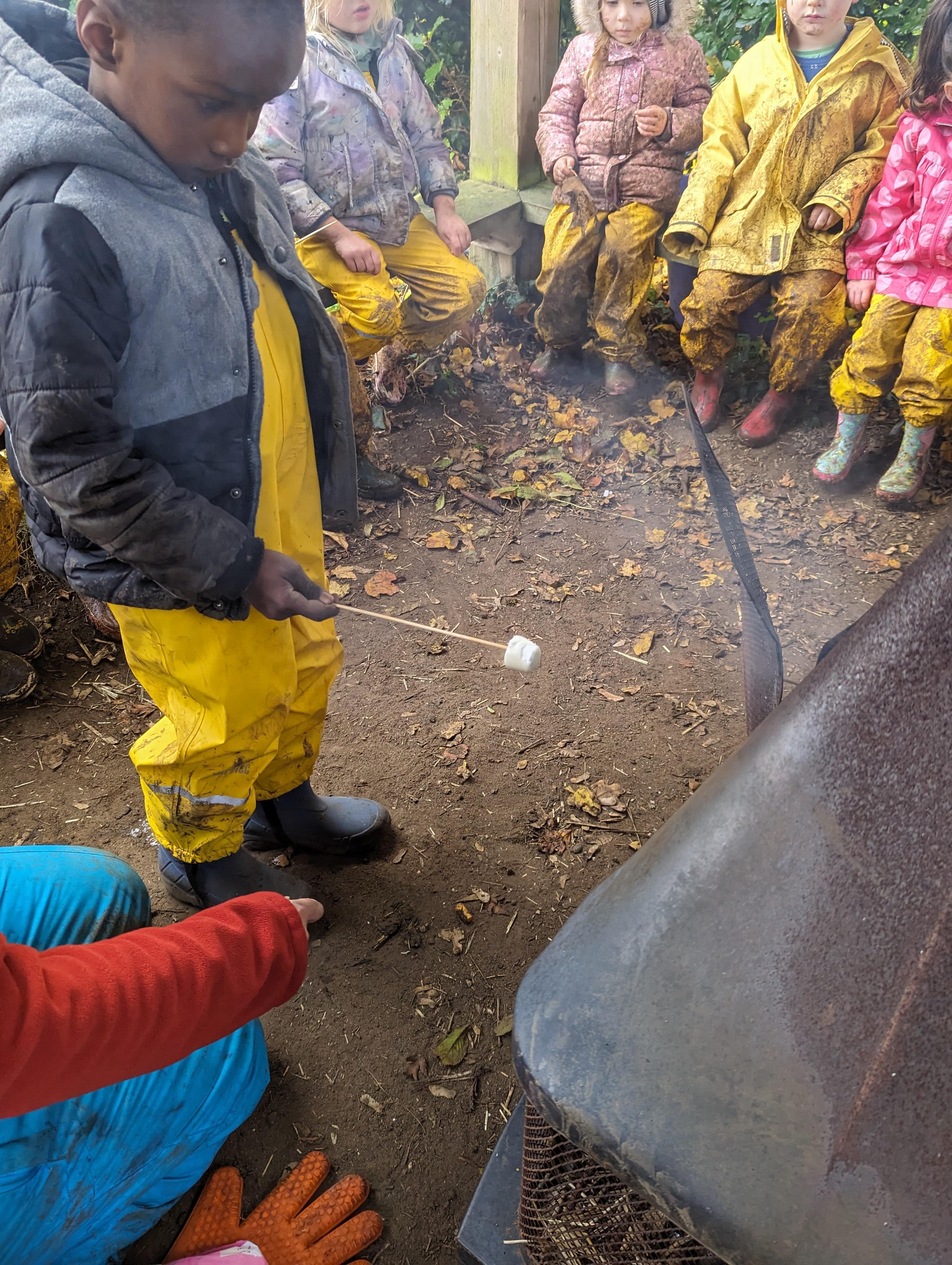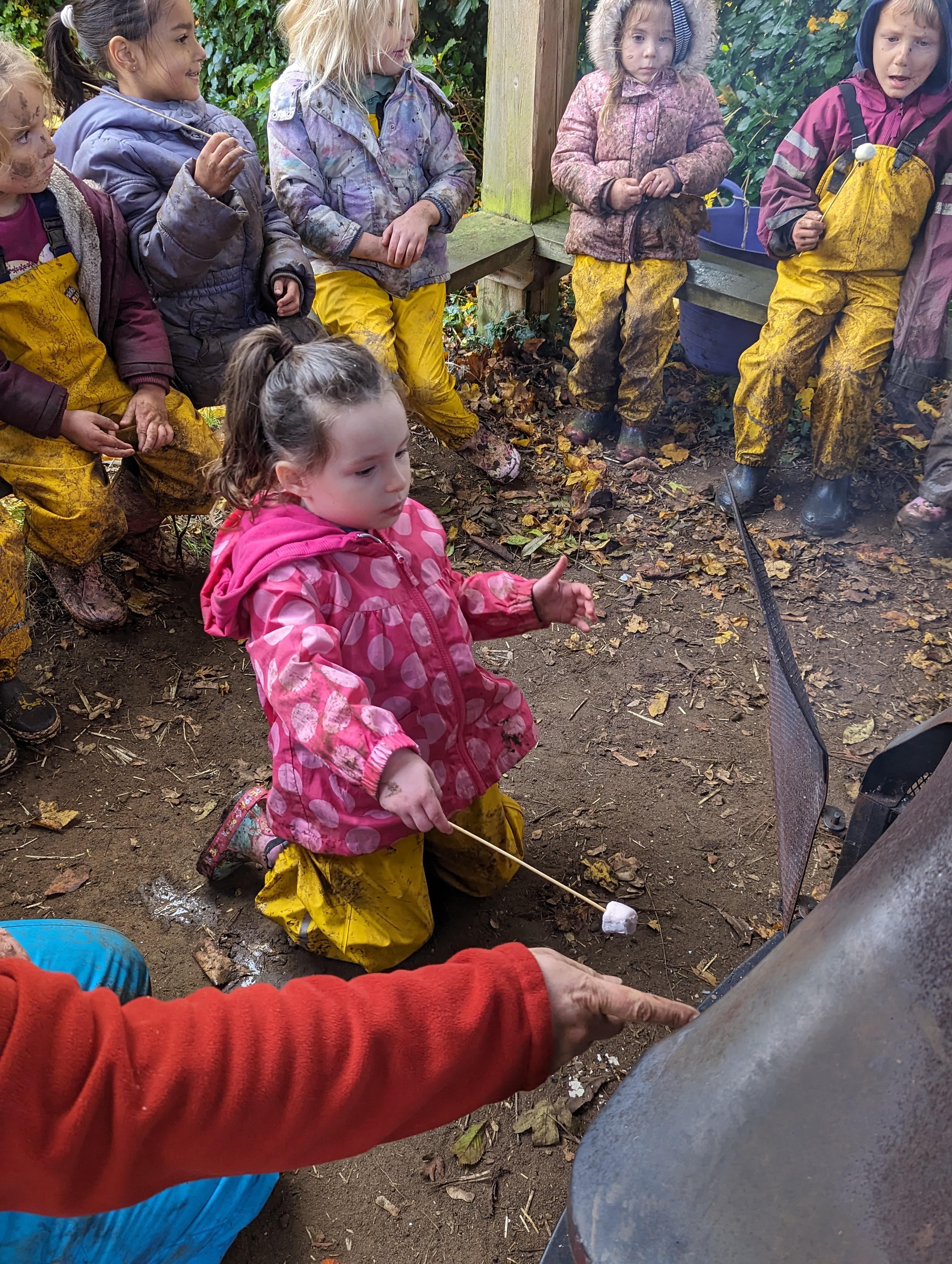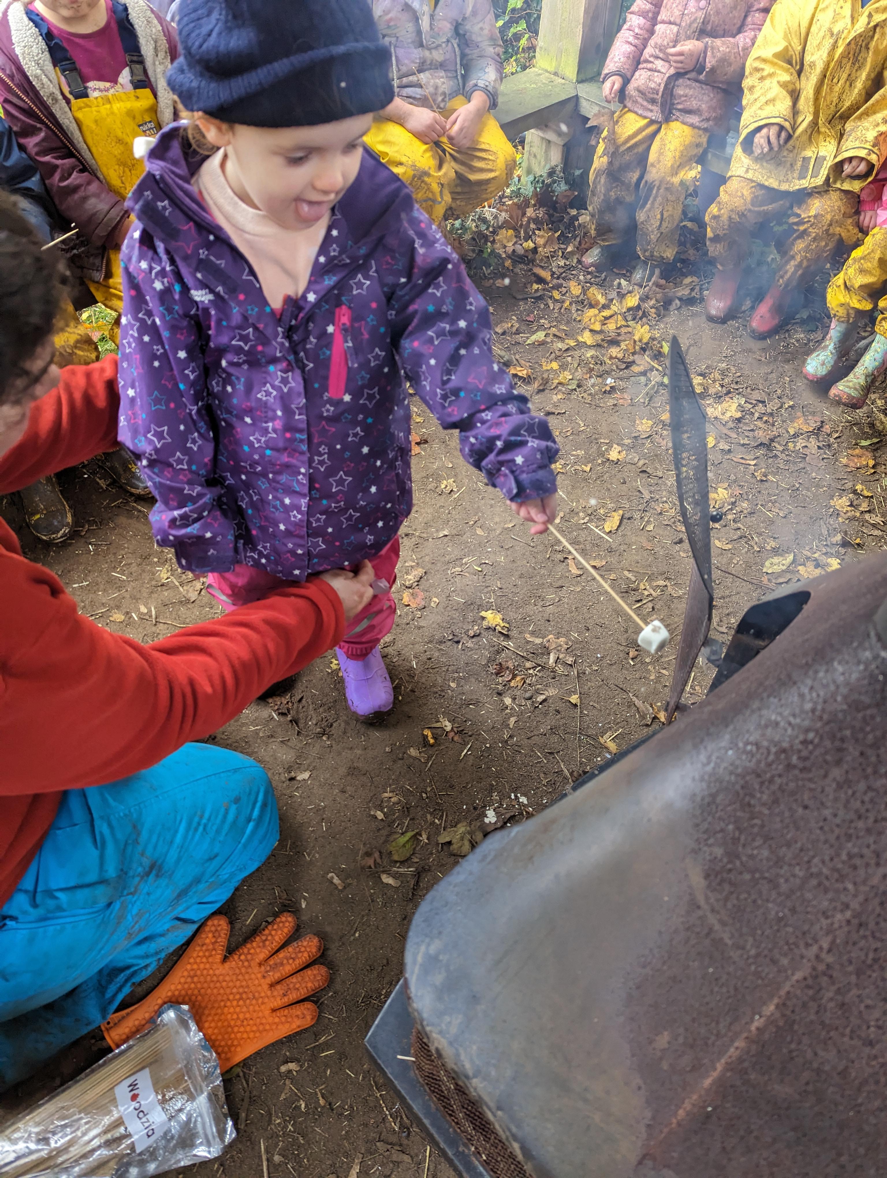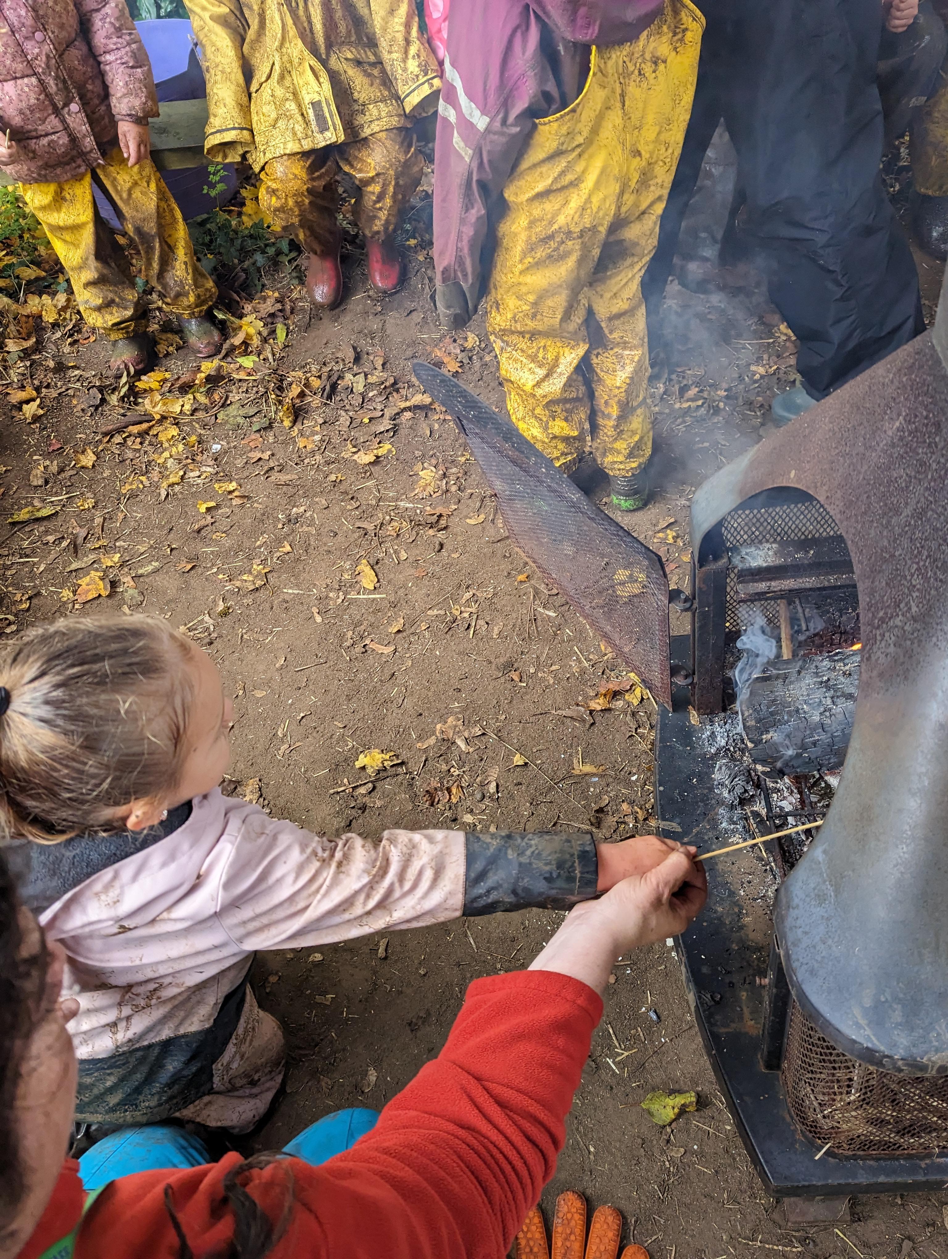 It was a crispy morning and a few of us got too cold but lots of us toasted marshmallows and explored the new dumper trucks . . .