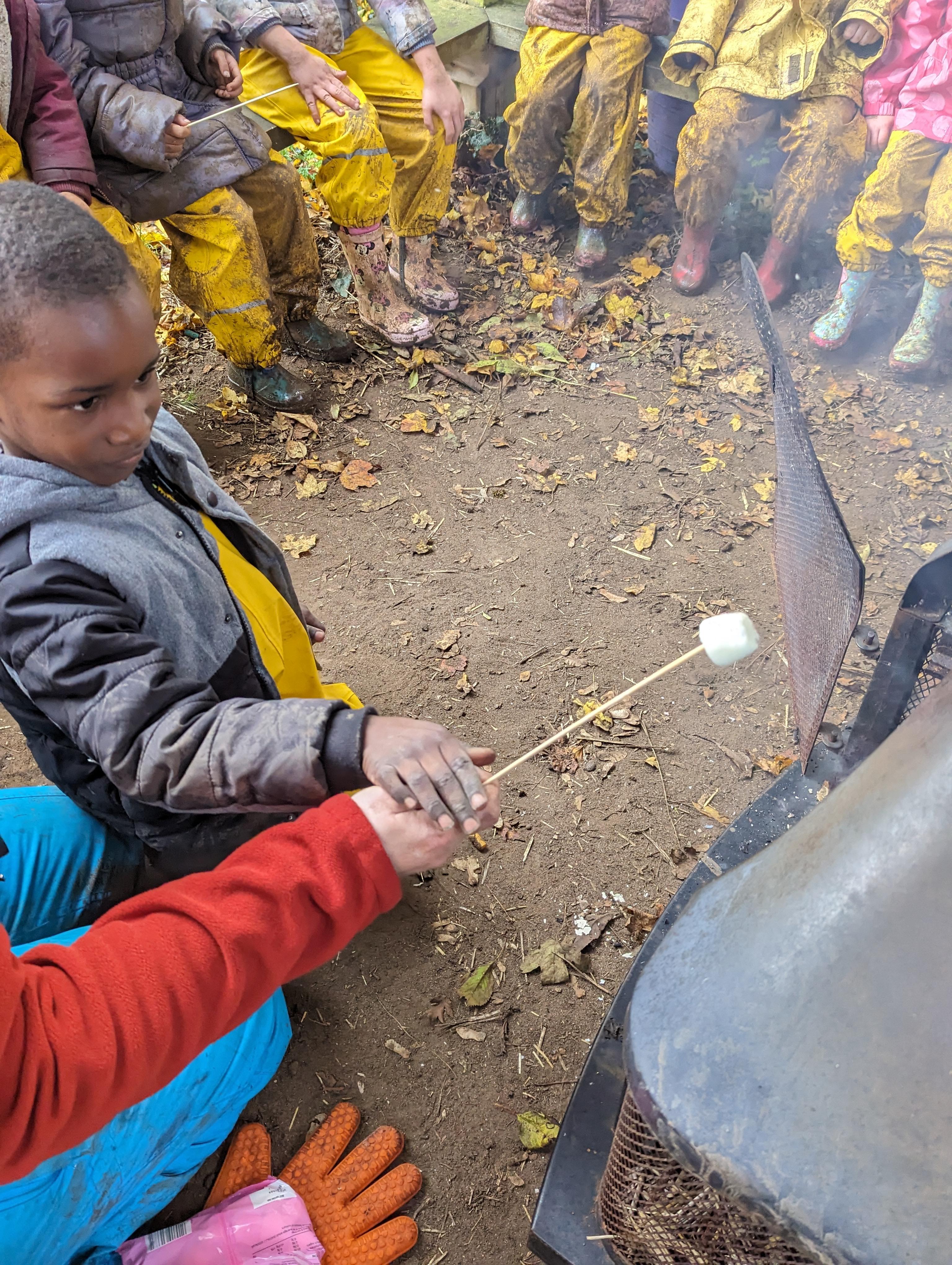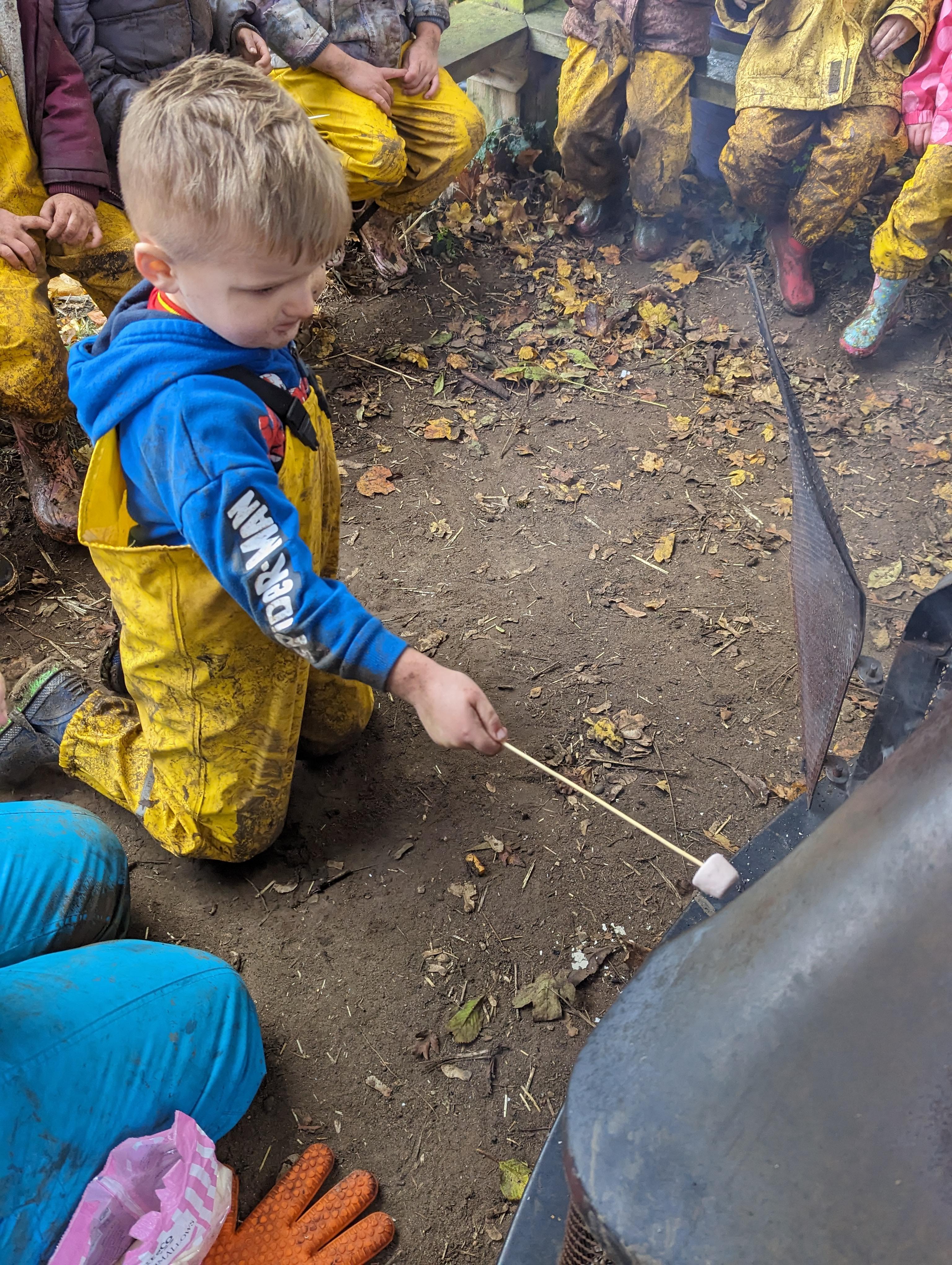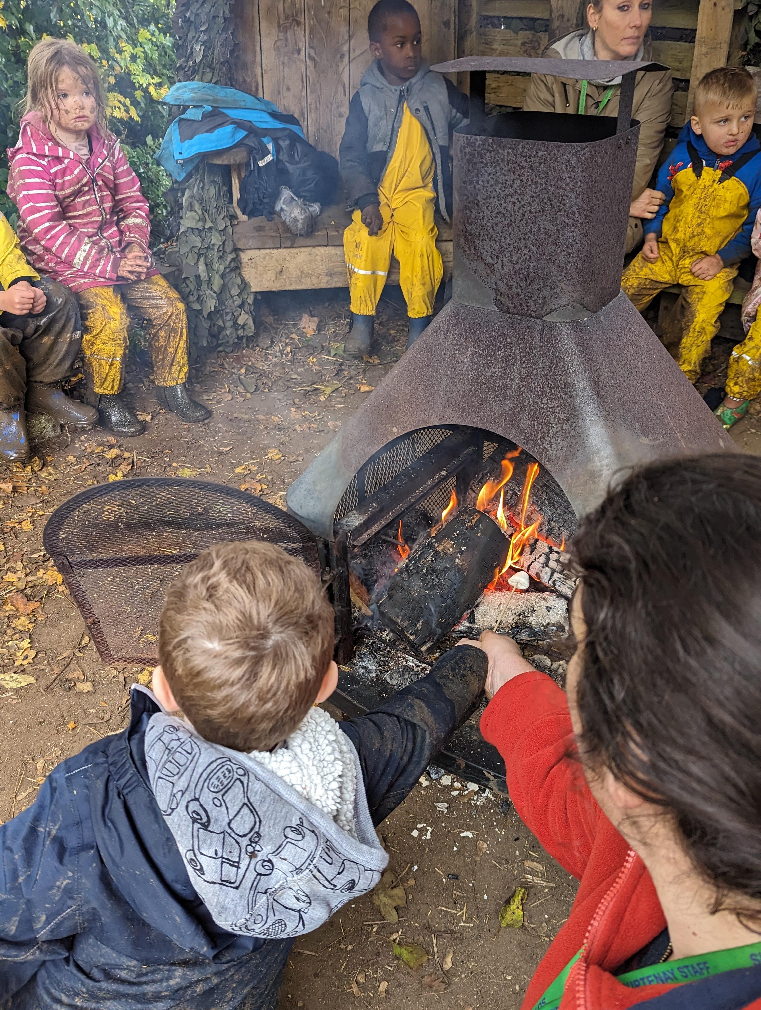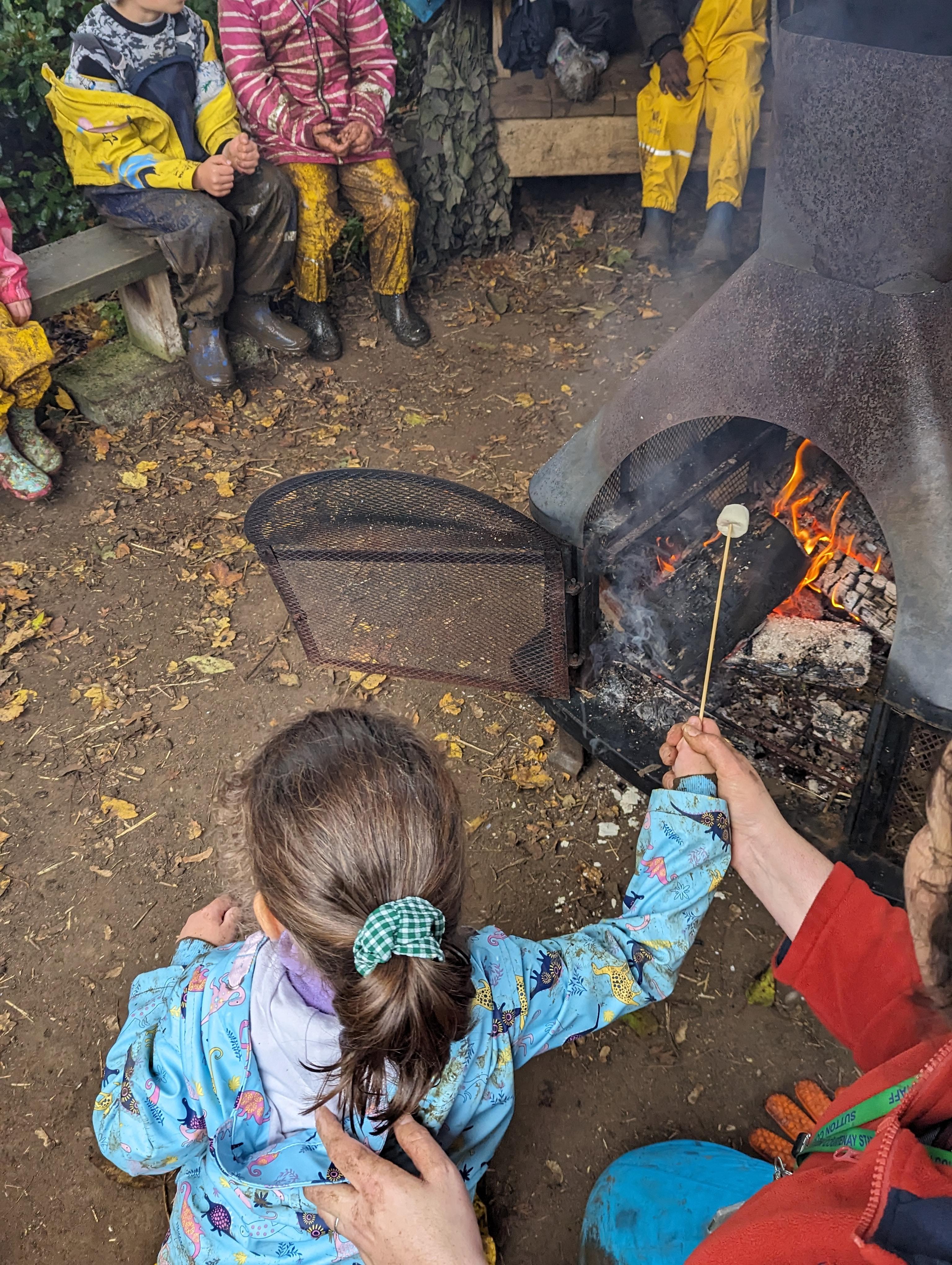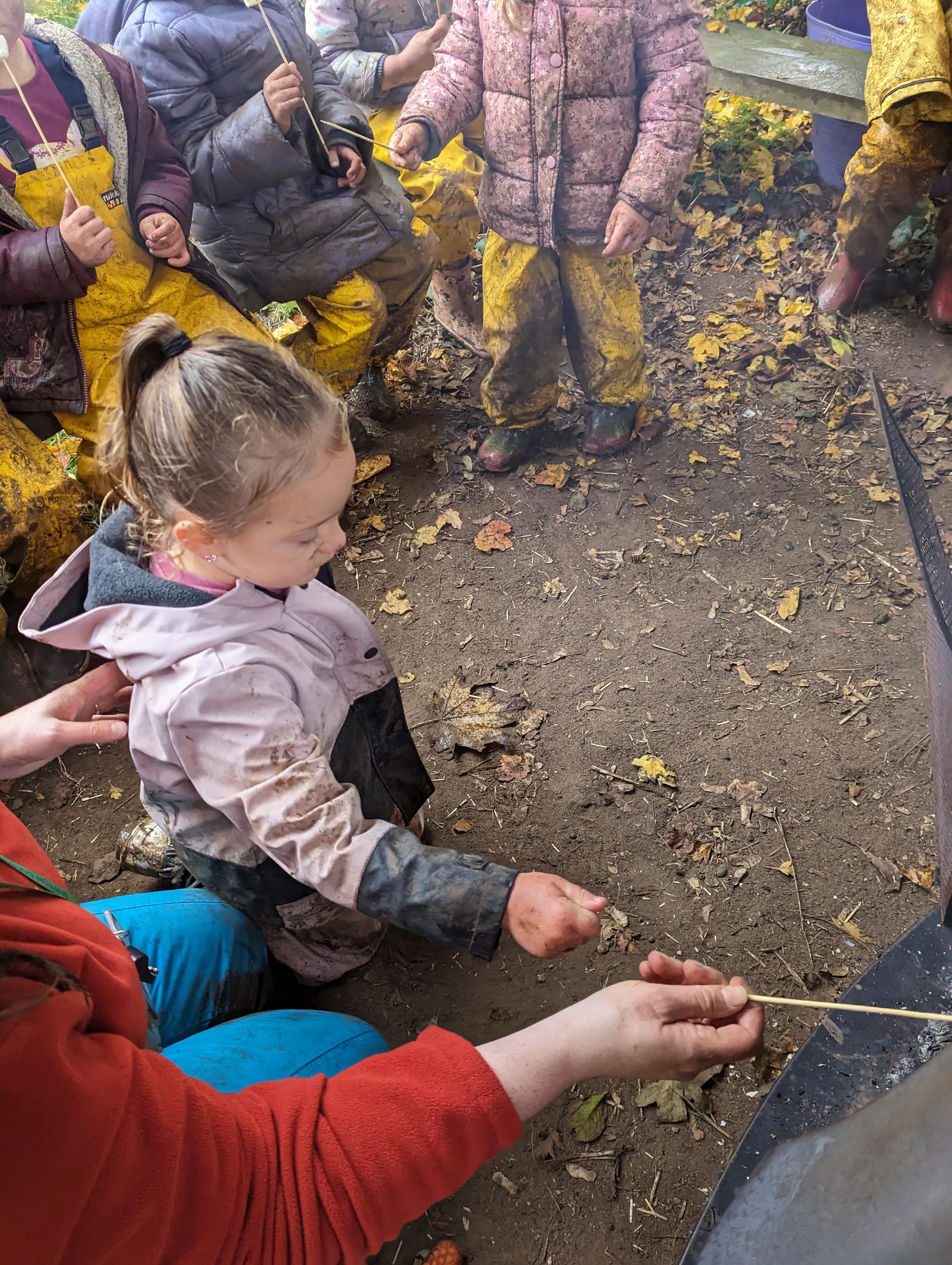 It was a crispy morning and a few of us got too cold but lots of us toasted marshmallows and explored the new dumper trucks . . .
