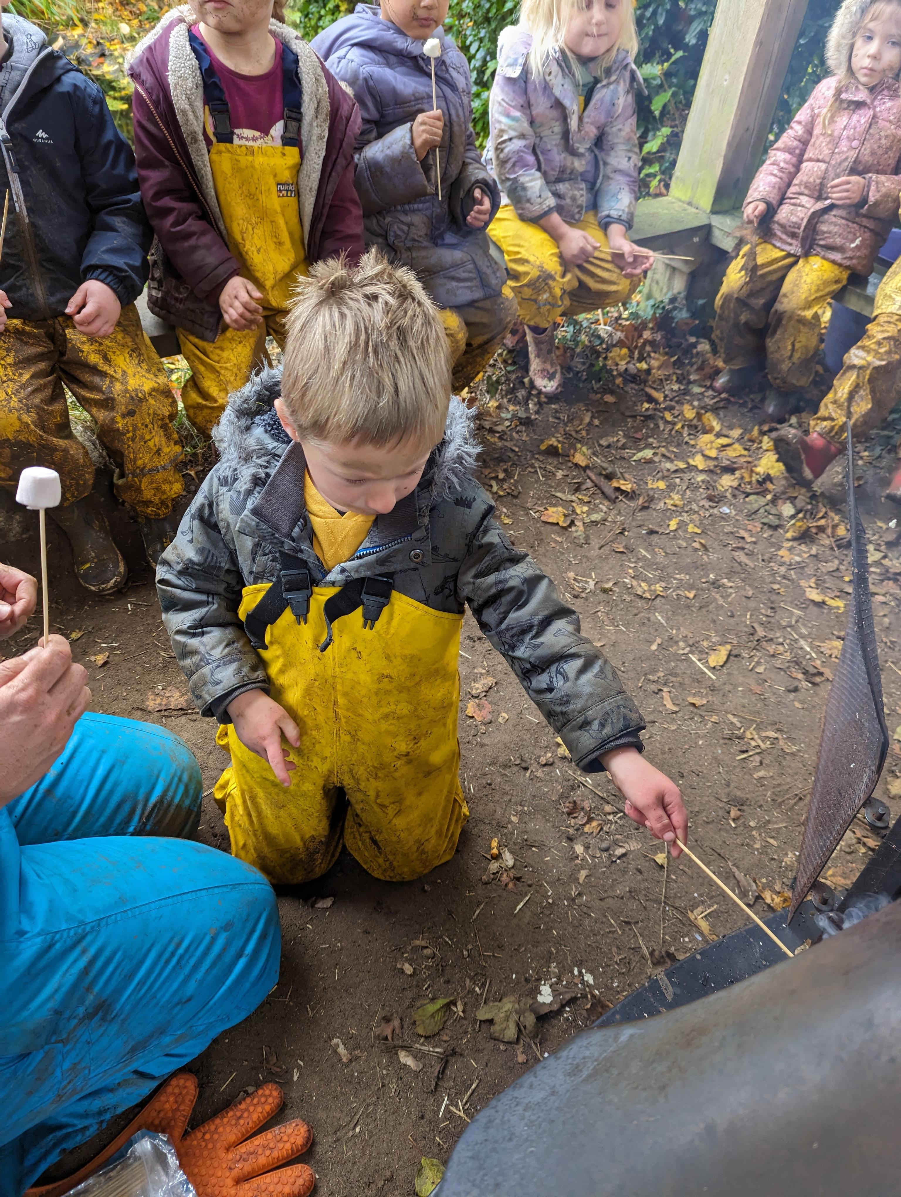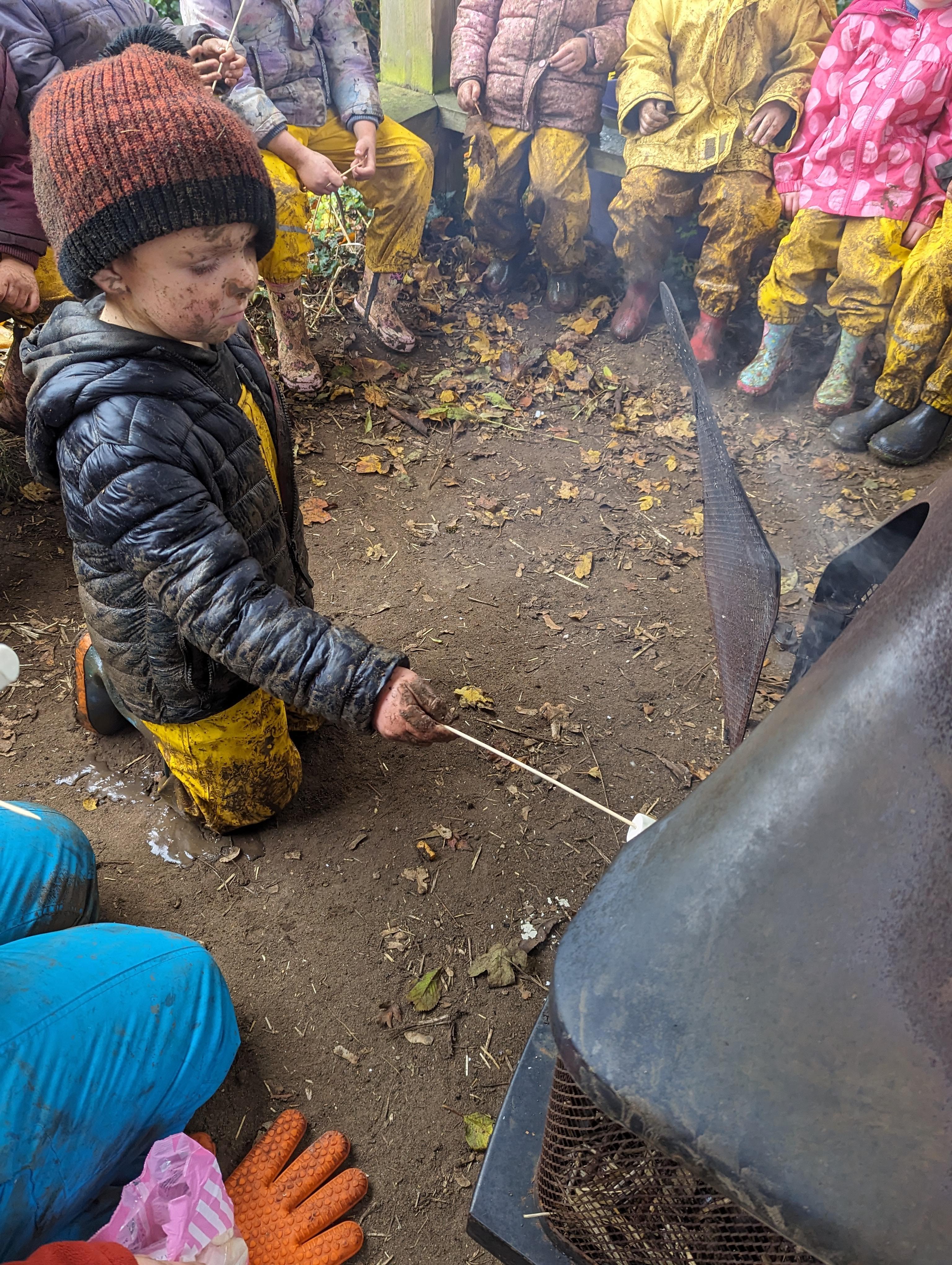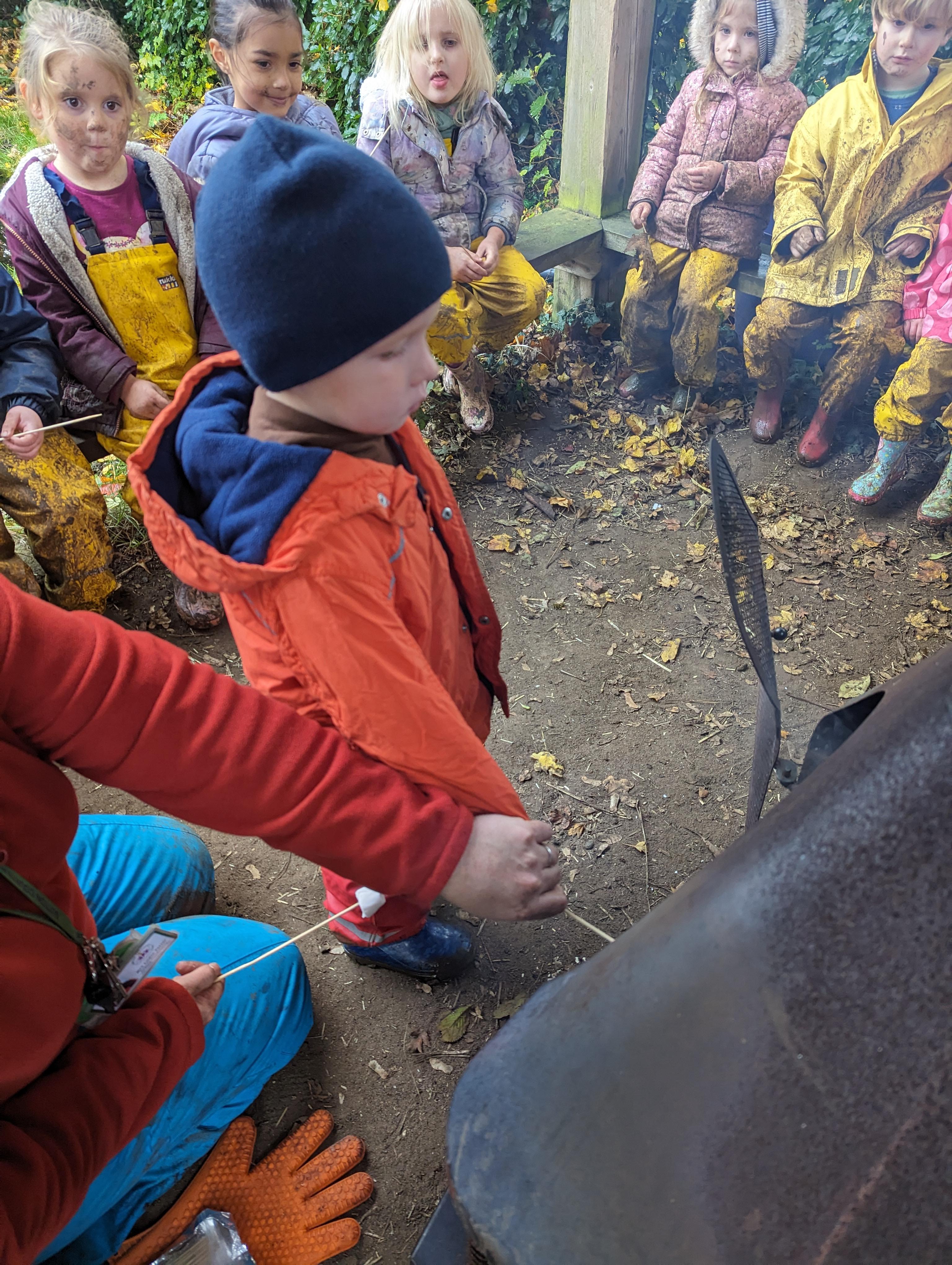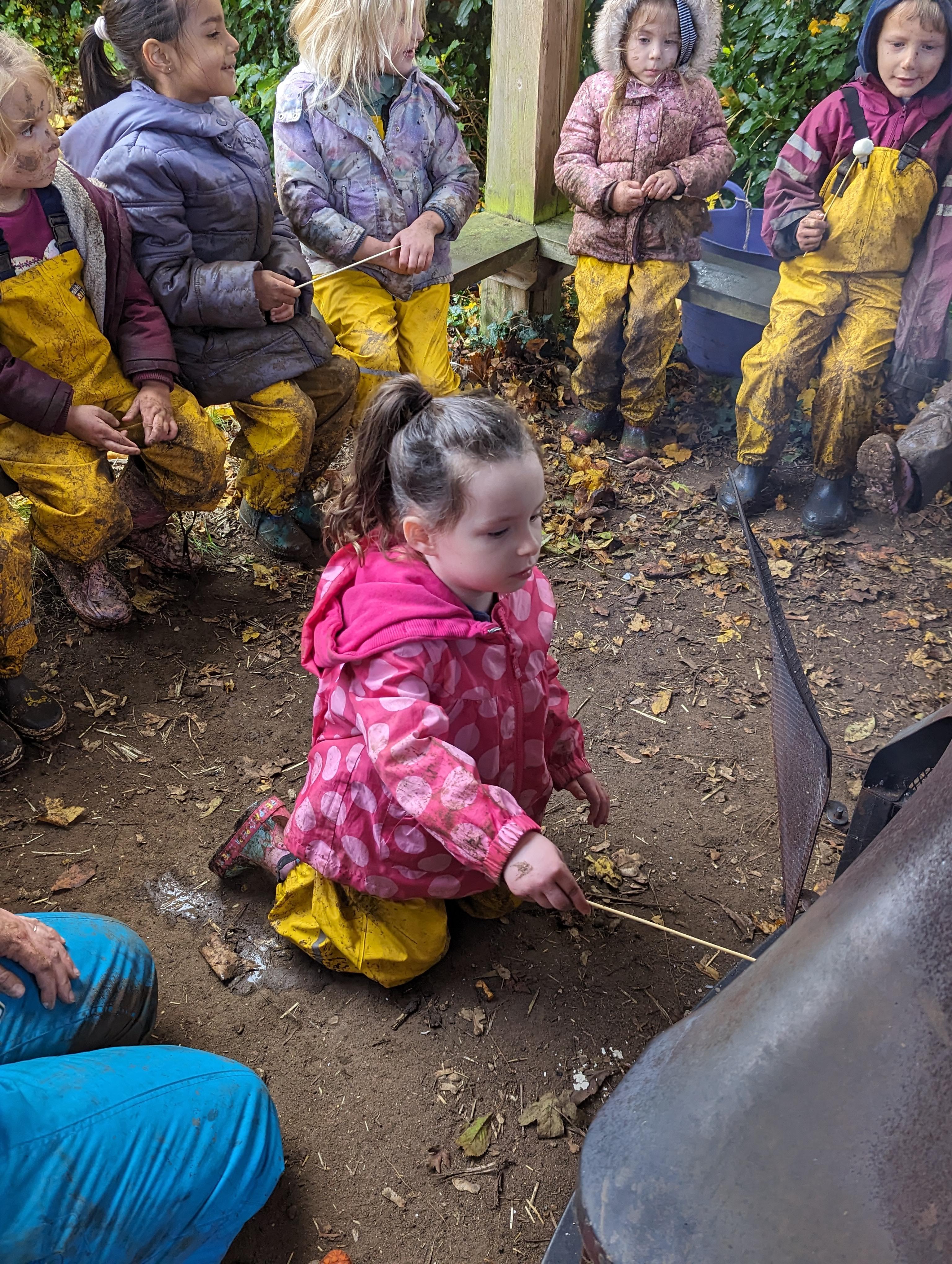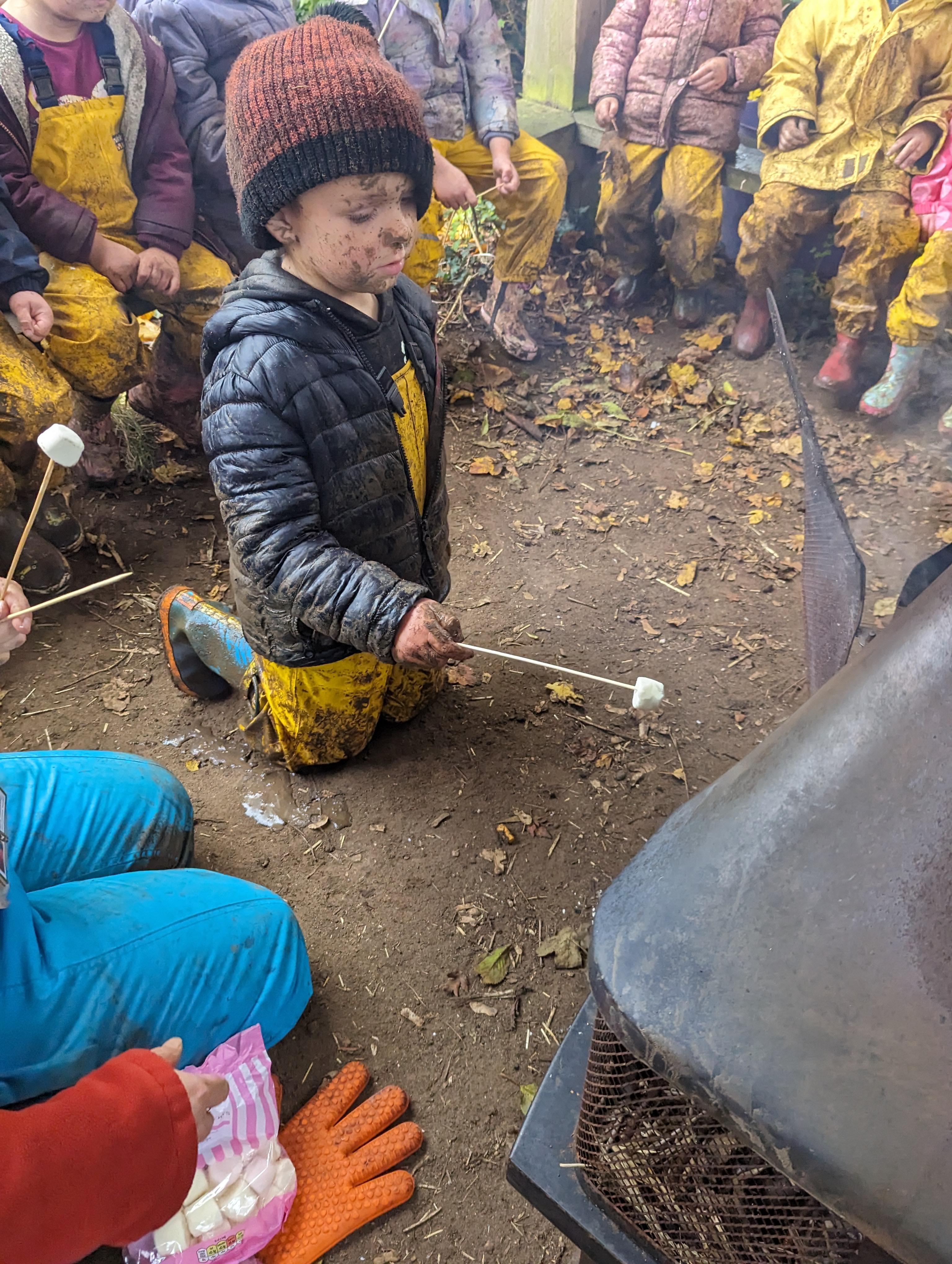 It was a crispy morning and a few of us got too cold but lots of us toasted marshmallows and explored the new dumper trucks . . .