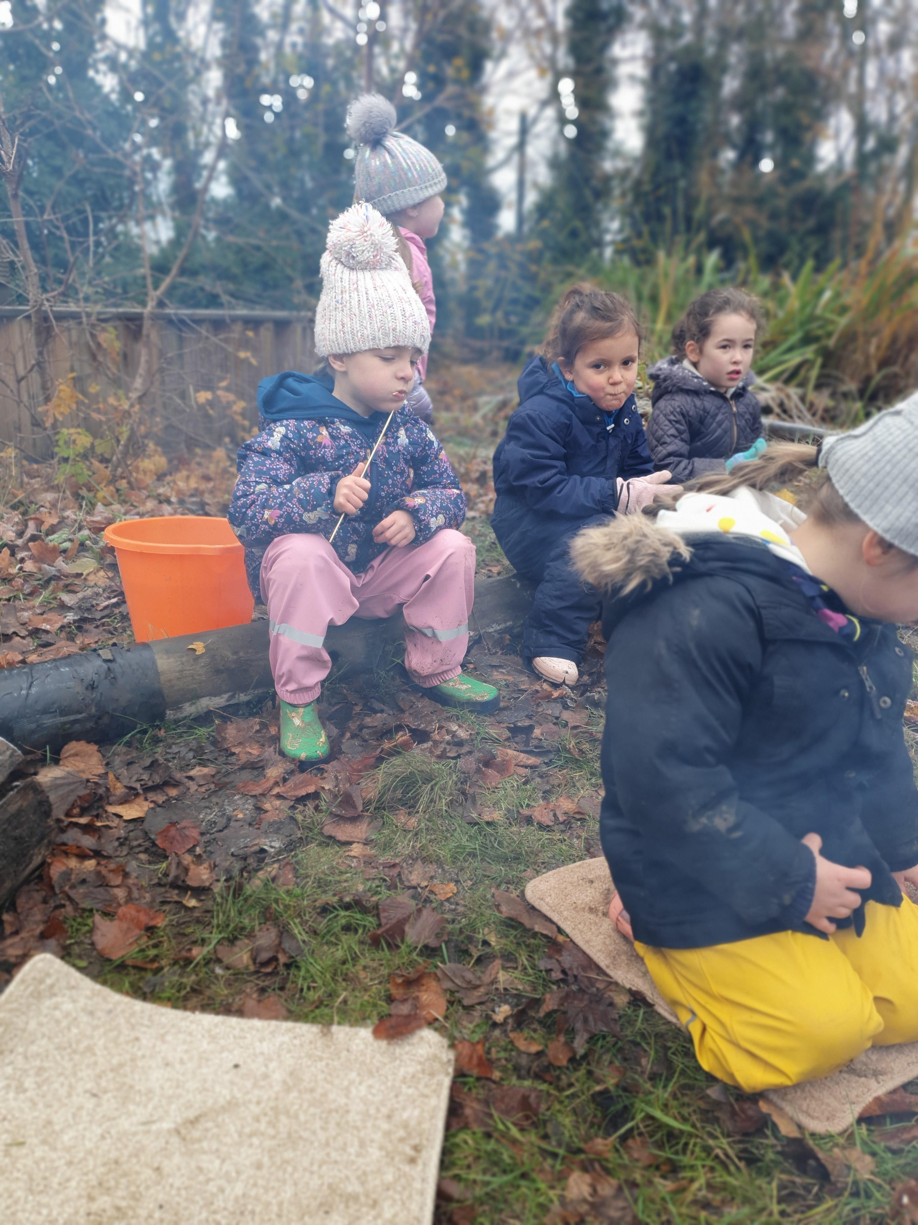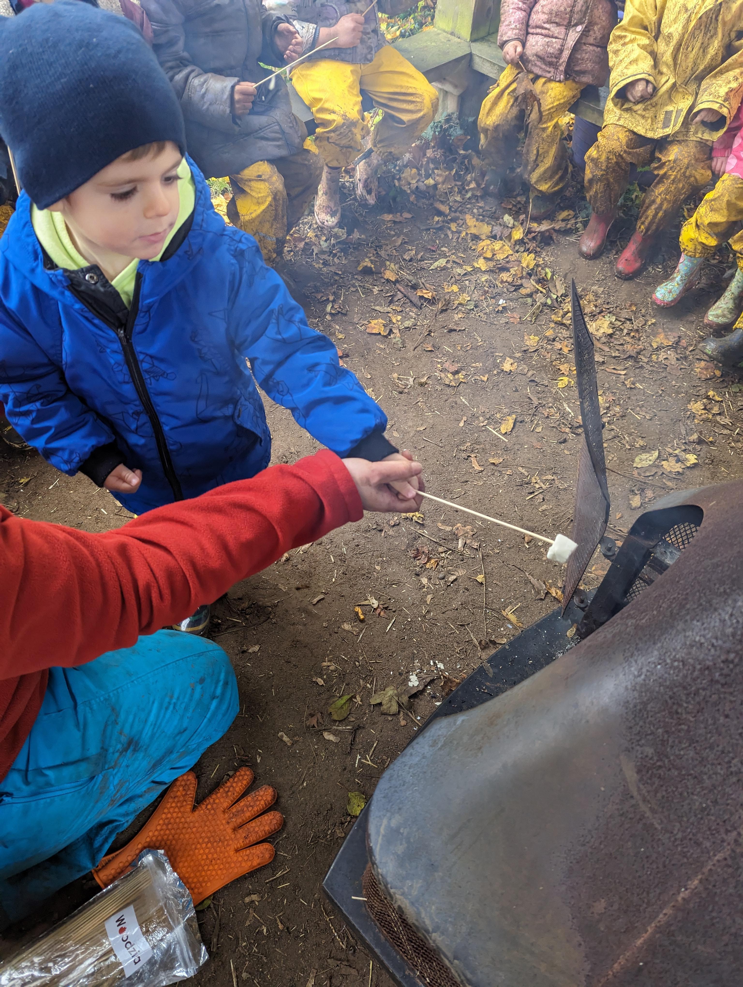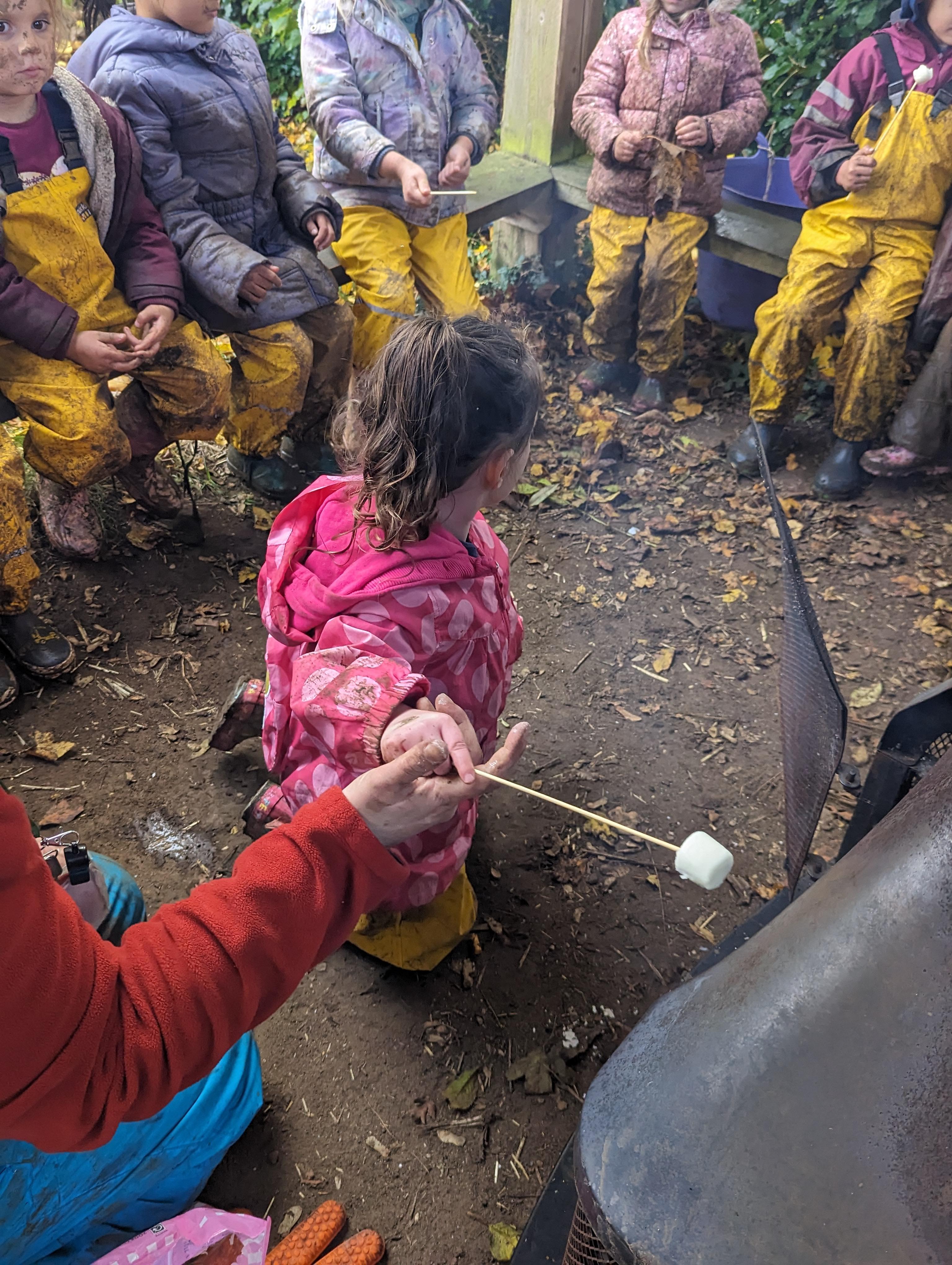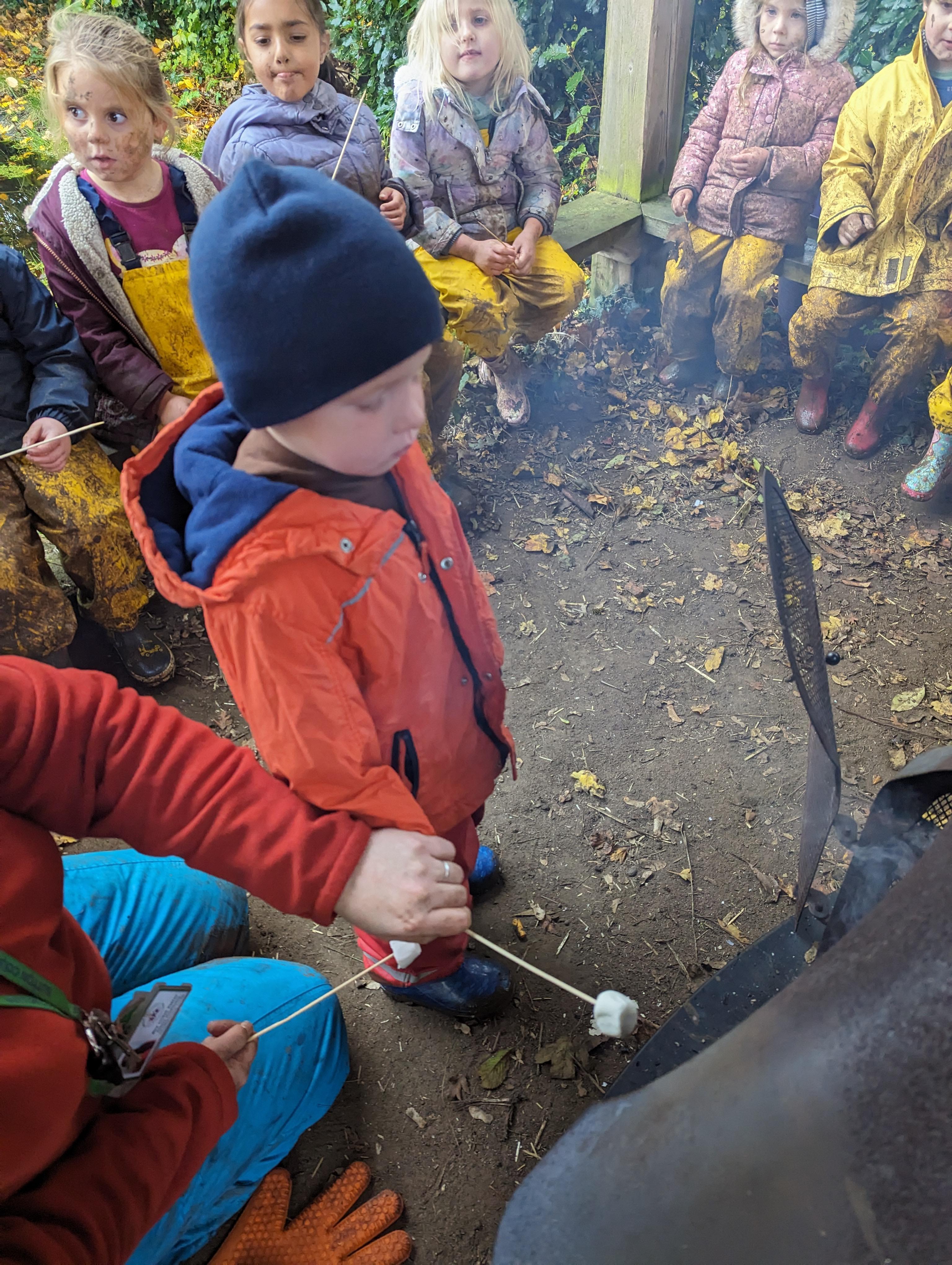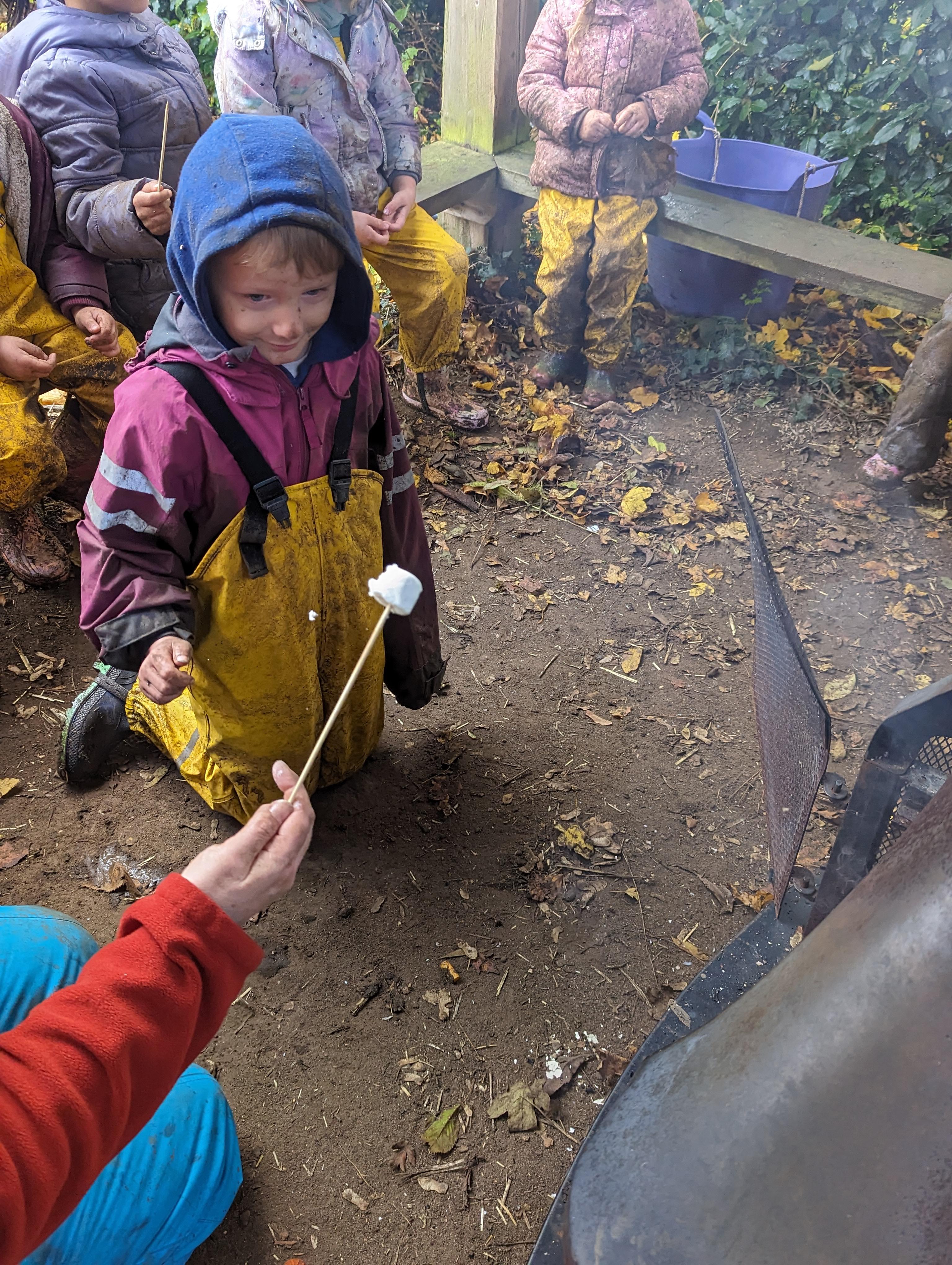 It was a crispy morning and a few of us got too cold but lots of us toasted marshmallows and explored the new dumper trucks . . .