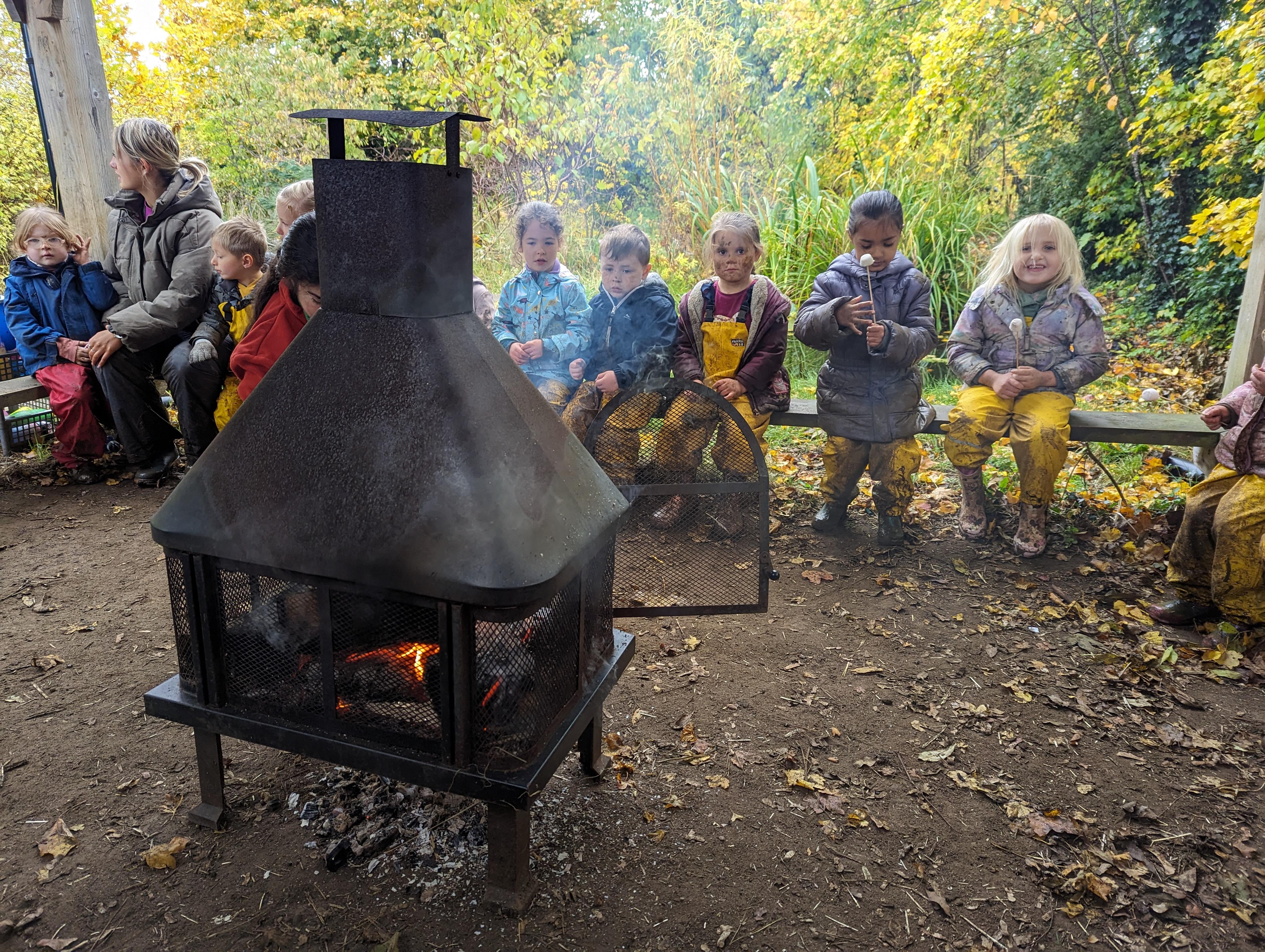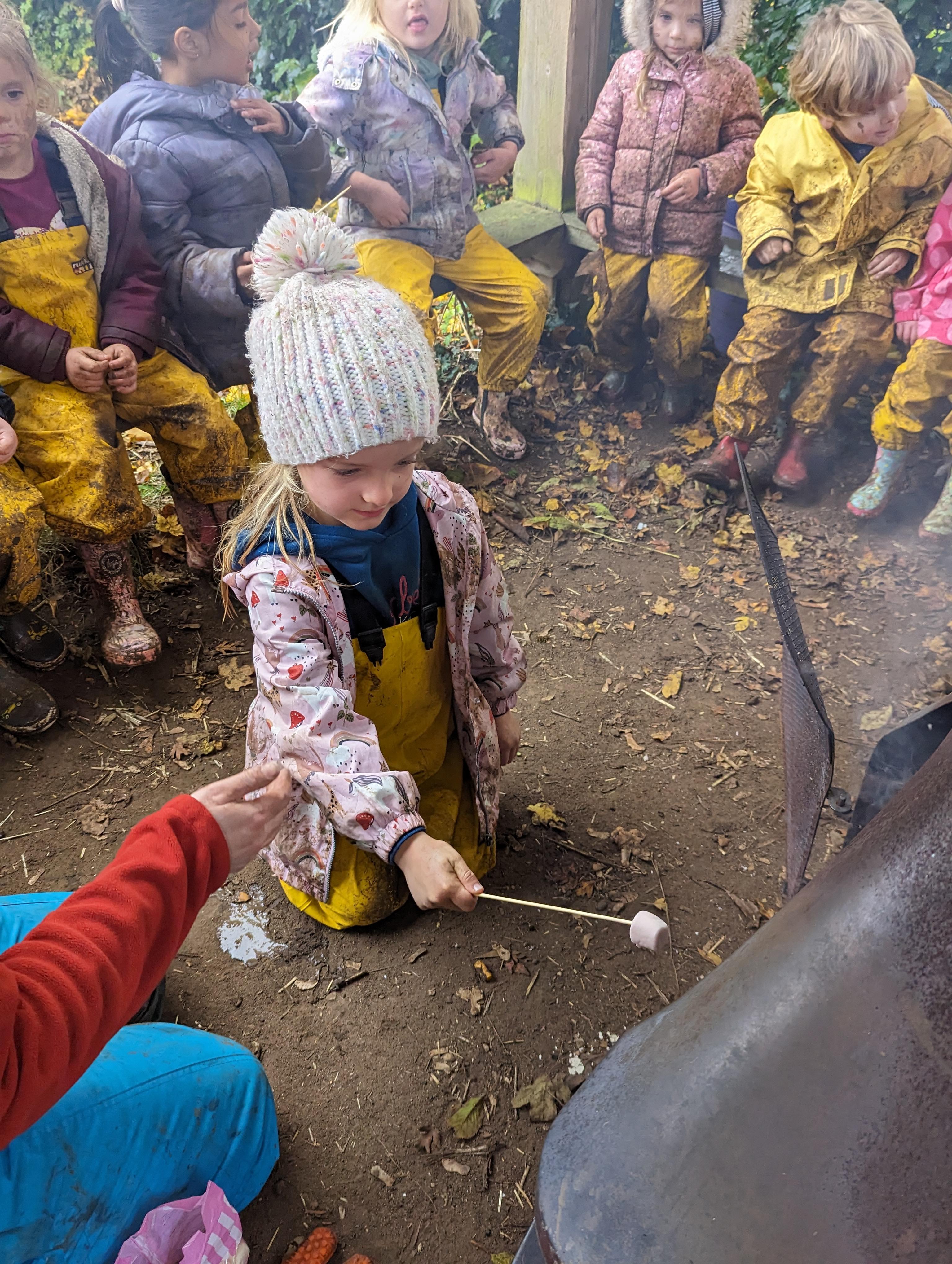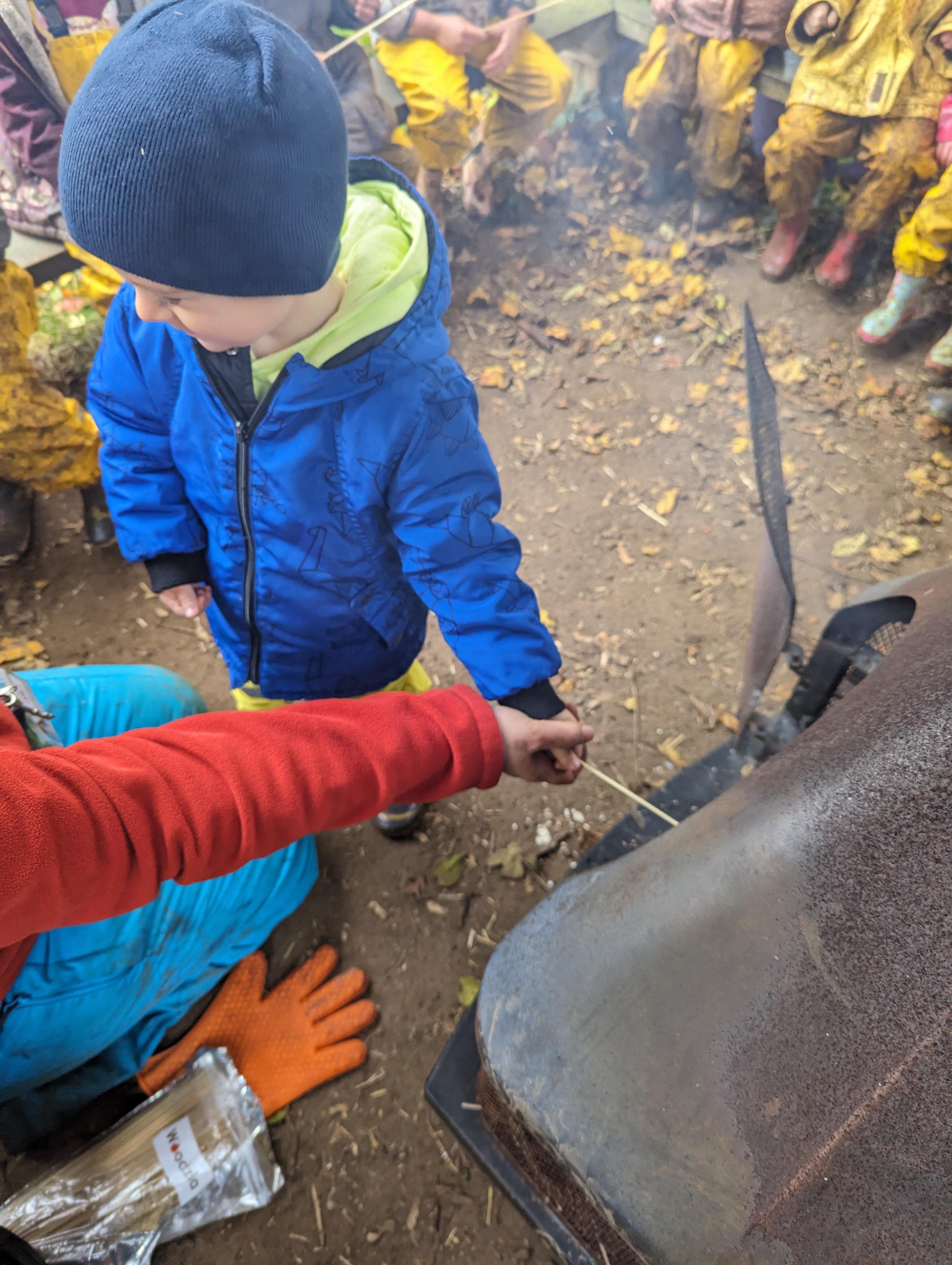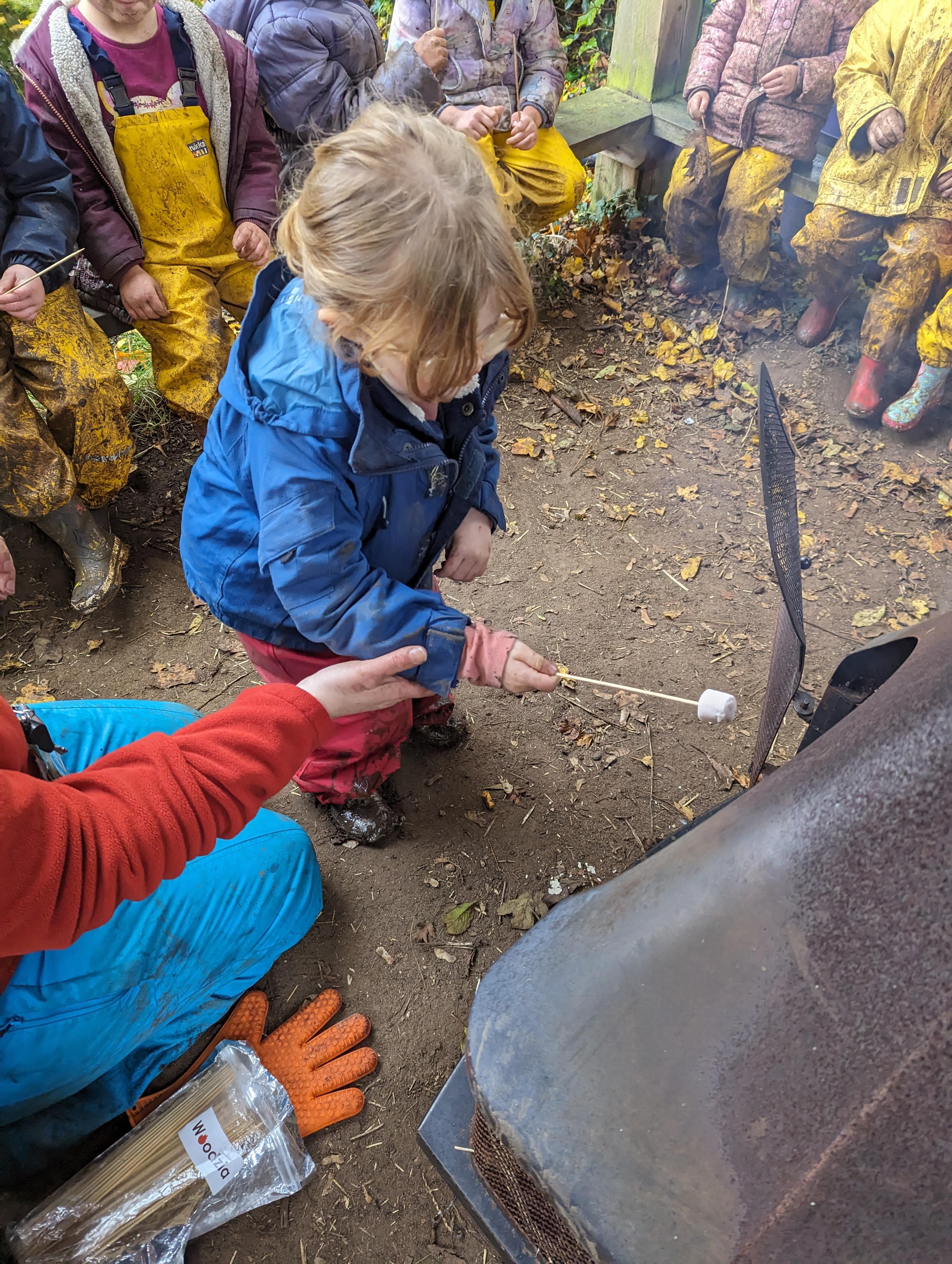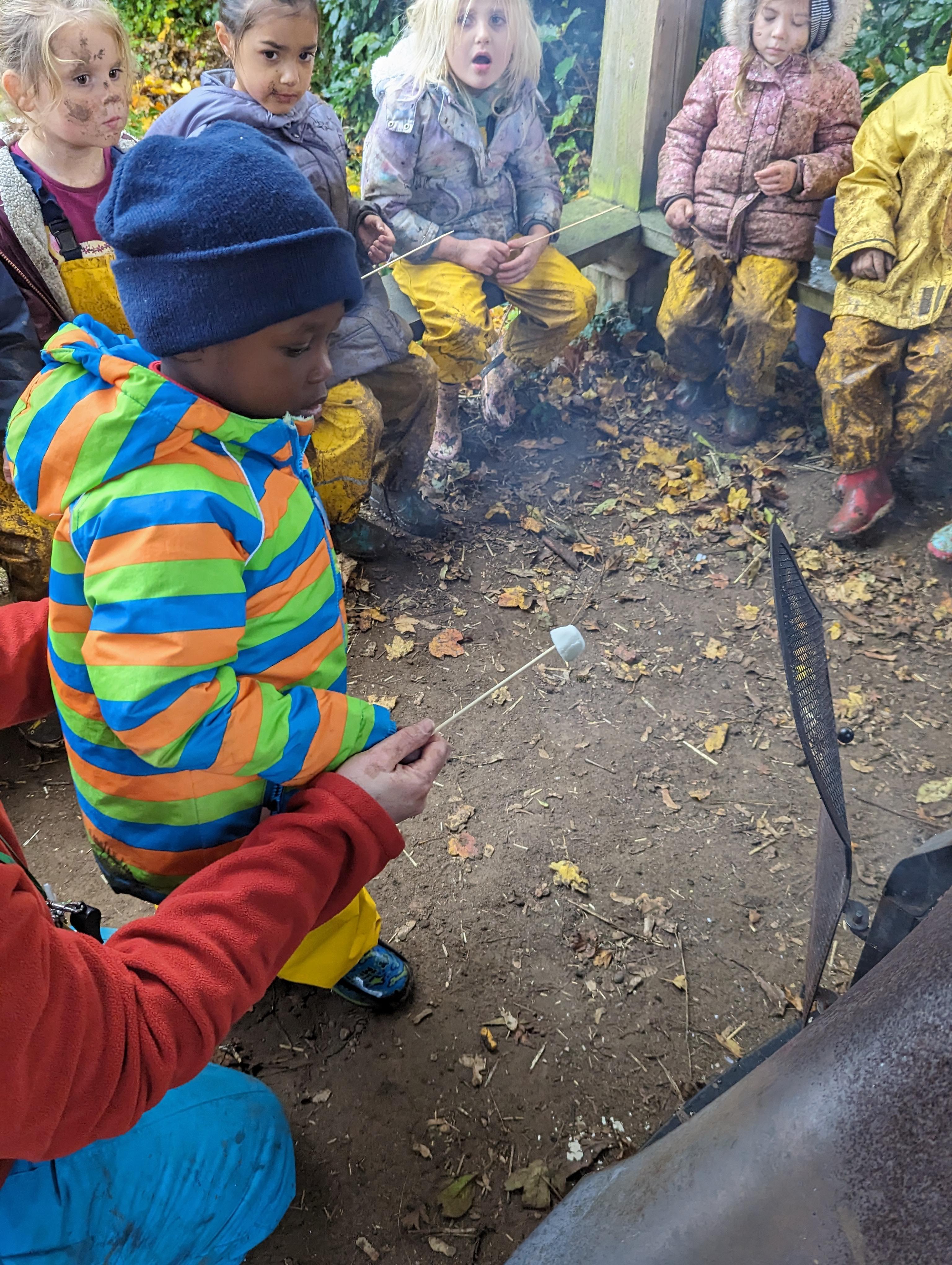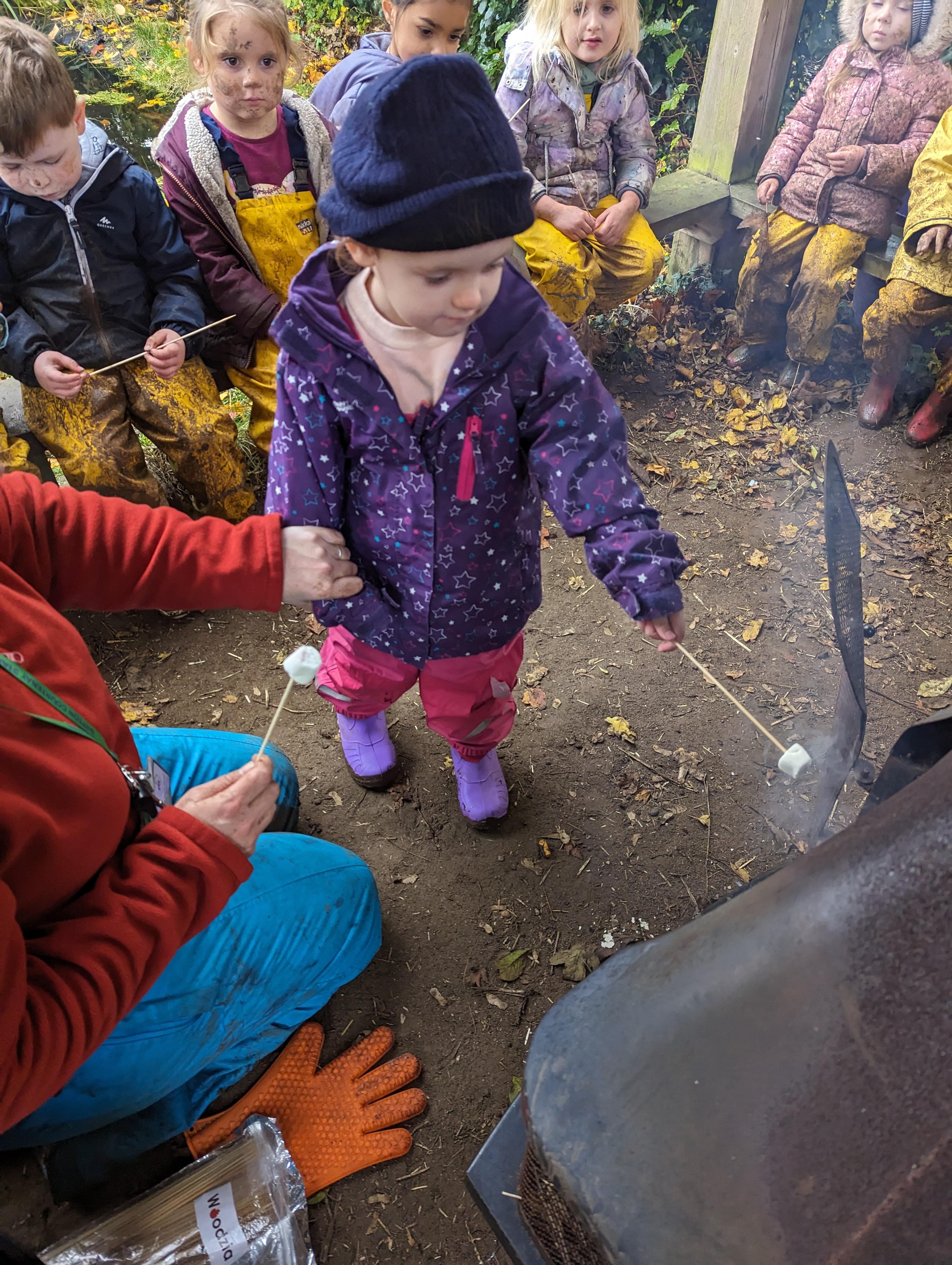 It was a crispy morning and a few of us got too cold but lots of us toasted marshmallows and explored the new dumper trucks . . .