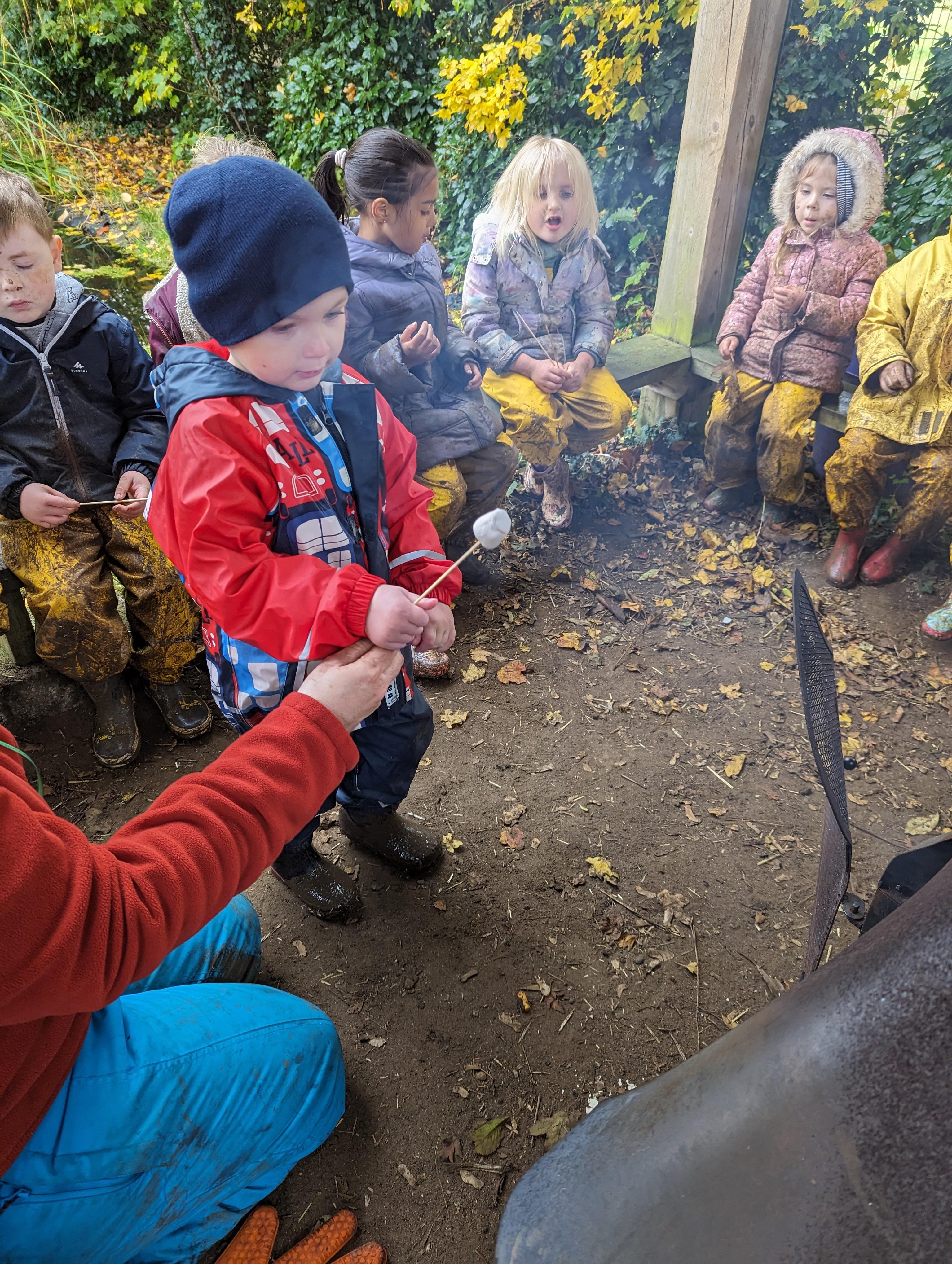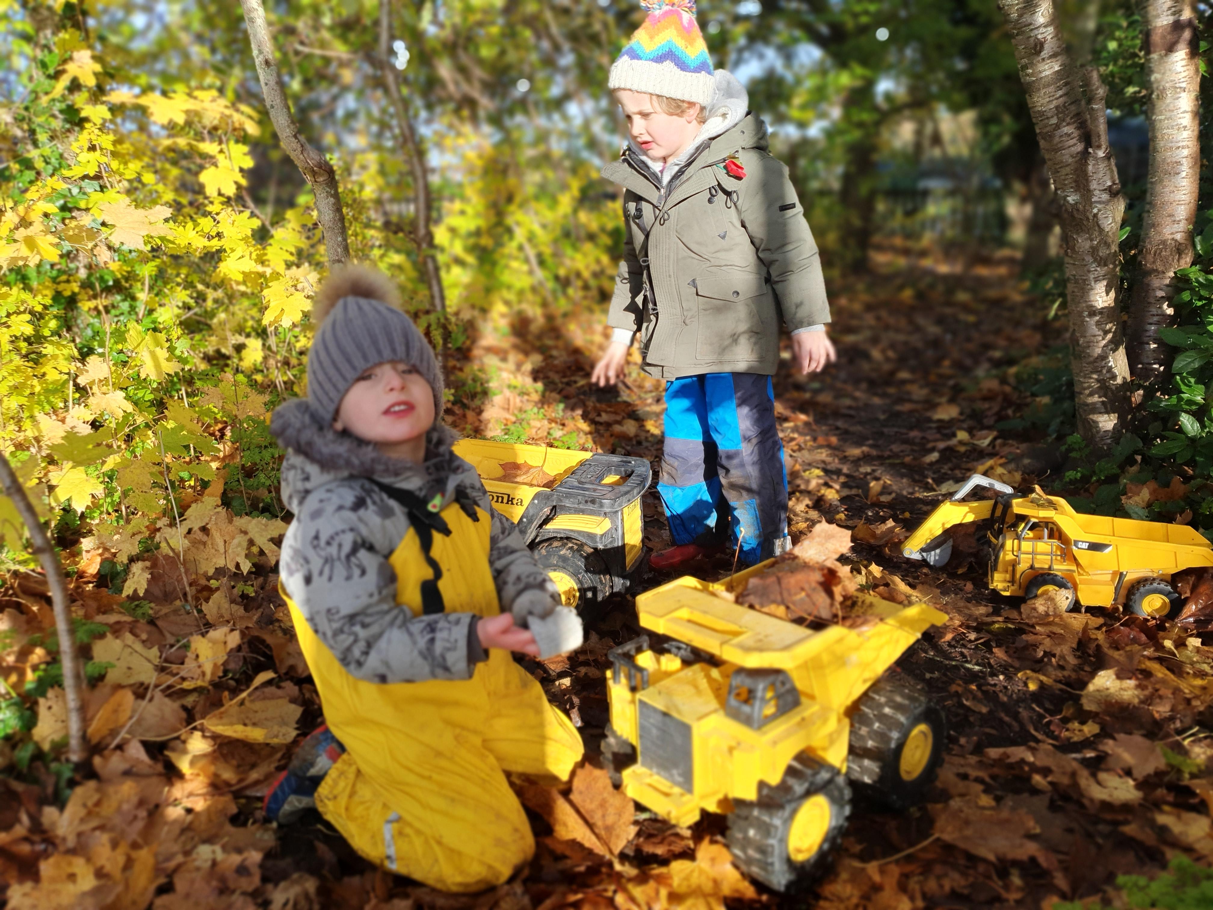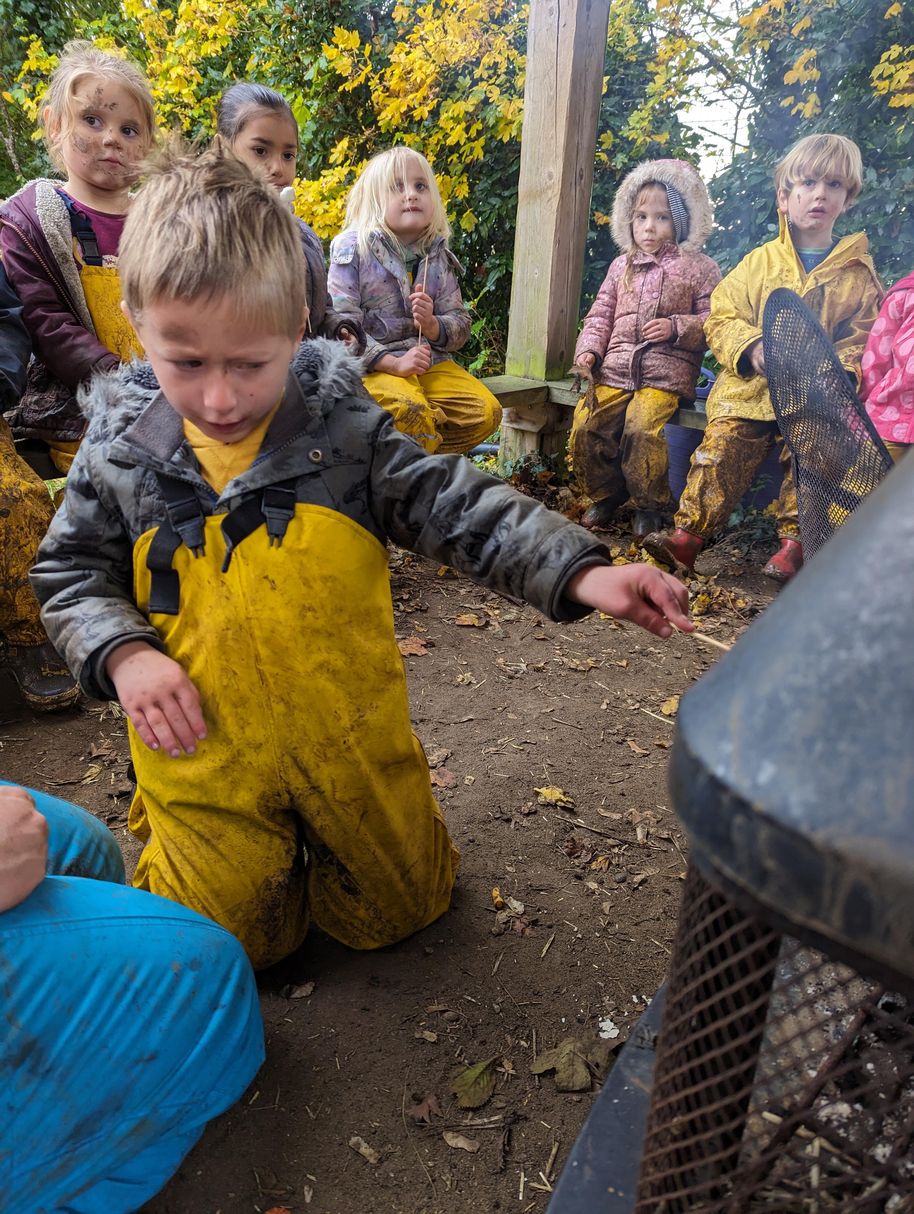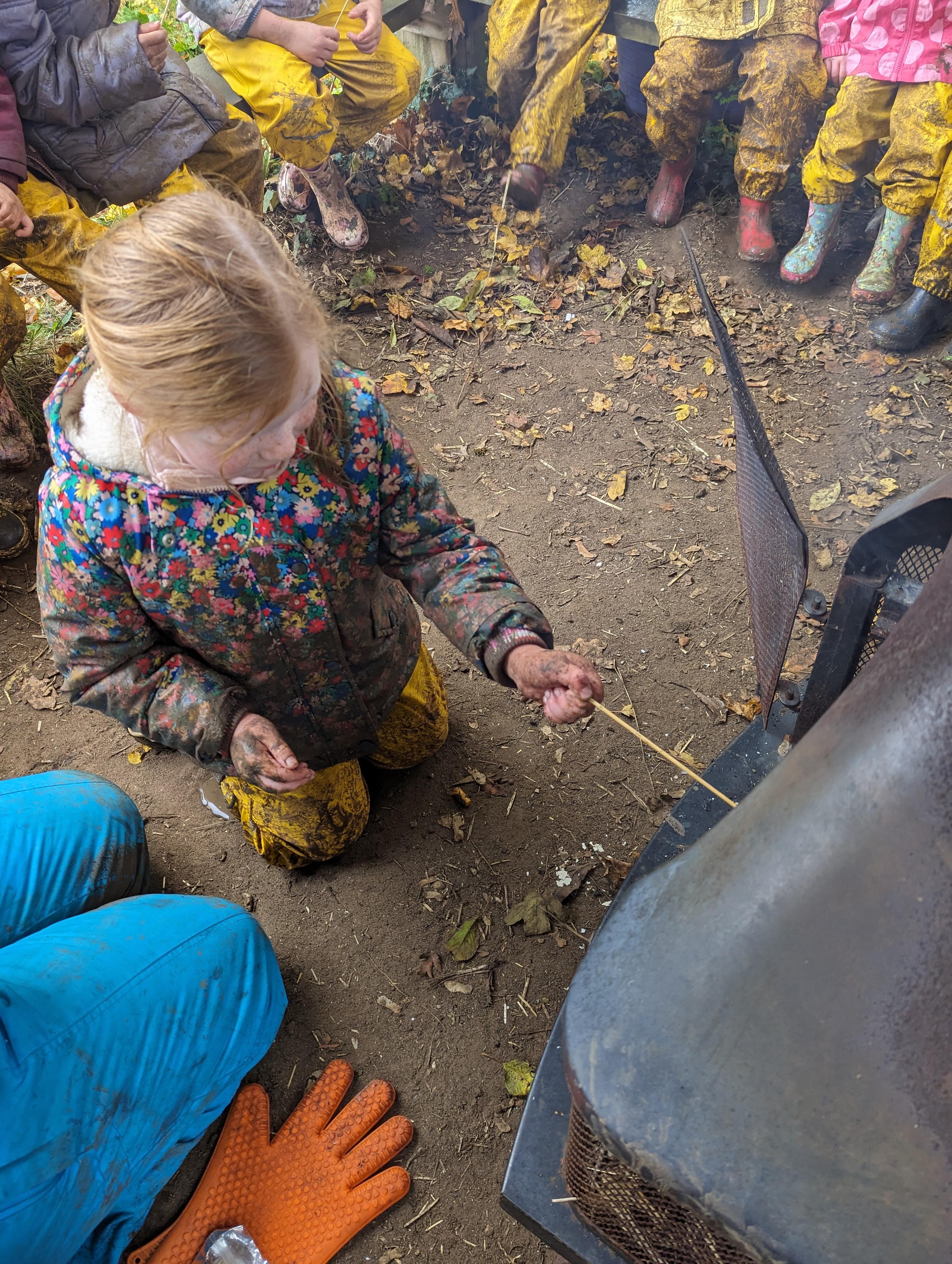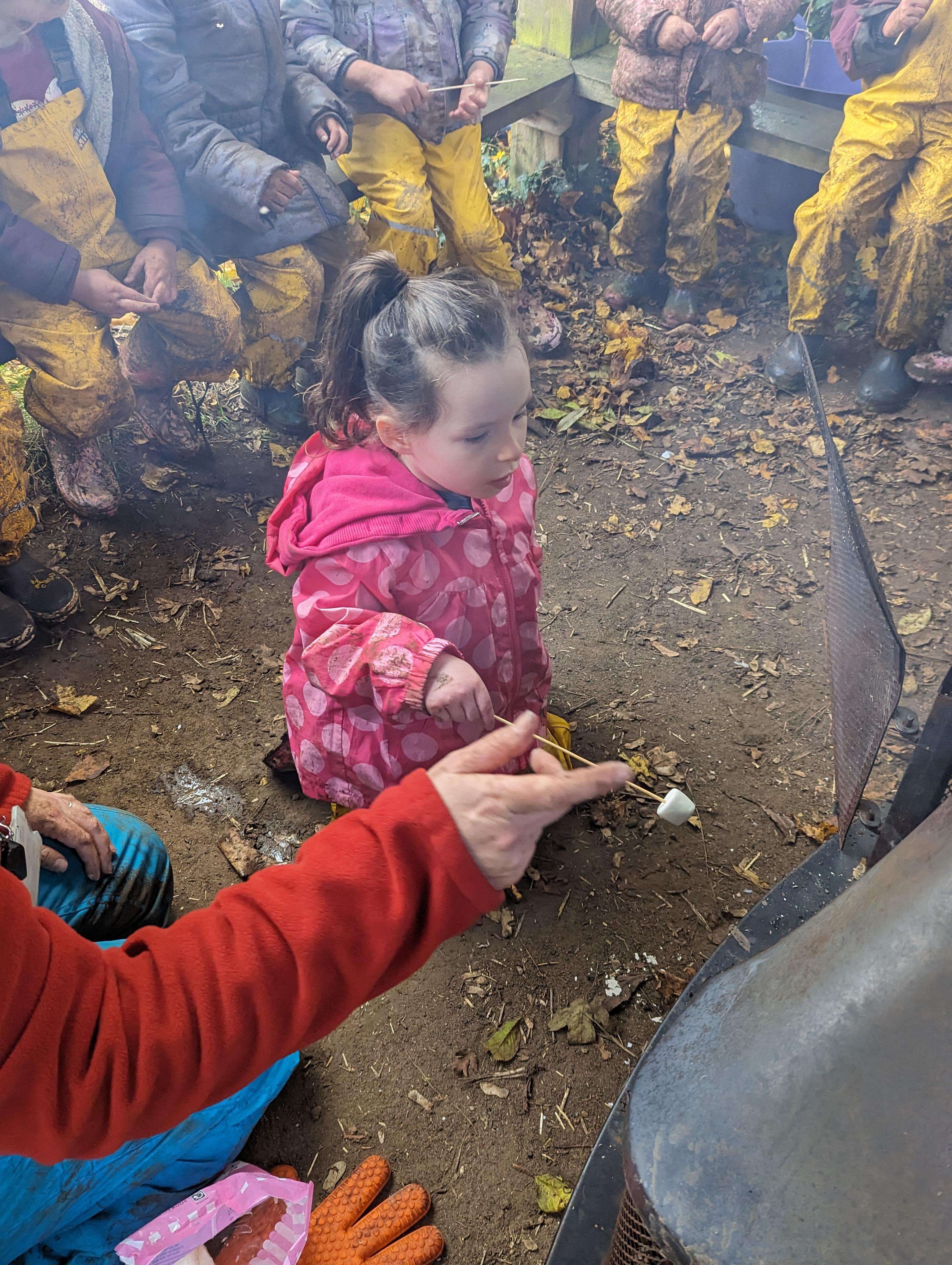 It was a crispy morning and a few of us got too cold but lots of us toasted marshmallows and explored the new dumper trucks . . .