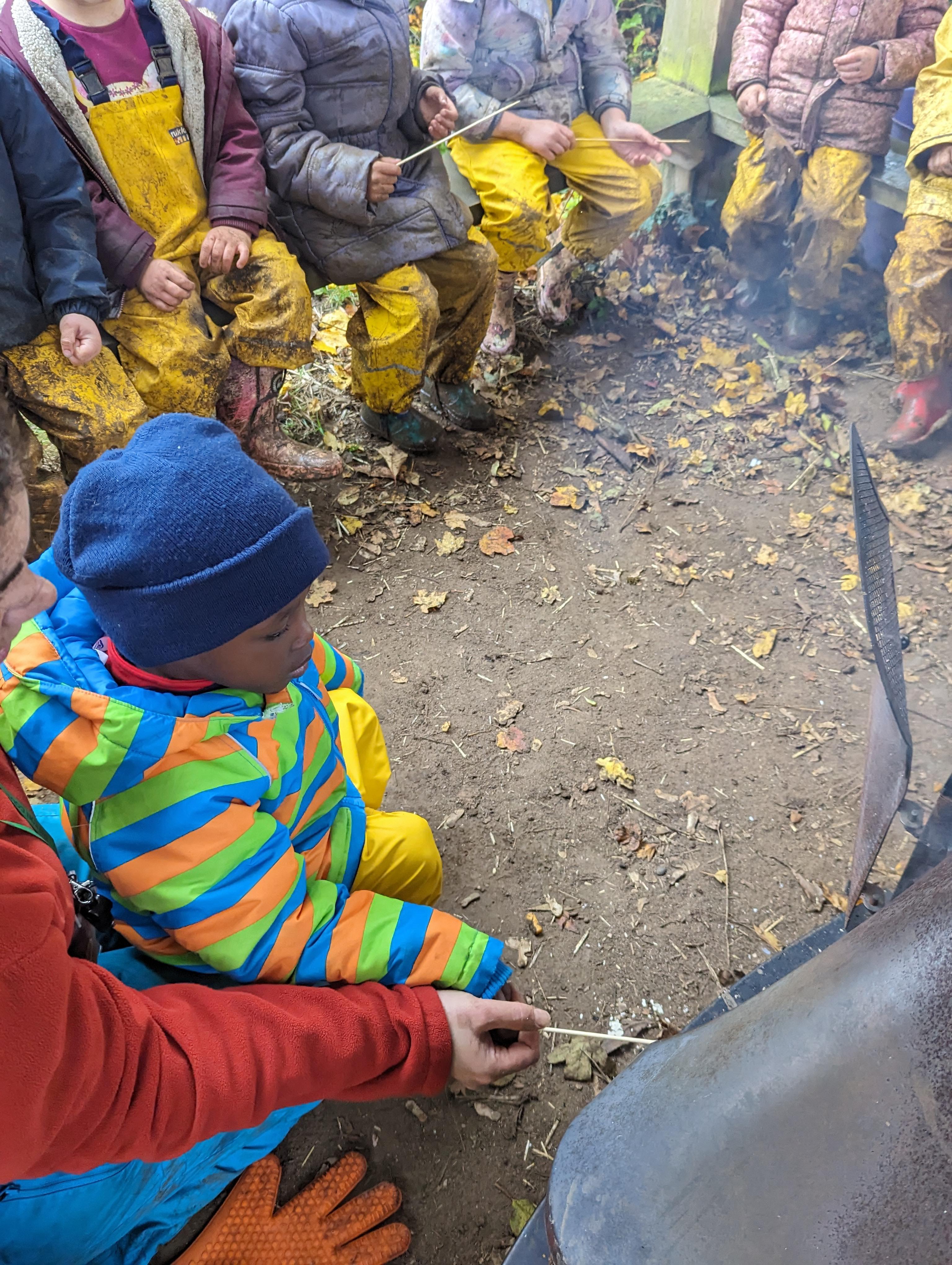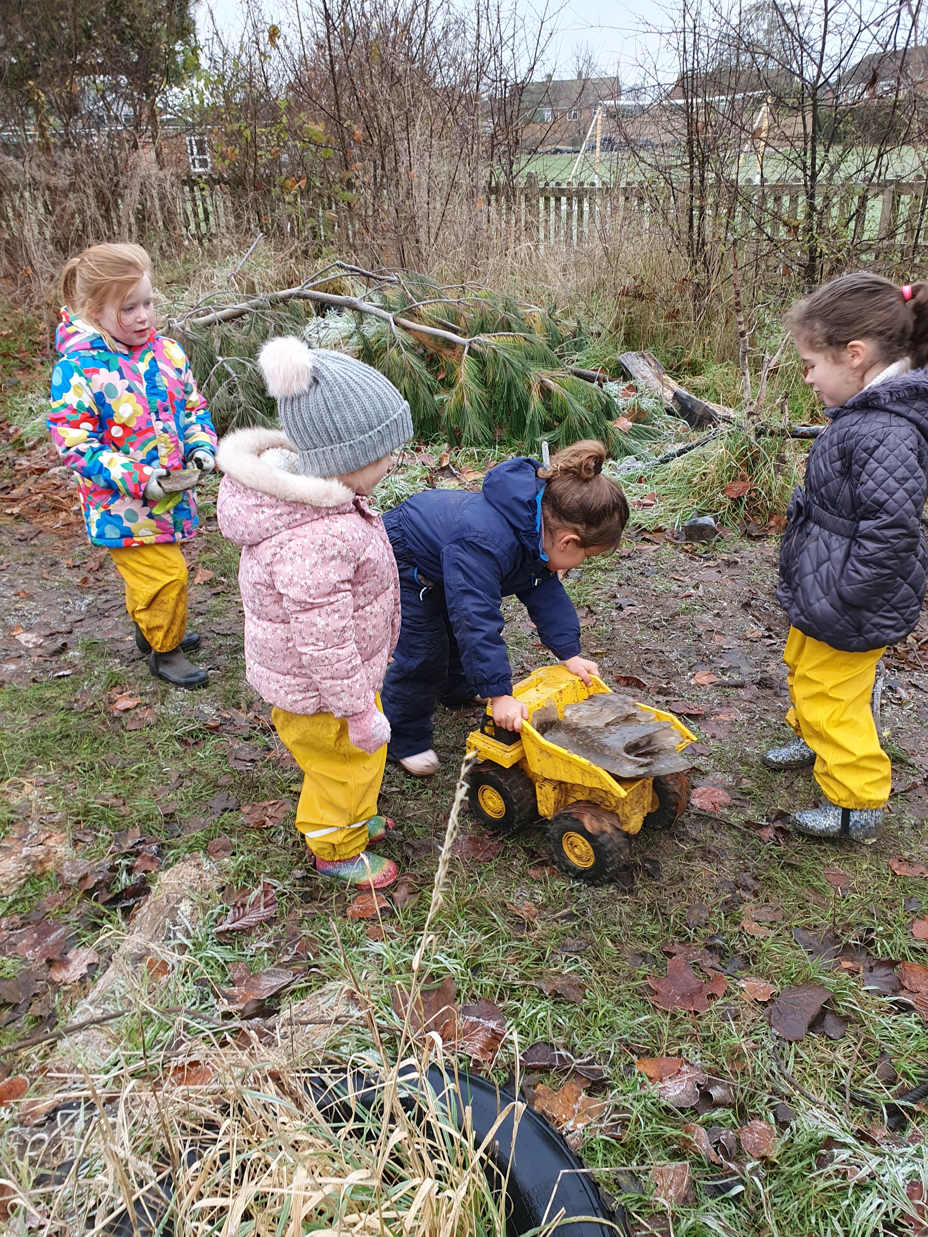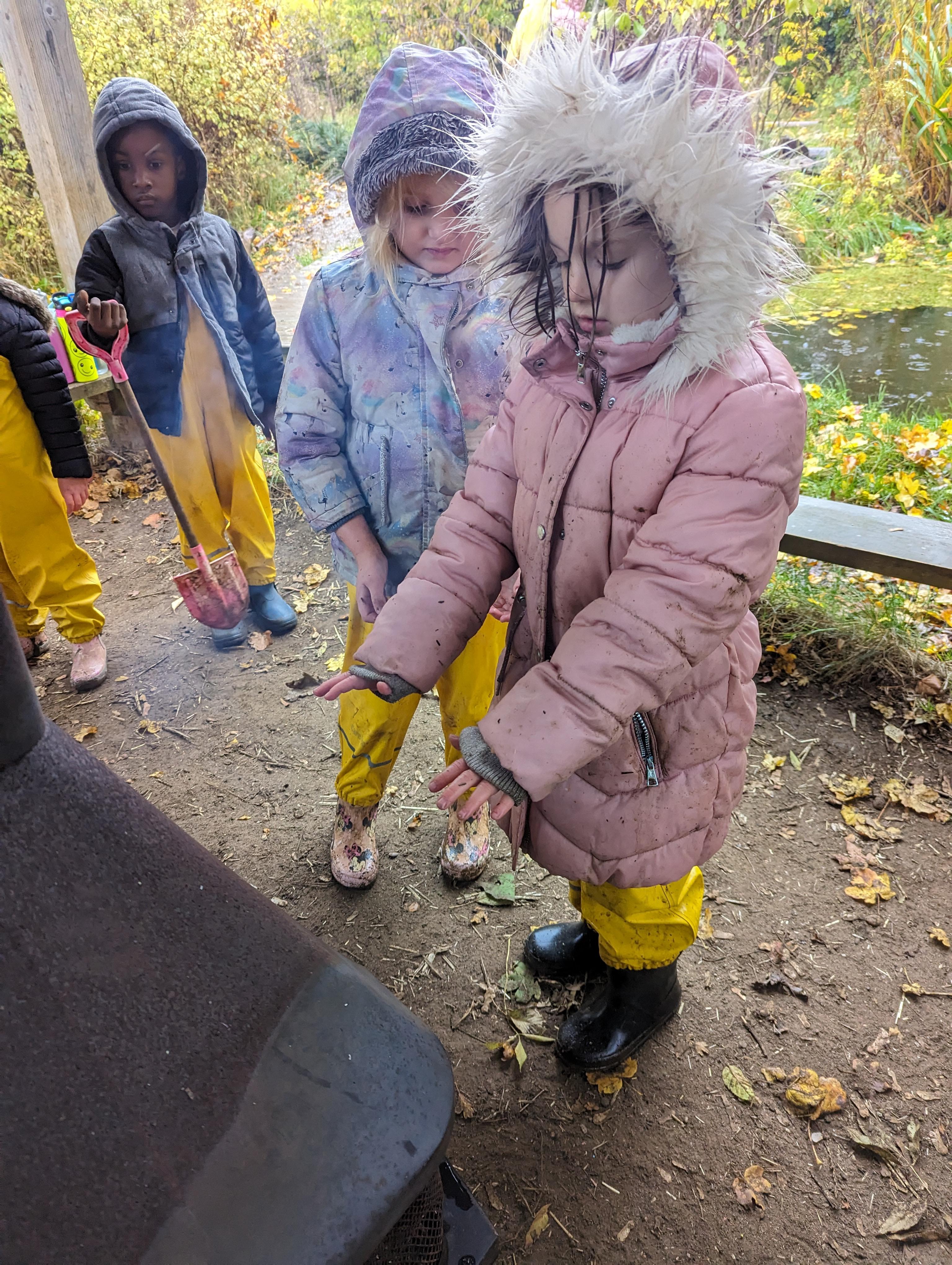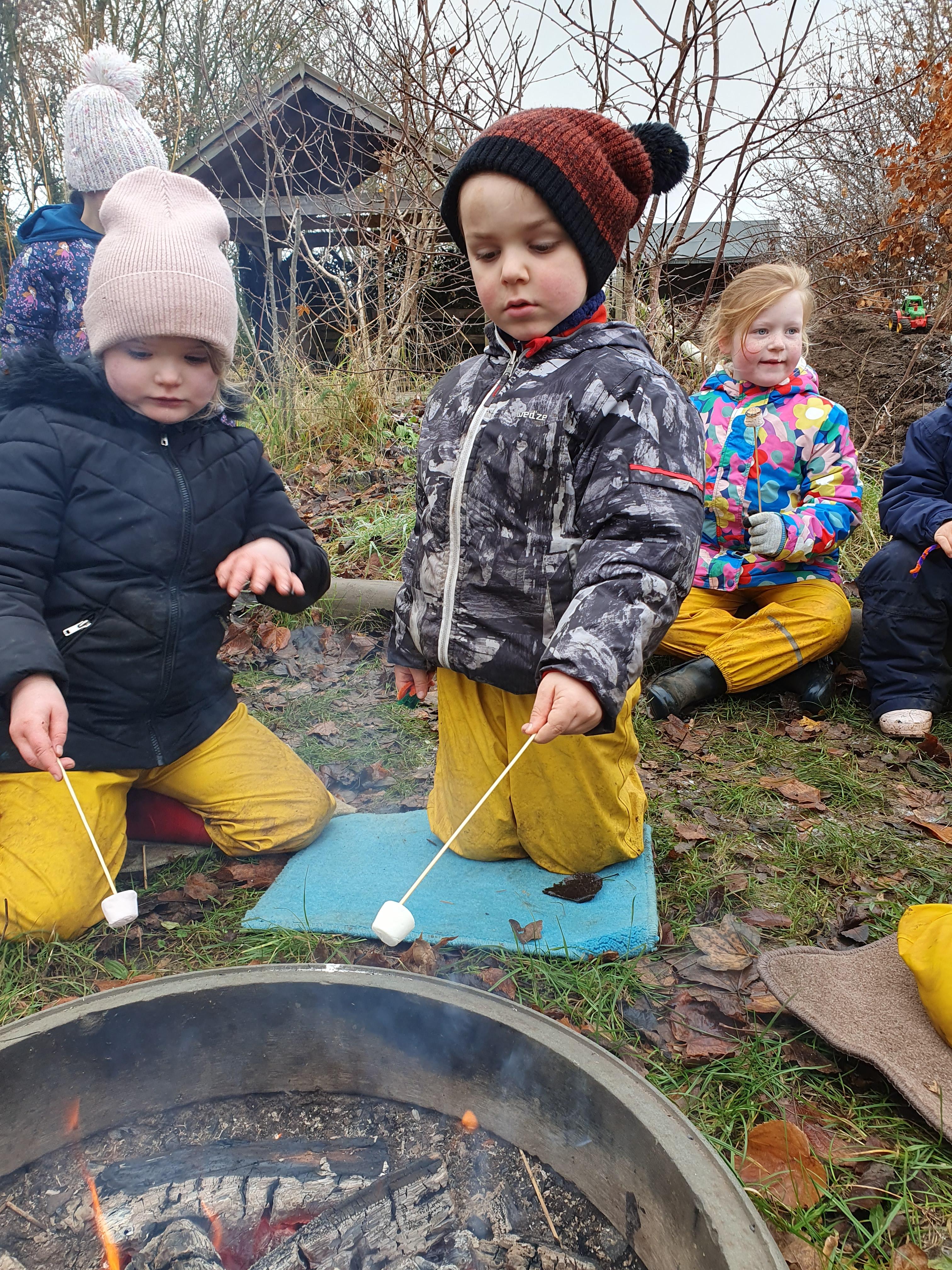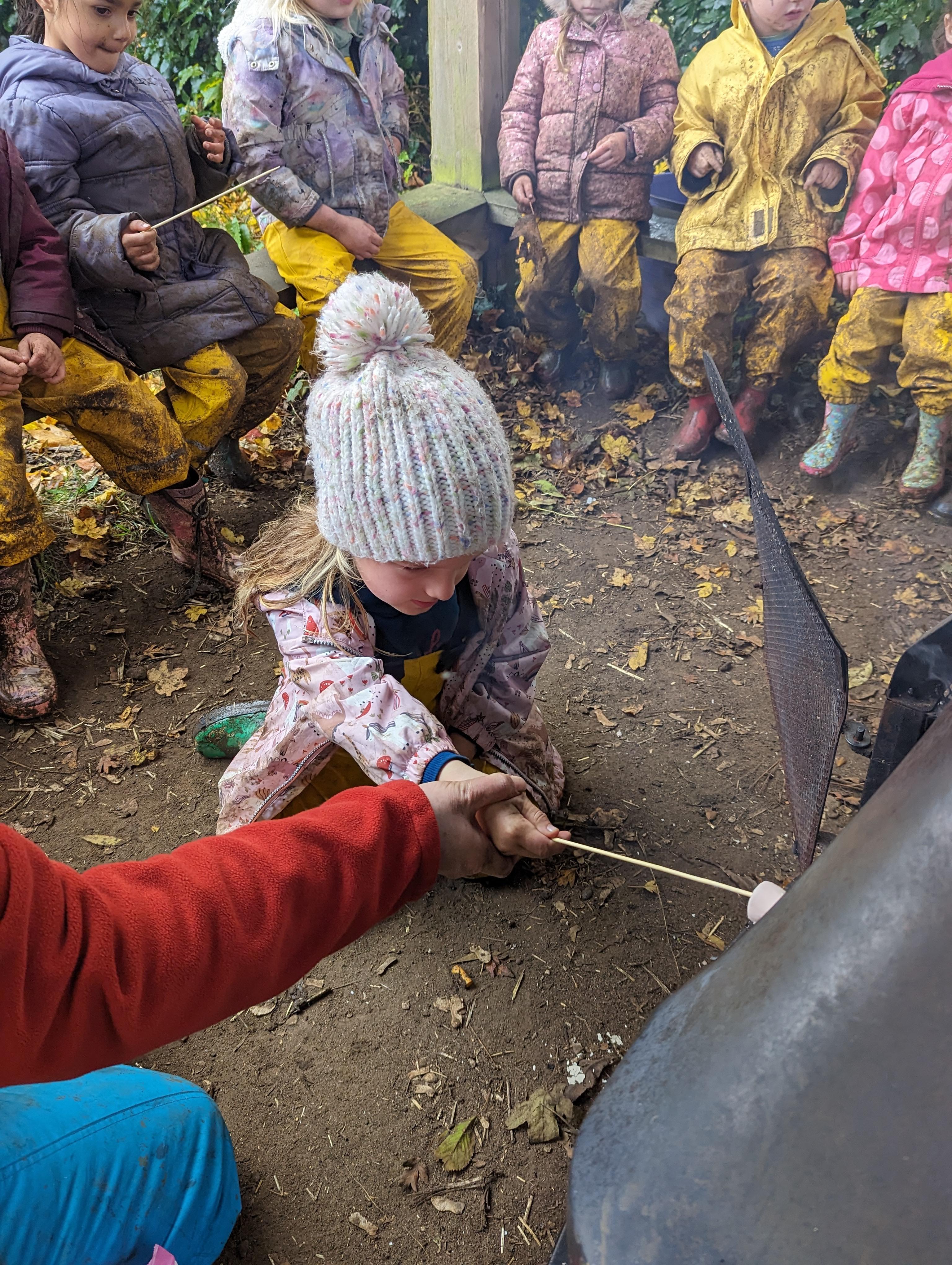 It was a crispy morning and a few of us got too cold but lots of us toasted marshmallows and explored the new dumper trucks . . .