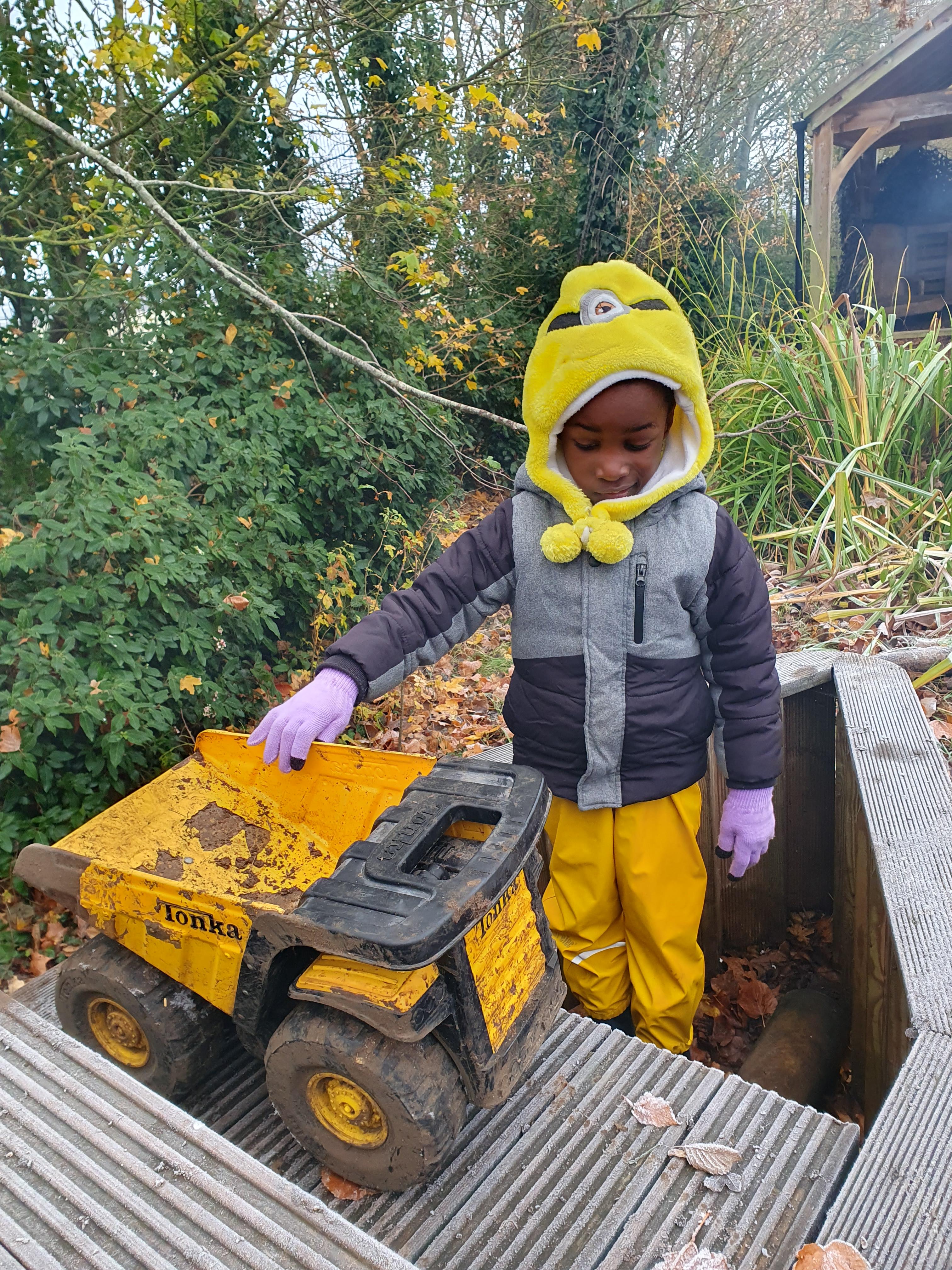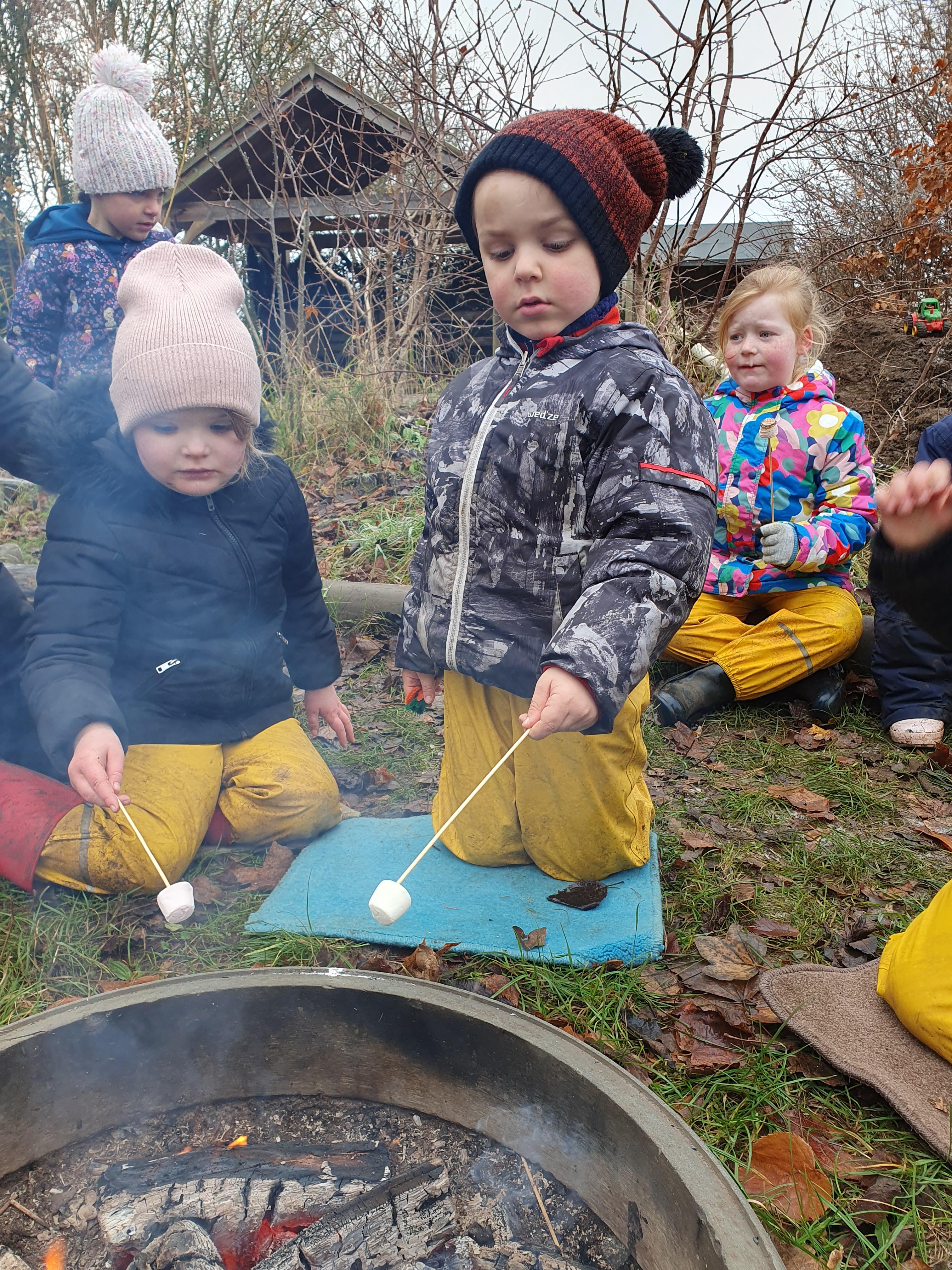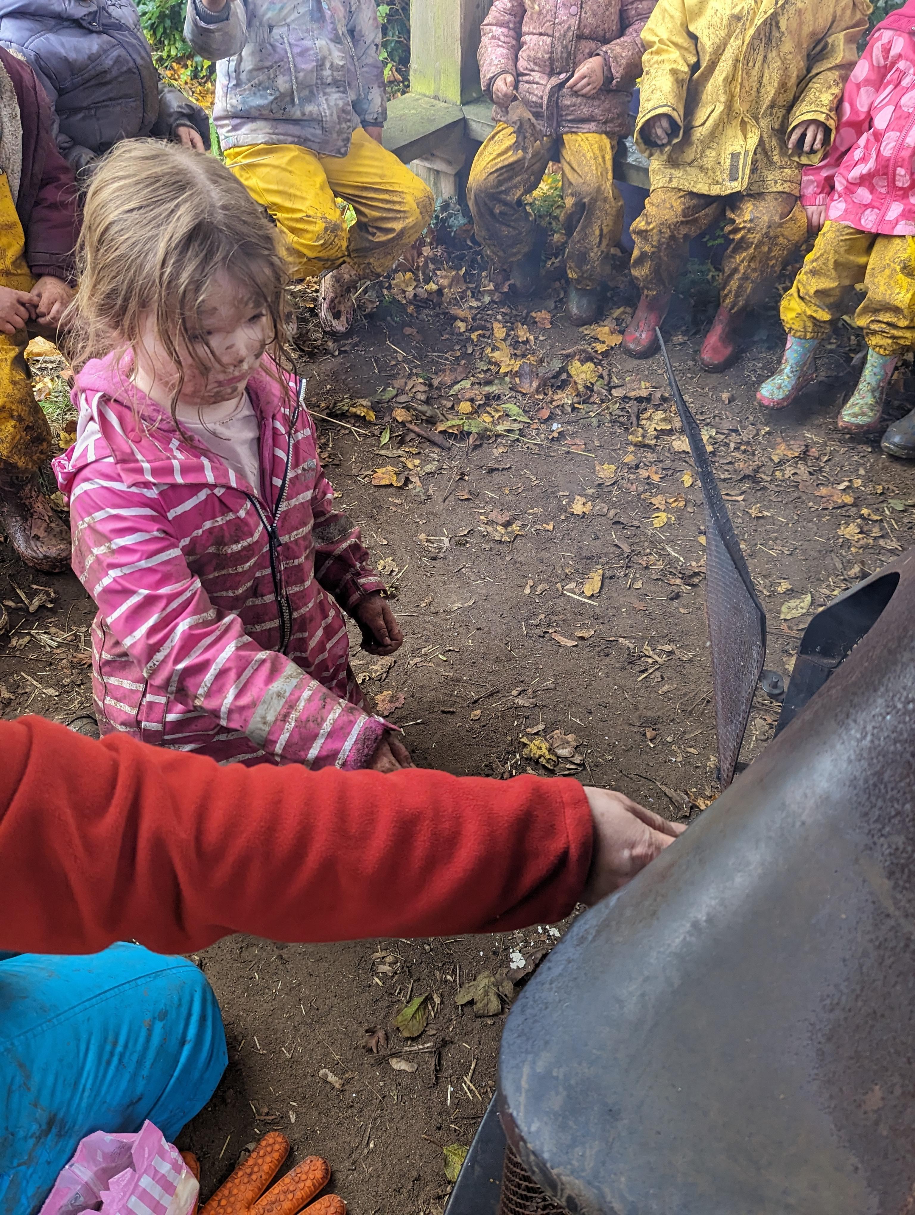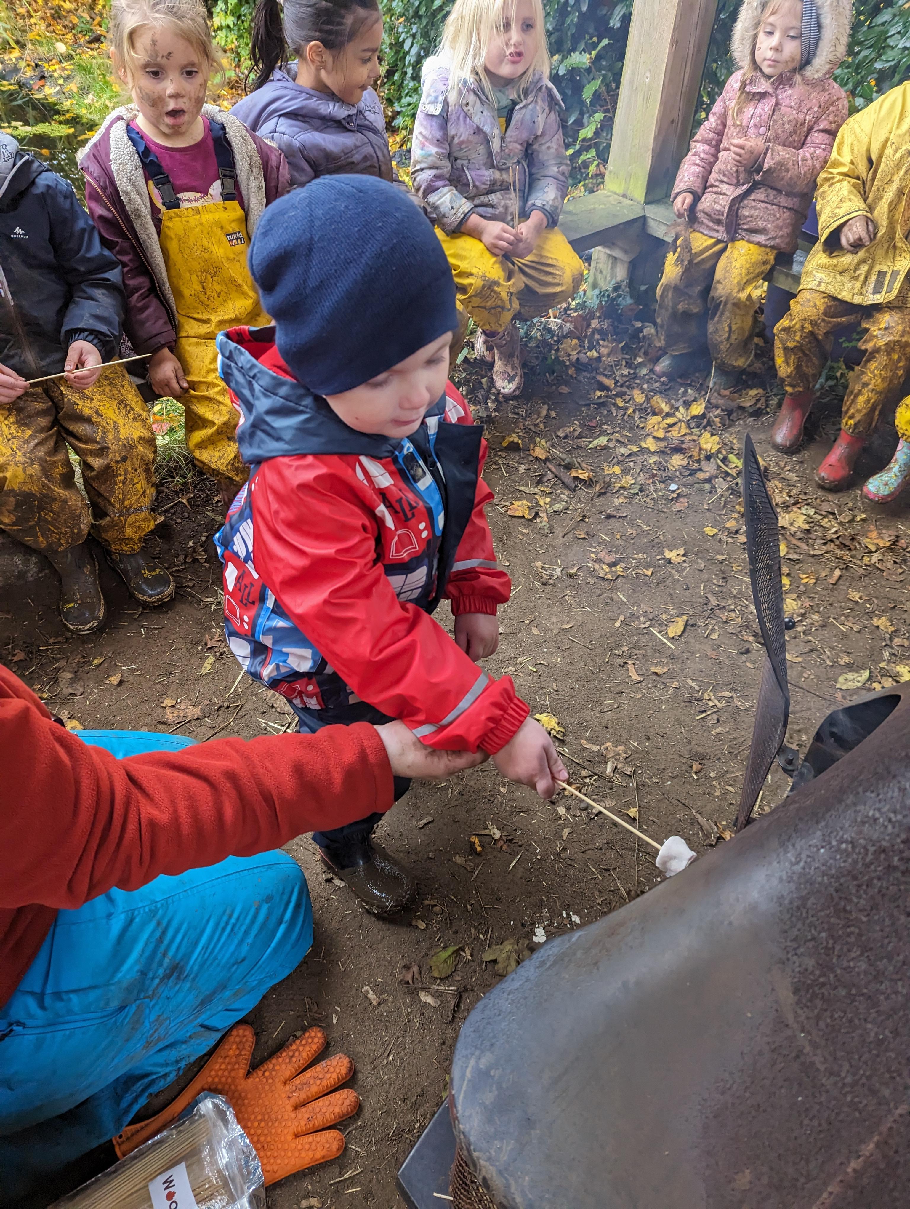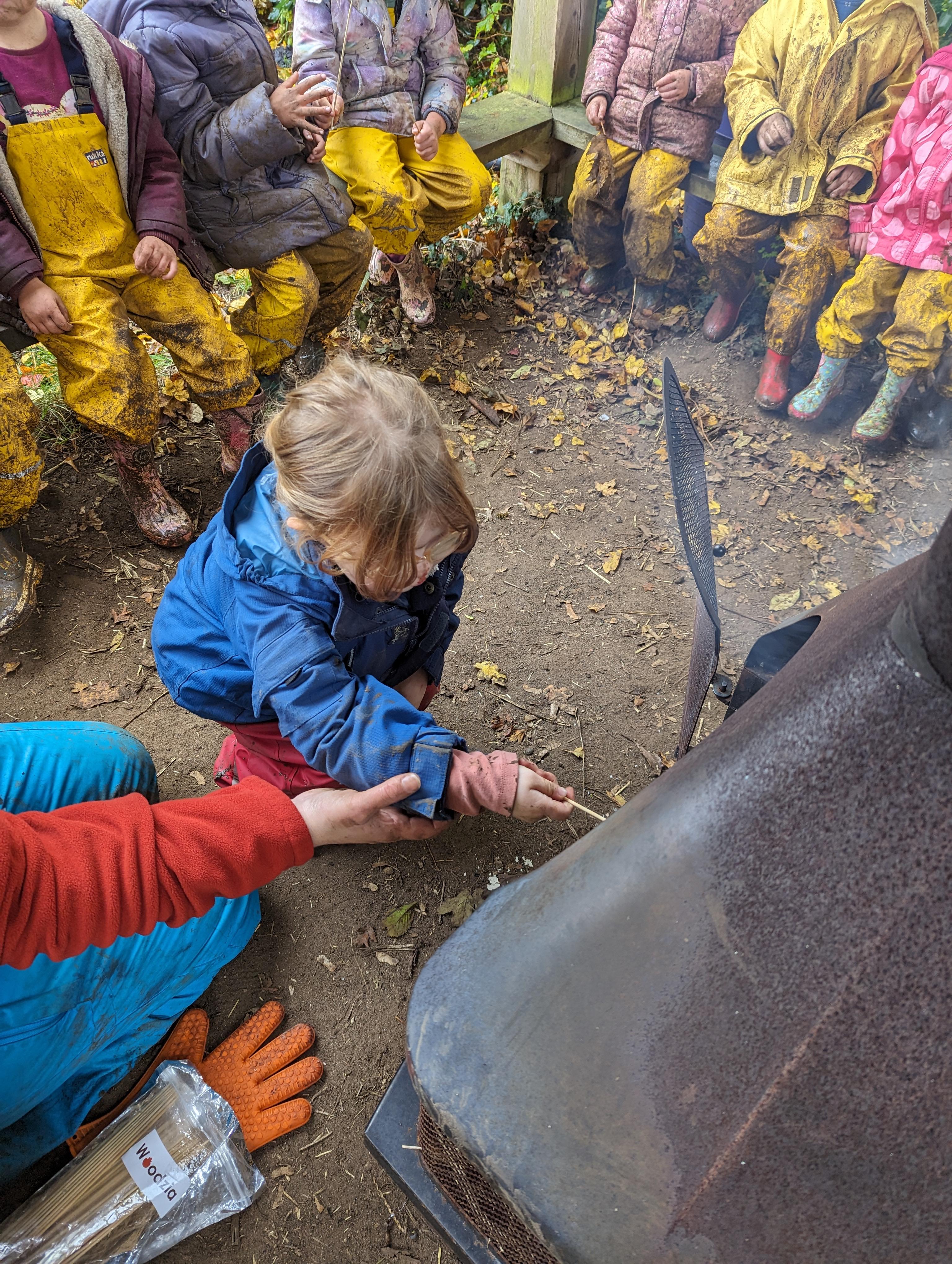 It was a crispy morning and a few of us got too cold but lots of us toasted marshmallows and explored the new dumper trucks . . .