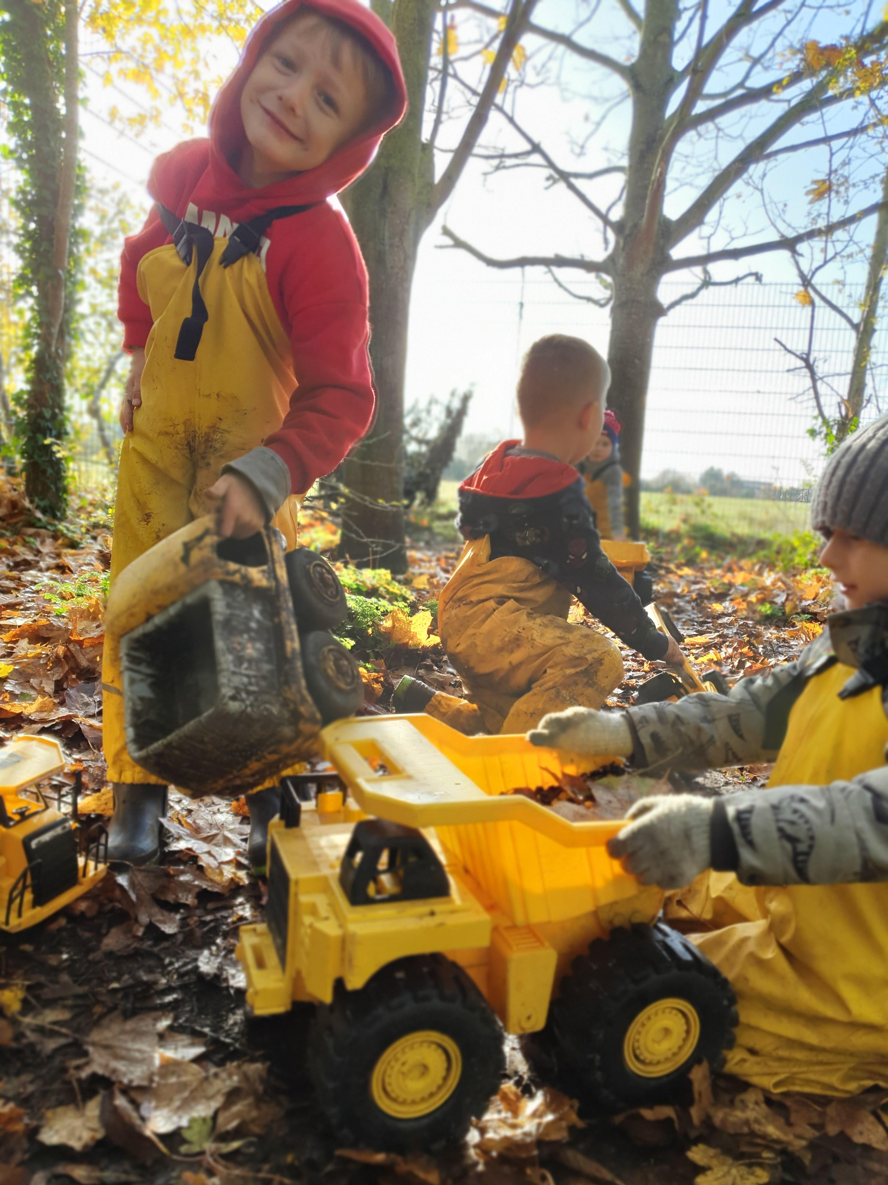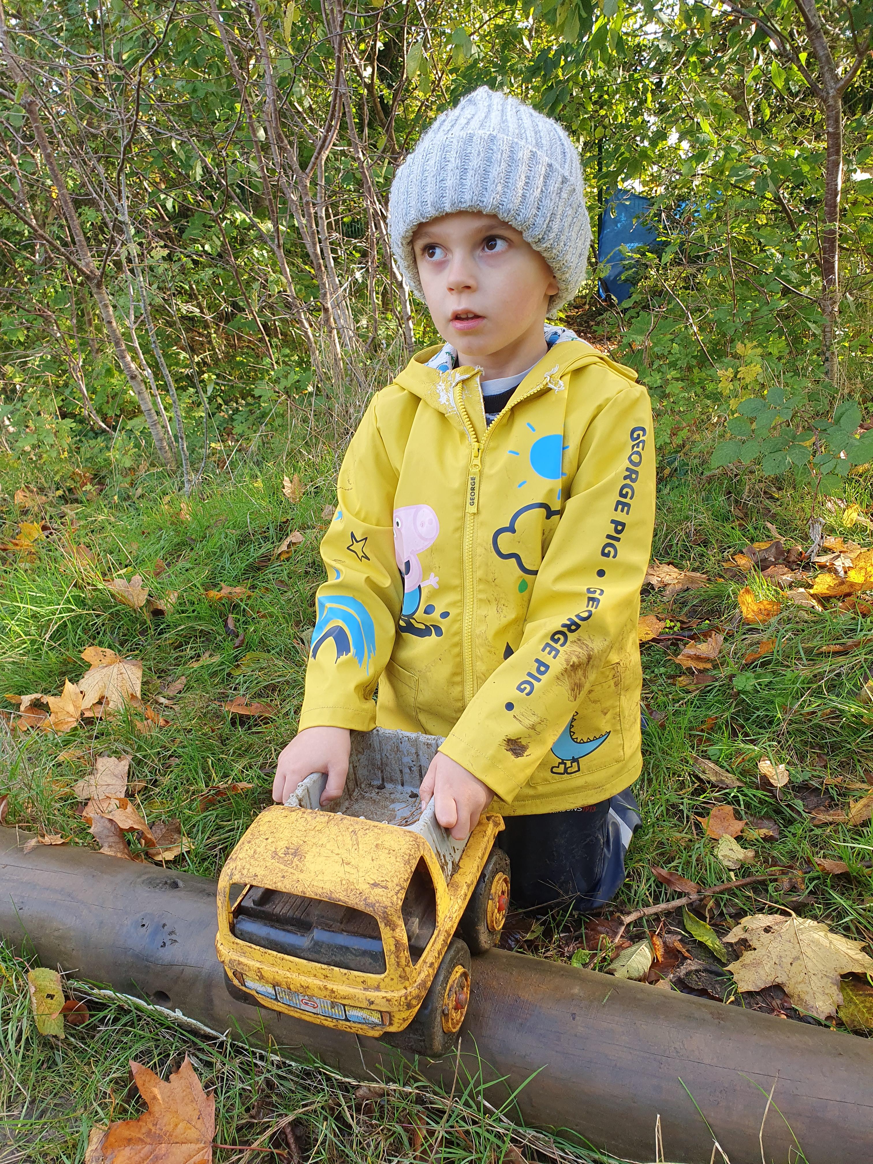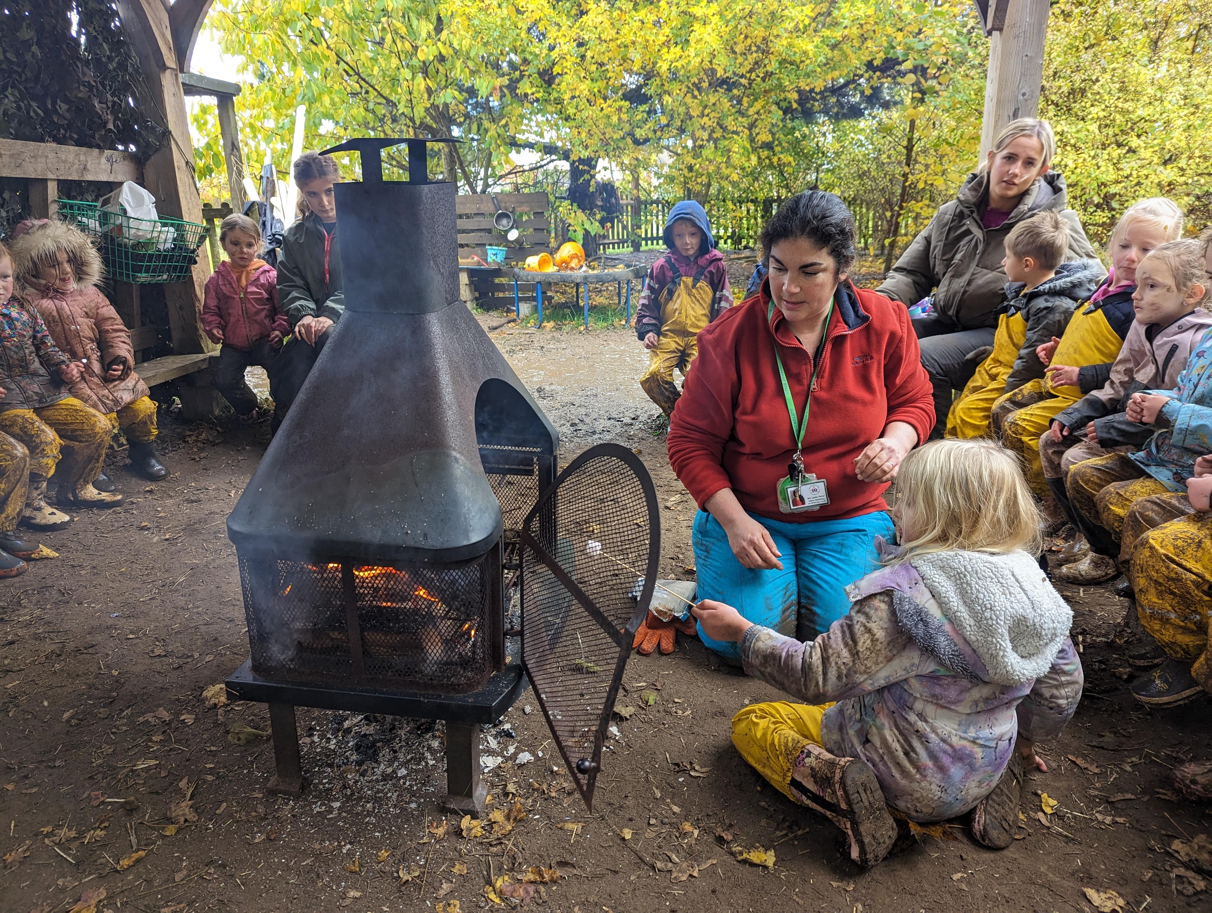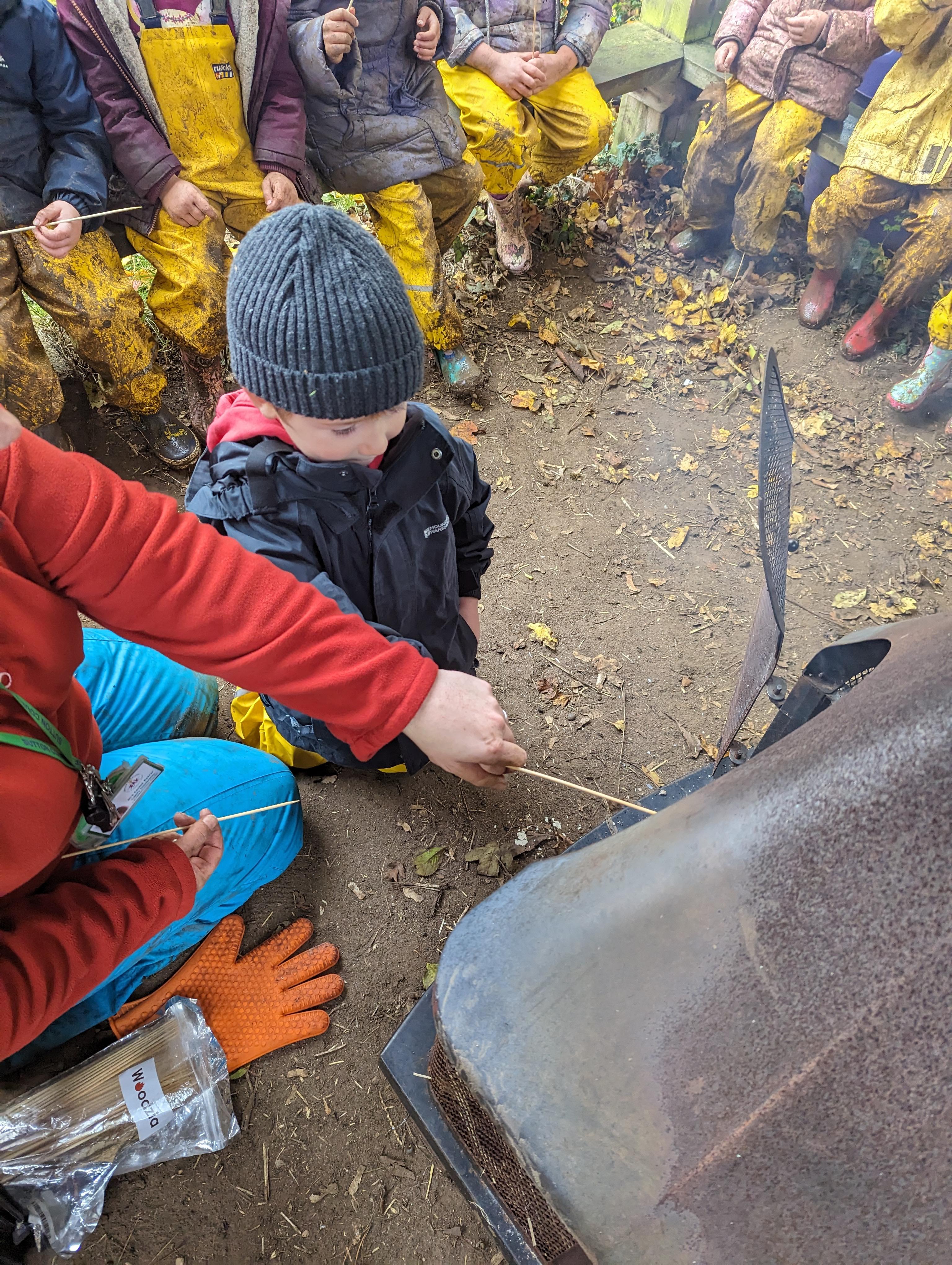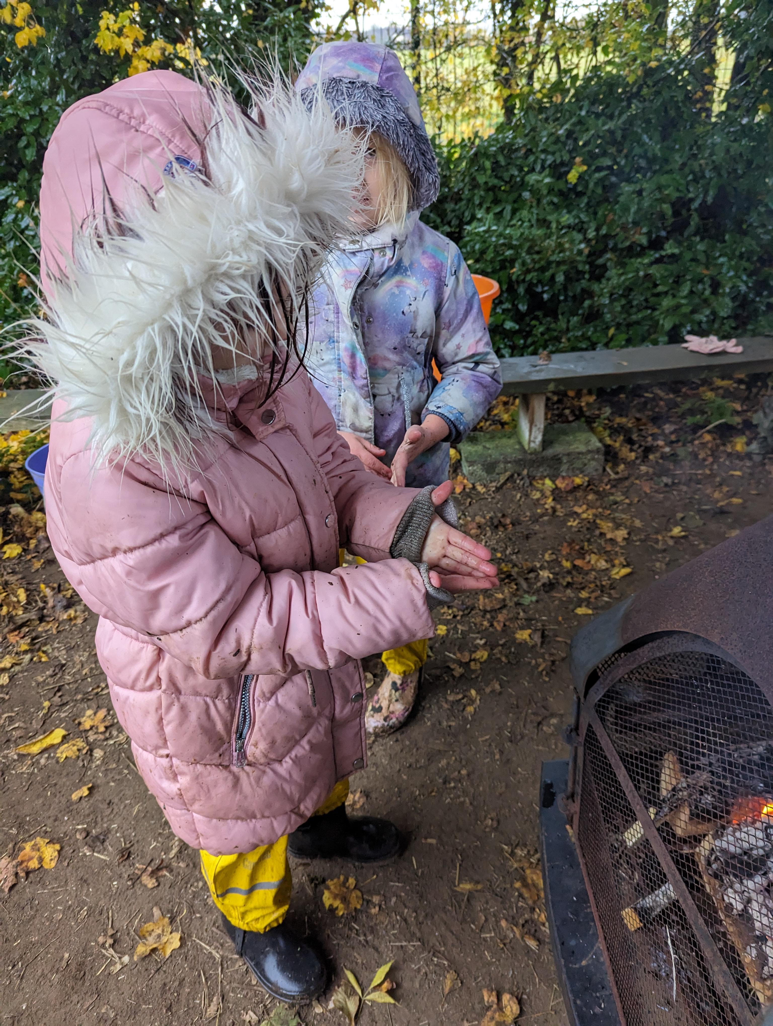 It was a crispy morning and a few of us got too cold but lots of us toasted marshmallows and explored the new dumper trucks . . .
