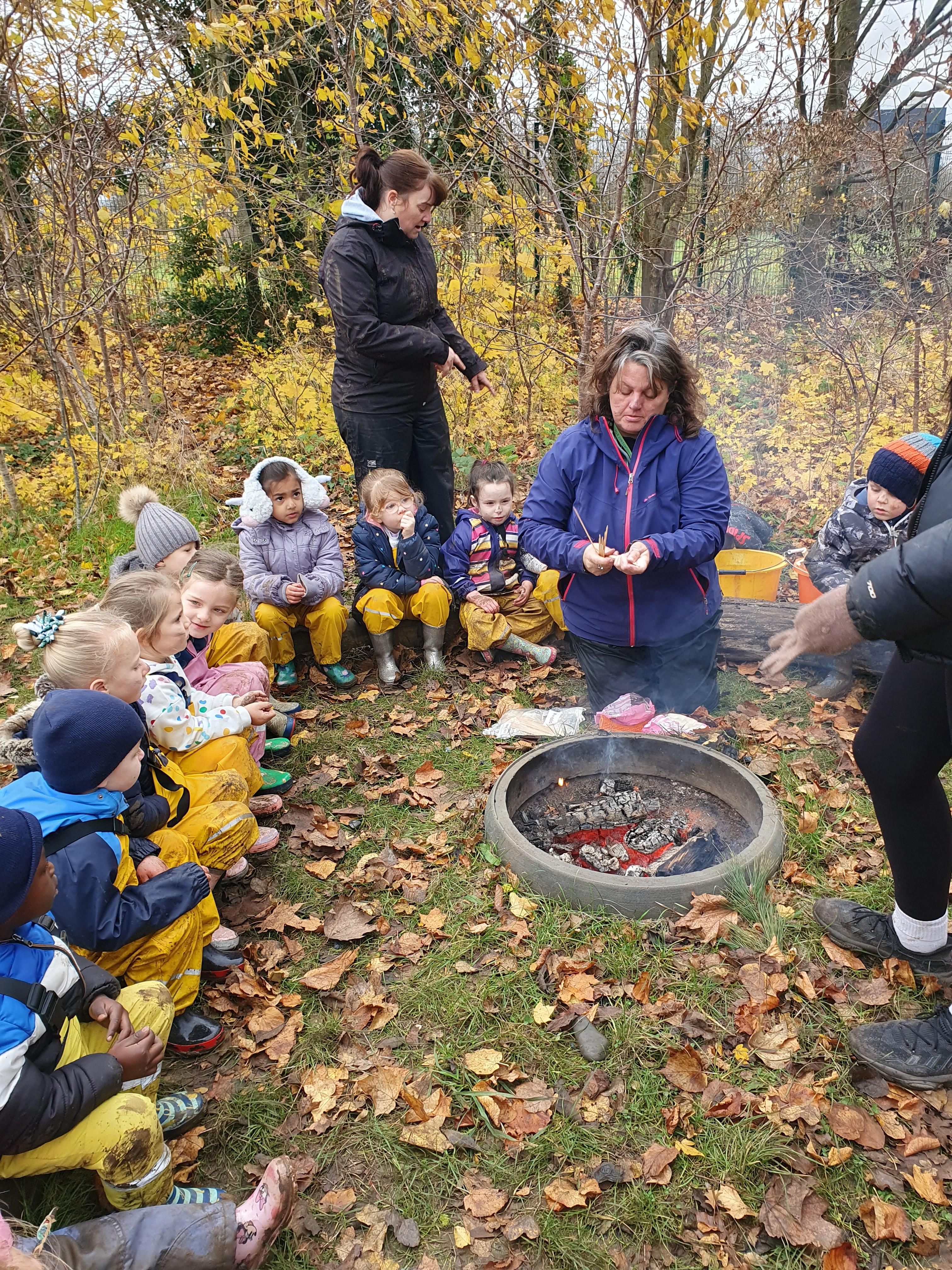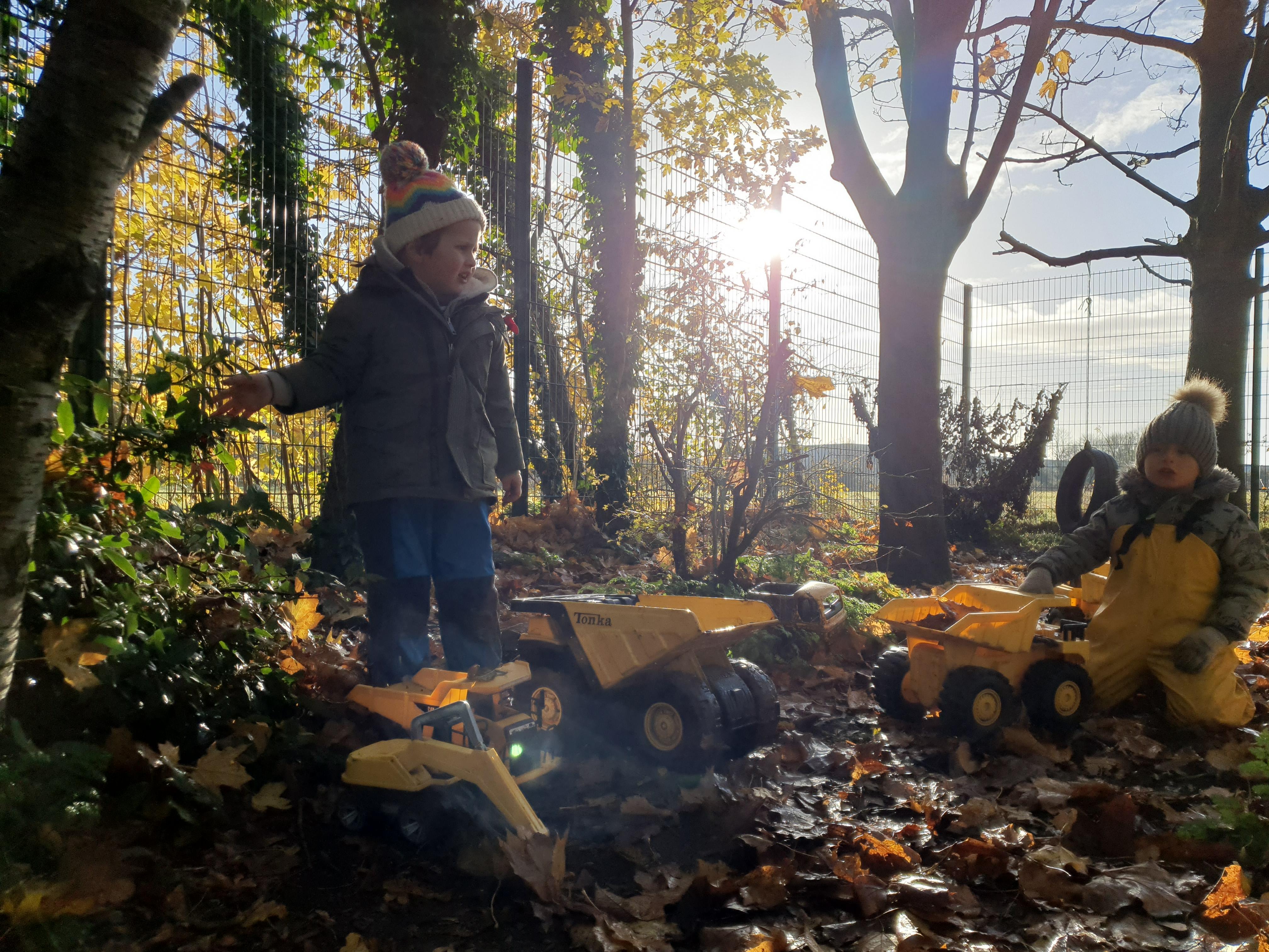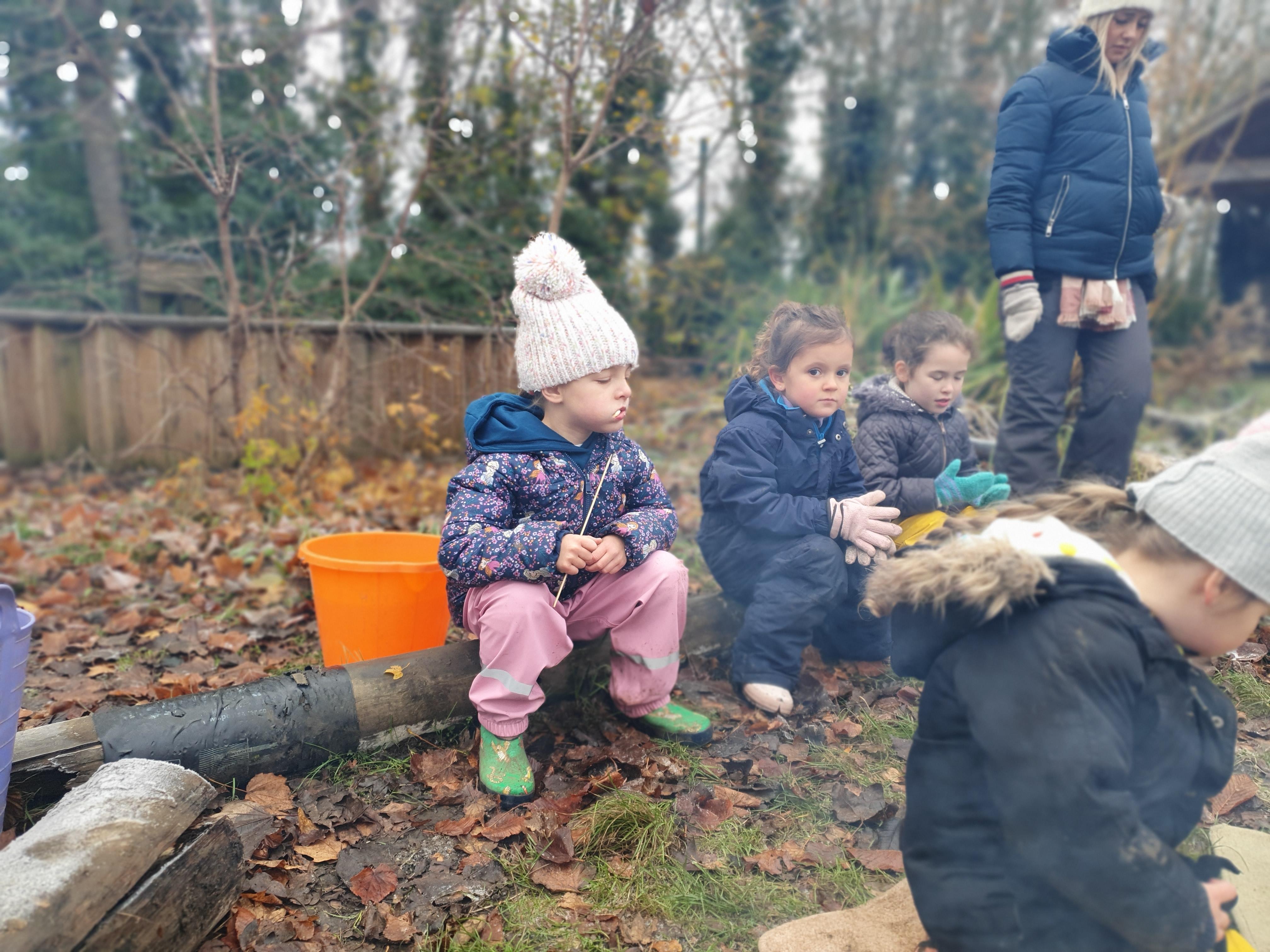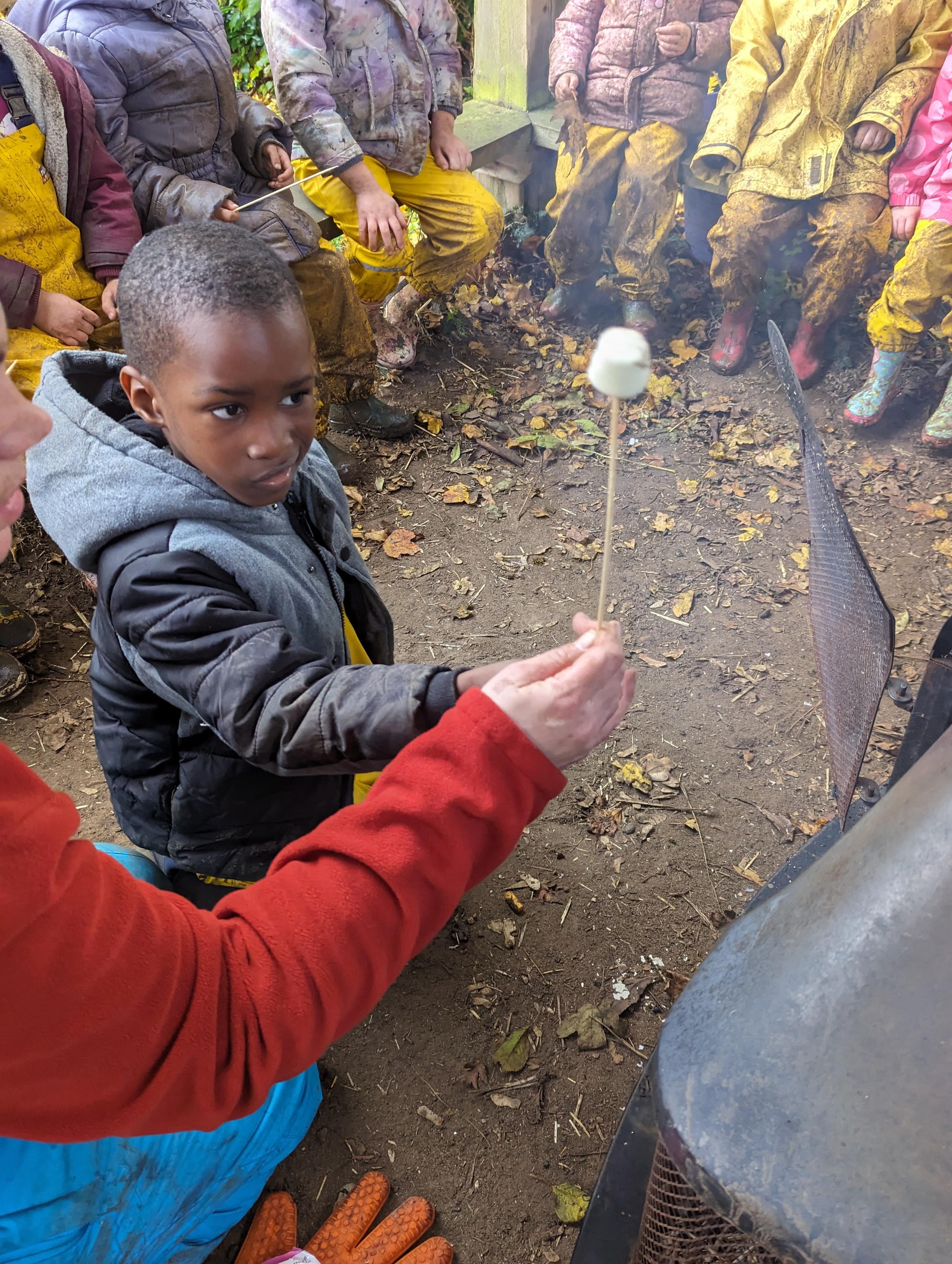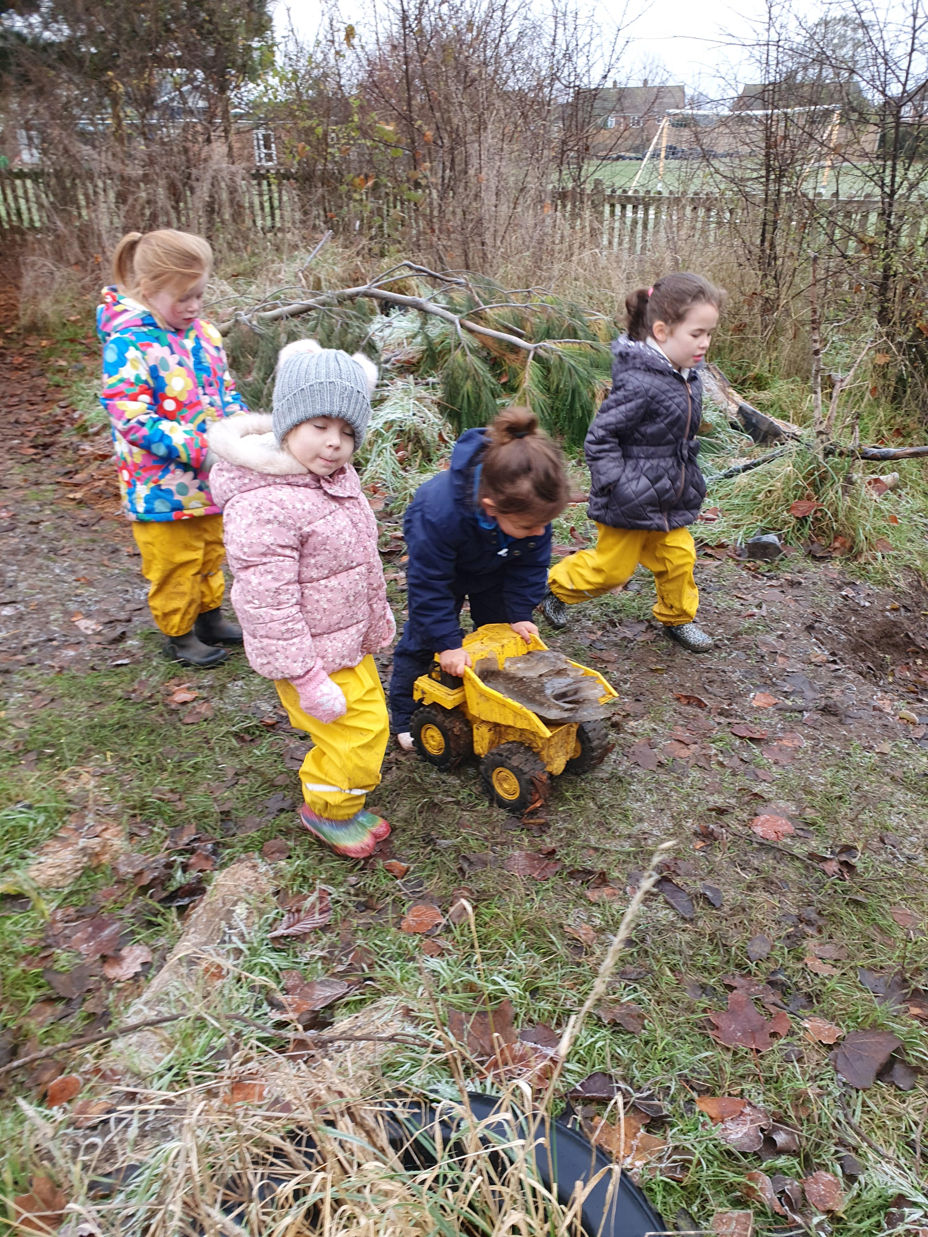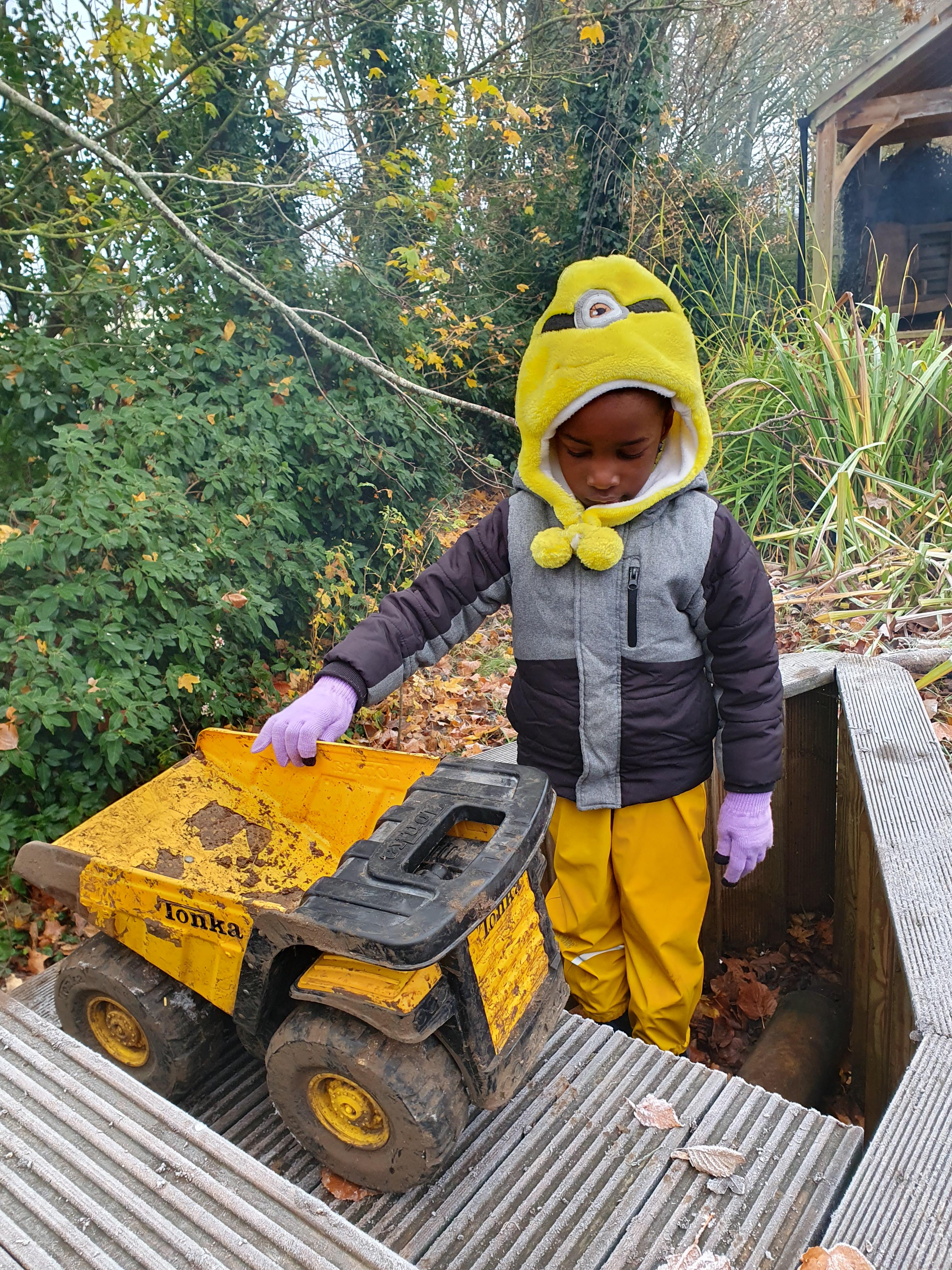 It was a crispy morning and a few of us got too cold but lots of us toasted marshmallows and explored the new dumper trucks . . .