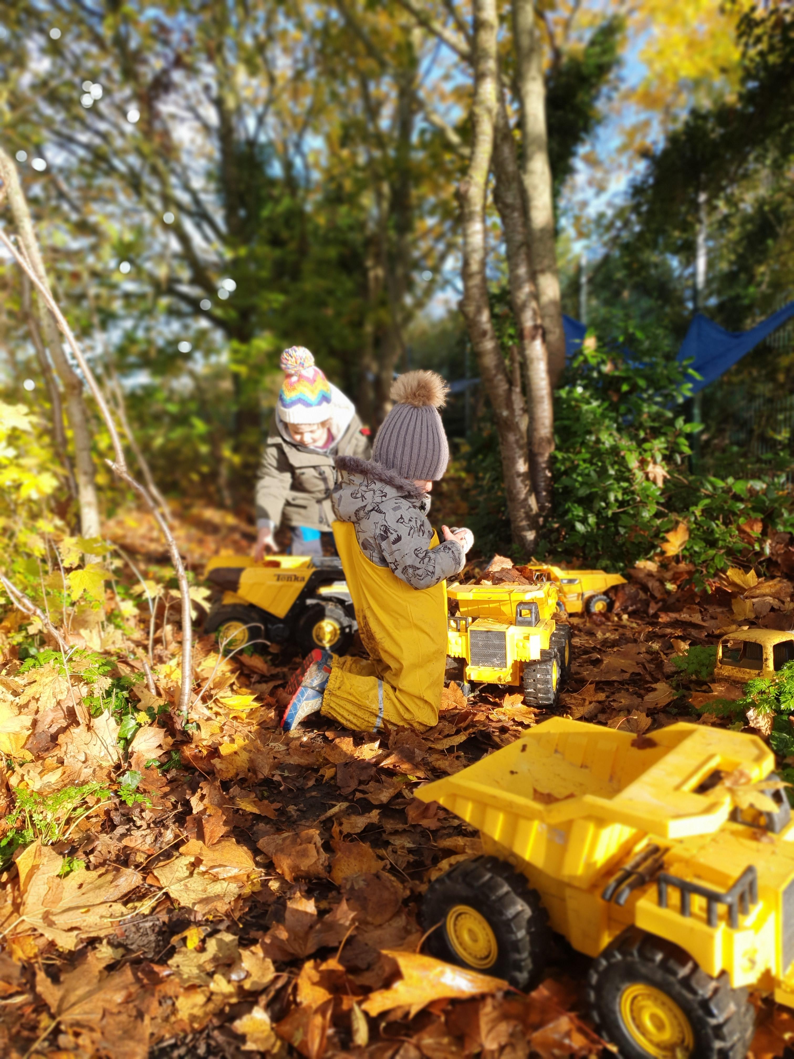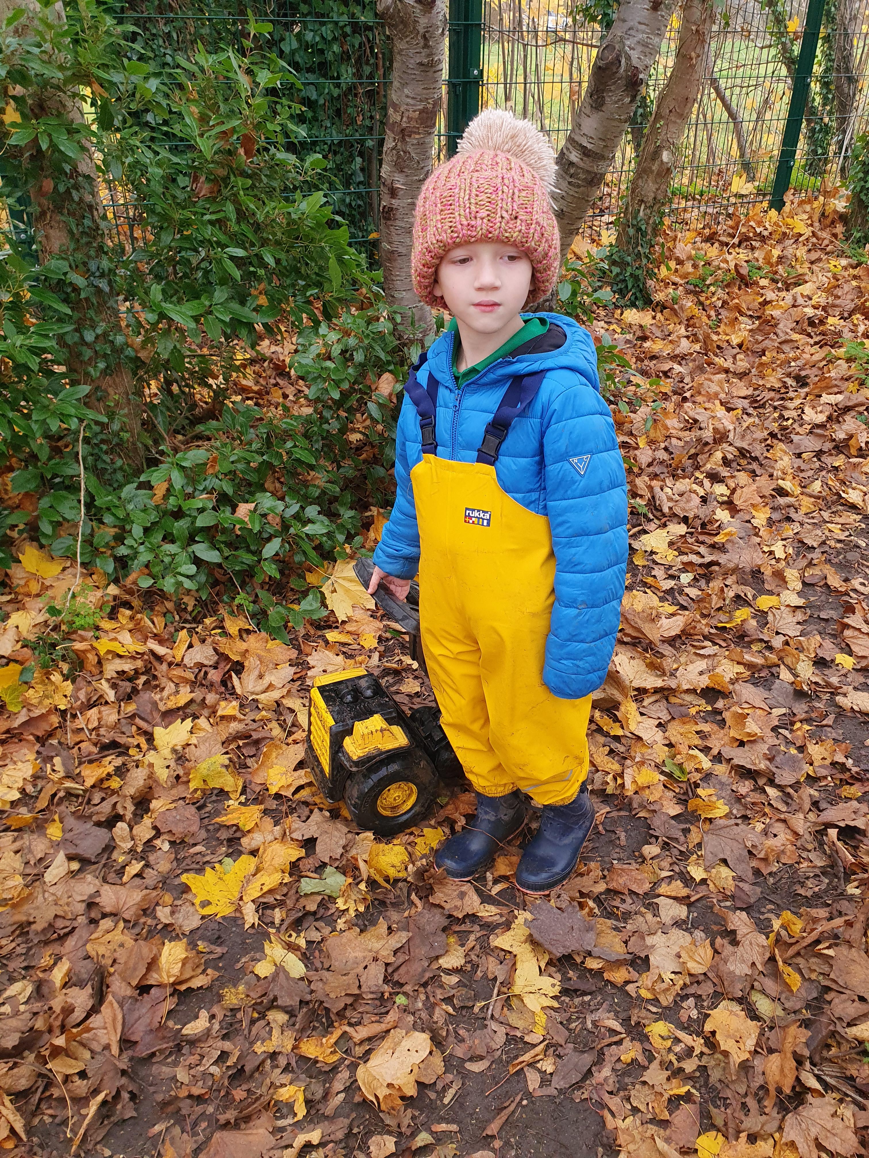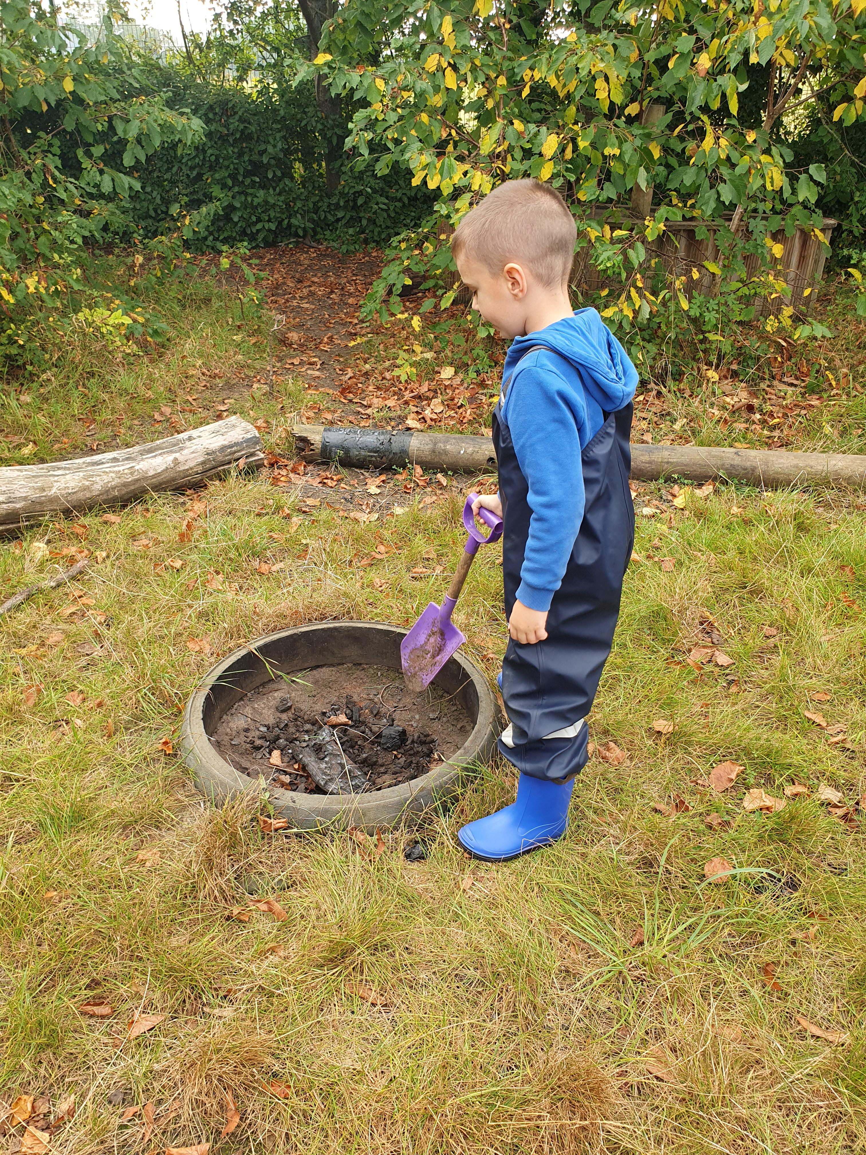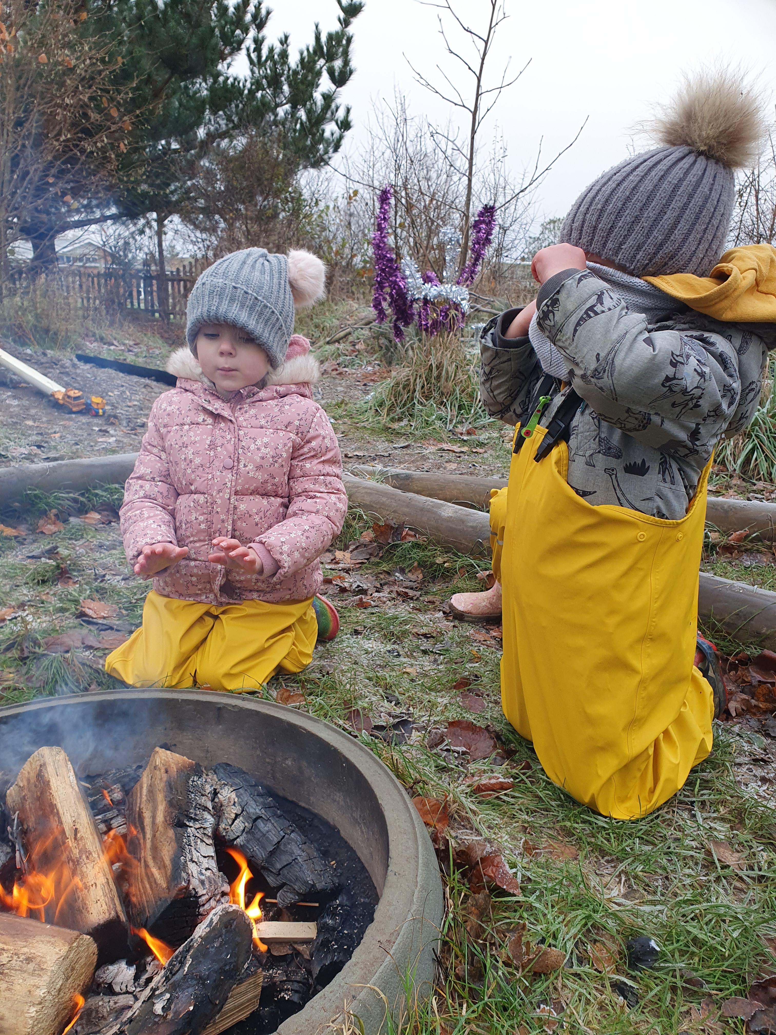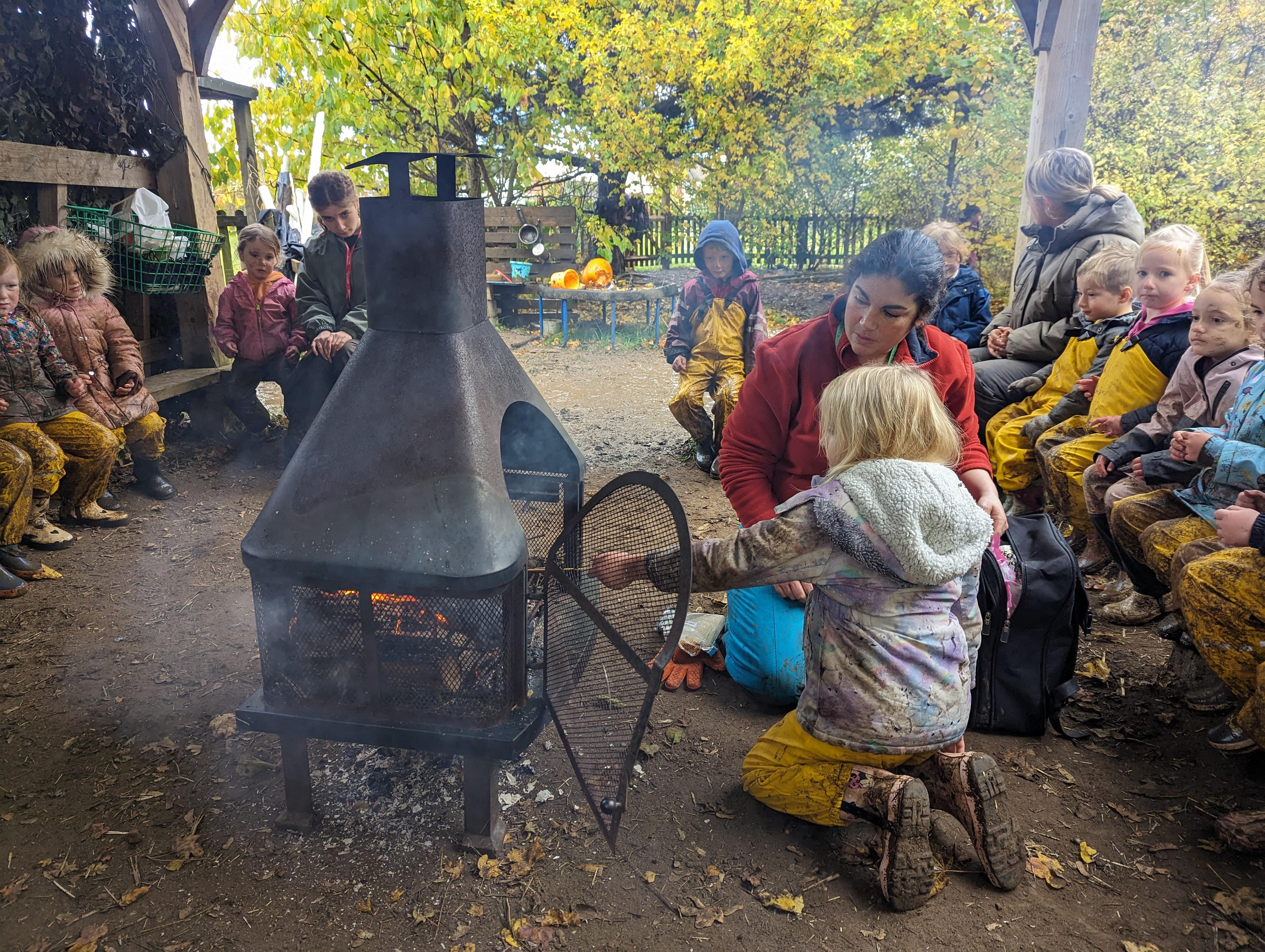 It was a crispy morning and a few of us got too cold but lots of us toasted marshmallows and explored the new dumper trucks . . .