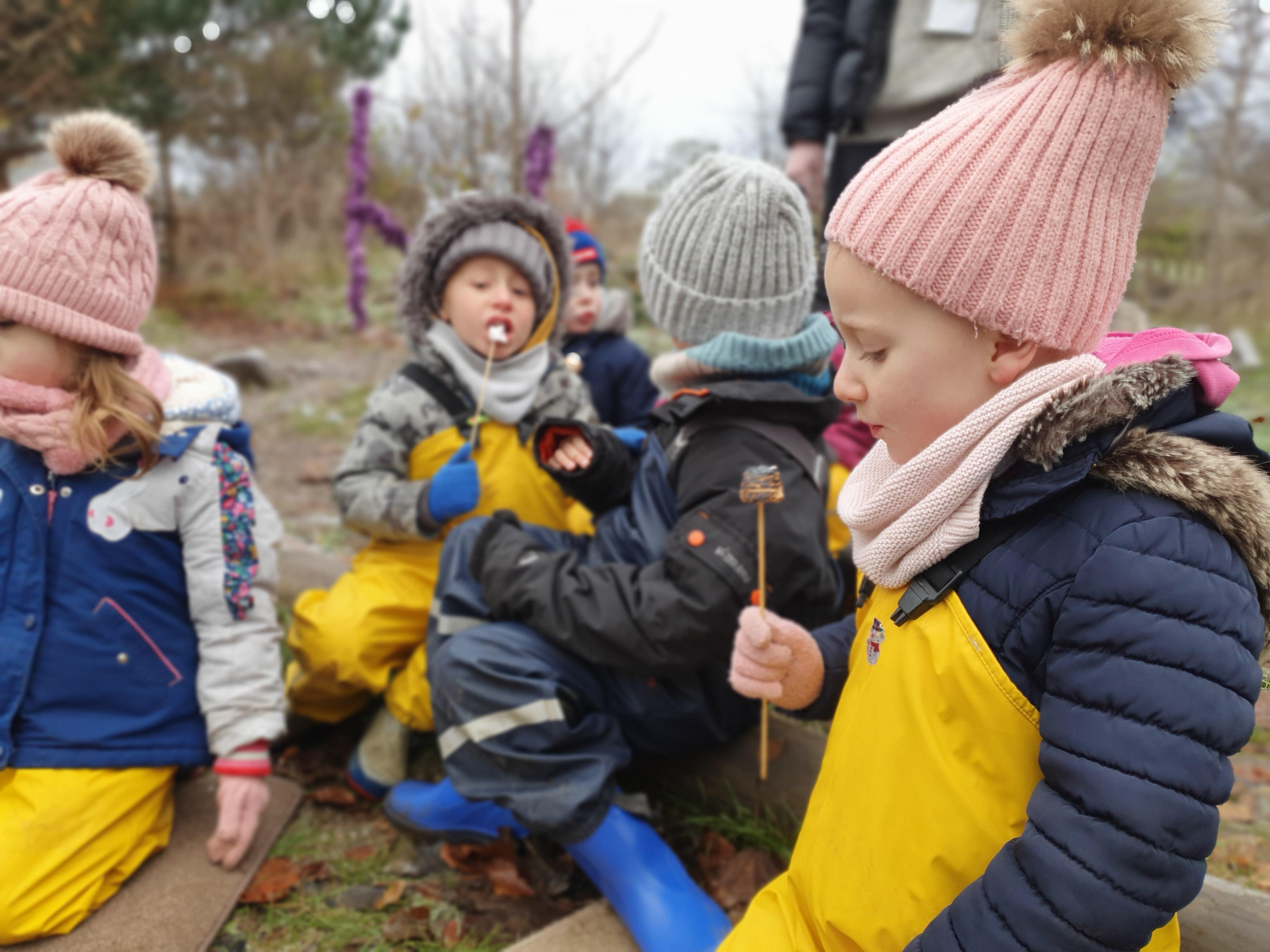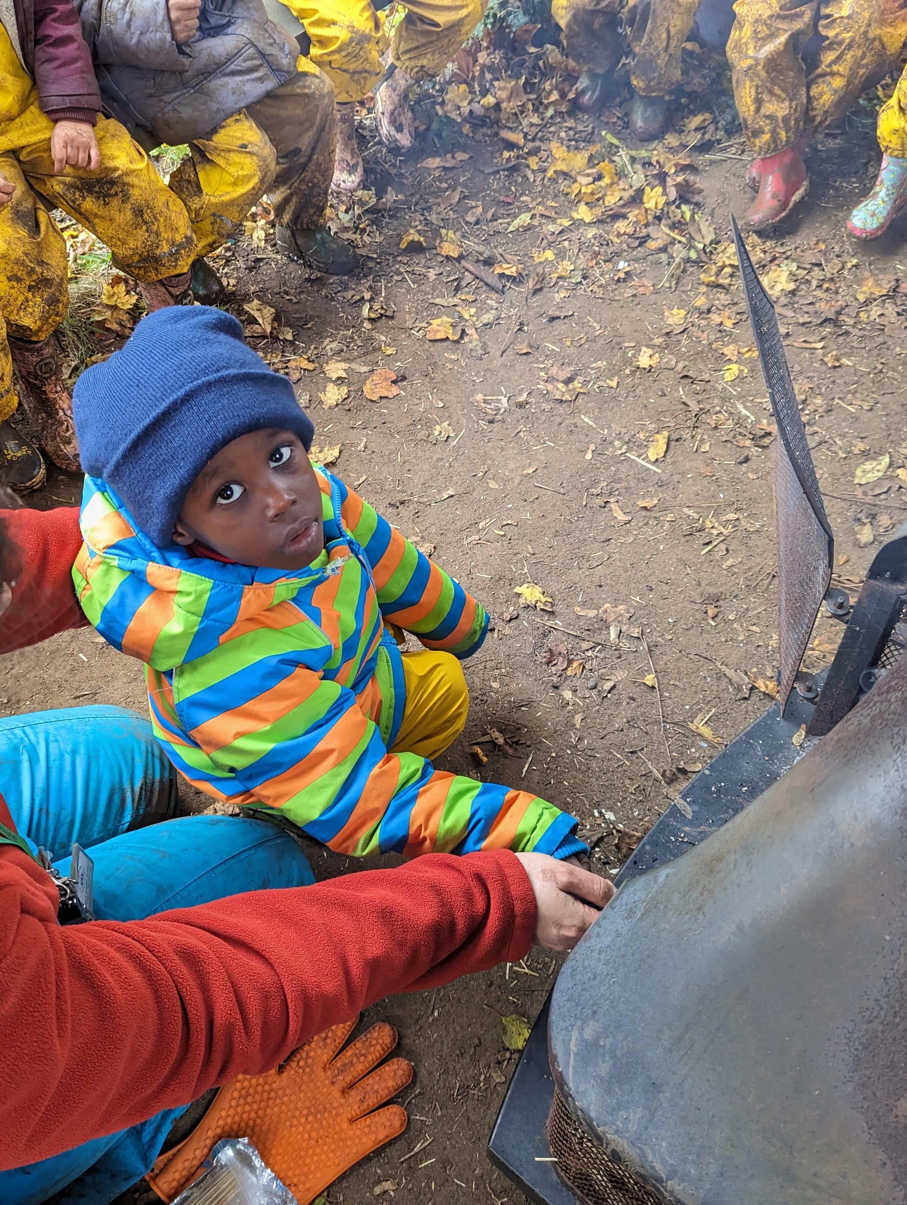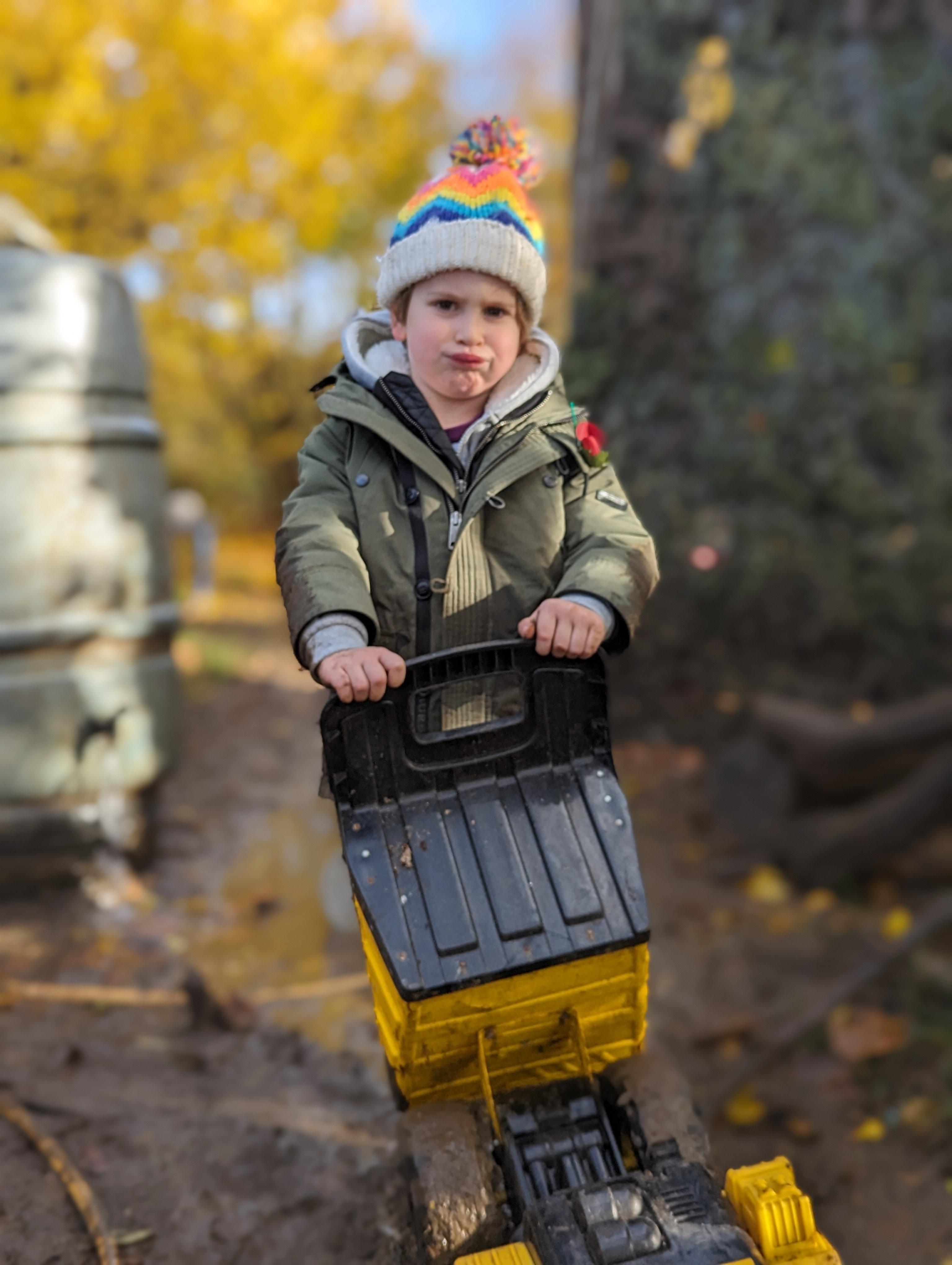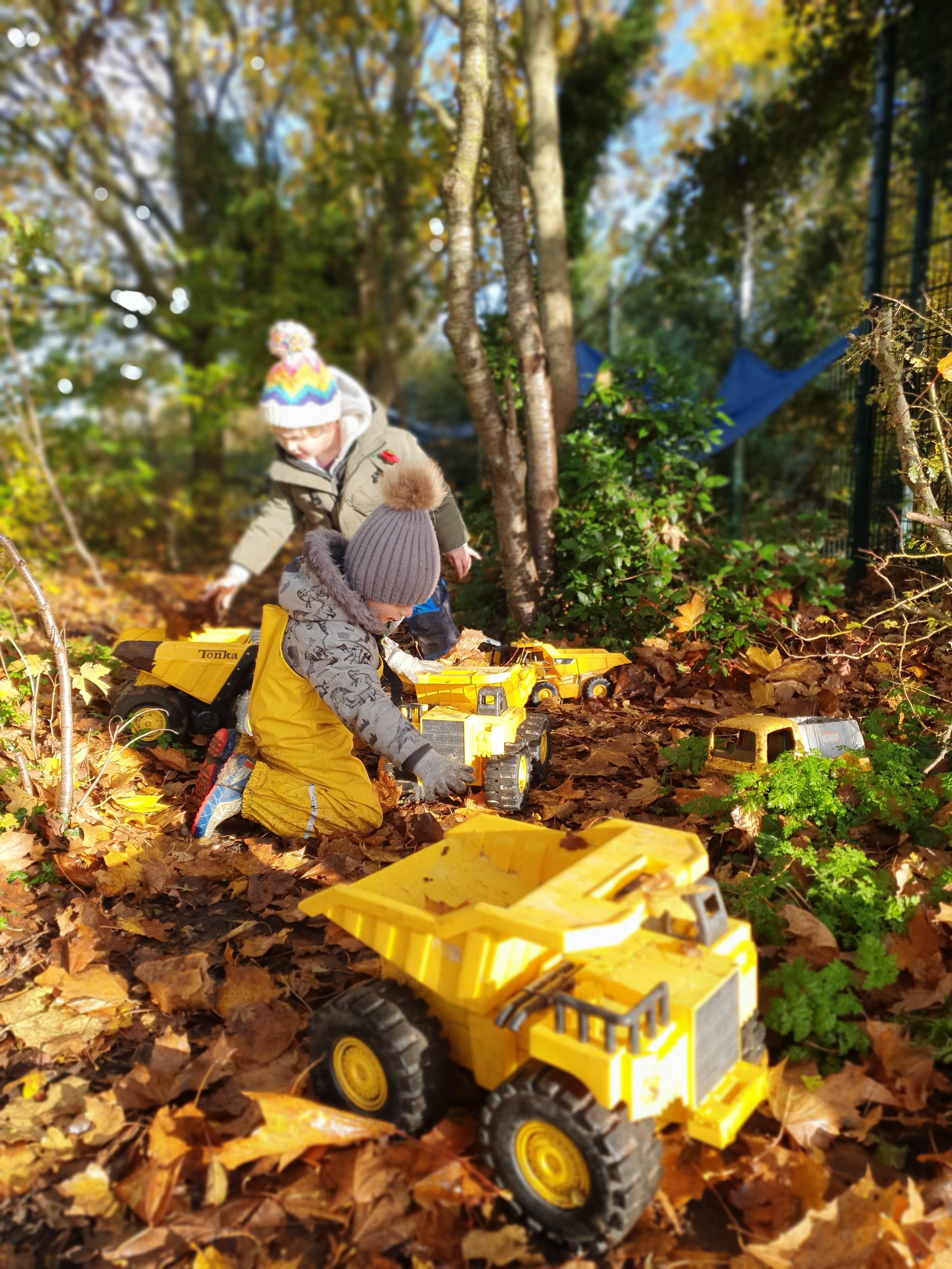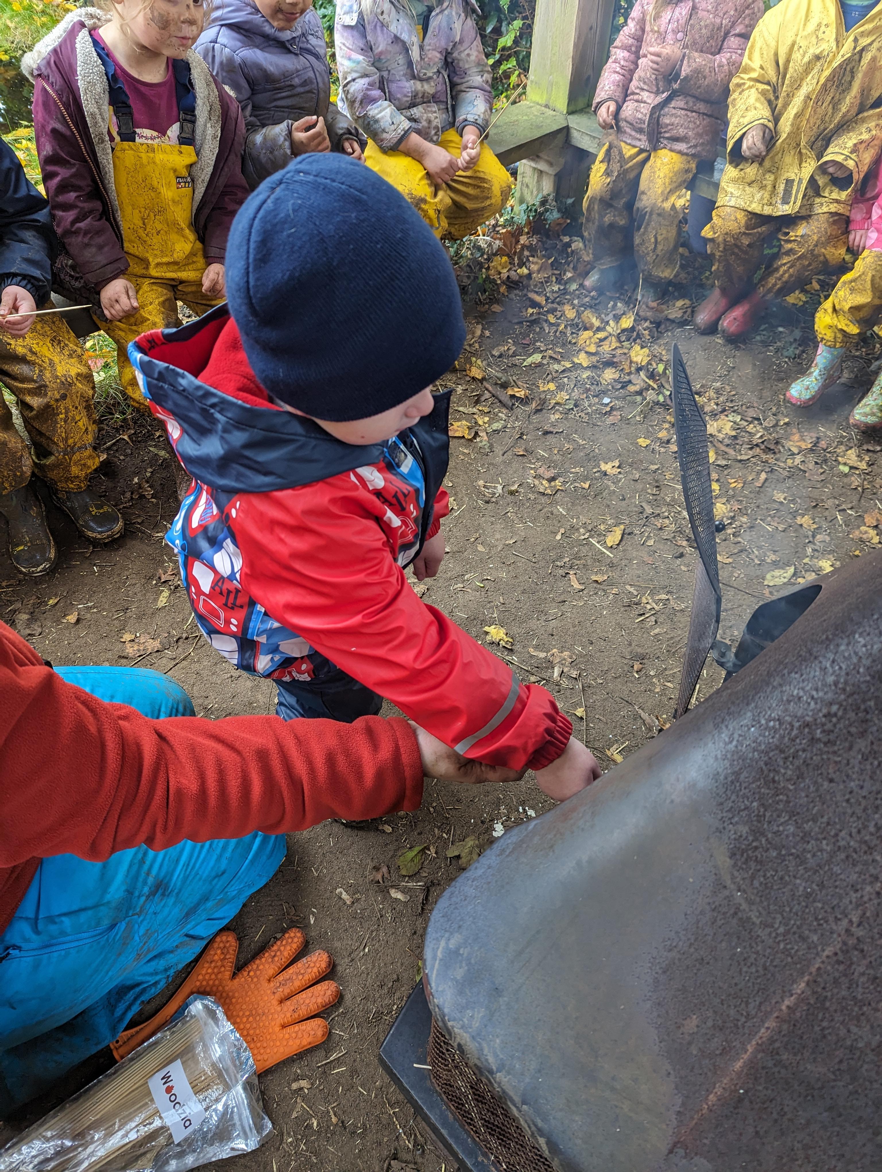 It was a crispy morning and a few of us got too cold but lots of us toasted marshmallows and explored the new dumper trucks . . .