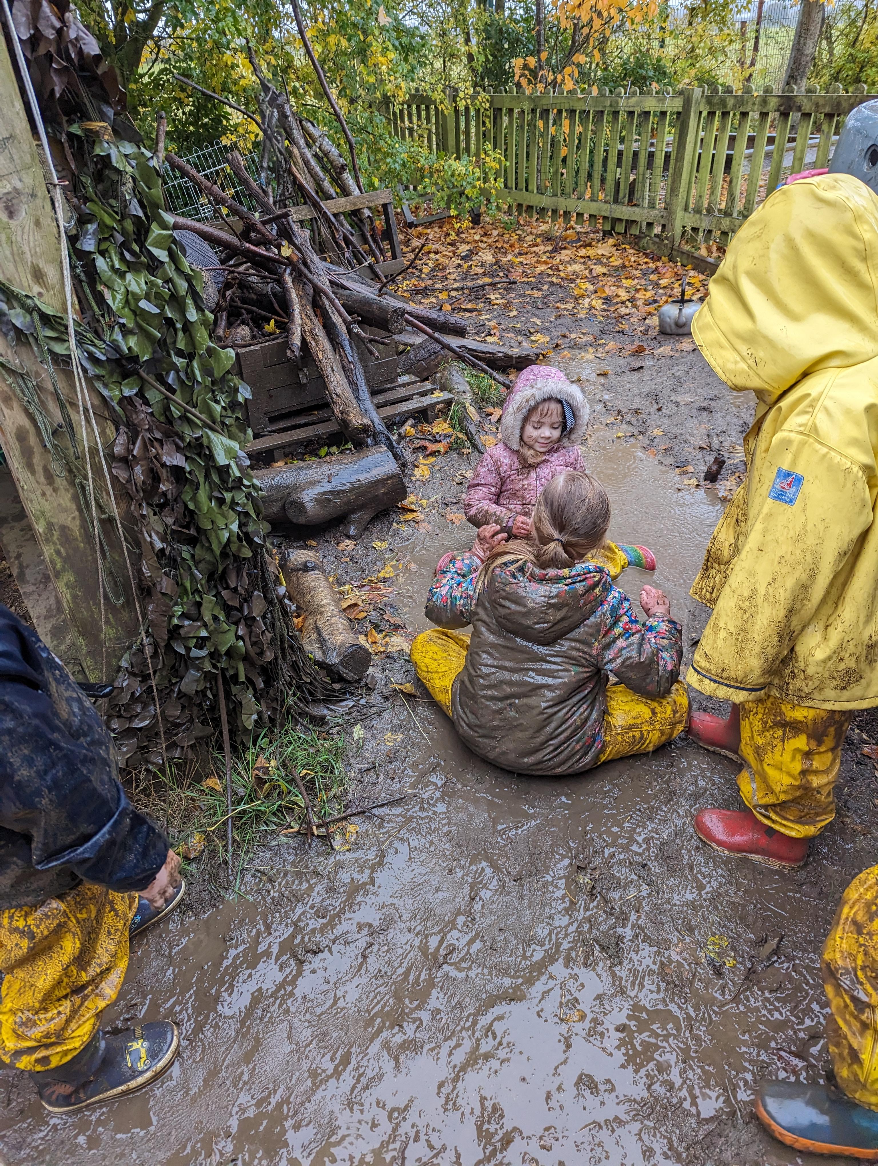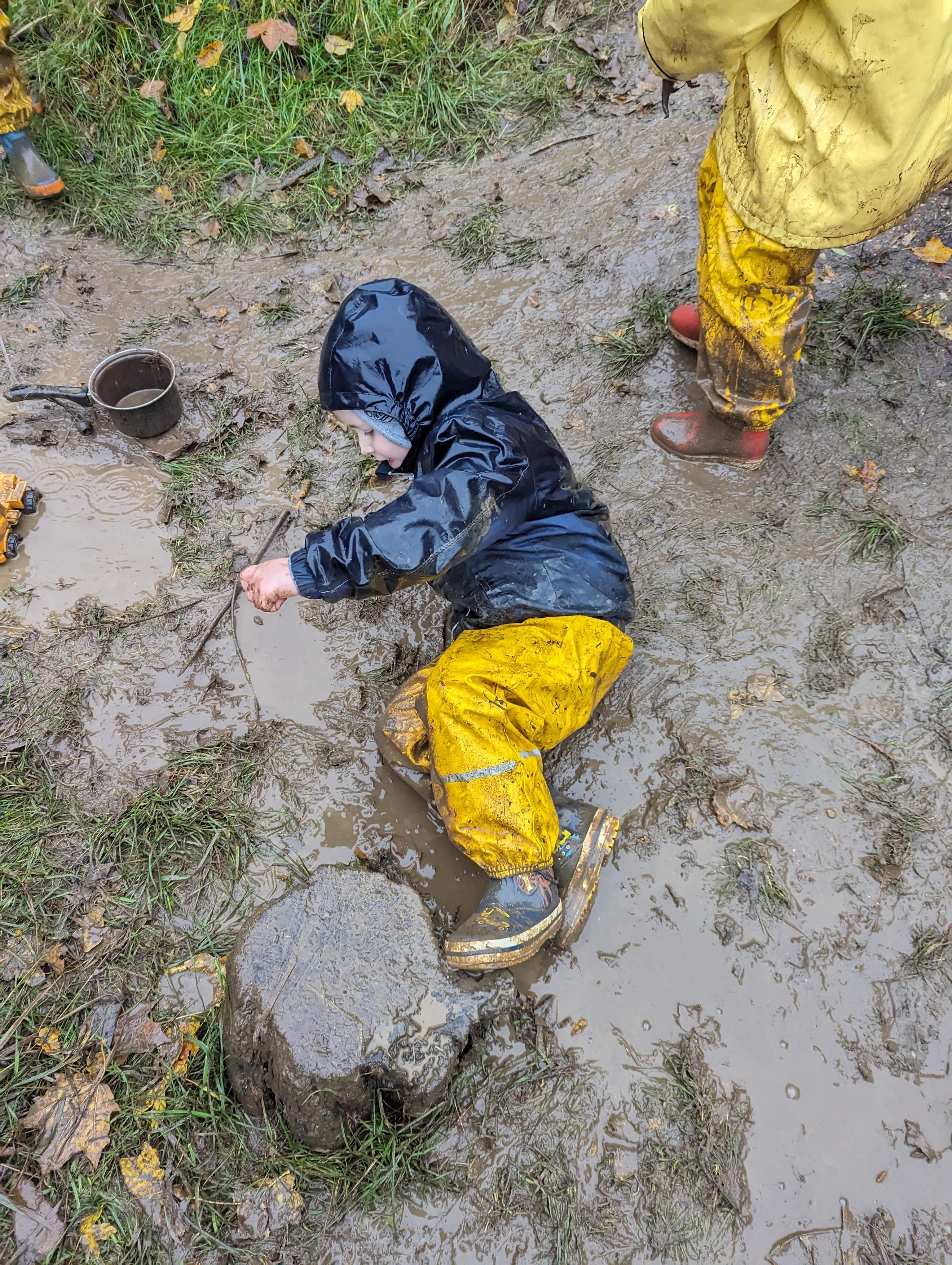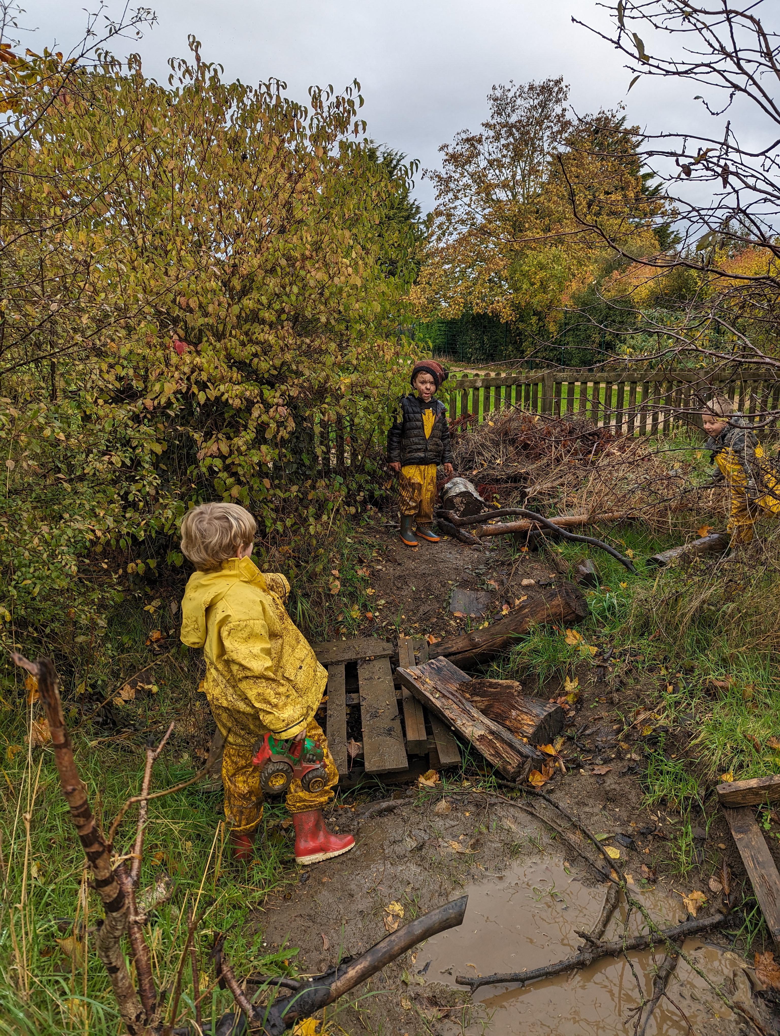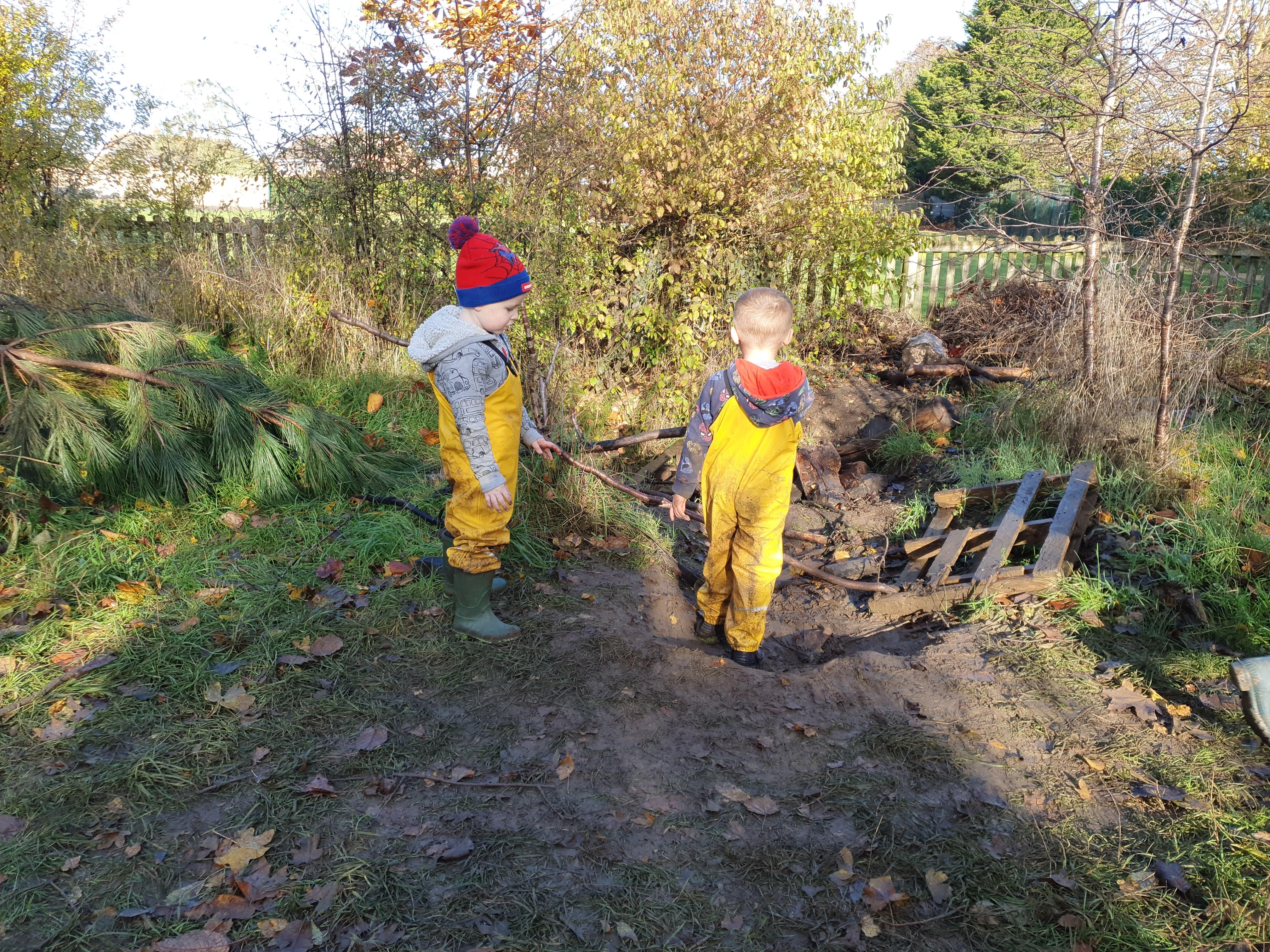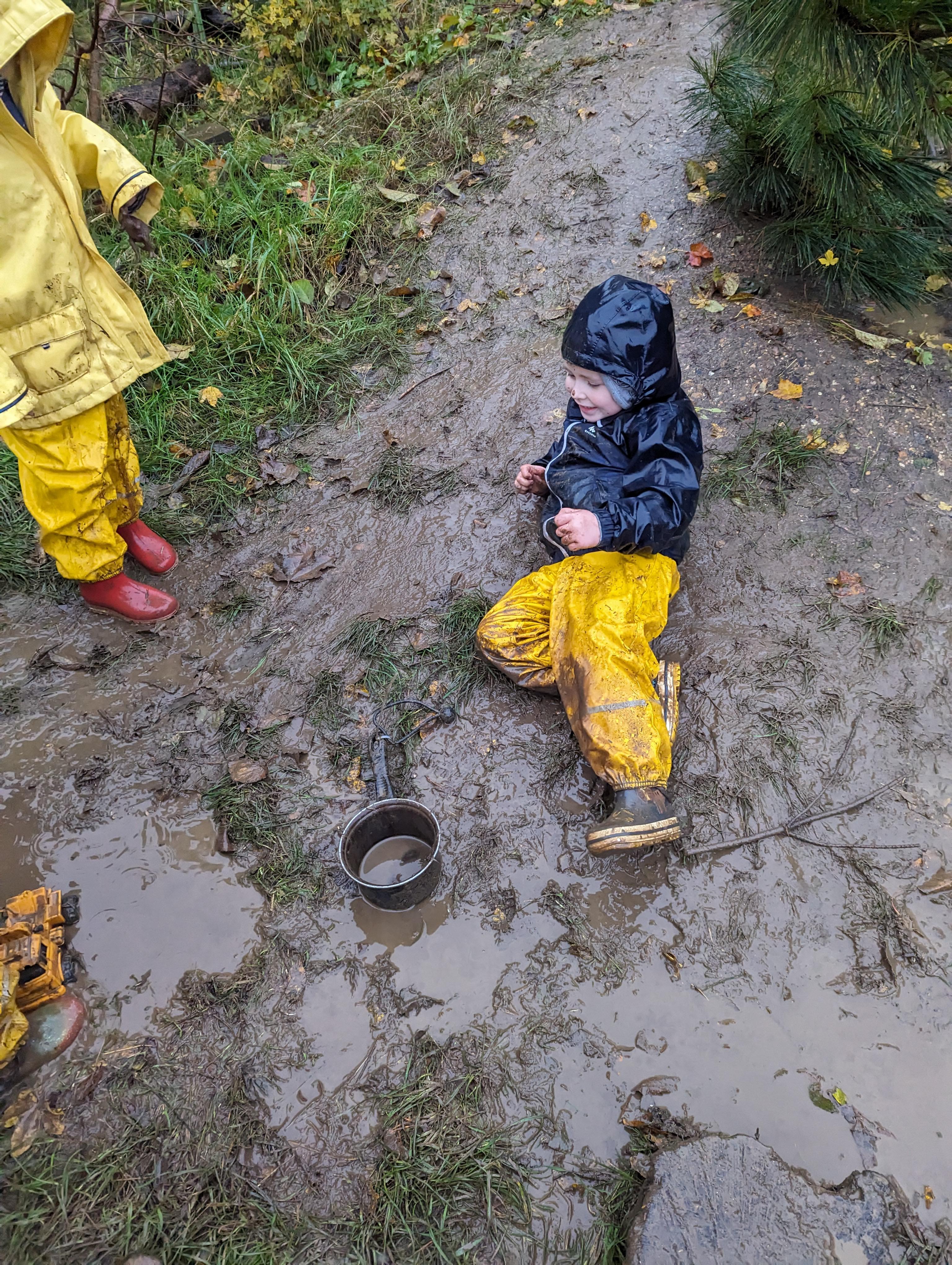 It was a very muddy forest school session this week . . .