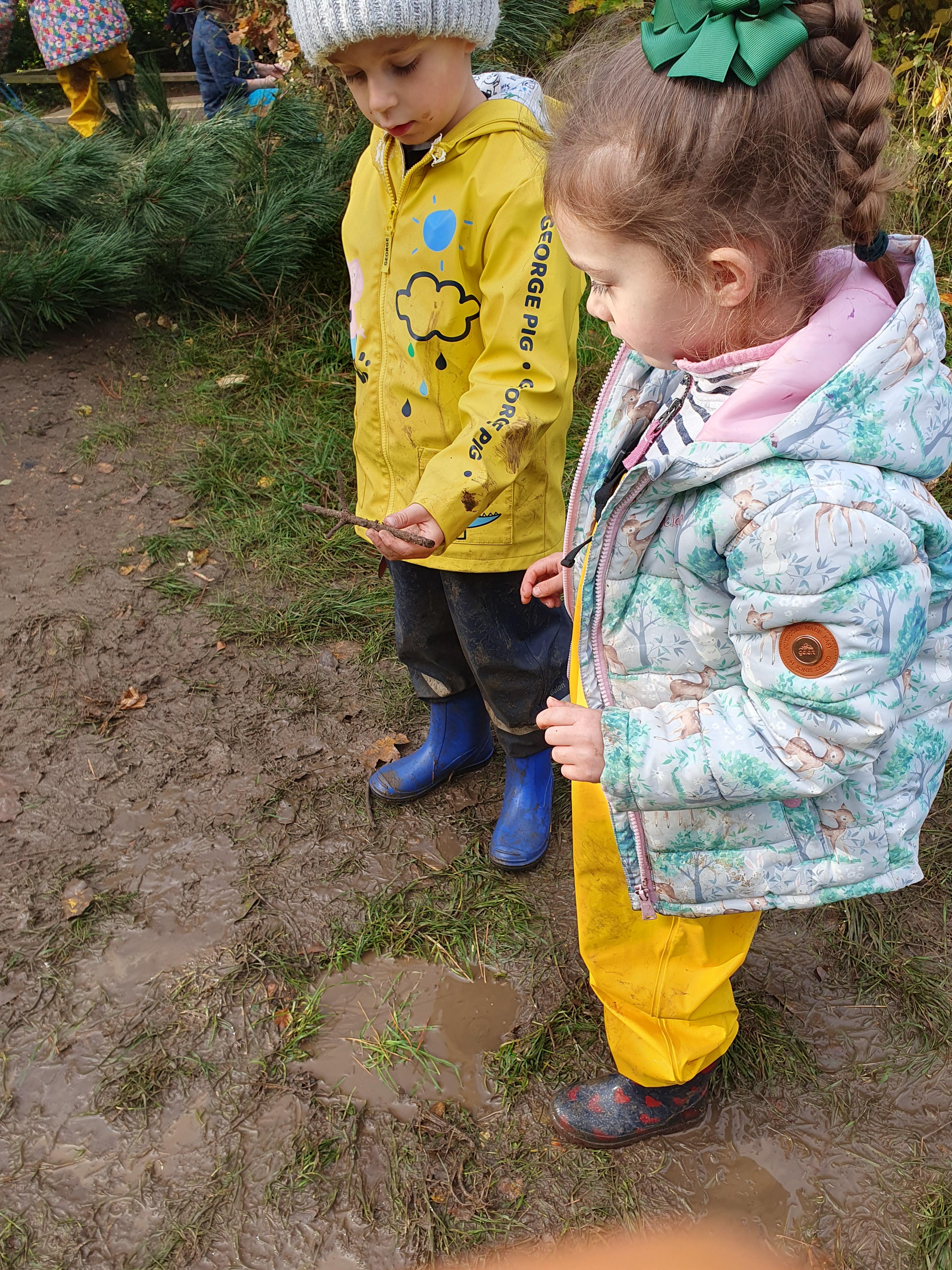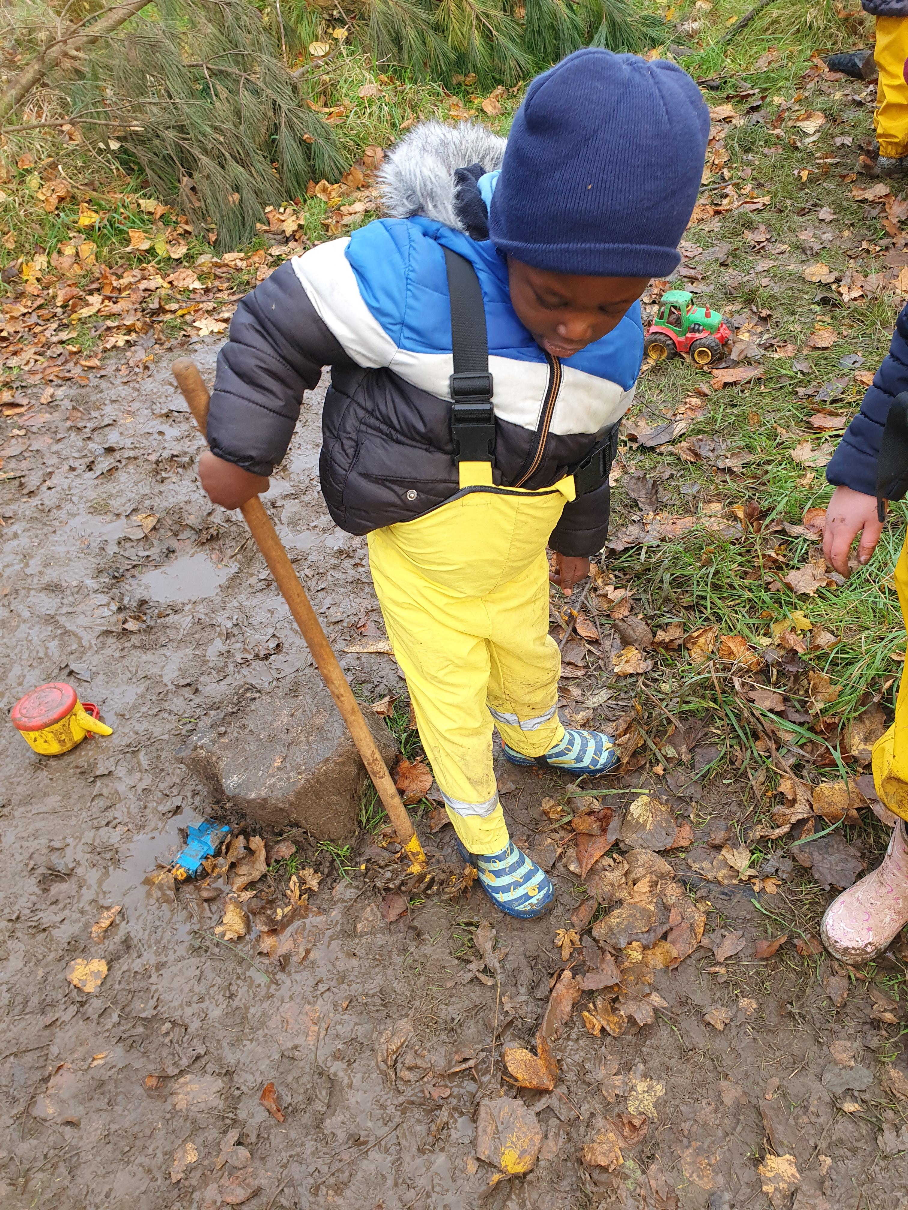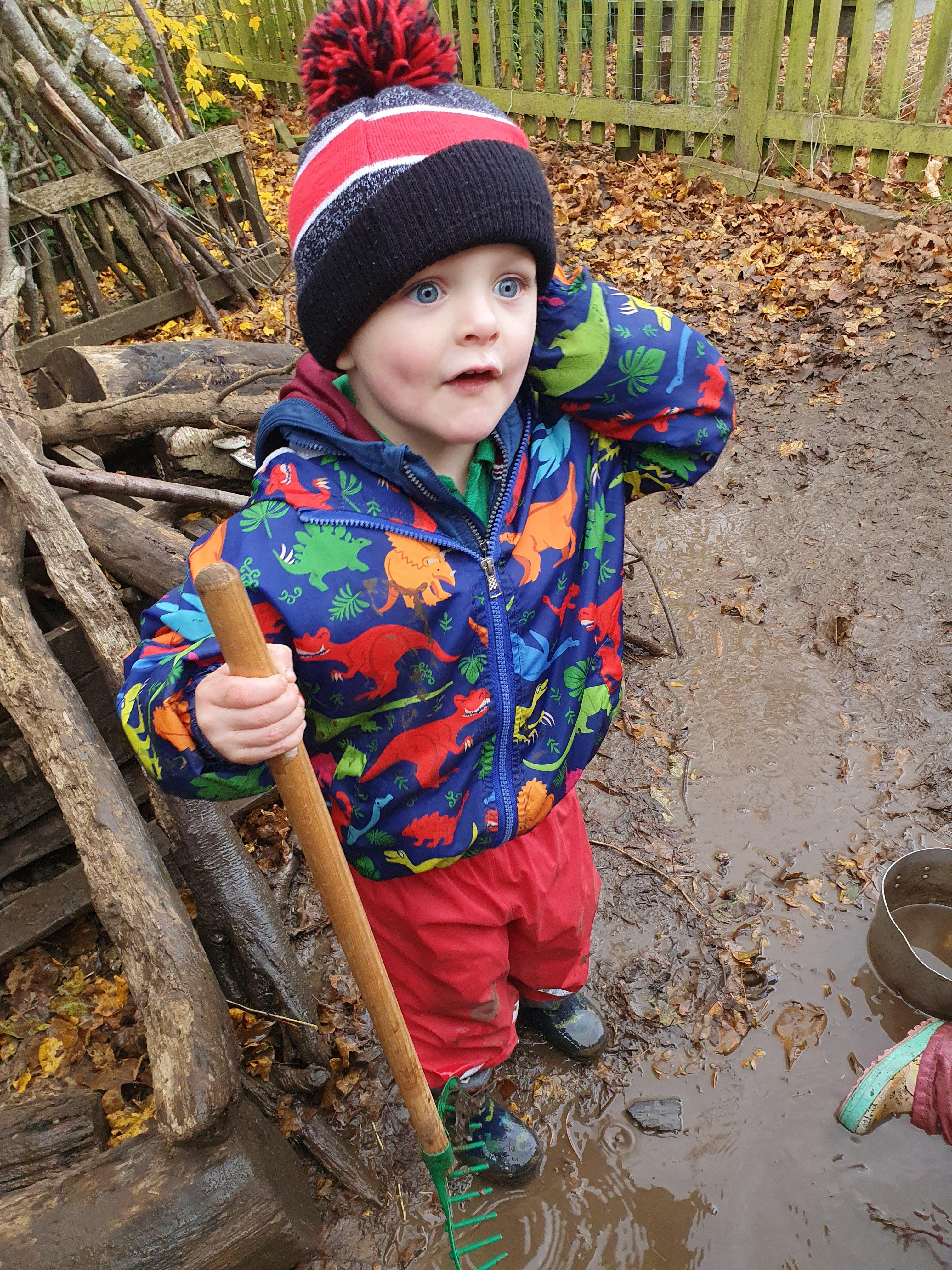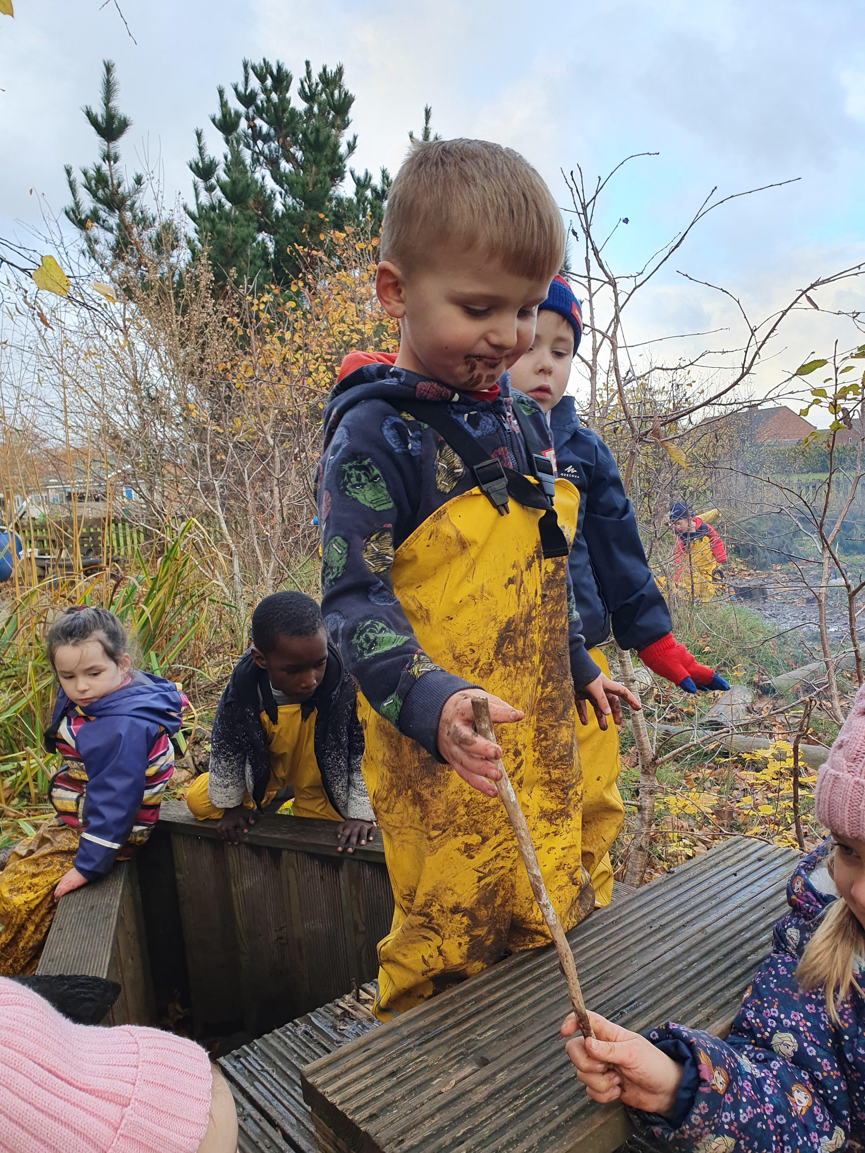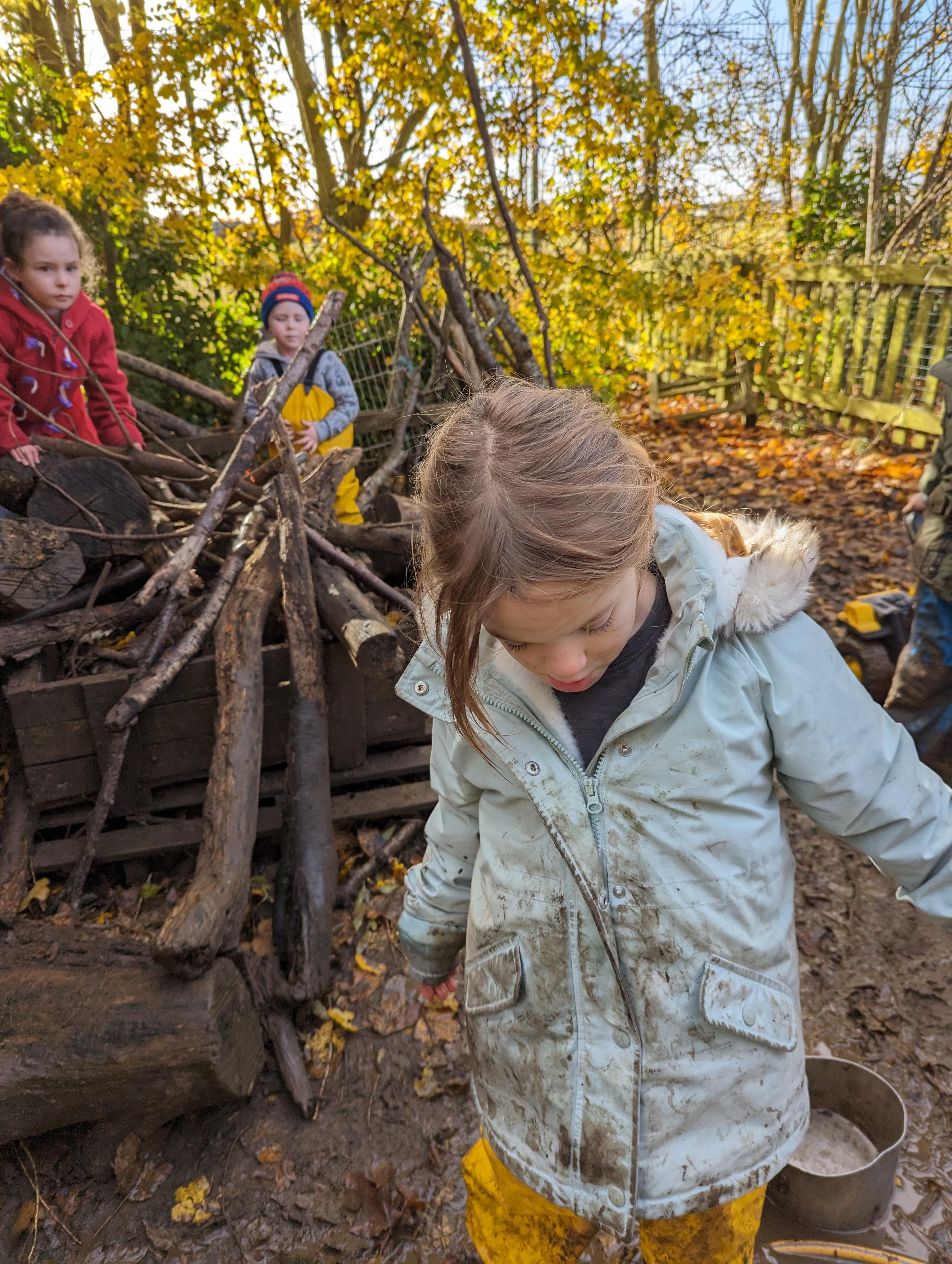 It was a very muddy forest school session this week . . .