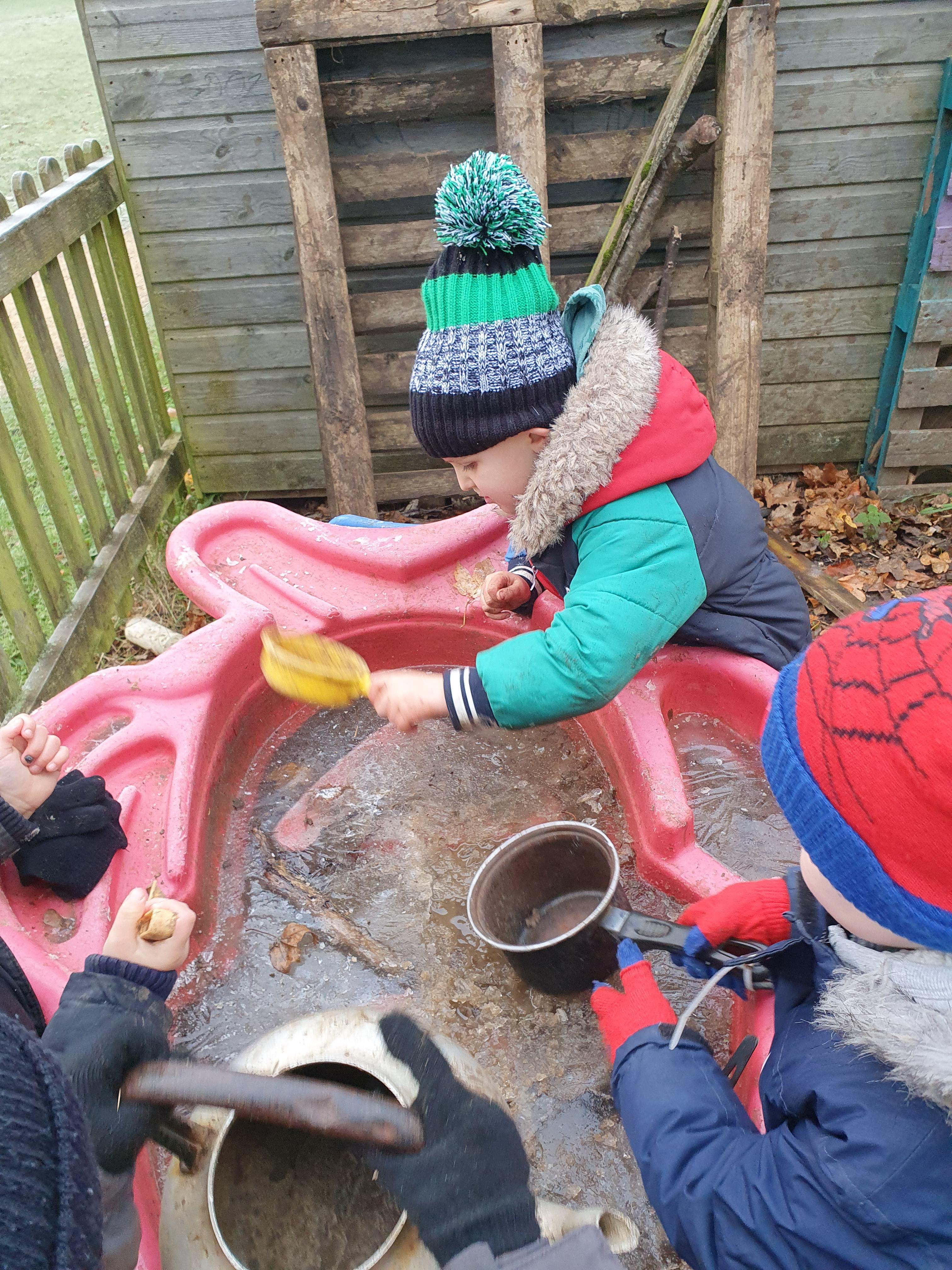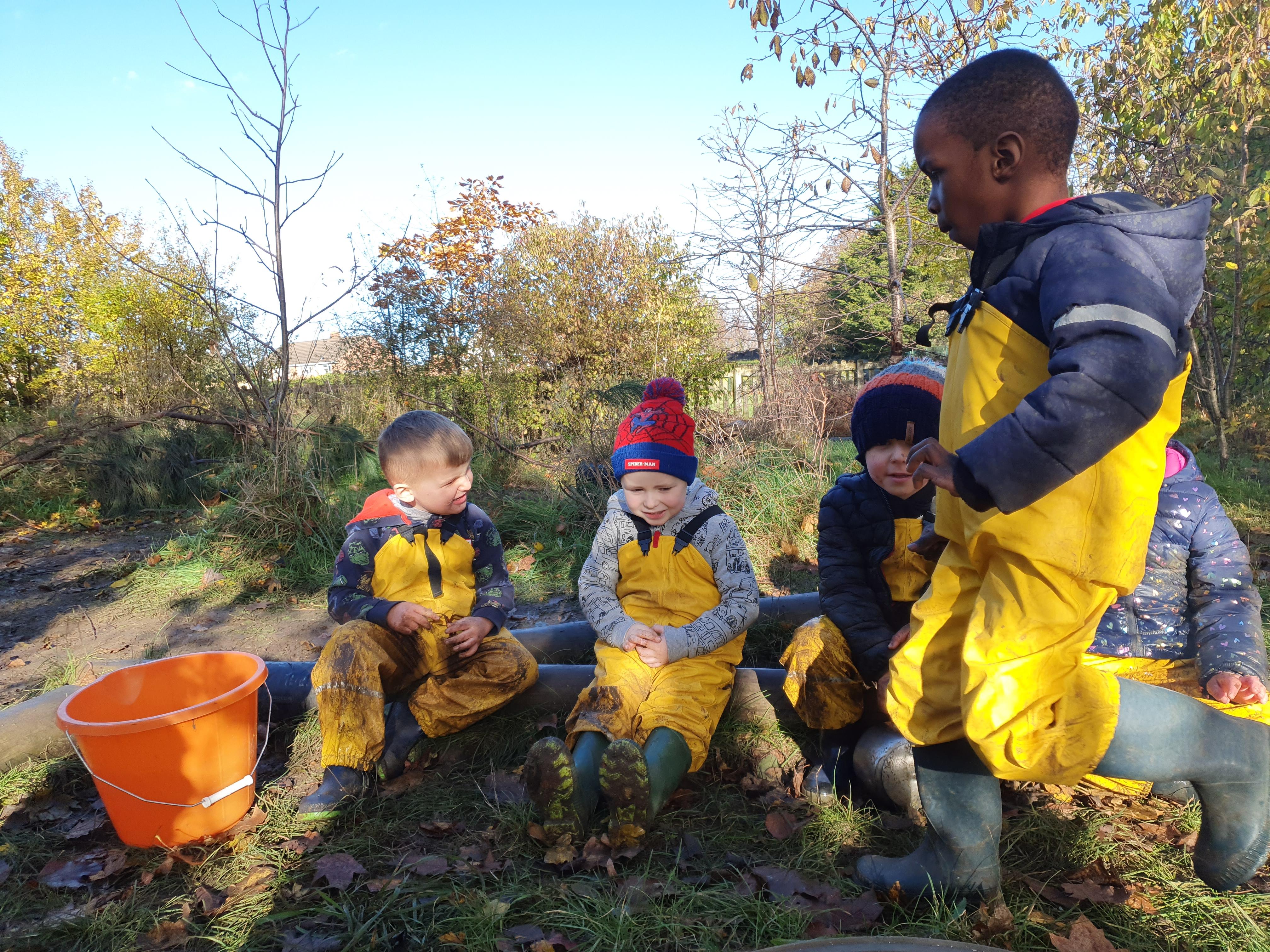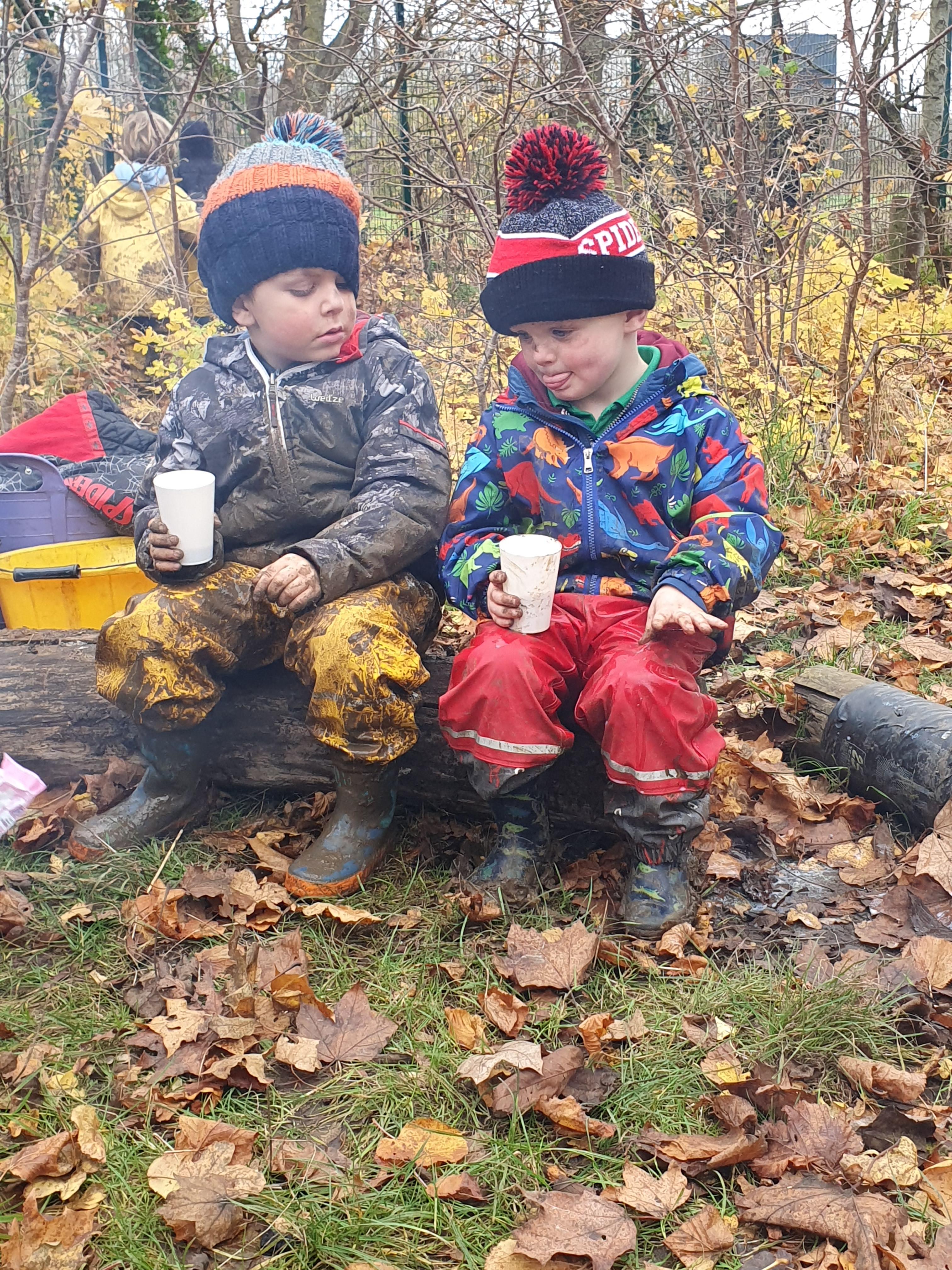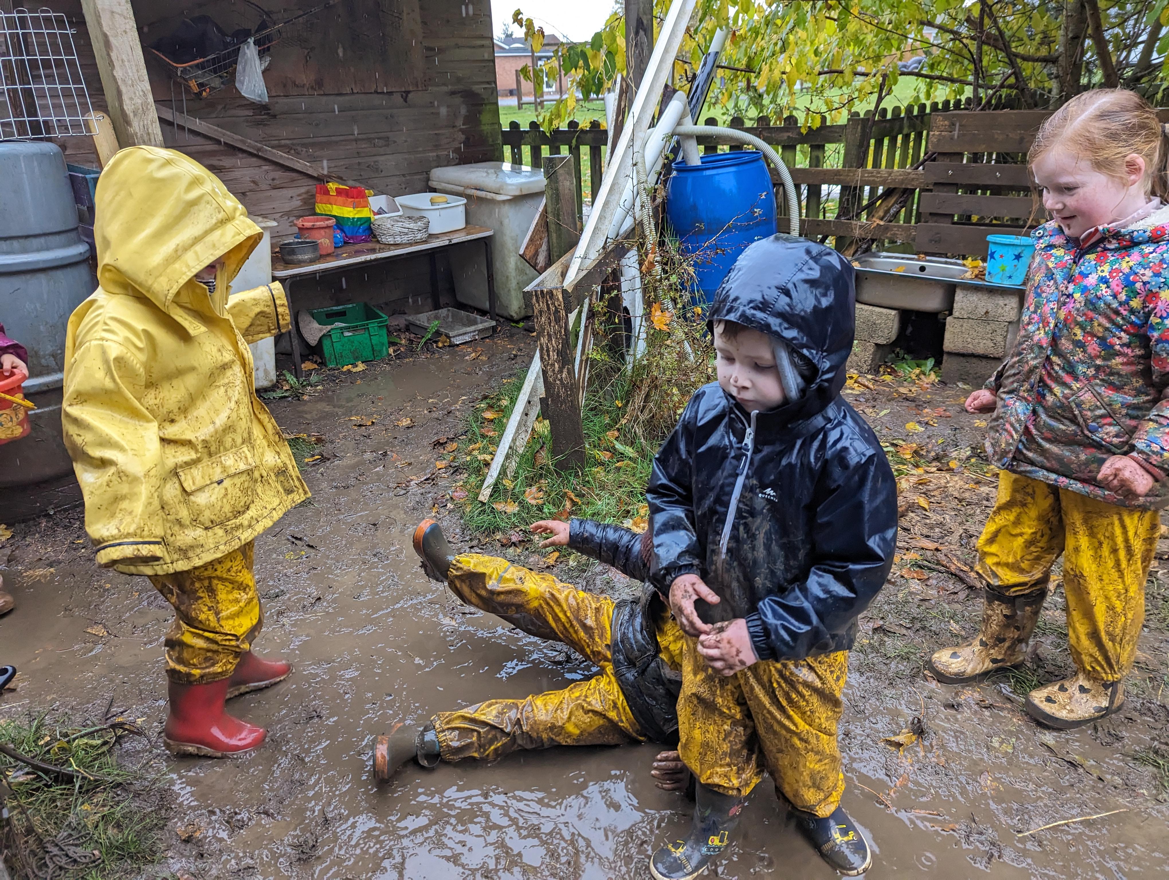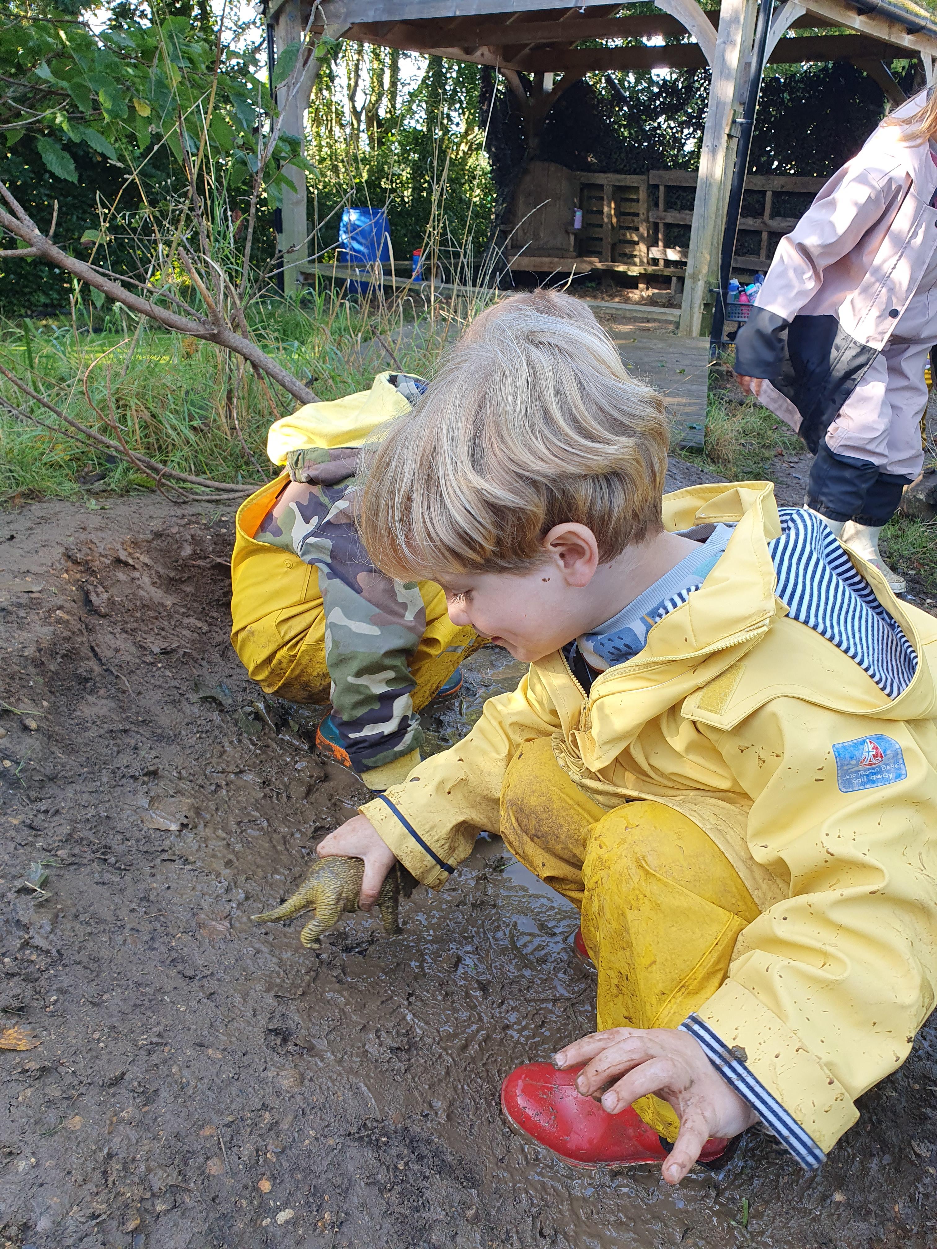 It was a very muddy forest school session this week . . .