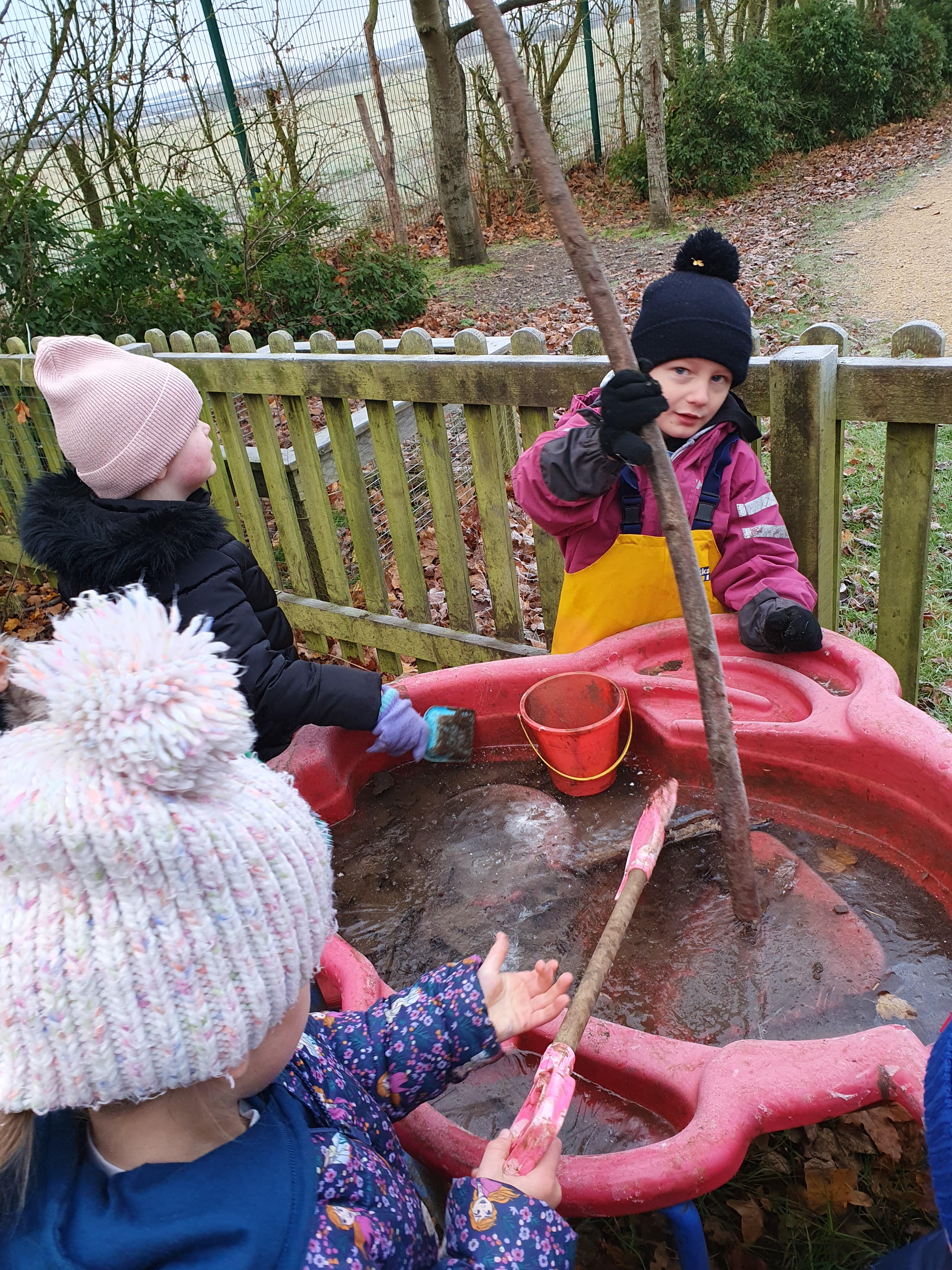 This week we were a lot more ambitious with mixing the water and mud!