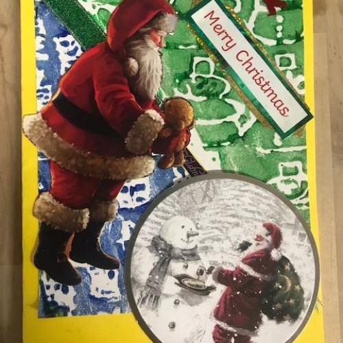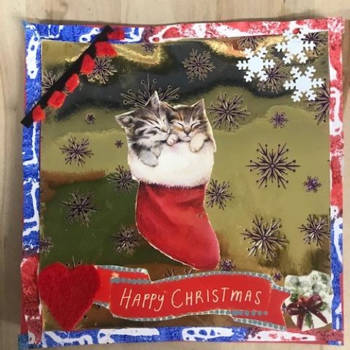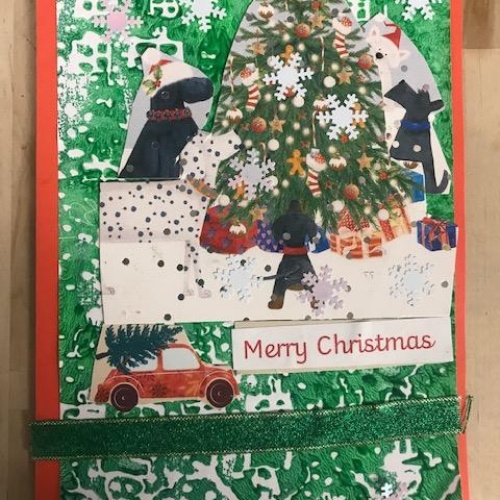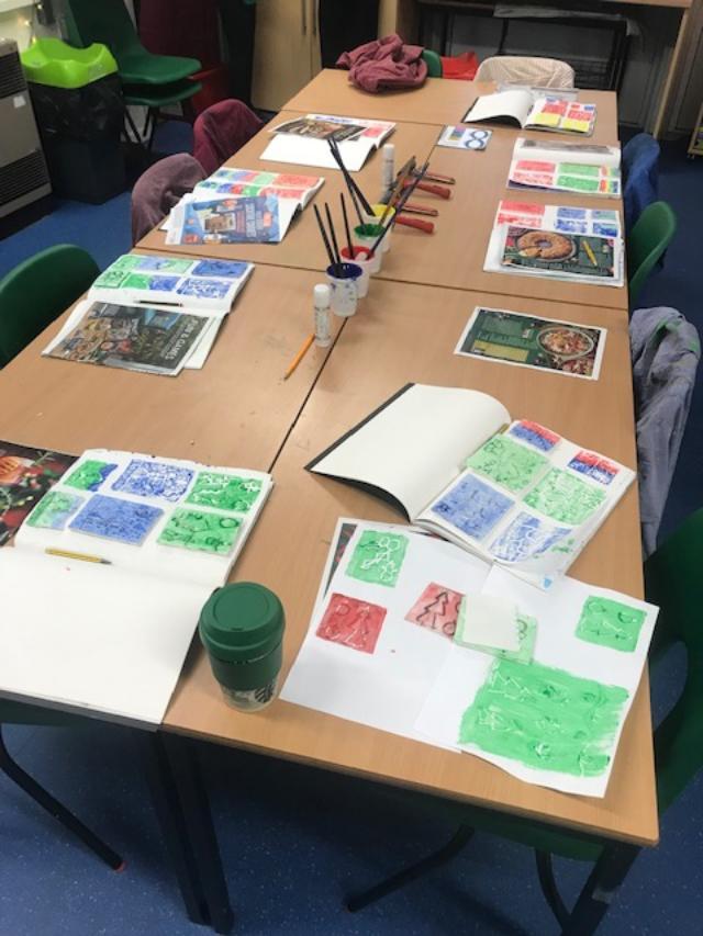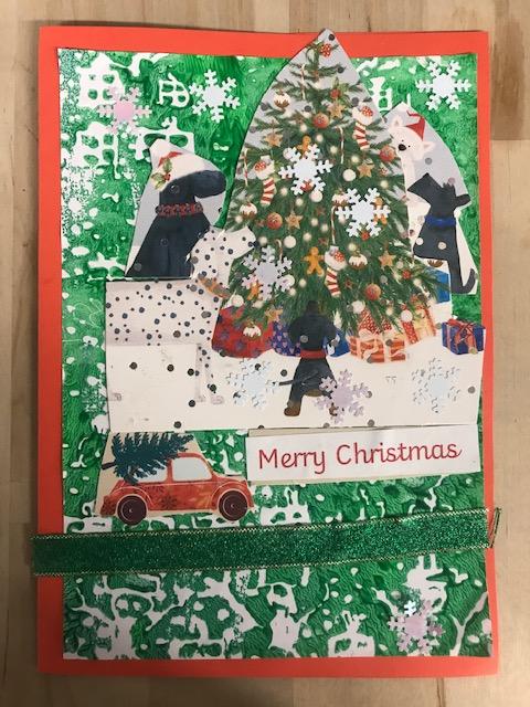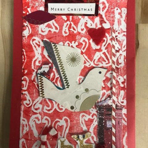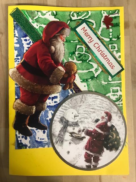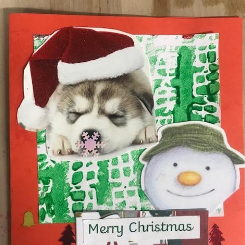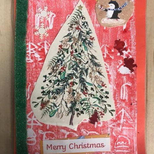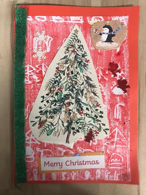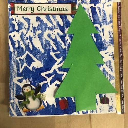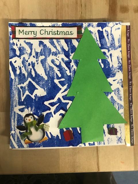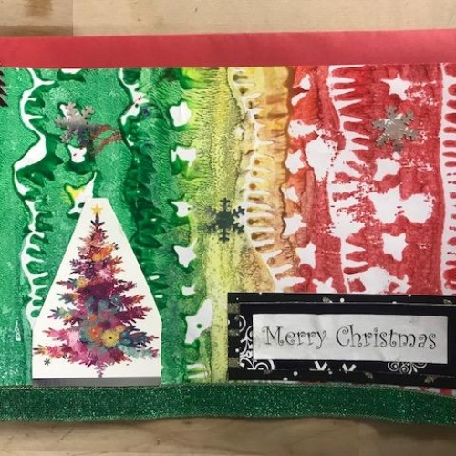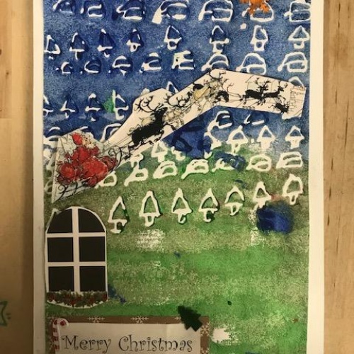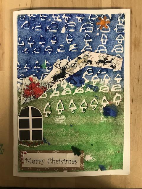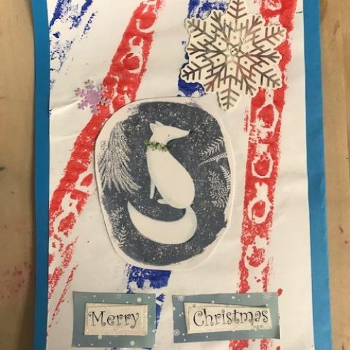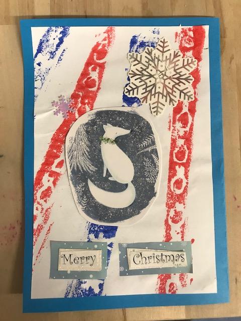 We spent several lesson exploring print making with different media. We then planned a final Chrismas design with repeating patterns using polystyrene tiles. Once printed we then used this for mounting paper to create layering on our Christmas cards. Look at our amazing finished cards!
