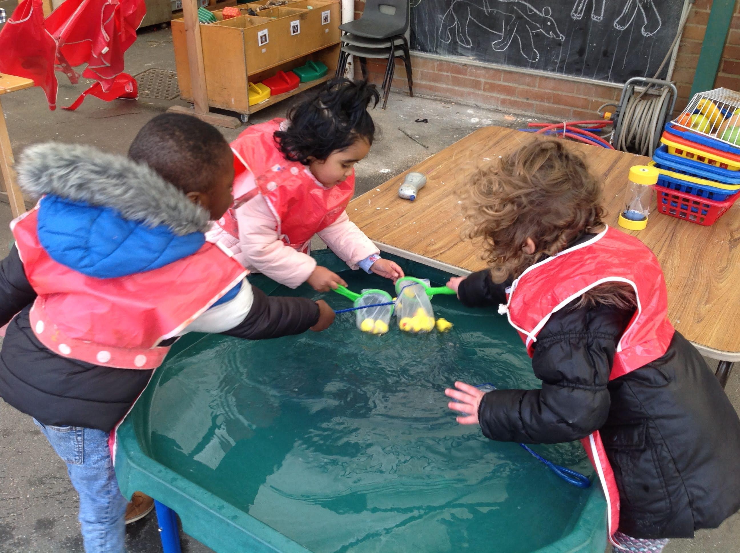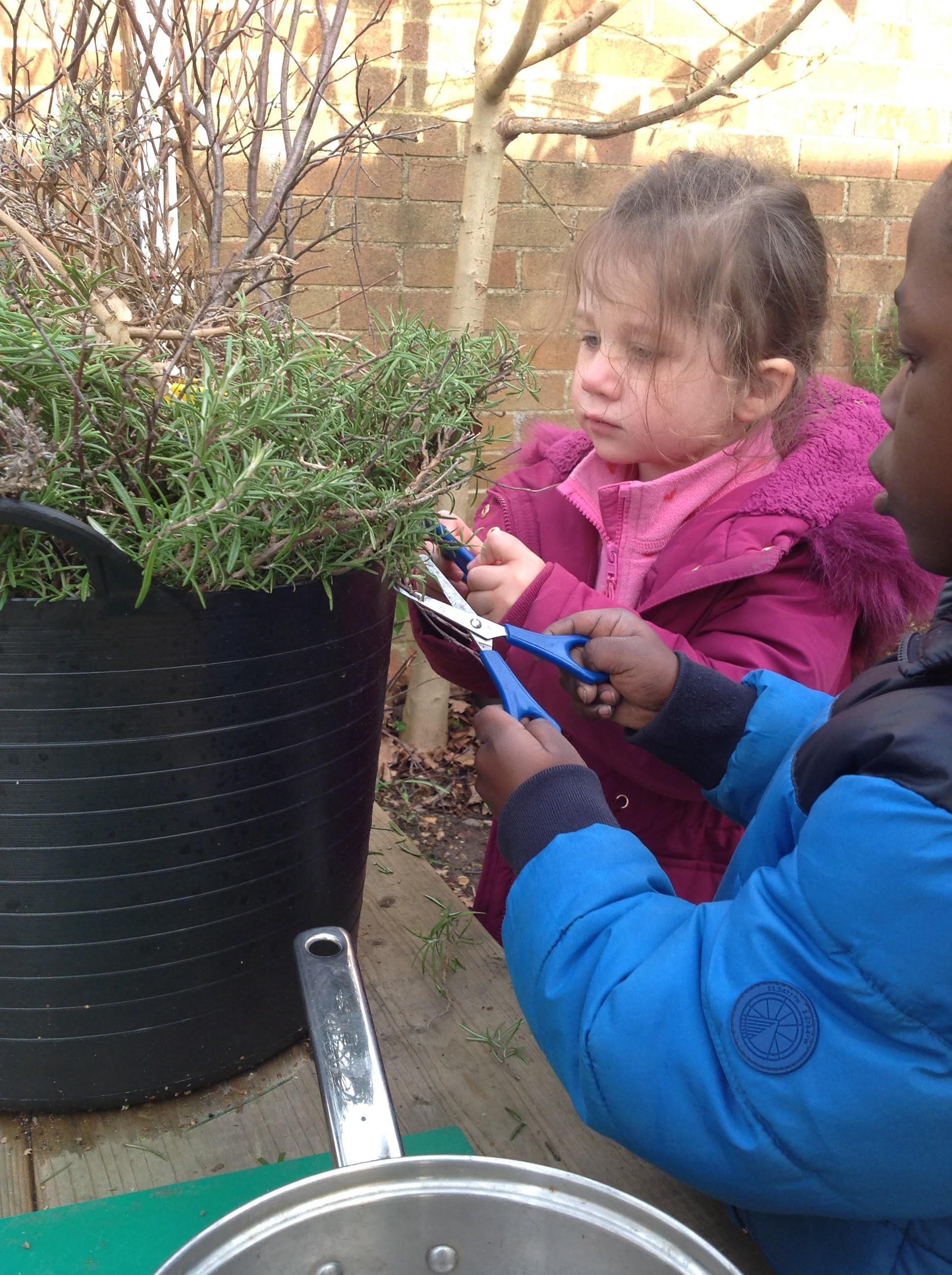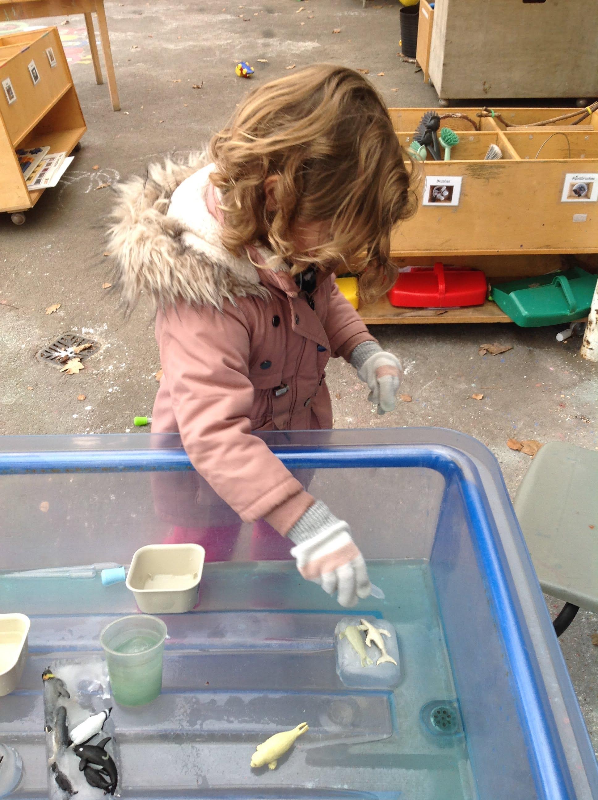 The Wendy House is a garden center this week and it has been very busy. Outside the Barn Owls have been very active, playing football, balancing on the apparatus and bucket stilts, making shape patterns with the ribbon sticks on a windy day, and fishing flowers from ice!