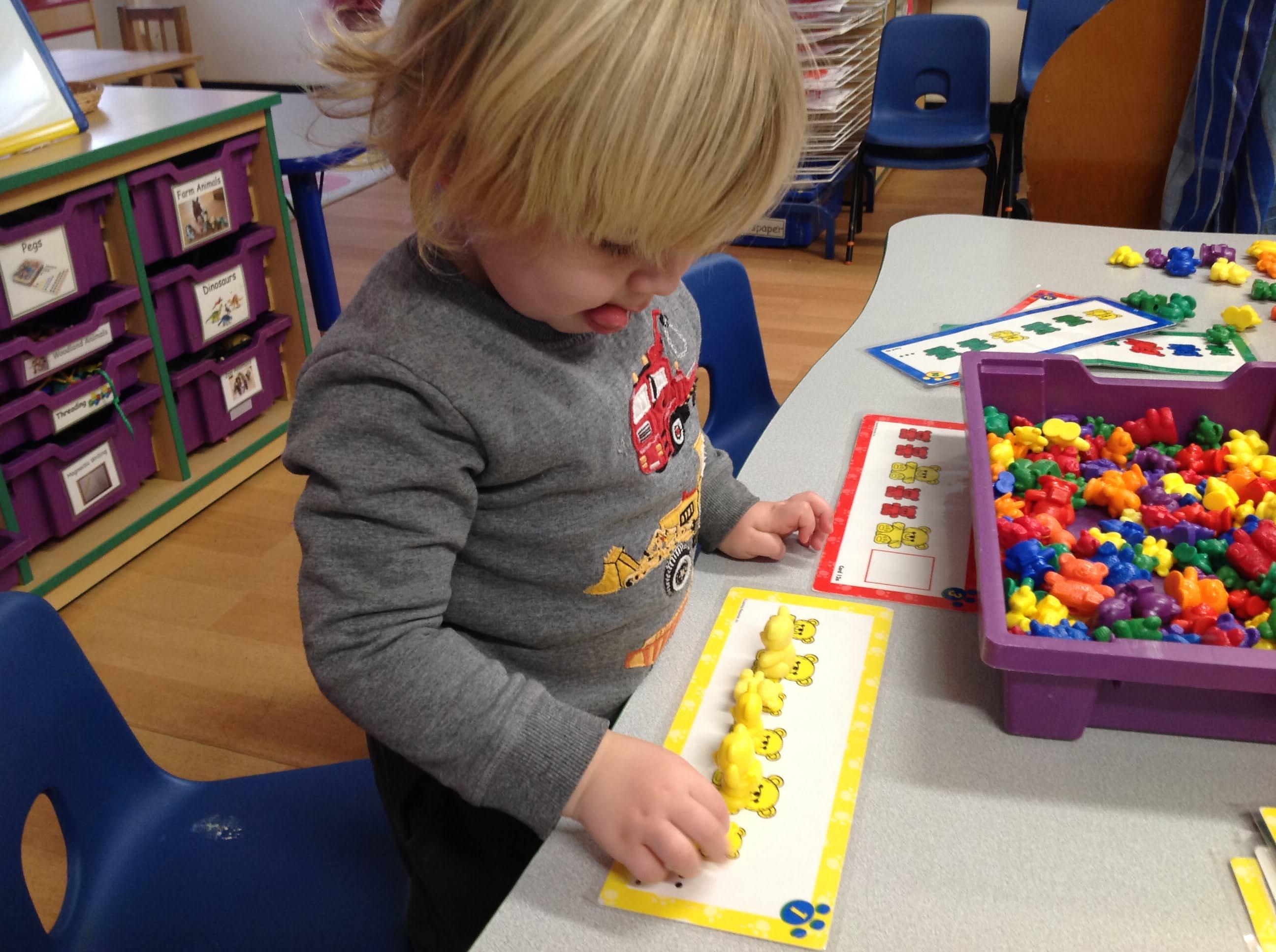 You can see we have been practising our counting by throwing bean bags into hoops.