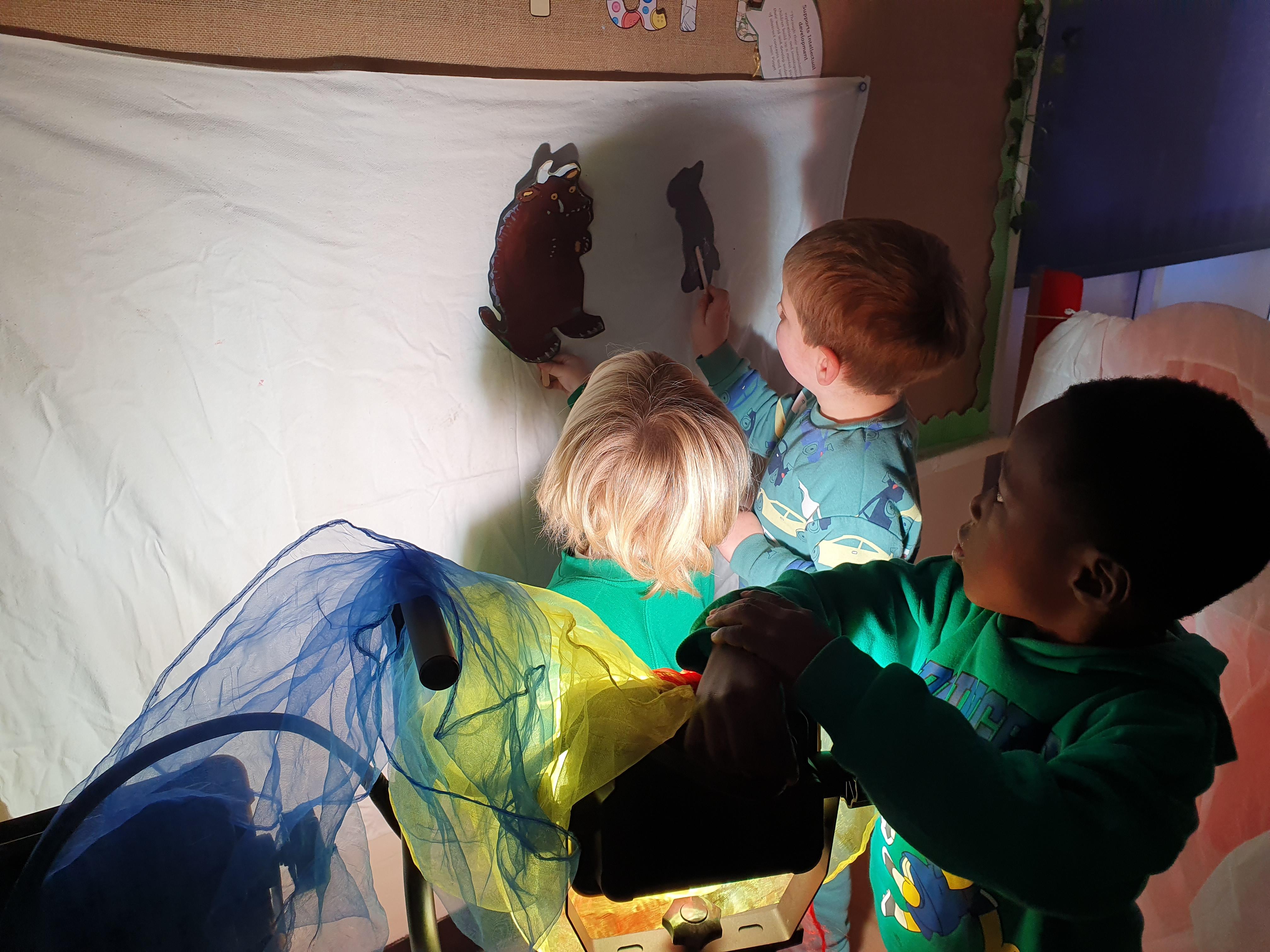 This week we have continued to read and enjoy activities from the The Gruffalo's Child by Julia Donaldson. We have made shadow puppets and our own footprint trails.