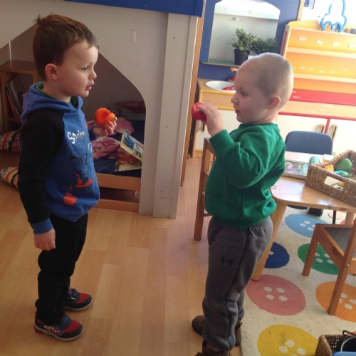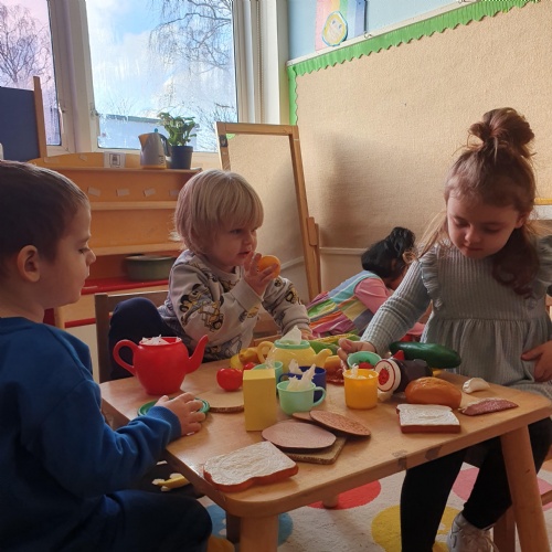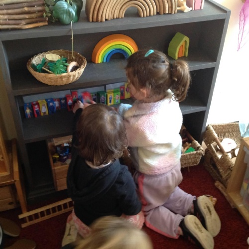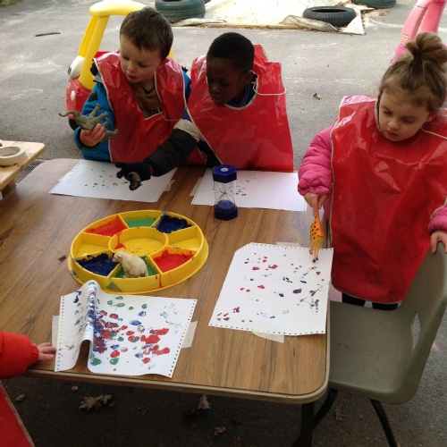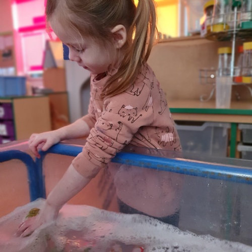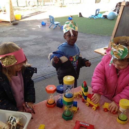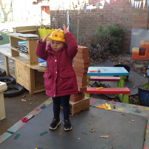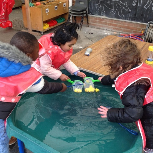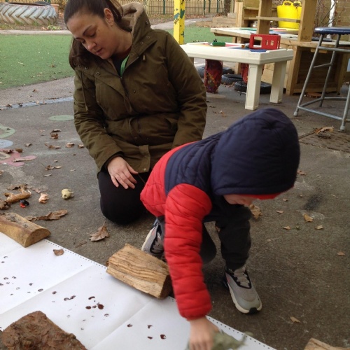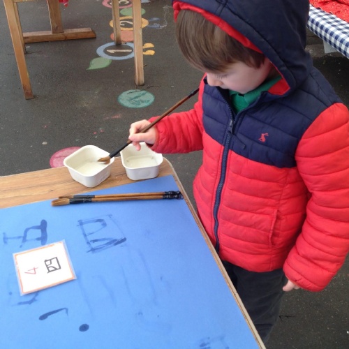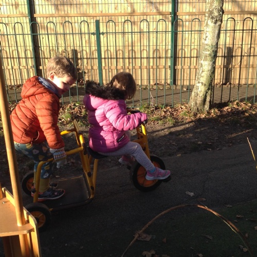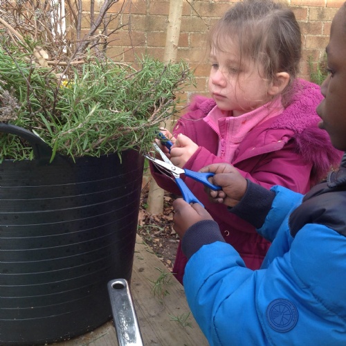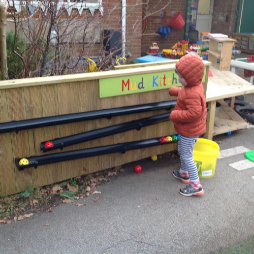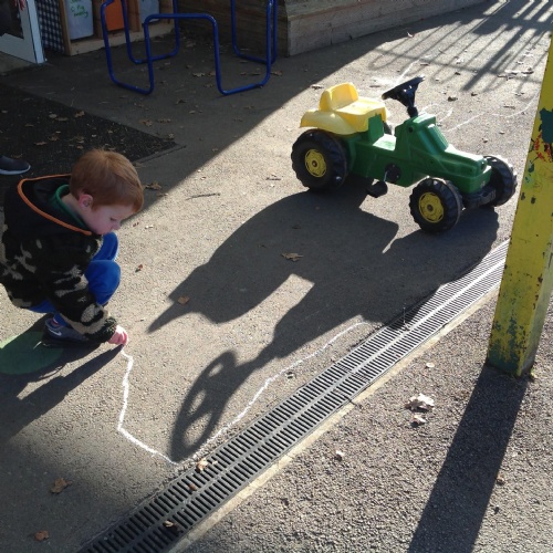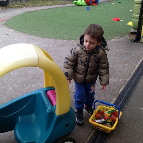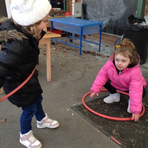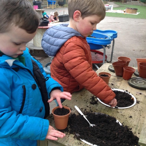 The Wendy House is a garden center this week and it has been very busy. Outside the Barn Owls have been very active, playing football, balancing on the apparatus and bucket stilts, making shape patterns with the ribbon sticks on a windy day, and fishing flowers from ice!