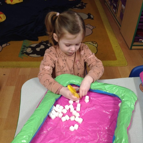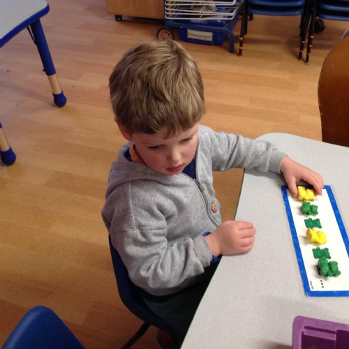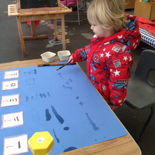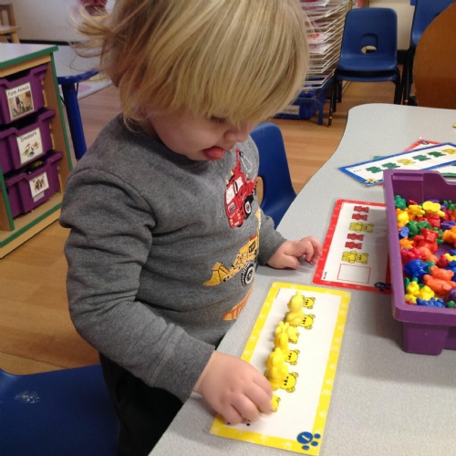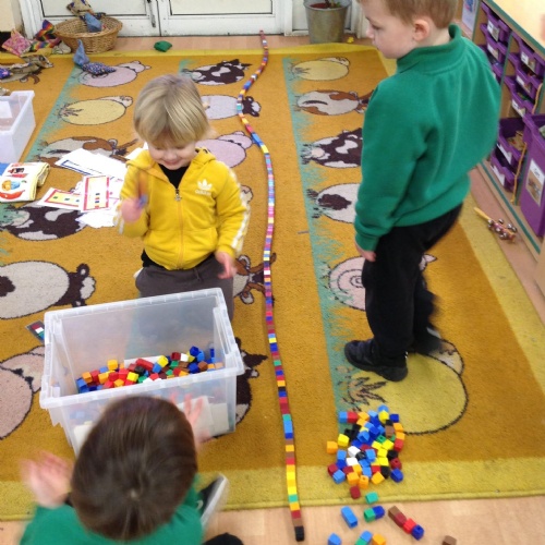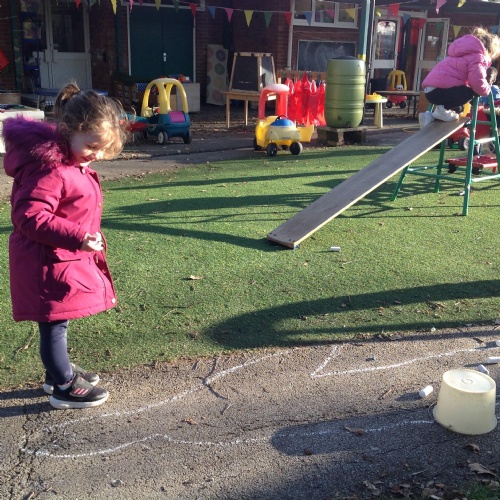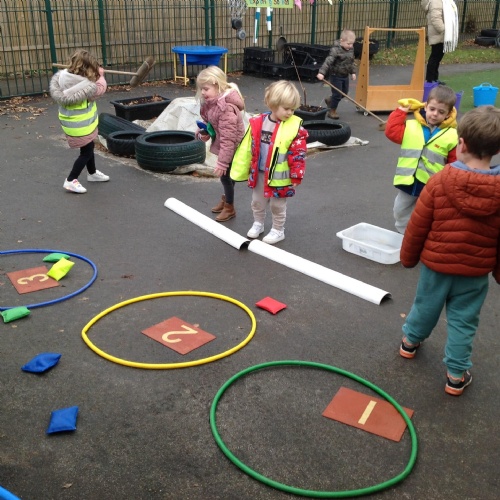 You can see we have been practising our counting by throwing bean bags into hoops.