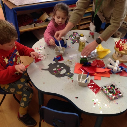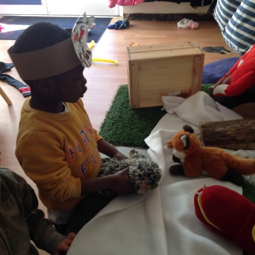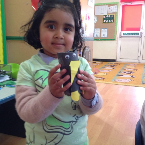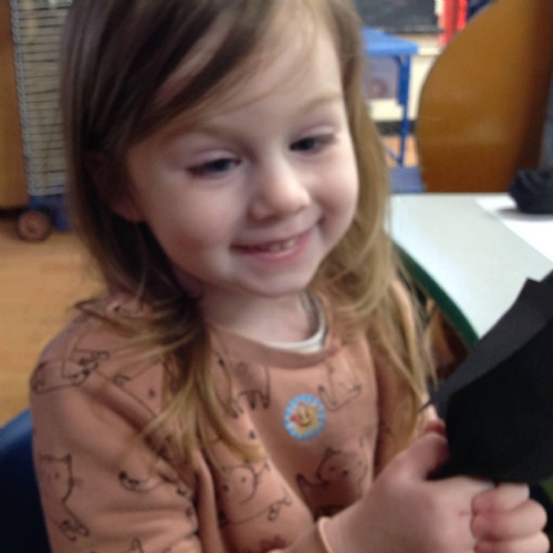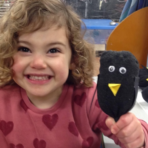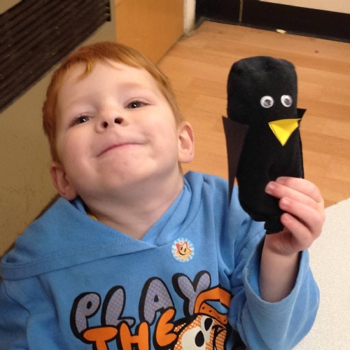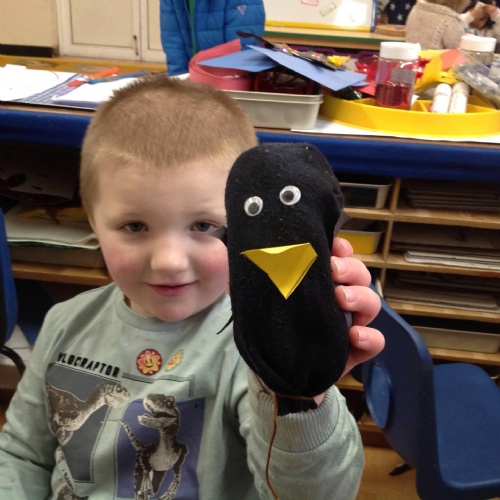Our last week of term has been very busy indeed! The class story this week was Charlie Crow in the Snow by Paula Metcalfe. Charlie the Crow is getting confused by the changes he can see from his tree, until his friend Bear tells him that the changes are happening because the season is changing to winter. Bear goes into his den to hibernate, but Squirrel is around to keep Charlie company and have fun in the winter. The Barn Owls were brilliant at finding and describing the right shapes they needed to made their Charlie Crow puppet from an old sock! They could also say how Charlie the crow is different to Wellington the penguin from last weeks story.