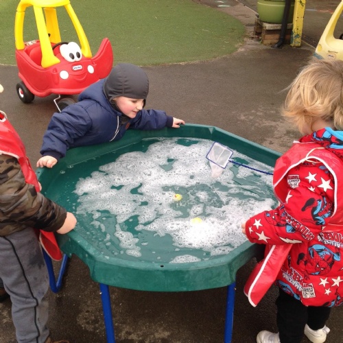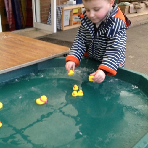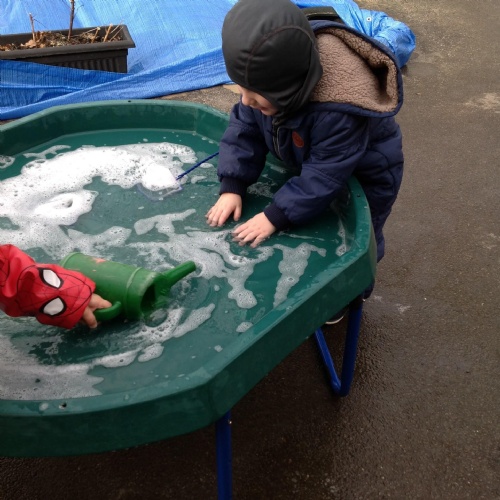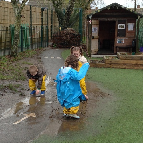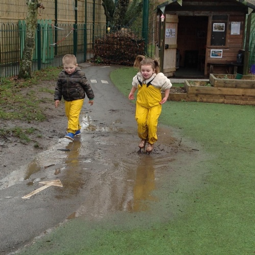 The wet weather does not stop us venturing outside and we had lots of fun jumping in the puddles on Friday.