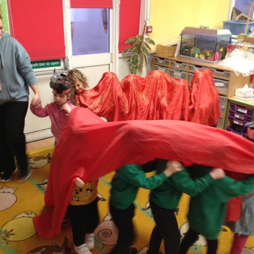 We have been learning how Chinese New Year is celebrated. We have being making lanterns to decorate our home corner. Our dragon masks were used when we joined together to perform our dragon dance. On Friday we had a very exciting visit from a dragon. Thank you Mrs. Holloway for arranging this! There was also the opportunity to use chopsticks with the wool noodles.