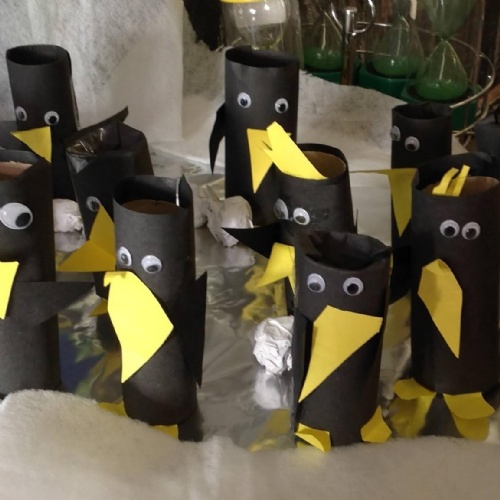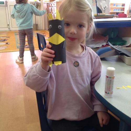 Wellington the penguin wants to grow a garden, but realises that in the South Pole he can’t plant seeds, so makes his garden from colourful wrappers. We have been learning facts about penguins too. The Barn Owls made their own Wellington penguin by finding different shapes for the various body parts. We also made flowers to go on our magical garden display.