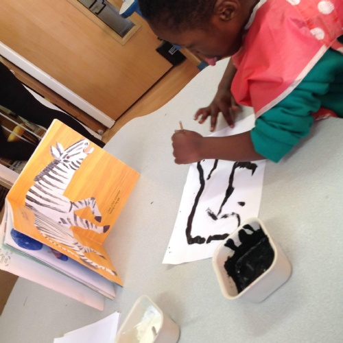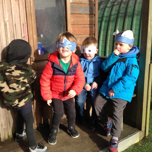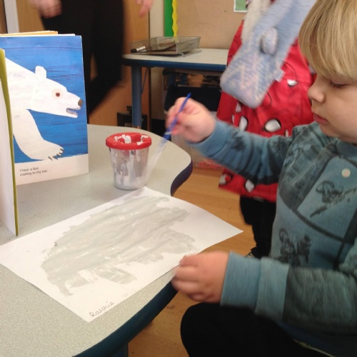 This week we have been reading the book Polar Bear, Polar Bear What Do You Hear? By Bill Martin and Eric Carle. Our brick pit became the Polar Bear's cave and we went fishing under the Arctic ice too. The Barn Owls have been learning facts about Polar Bears and enjoyed pretending to be bears wearing the bear ears we made. In the book there are lots of different animals and descriptions of the sounds they make. The children were able to identify the animals from just the sounds. They have made amazing masks of the the animals from the story.