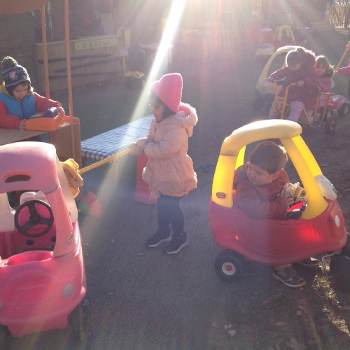 The Wendy House has become The Gruffalo cafe where we have been making Gruffalo cake and crumble. On Thursday we had a car wash service for the customers too!