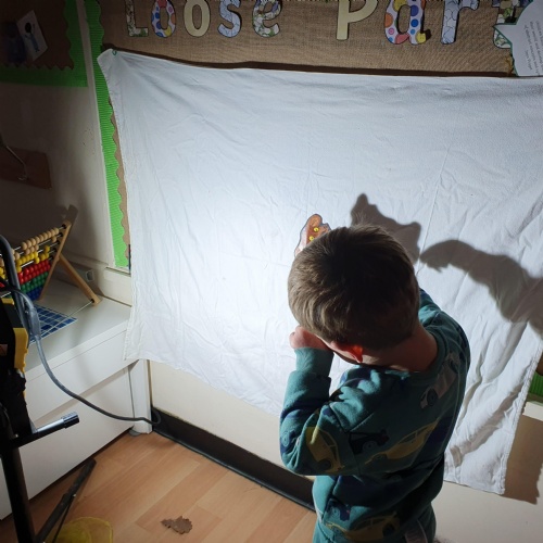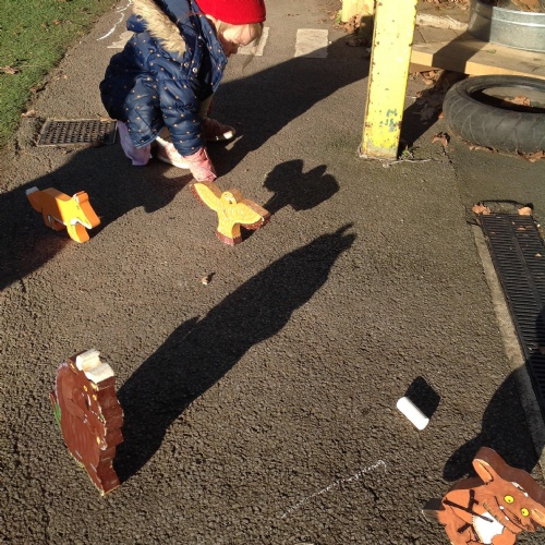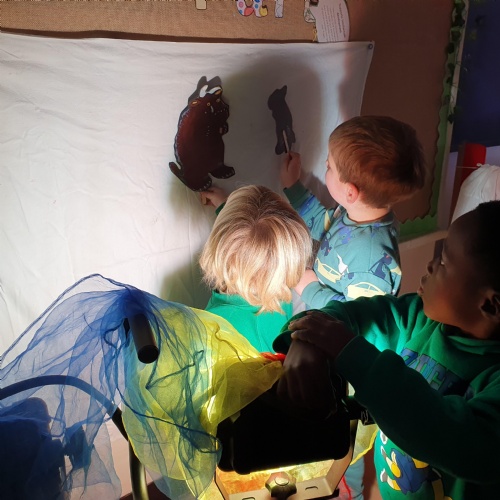 This week we have continued to read and enjoy activities from the The Gruffalo's Child by Julia Donaldson. We have made shadow puppets and our own footprint trails.