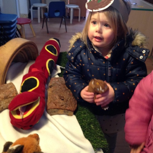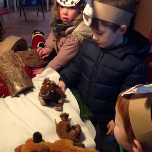 This week we have been reading The Gruffalo's Child by Julia Donaldson. We have used puppets to retell the story and have enjoyed exploring our own Gruffalo cave in the nursery garden.