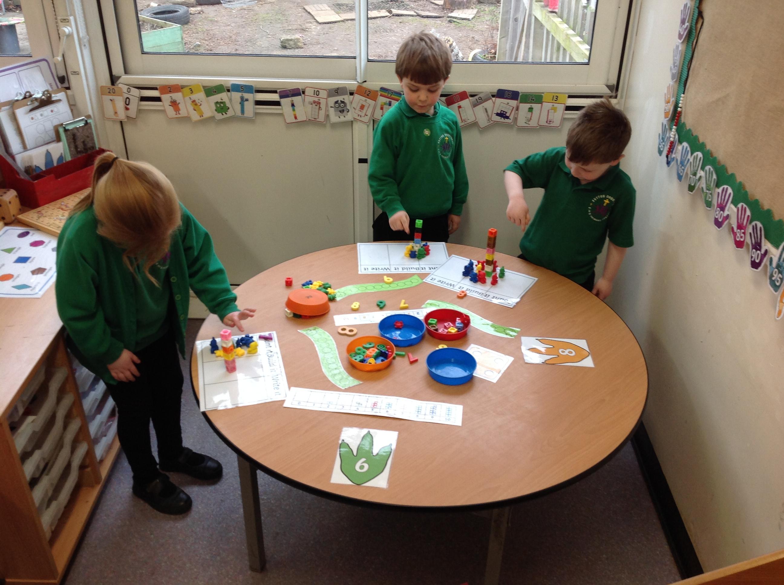 Week 4 - We were so excited this week when we received new toys including our puppets for the puppet theatre. In Maths we were representing 6, 7 and 8 and learning about which smaller numbers make those numbers.
