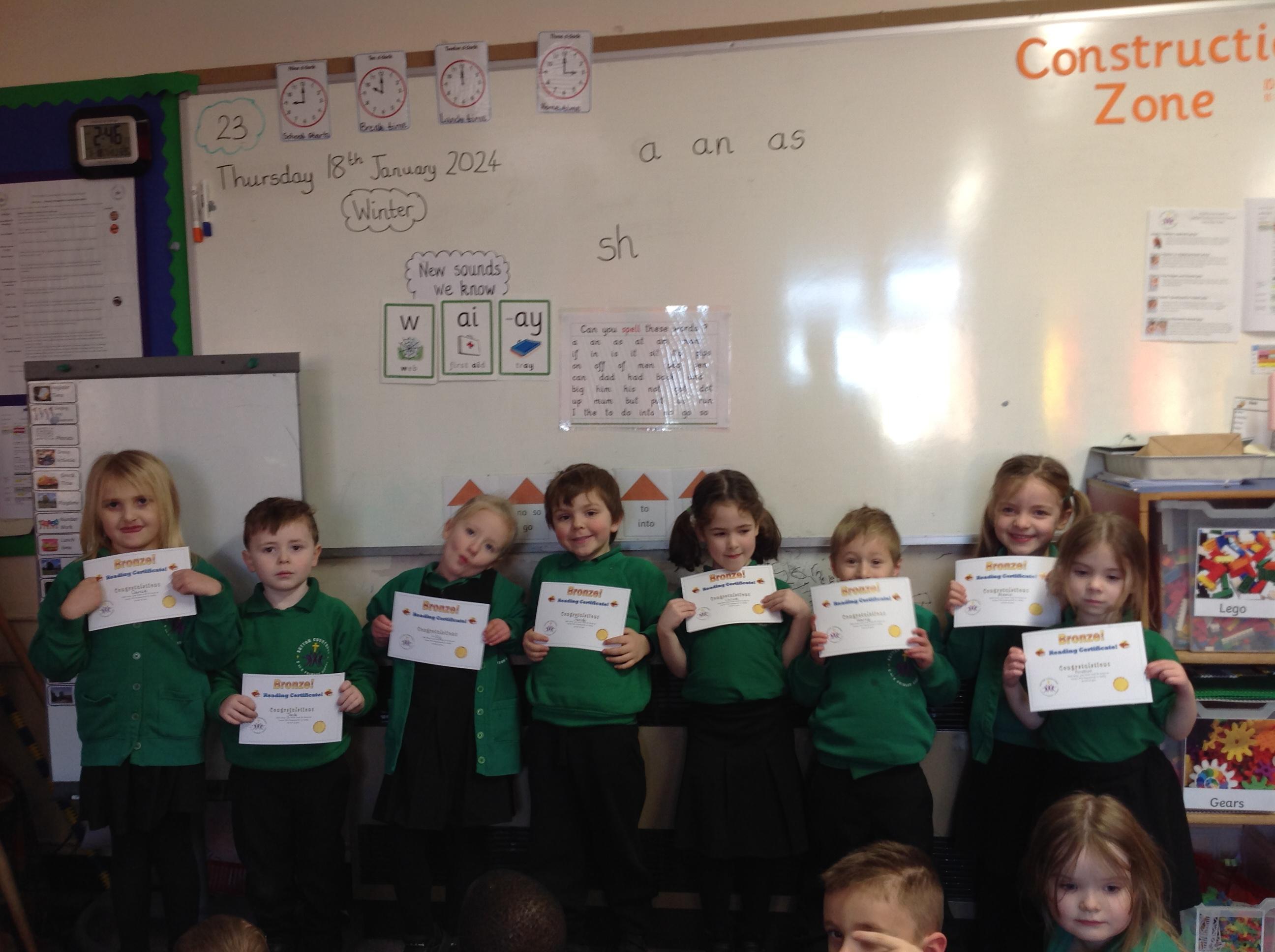 Week 2 - This week we have started to look at our topic, Totally Roarsome. We shared facts that we already know about dinosaurs. We learnt new vocabulary e.g. prehistoric, extinct and explored with dinosaurs in different areas. We celebrated some friends who received their Bronze certificate for reading 35 times at home.
