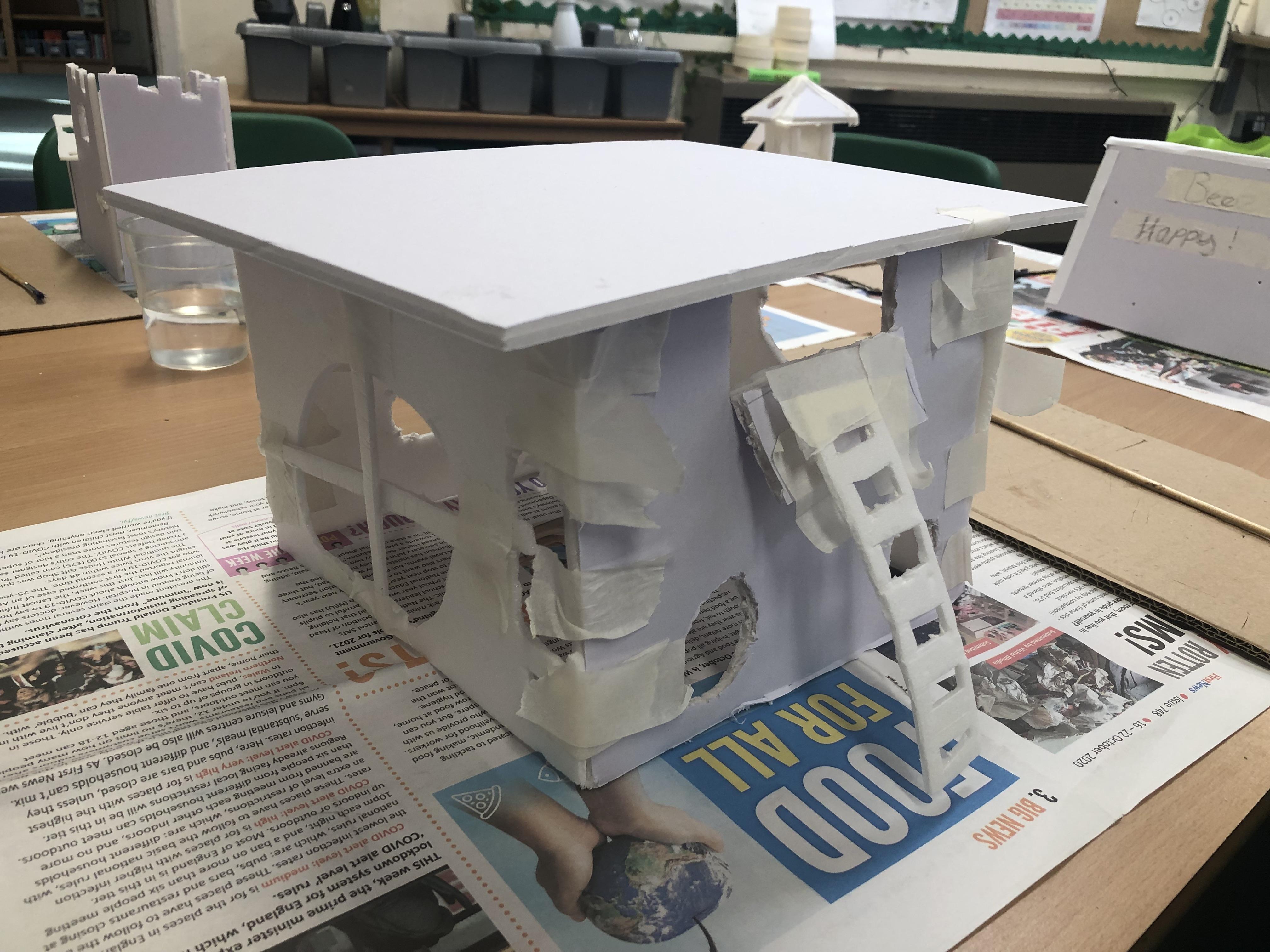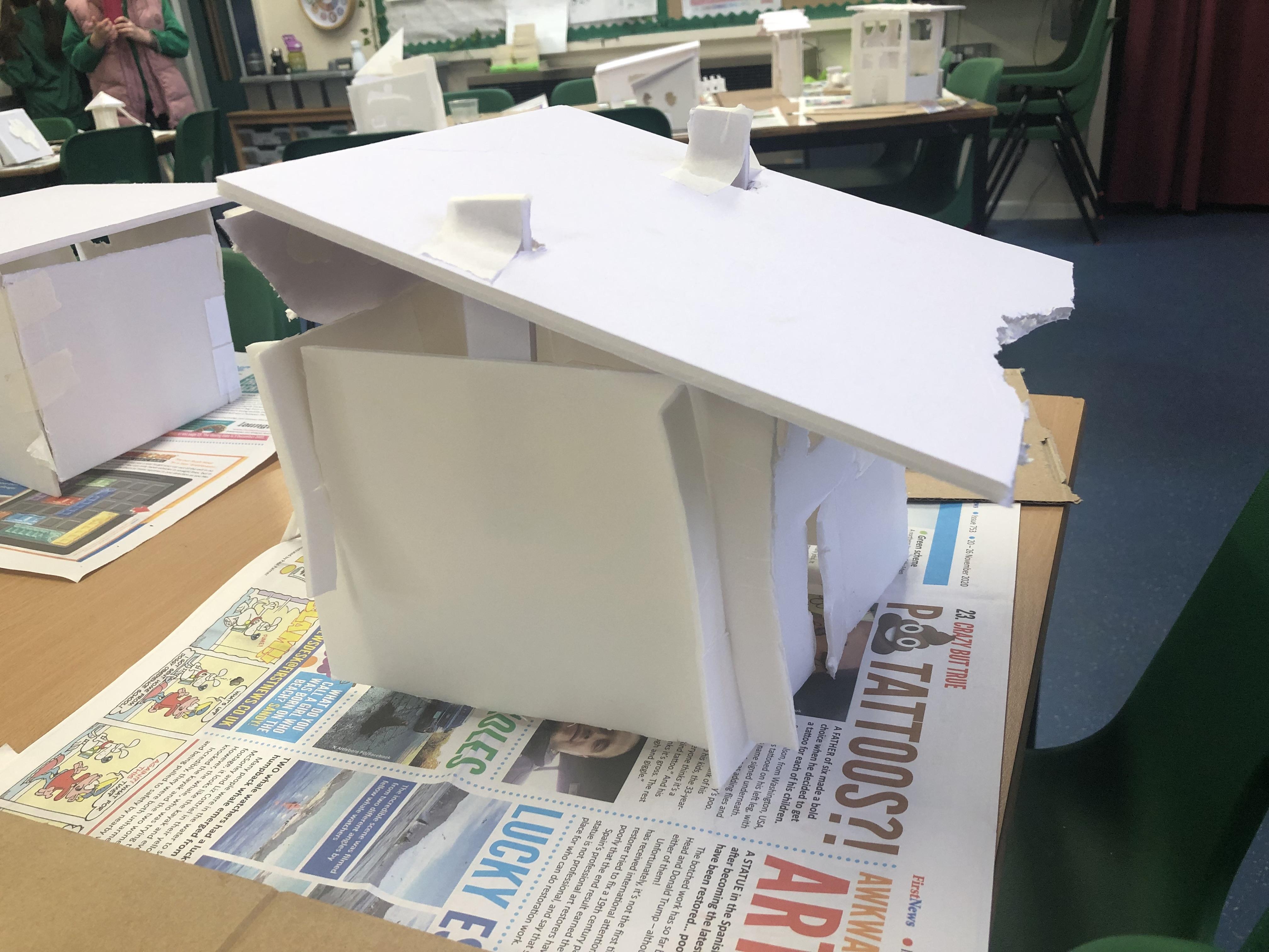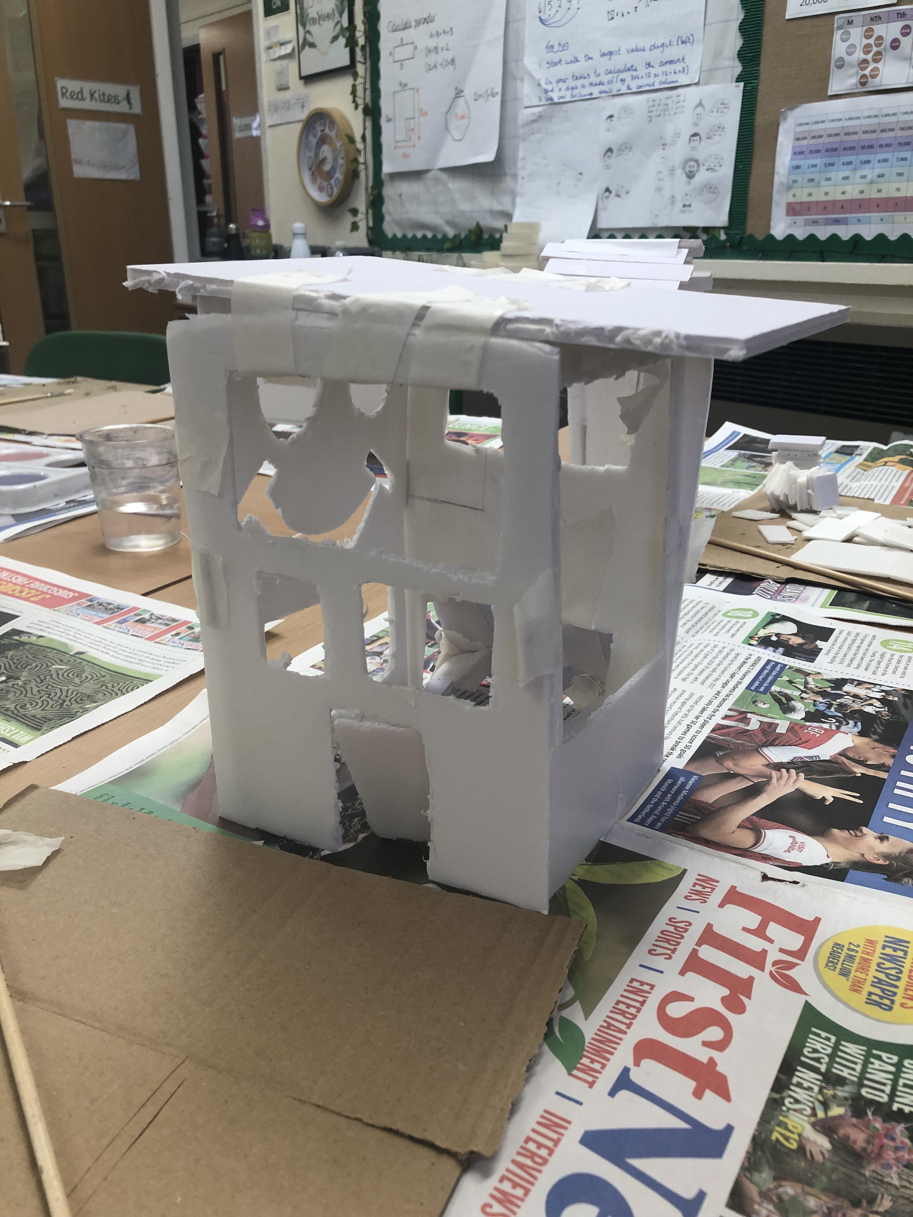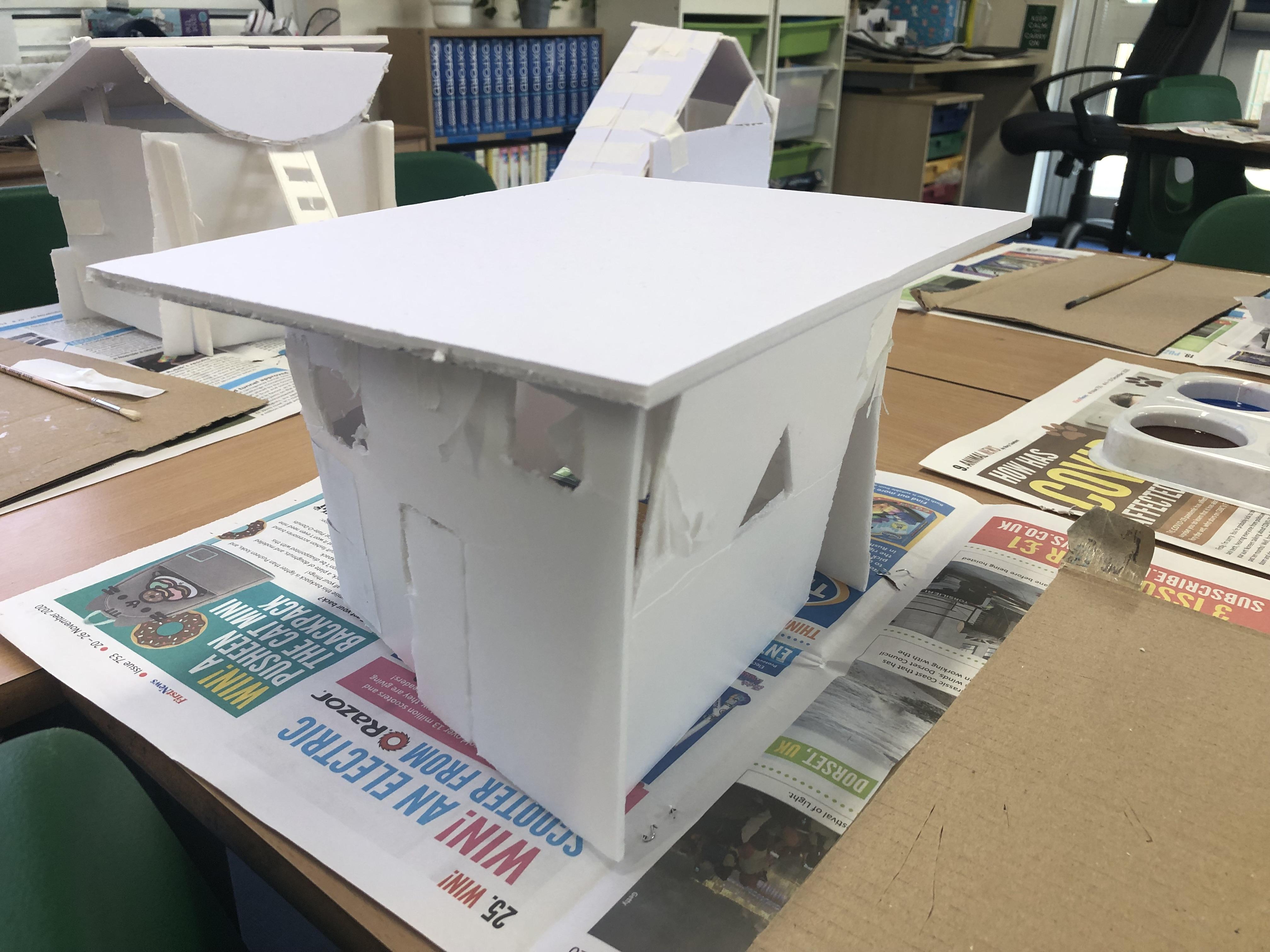 In art, we have been studying modern architecture and identifying features that inspire us. This led us to designing and making our own our own modern homes. We hope you enjoy looking at them as much as we enjoyed making them.